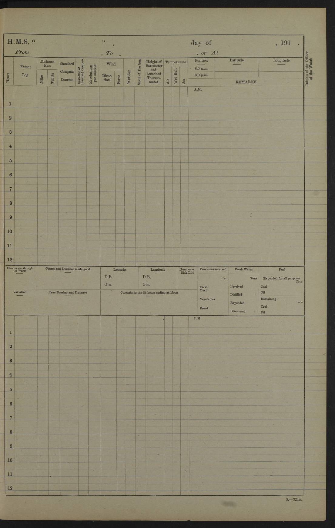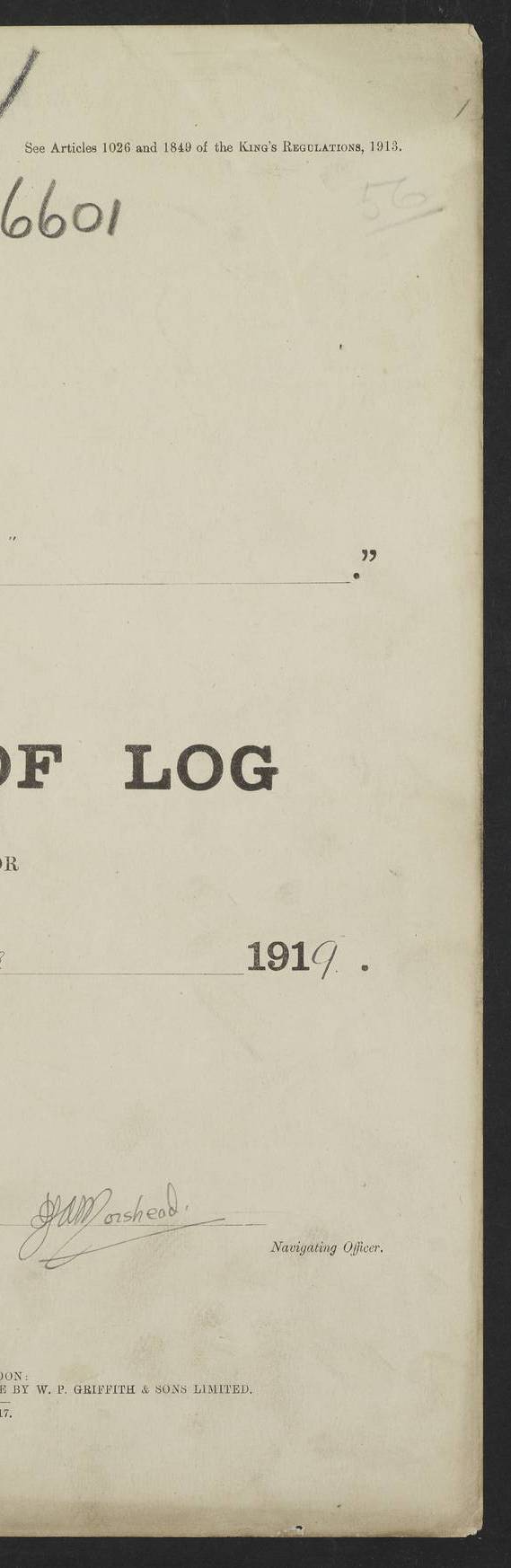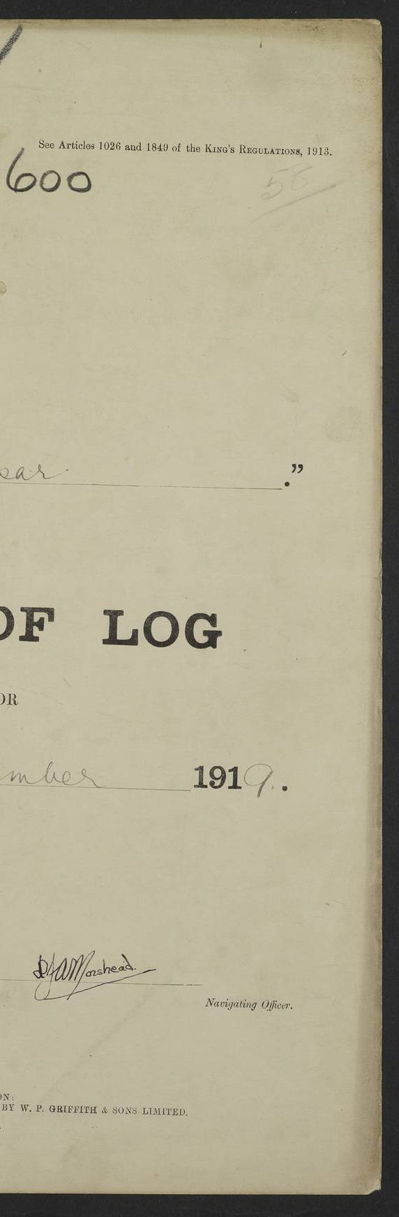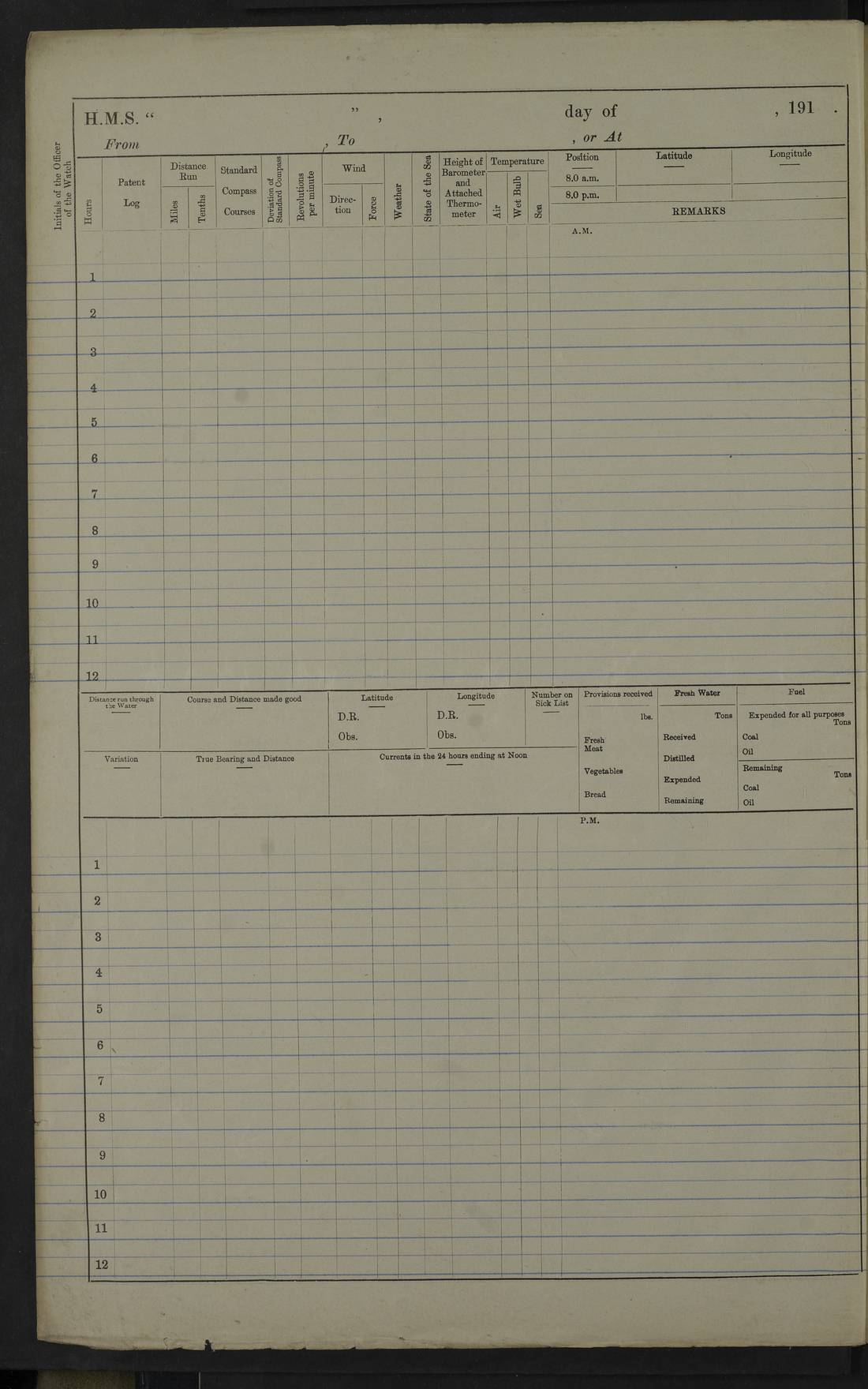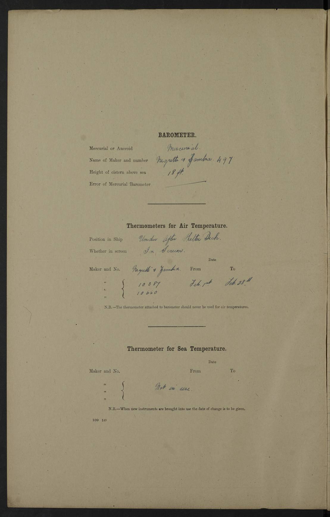 LOGS FOR JANUARY 1917 4caf84b6cadfd34197009935: (http://oldweather.s3.amazonaws.com/ADM53-36574/ADM 53-36574-143_1.jpg) [Cover of Log for January 1917; “I certify that this is a complete copy of the original Log” (“a complete copy of” crossed through), signed by EC Stubbs, Commander N [Navigator], Navigating Officer] 4caf84b6cadfd34197009936: (http://oldweather.s3.amazonaws.com/ADM53-36574/ADM 53-36574-144_0.jpg) [Blank page] 4caf84b6cadfd34197009937: (http://oldweather.s3.amazonaws.com/ADM53-36574/ADM 53-36574-144_1.jpg) [Page not filled in but signed by CR de C Foot, Captain [Cunningham Robert de Clare Foot], 1 February 1917] 4caf84b6cadfd34197009938: (http://oldweather.s3.amazonaws.com/ADM53-36574/ADM 53-36574-145_0.jpg) [Details of Barometer and Thermometers]