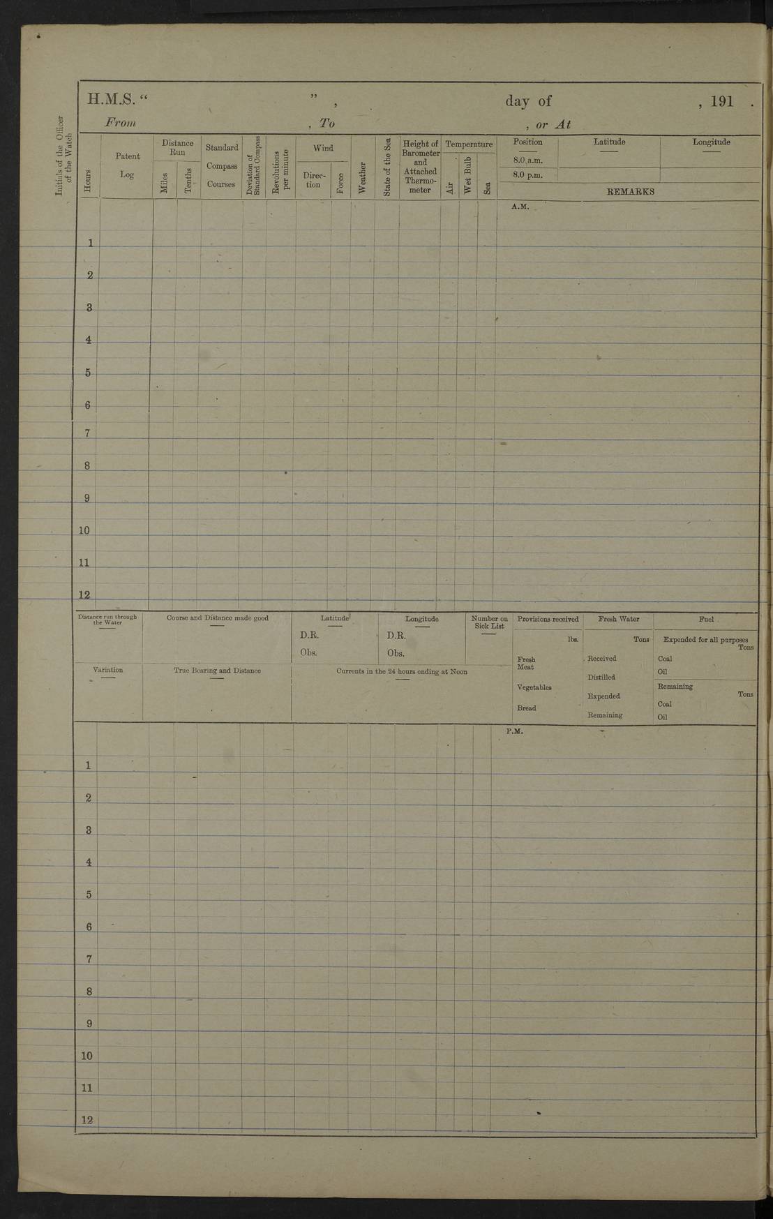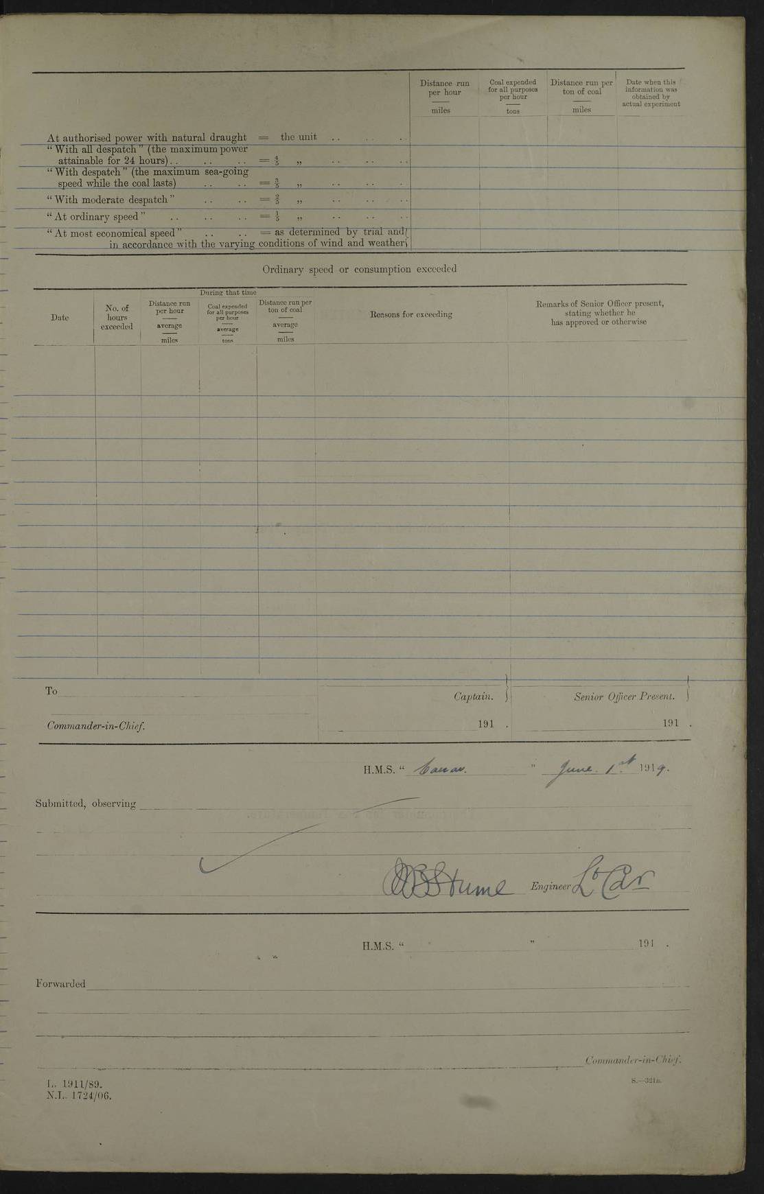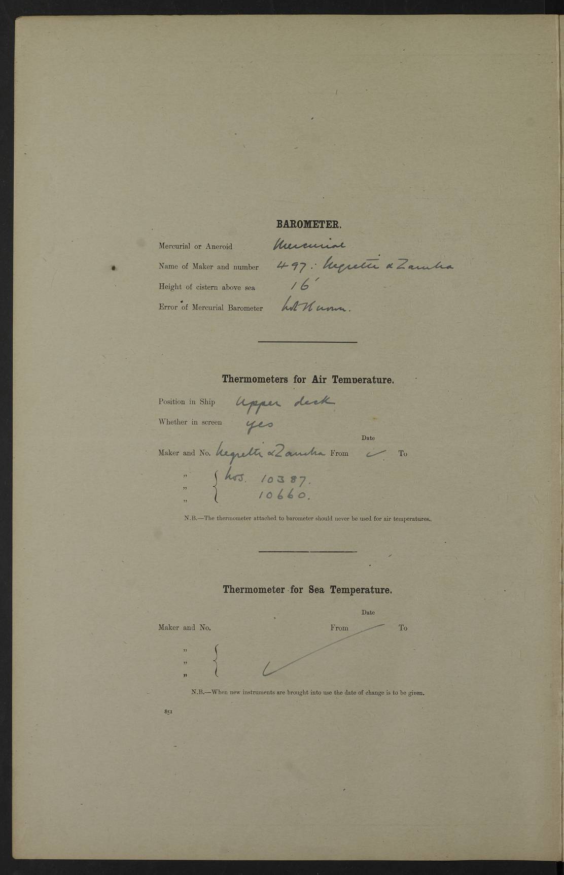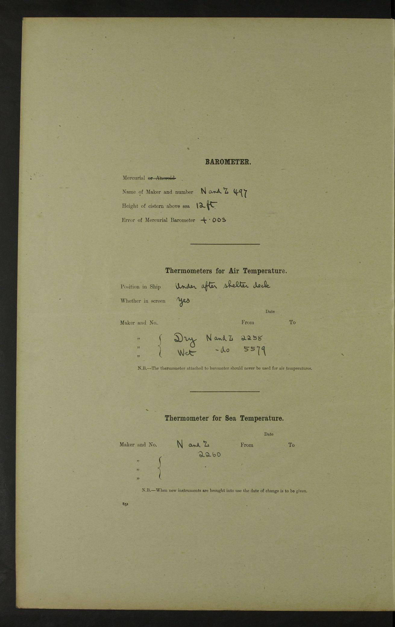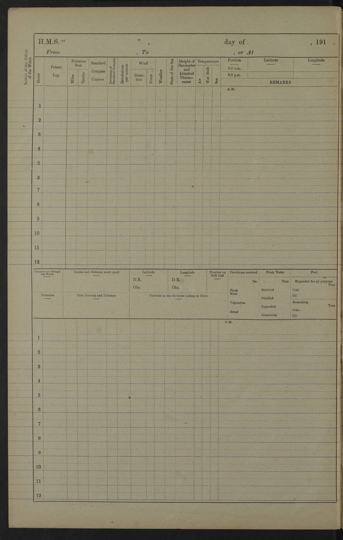 LOGS FOR JANUARY 1917 4caf84b6cadfd34197009935: (http://oldweather.s3.amazonaws.com/ADM53-36574/ADM 53-36574-143_1.jpg) [Cover of Log for January 1917; “I certify that this is a complete copy of the original Log” (“a complete copy of” crossed through), signed by EC Stubbs, Commander N [Navigator], Navigating Officer] 4caf84b6cadfd34197009936: (http://oldweather.s3.amazonaws.com/ADM53-36574/ADM 53-36574-144_0.jpg) [Blank page] 4caf84b6cadfd34197009937: (http://oldweather.s3.amazonaws.com/ADM53-36574/ADM 53-36574-144_1.jpg) [Page not filled in but signed by CR de C Foot, Captain [Cunningham Robert de Clare Foot], 1 February 1917] 4caf84b6cadfd34197009938: (http://oldweather.s3.amazonaws.com/ADM53-36574/ADM 53-36574-145_0.jpg) [Details of Barometer and Thermometers]