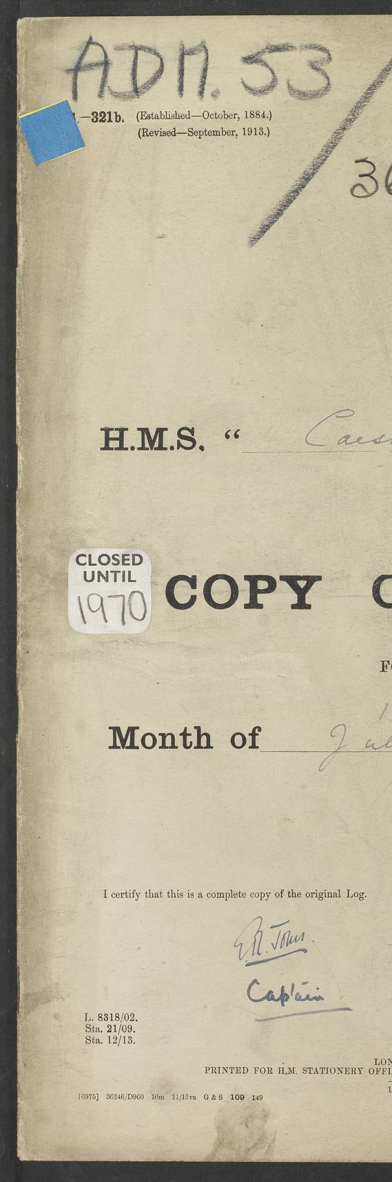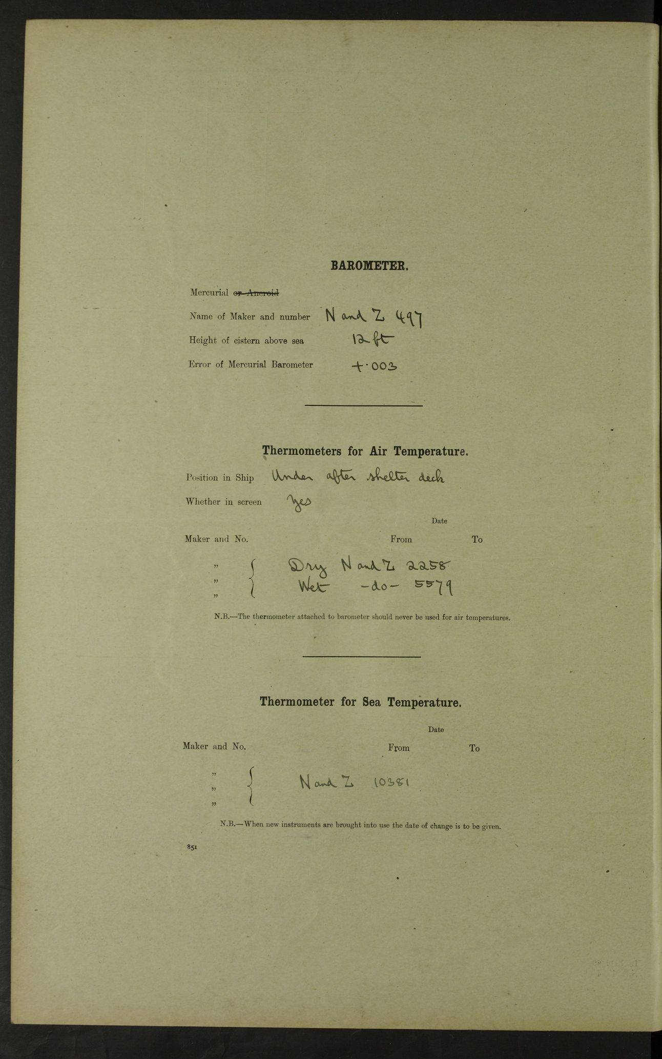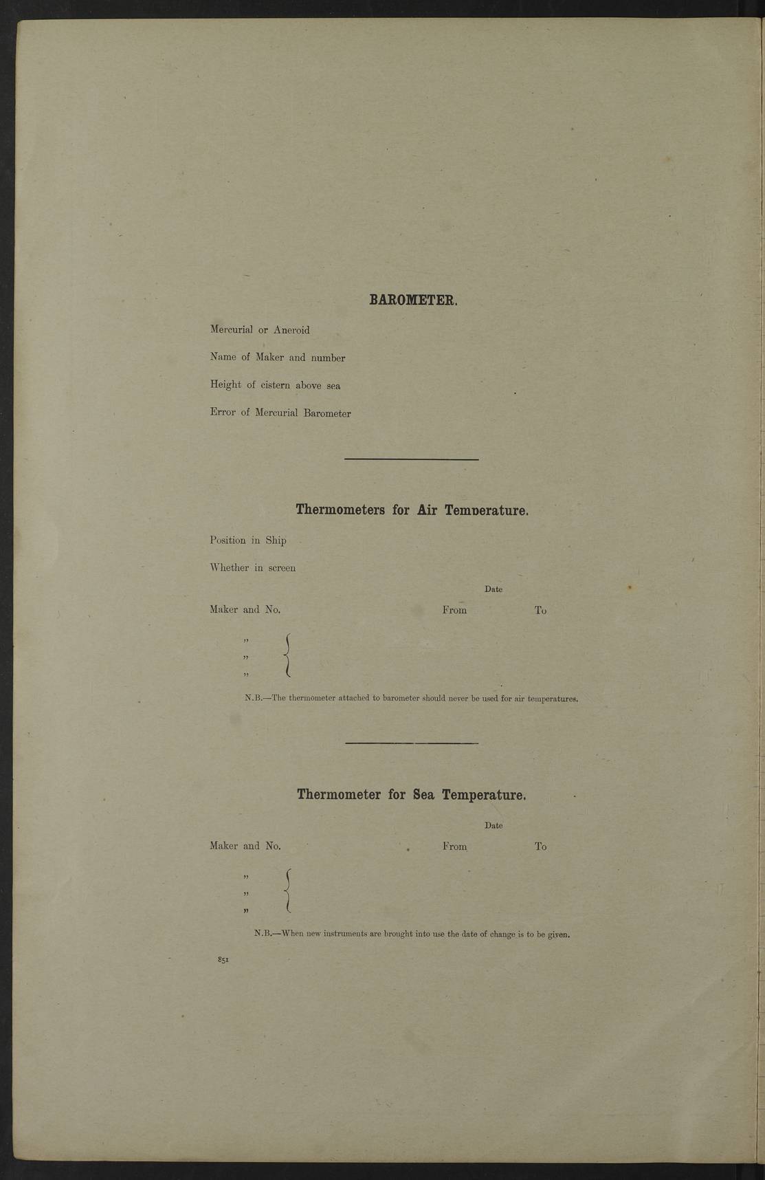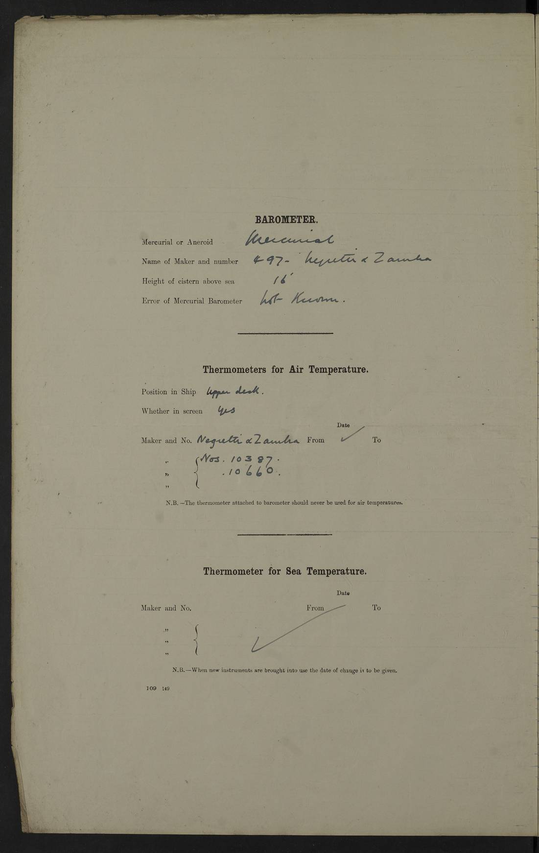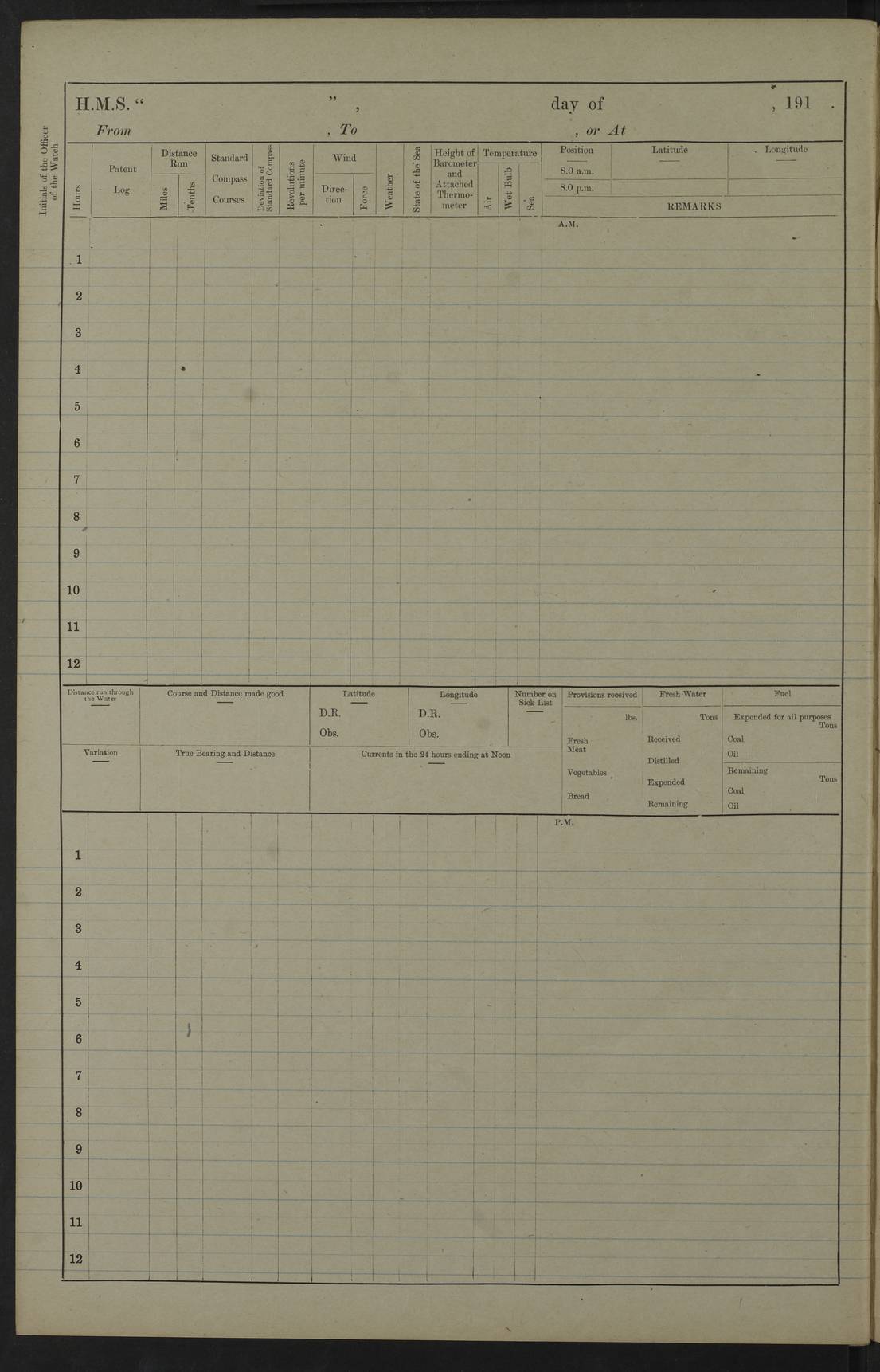 LOGS FOR JANUARY 1917 4caf84b6cadfd34197009935: (http://oldweather.s3.amazonaws.com/ADM53-36574/ADM 53-36574-143_1.jpg) [Cover of Log for January 1917; “I certify that this is a complete copy of the original Log” (“a complete copy of” crossed through), signed by EC Stubbs, Commander N [Navigator], Navigating Officer] 4caf84b6cadfd34197009936: (http://oldweather.s3.amazonaws.com/ADM53-36574/ADM 53-36574-144_0.jpg) [Blank page] 4caf84b6cadfd34197009937: (http://oldweather.s3.amazonaws.com/ADM53-36574/ADM 53-36574-144_1.jpg) [Page not filled in but signed by CR de C Foot, Captain [Cunningham Robert de Clare Foot], 1 February 1917] 4caf84b6cadfd34197009938: (http://oldweather.s3.amazonaws.com/ADM53-36574/ADM 53-36574-145_0.jpg) [Details of Barometer and Thermometers]