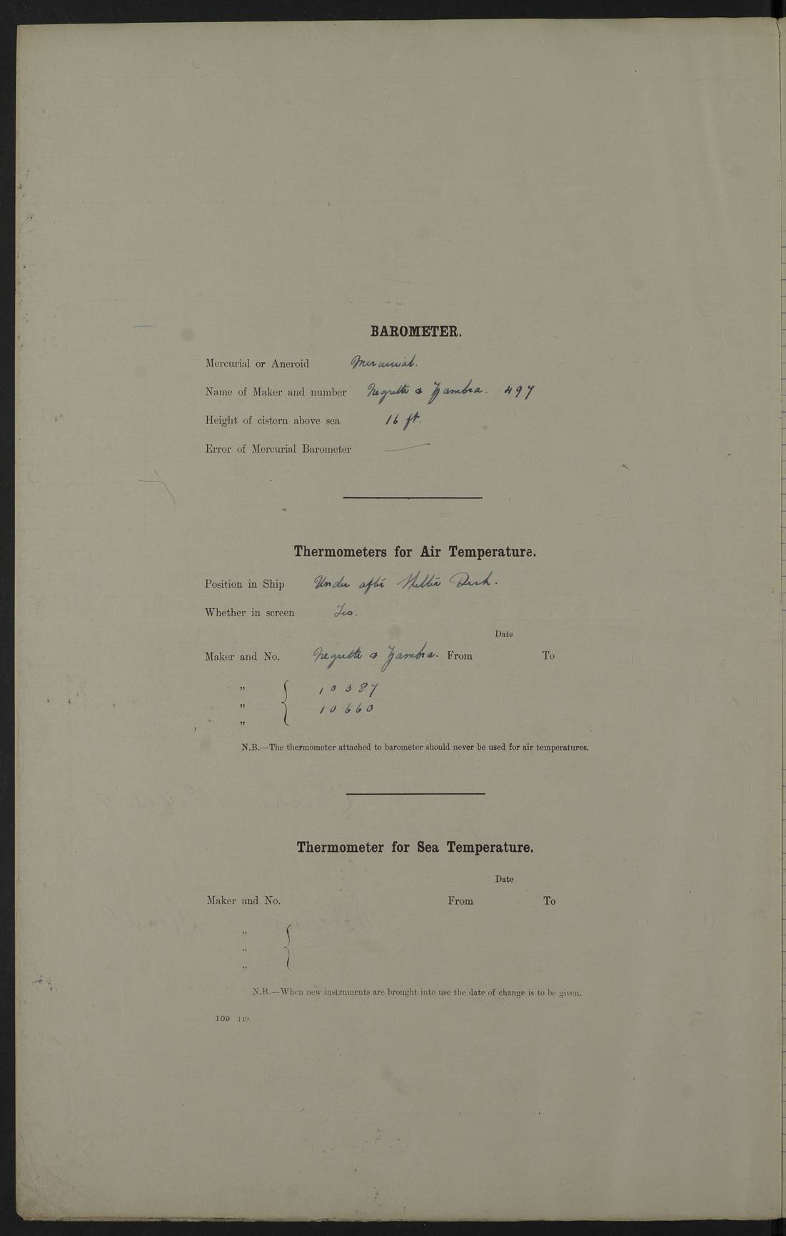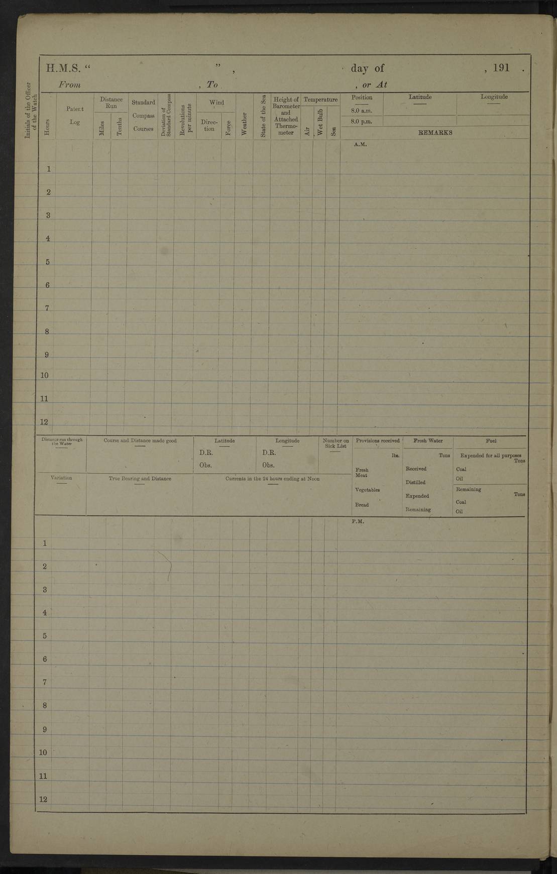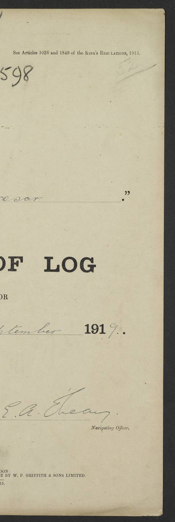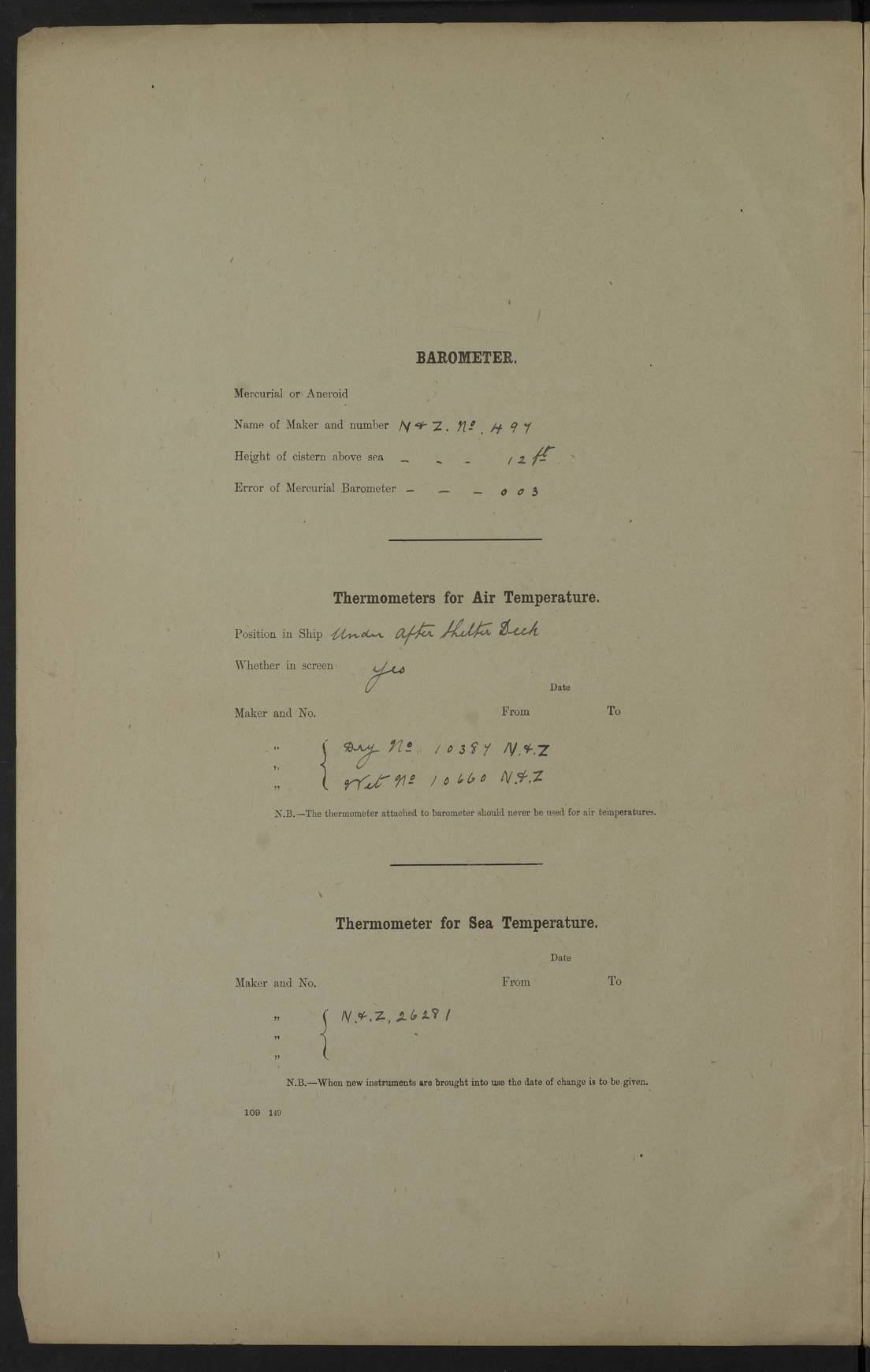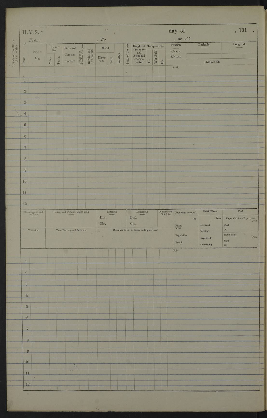 LOGS FOR JANUARY 1917 4caf84b6cadfd34197009935: (http://oldweather.s3.amazonaws.com/ADM53-36574/ADM 53-36574-143_1.jpg) [Cover of Log for January 1917; “I certify that this is a complete copy of the original Log” (“a complete copy of” crossed through), signed by EC Stubbs, Commander N [Navigator], Navigating Officer] 4caf84b6cadfd34197009936: (http://oldweather.s3.amazonaws.com/ADM53-36574/ADM 53-36574-144_0.jpg) [Blank page] 4caf84b6cadfd34197009937: (http://oldweather.s3.amazonaws.com/ADM53-36574/ADM 53-36574-144_1.jpg) [Page not filled in but signed by CR de C Foot, Captain [Cunningham Robert de Clare Foot], 1 February 1917] 4caf84b6cadfd34197009938: (http://oldweather.s3.amazonaws.com/ADM53-36574/ADM 53-36574-145_0.jpg) [Details of Barometer and Thermometers]