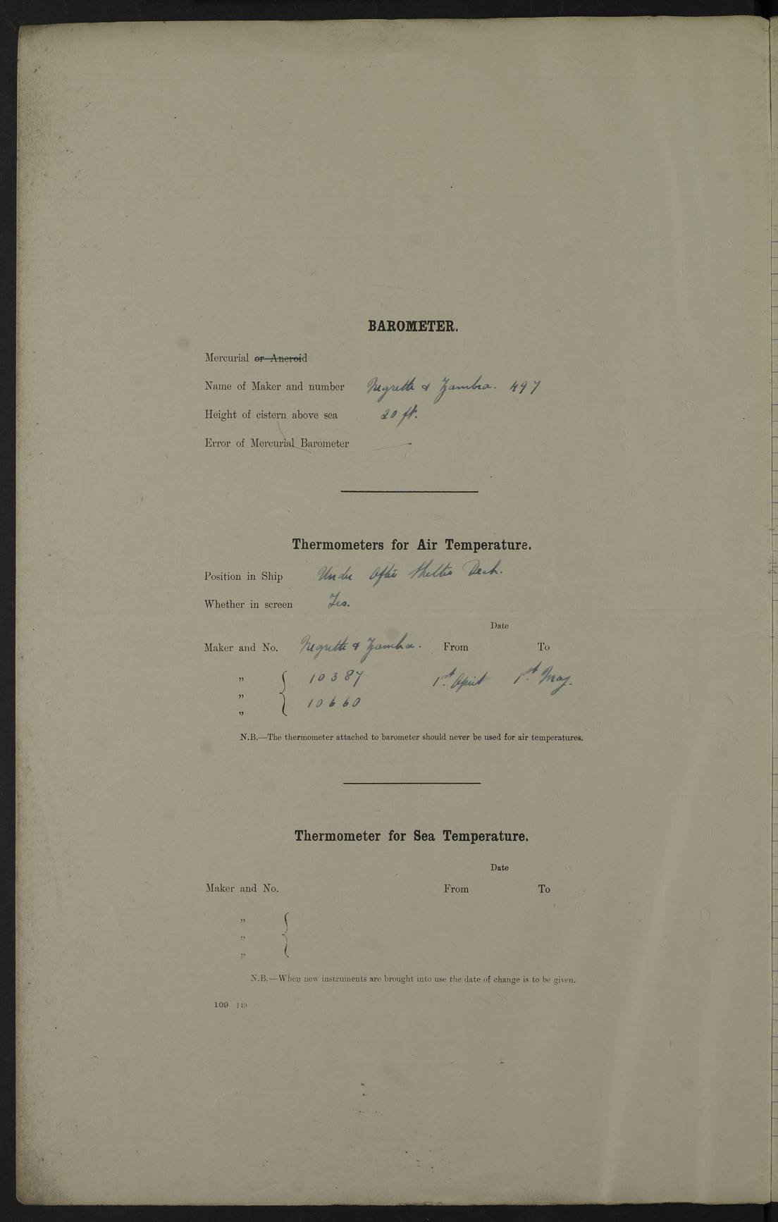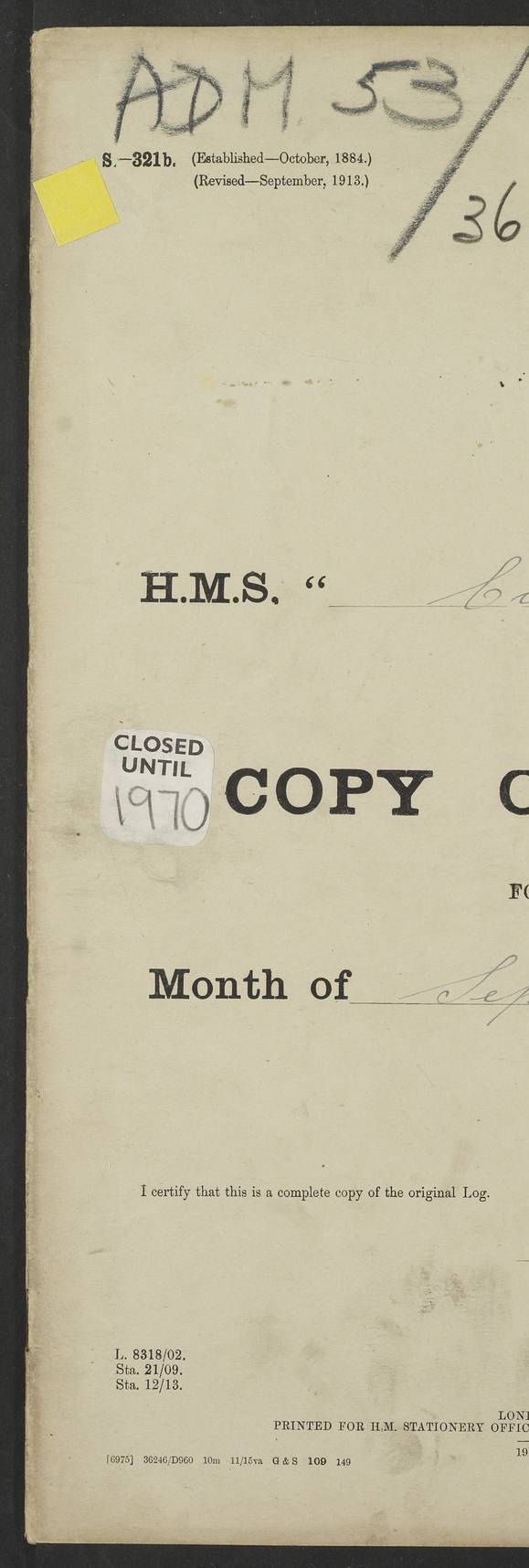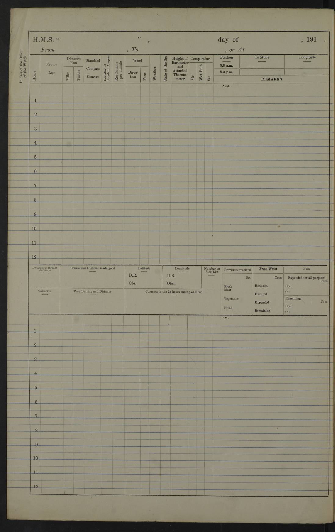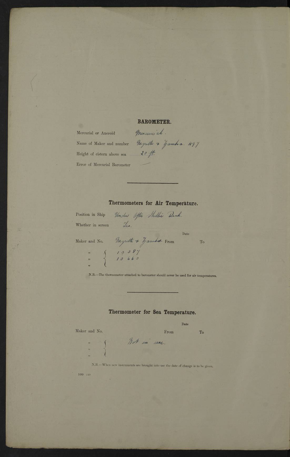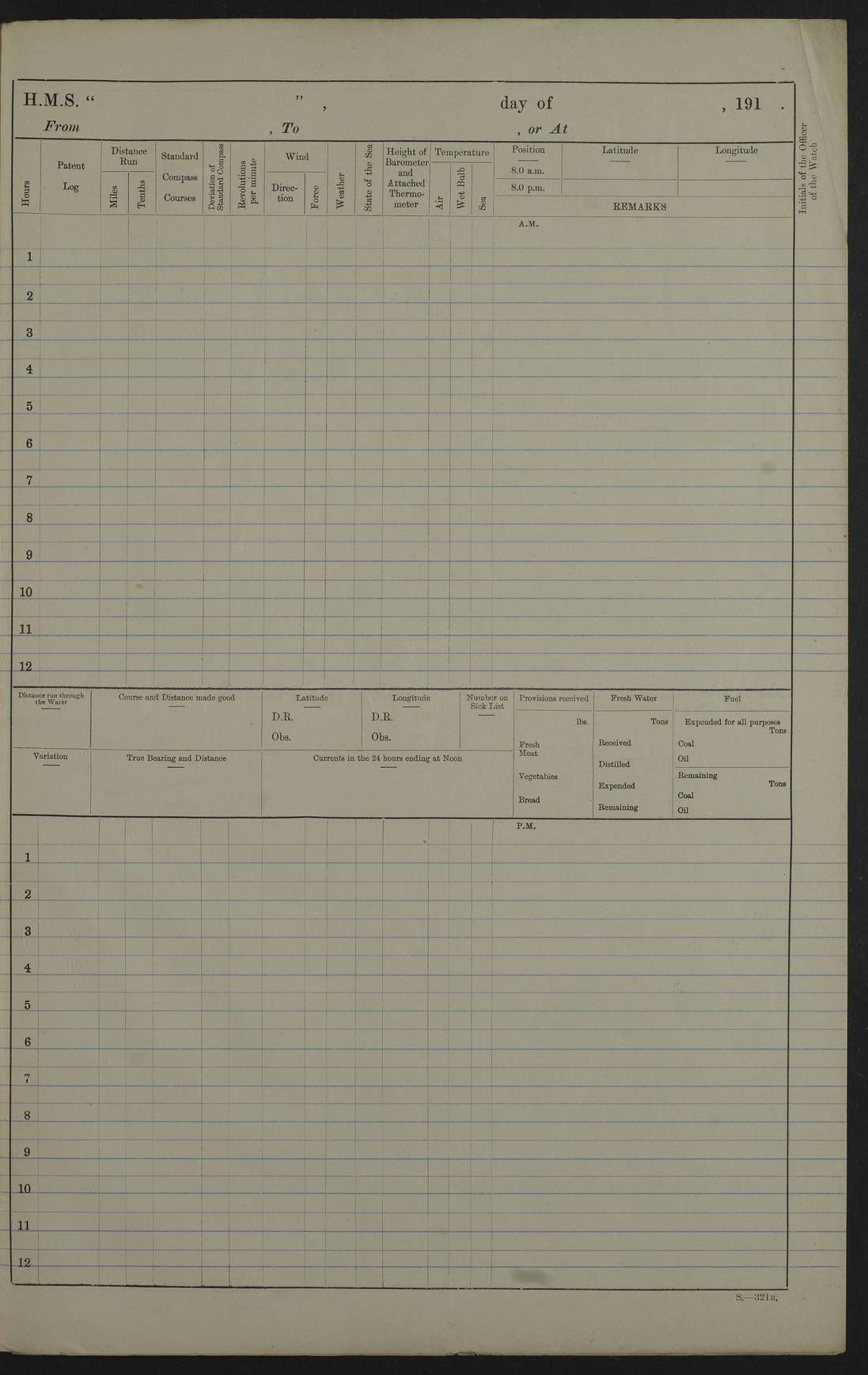 LOGS FOR JANUARY 1917 4caf84b6cadfd34197009935: (http://oldweather.s3.amazonaws.com/ADM53-36574/ADM 53-36574-143_1.jpg) [Cover of Log for January 1917; “I certify that this is a complete copy of the original Log” (“a complete copy of” crossed through), signed by EC Stubbs, Commander N [Navigator], Navigating Officer] 4caf84b6cadfd34197009936: (http://oldweather.s3.amazonaws.com/ADM53-36574/ADM 53-36574-144_0.jpg) [Blank page] 4caf84b6cadfd34197009937: (http://oldweather.s3.amazonaws.com/ADM53-36574/ADM 53-36574-144_1.jpg) [Page not filled in but signed by CR de C Foot, Captain [Cunningham Robert de Clare Foot], 1 February 1917] 4caf84b6cadfd34197009938: (http://oldweather.s3.amazonaws.com/ADM53-36574/ADM 53-36574-145_0.jpg) [Details of Barometer and Thermometers]