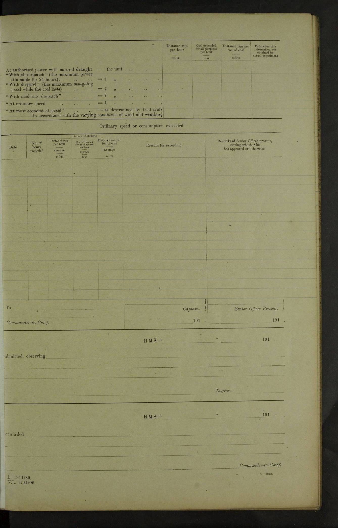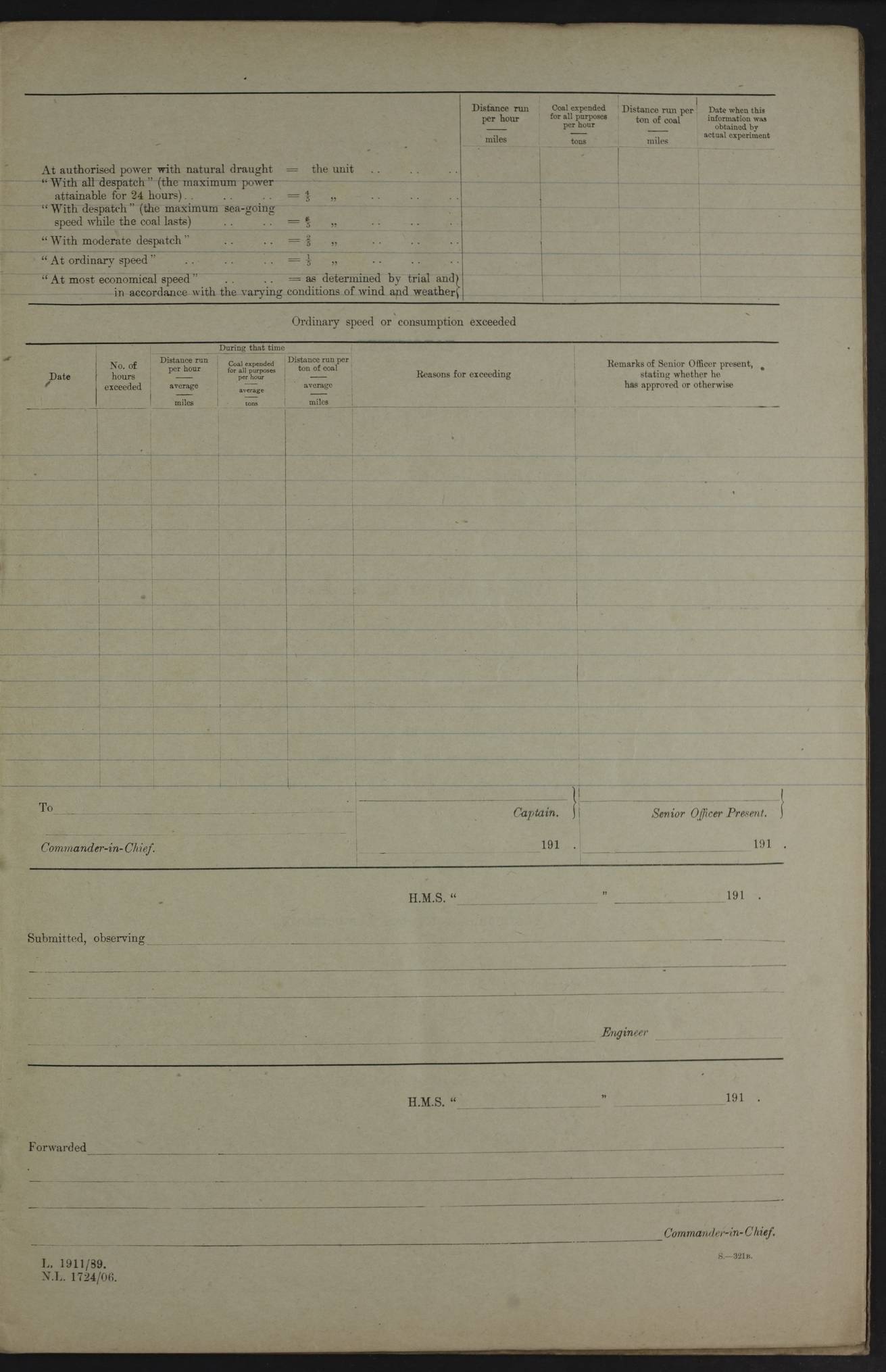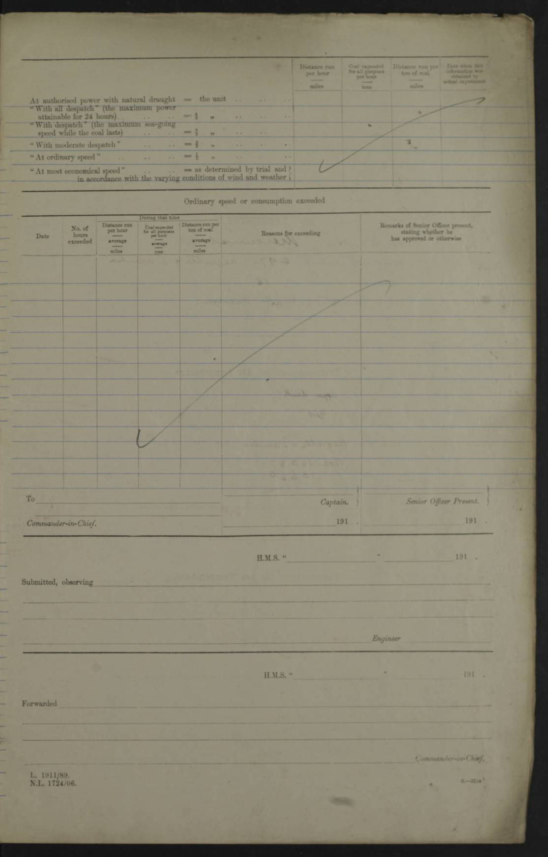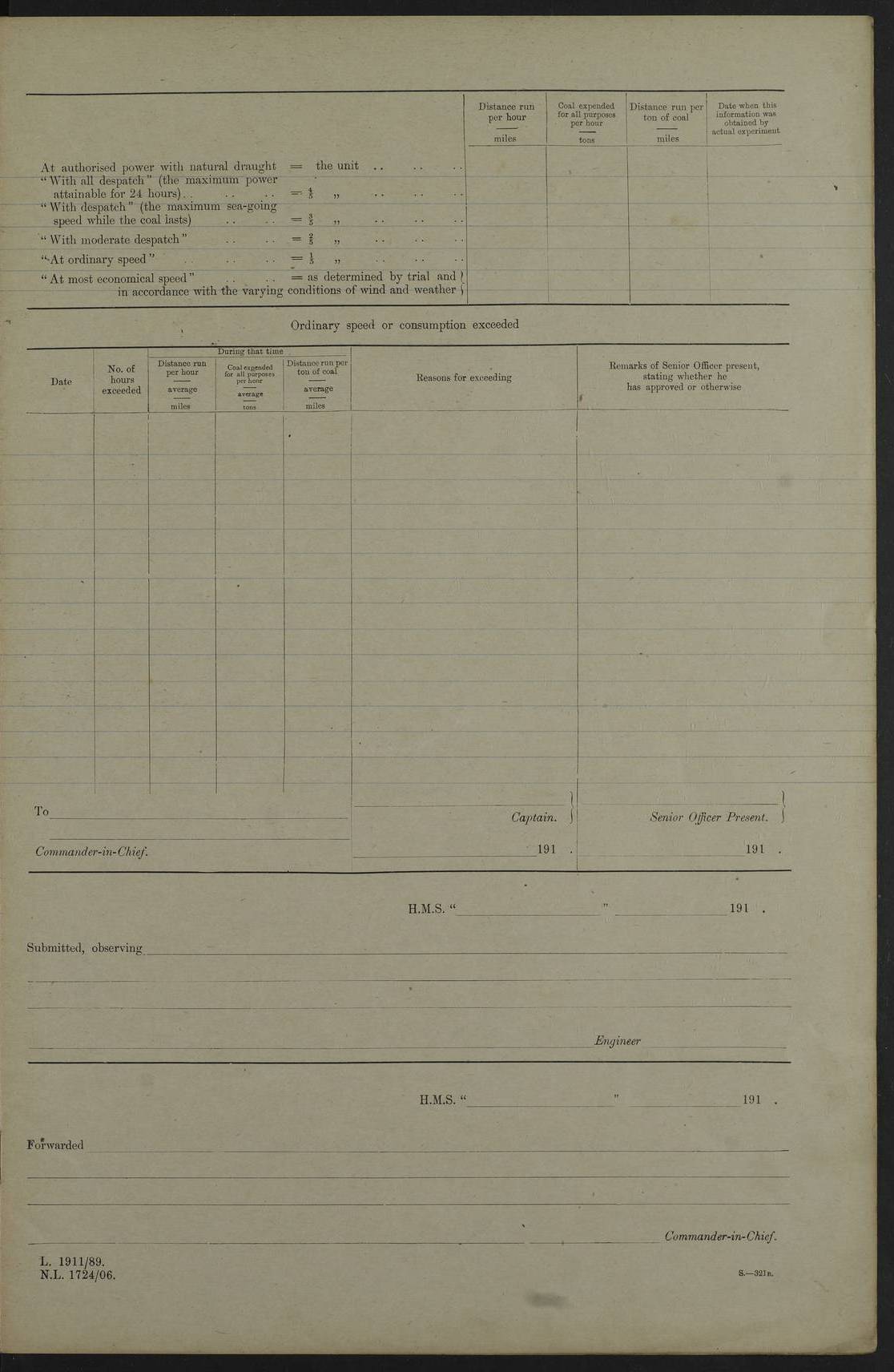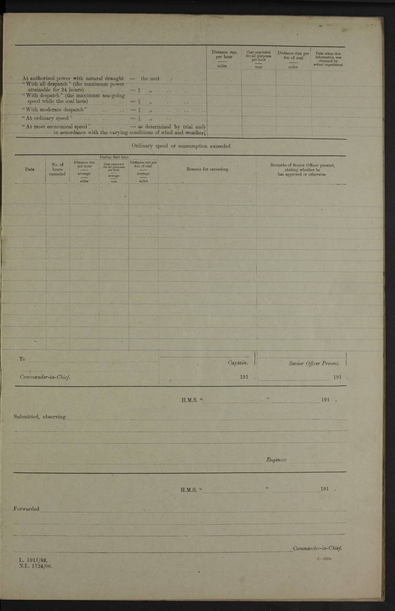 4edebb7b14d0450578000168: (https://s3.amazonaws.com:443/oldweather/ADM53-36589/0003_1.jpg) 1 November 1918 At Malta Lat 35.89, Long 14.52 [Somerset Wharf] 11.15am: Engineers Store Party returned on Board. 0.45pm: Paid Monthly Money. 1.0pm: Mr Goss, Gunner rejoined Ship from RN Hospital. 2.30pm: Gave Special leave to Port Watch untill 7.0am and Port Watch of Boys untill 6.0pm. Hands Made [sic] and Mend Clothes. 2.40pm: Landed liberty Men and Boys. 3.50pm: Provision Boat came alongside. 4.10pm: (4) Recovered Patients rejoined Ship from RN Hospital. 4.30pm: Landed liberty Men and Patrol. 6.0pm: Liberty Boys Returned on Board. 6.30pm: Canteen Party landed untill 10.0pm and Read Warrant No (24). 10.0pm: Canteen Party returned on Board. 11.50pm: Patrol returned on Board. [Provisions received: Fresh Meat 300 lbs, Vegetables 1000 lbs, Bread 450 lbs] 4edebb7c14d0450578000169: (https://s3.amazonaws.com:443/oldweather/ADM53-36589/0004_0.jpg) 2 November 1918 At Malta Lat 35.89, Long 14.52 [Hamilton Wharf] 7.15am: Shifted Berths from Somerset Wharf, to Hamilton Wharf. 8.0am: Tested life Buoys Correct. 8.45am: BW for x Told off Special Parties, Remainder of Hands employed as Requisite, and Landed Picket house Party. 9.10am: Held Court Martial on Board. 10.30am: Court Martial Finished. Noon: Picket House Party returned. 1.20pm: BW for x. Told off Special Parties. Remainder of Hands employed getting in Paymasters Stores and as Requisite. Lost overboard by accident Boat Hooks, Steel, Pattern (345), 2 in Number. 4.20pm: Hands to Fire Stations. 4.35pm: Read Warrant No 25 and gave Special leave to Starboard Watch untill 7.0am. 5.0pm: Landed liberty Men and Victualling Yard Lighter left Ship. 6.30pm: Canteen Party landed untill 10.0pm. [Provisions received: Fresh Meat 260 lbs, Bread 900 lbs] 4edebb7c14d045057800016a: (https://s3.amazonaws.com:443/oldweather/ADM53-36589/0004_1.jpg) 3 November 1918 At Malta Lat 35.89, Long 14.52 [Hamilton Wharf] 9.0am: Landed Church Parties, Wesleyans (14), Presbyterians (10). 9.30am: Divisions. 9.50am: Landed Roman Catholics (15). 10.10am: Discharged (5) Ratings to RN Hospital. 11.35am: All Church Parties returned on Board. 1.0pm: Gave Special leave to Port Watch untill 7.0am and Both Watches of Boys untill 5.30pm. 1.15pm: Landed liberty Men and Boys. 5.30pm: Liberty Boys returned on Board. 6.30pm: Canteen Party landed untill 10.0pm. 8.40pm: Closed B and C Doors. 10.0pm: Canteen Party returned on Board. [Number on sick list: 5] [Provisions received: Fresh Meat 280 lbs] 4edebb7c14d045057800016b: (https://s3.amazonaws.com:443/oldweather/ADM53-36589/0005_0.jpg) 4 November 1918 At Malta Lat 35.89, Long 14.52 [Hamilton Wharf] 6.50am: BW for x Told off Special Parties, remainder of Hands employed as Requisite. 7.0am: Liberty men returned on Board. 8.5am: Provision lighter came alongside. 8.10am: BW for x, Told off Special Parties, remainder of Hands employed Provisioning Ship and as requisite. 8.45am: Landed (1) Carpenter rating for Examination. 3.45pm: (2) Recovered Patients joined Ship from RN Hospital. 4.10pm: Received 8 Bags of Mails from Egmont, and Gave Special leave to Starboard Watch till 7.0am. 5.0pm: Landed Liberty Men and Patrol. 6.0pm: Hands employed getting in and stowing away Provisions. Midnight: Patrol returned on Board. [Weather fine, noon temperature 74F] 4edebb7c14d045057800016c: (https://s3.amazonaws.com:443/oldweather/ADM53-36589/0005_1.jpg) 5 November 1918 At Malta Lat 35.89, Long 14.52 [Hamilton Wharf] 6.45am: BW for x. Told off Special Parties. Remainder of Hands employed getting in and stowing away Provisions. 8.30am: Landed Hospital Party and Picket House Party. 11.0am: Landed (35) Rifles to Naval Ordinance for exchange. Noon: Picket House Party returned. 1.20pm: Landed (2) Ratings for Dental Treatment. 2.25pm: (35) Exchanged Rifles came on Board. 3.40pm: (2) Recovered Patients rejoined Ship from RN Hospital and disinfected Bedding. 4.0pm: Gave Special leave to Port Watch untill 7.0am. Starboard Watch employed stowing Provisions. 4.30pm: Landed Liberty men. Starboard Watch employed stowing away Provisions and Read Warrant No (26). [Provisions received: Fresh Meat 530 lbs, Bread 1000 lbs] 4edebb7c14d045057800016d: (https://s3.amazonaws.com:443/oldweather/ADM53-36589/0006_0.jpg) 6 November 1918 At Malta Lat 35.89, Long 14.52 [Hamilton Wharf] 6.50am: BW for x. Told off Special Parties, Remainder of Port Watch stowing Provisions, Starboard Watch drawing Quarter Deck Awning. 9.0am: Hands employed Provisioning Ship. 4.0pm: Gave Special leave to Starboard Watch untill 7.0am. 4.30pm: Landed liberty Men. Port Watch employed stowing away Provisions. 6.30pm: Canteen Party landed until 10.0pm. 10.0pm: Canteen Party returned on Board. [Number on sick list: 5] [Provisions received: Fresh Meat 250 lbs, Vegetables 1000 lbs, Bread 450 lbs] [Fuel Remaining: Coal 244 tons, Oil 332 tons] 4edebb7c14d045057800016e: (https://s3.amazonaws.com:443/oldweather/ADM53-36589/0006_1.jpg) 7 November 1918 At Malta Lat 35.89, Long 14.52 [No 4 Buoy] 6.30am: BW for x. Told off Special Parties. Remainder of Hands employed prepairing [preparing] Ship to Shift Berths, from Hamilton Wharf to No 4 Buoy. 7.0am: Liberty men returned on Board. 8.50am: Secured Ship to No 4 Buoy and Coal Lighters came alongside. 9.10am: Commenced Coaling Native labour. Hands employed Drawing Stores and as Requisite. 11.50am: Dockyard Parties returned. 1.40pm: BW for x Told off Special Parties, remainder of Hands employed as Requisite. 4.30pm: Gave Special leave to Port Watch untill 7.0am. 4.45pm: Landed liberty men and Patrol and Read Warrant No (27). 7.30pm: Completed Coaling (1481) Tons. 8.40pm: Watch employed sweeping down. 11.50pm: Patrol returned on Board. [Number on sick list: 6] [Provisions received: Fresh Meat 280 lbs, Bread 300 lbs] [Fuel Remaining: Coal 1716 tons, Oil 332 tons] 4edebb7c14d045057800016f: (https://s3.amazonaws.com:443/oldweather/ADM53-36589/0007_0.jpg) 8 November 1918 At Malta Lat 35.89, Long 