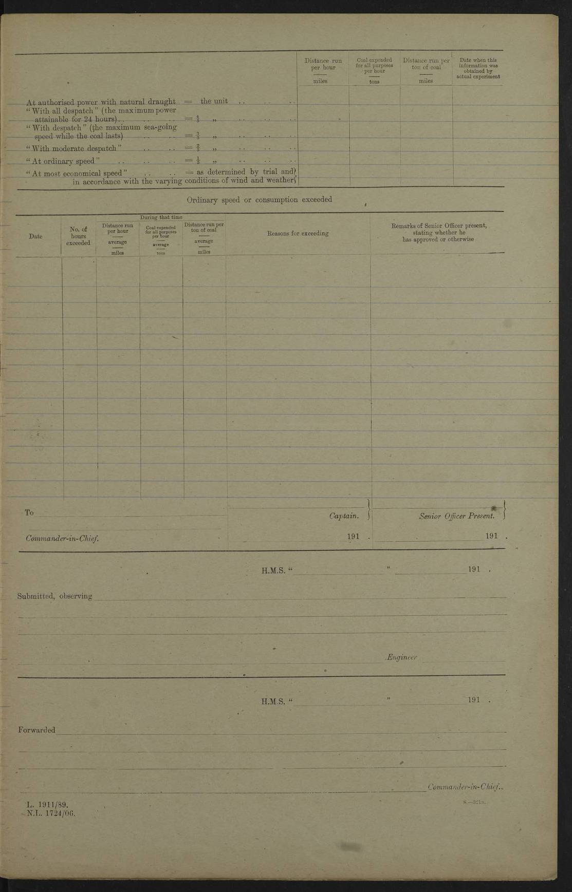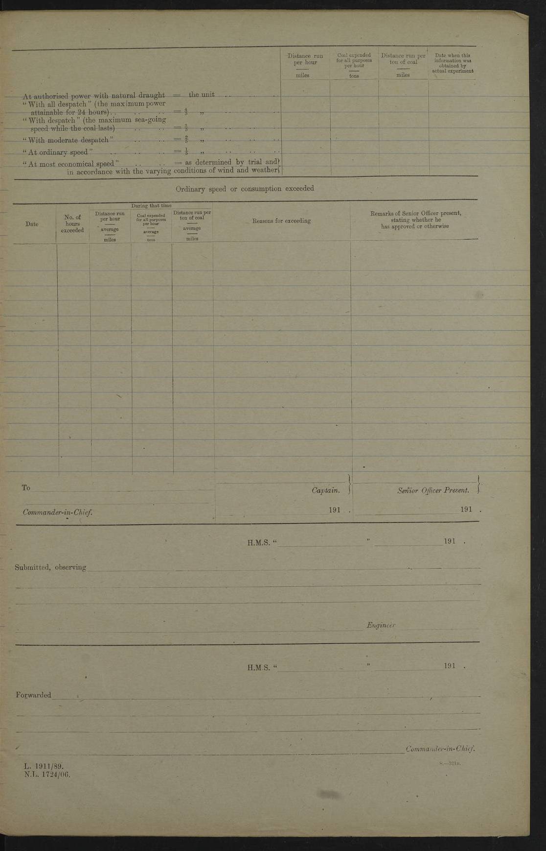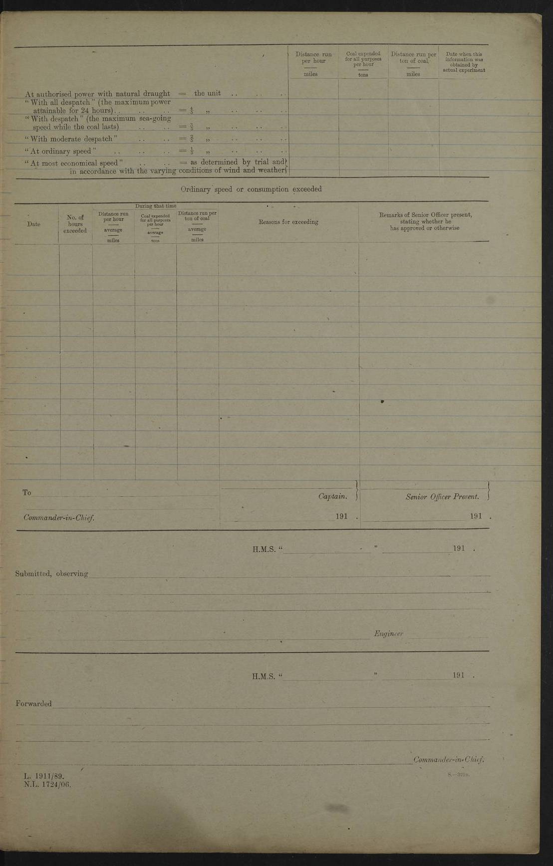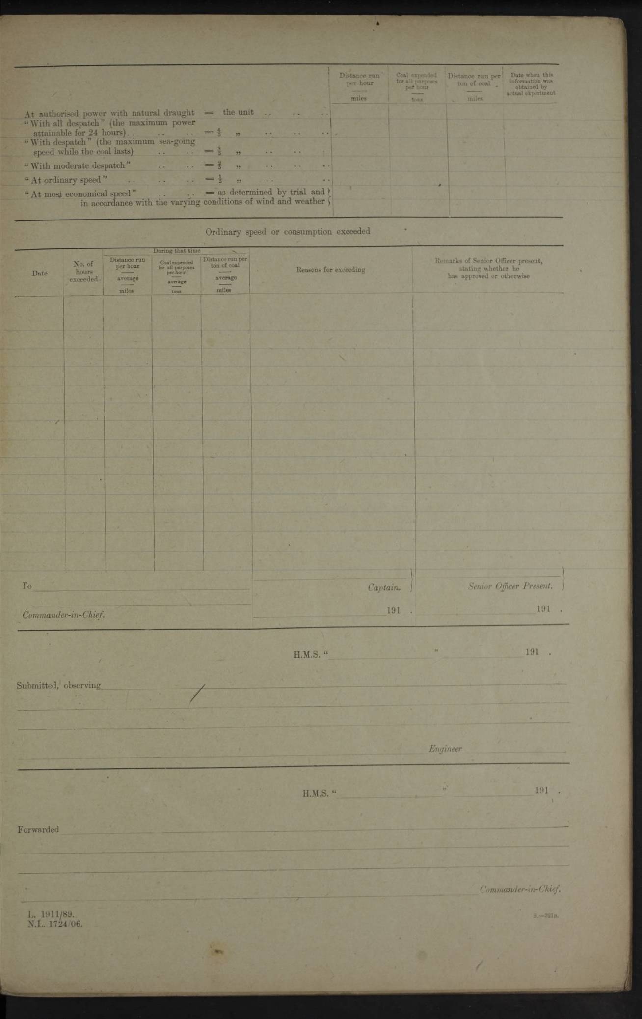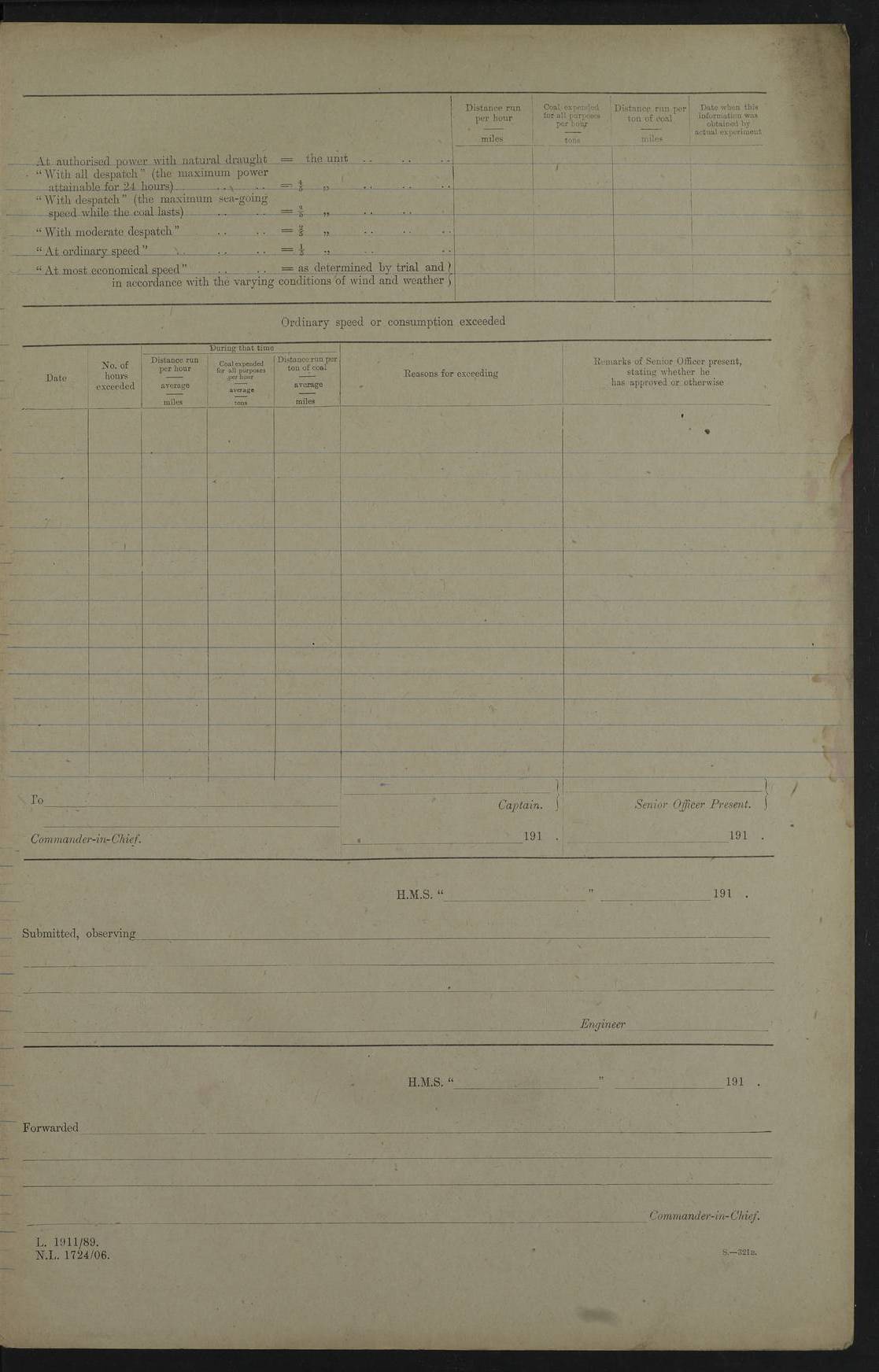 4edebb7b14d0450578000168: (https://s3.amazonaws.com:443/oldweather/ADM53-36589/0003_1.jpg) 1 November 1918 At Malta Lat 35.89, Long 14.52 [Somerset Wharf] 11.15am: Engineers Store Party returned on Board. 0.45pm: Paid Monthly Money. 1.0pm: Mr Goss, Gunner rejoined Ship from RN Hospital. 2.30pm: Gave Special leave to Port Watch untill 7.0am and Port Watch of Boys untill 6.0pm. Hands Made [sic] and Mend Clothes. 2.40pm: Landed liberty Men and Boys. 3.50pm: Provision Boat came alongside. 4.10pm: (4) Recovered Patients rejoined Ship from RN Hospital. 4.30pm: Landed liberty Men and Patrol. 6.0pm: Liberty Boys Returned on Board. 6.30pm: Canteen Party landed untill 10.0pm and Read Warrant No (24). 10.0pm: Canteen Party returned on Board. 11.50pm: Patrol returned on Board. [Provisions received: Fresh Meat 300 lbs, Vegetables 1000 lbs, Bread 450 lbs] 4edebb7c14d0450578000169: (https://s3.amazonaws.com:443/oldweather/ADM53-36589/0004_0.jpg) 2 November 1918 At Malta Lat 35.89, Long 14.52 [Hamilton Wharf] 7.15am: Shifted Berths from Somerset Wharf, to Hamilton Wharf. 8.0am: Tested life Buoys Correct. 8.45am: BW for x Told off Special Parties, Remainder of Hands employed as Requisite, and Landed Picket house Party. 9.10am: Held Court Martial on Board. 10.30am: Court Martial Finished. Noon: Picket House Party returned. 1.20pm: BW for x. Told off Special Parties. Remainder of Hands employed getting in Paymasters Stores and as Requisite. Lost overboard by accident Boat Hooks, Steel, Pattern (345), 2 in Number. 4.20pm: Hands to Fire Stations. 4.35pm: Read Warrant No 25 and gave Special leave to Starboard Watch untill 7.0am. 5.0pm: Landed liberty Men and Victualling Yard Lighter left Ship. 6.30pm: Canteen Party landed untill 10.0pm. [Provisions received: Fresh Meat 260 lbs, Bread 900 lbs] 4edebb7c14d045057800016a: (https://s3.amazonaws.com:443/oldweather/ADM53-36589/0004_1.jpg) 3 November 1918 At Malta Lat 35.89, Long 14.52 [Hamilton Wharf] 9.0am: Landed Church Parties, Wesleyans (14), Presbyterians (10). 9.30am: Divisions. 9.50am: Landed Roman Catholics (15). 10.10am: Discharged (5) Ratings to RN Hospital. 11.35am: All Church Parties returned on Board. 1.0pm: Gave Special leave to Port Watch untill 7.0am and Both Watches of Boys untill 5.30pm. 1.15pm: Landed liberty Men and Boys. 5.30pm: Liberty Boys returned on Board. 6.30pm: Canteen Party landed untill 10.0pm. 8.40pm: Closed B and C Doors. 10.0pm: Canteen Party returned on Board. [Number on sick list: 5] [Provisions received: Fresh Meat 280 lbs] 4edebb7c14d045057800016b: (https://s3.amazonaws.com:443/oldweather/ADM53-36589/0005_0.jpg) 4 November 1918 At Malta Lat 35.89, Long 14.52 [Hamilton Wharf] 6.50am: BW for x Told off Special Parties, remainder of Hands employed as Requisite. 7.0am: Liberty men returned on Board. 8.5am: Provision lighter came alongside. 8.10am: BW for x, Told off Special Parties, remainder of Hands employed Provisioning Ship and as requisite. 8.45am: Landed (1) Carpenter rating for Examination. 3.45pm: (2) Recovered Patients joined Ship from RN Hospital. 4.10pm: Received 8 Bags of Mails from Egmont, and Gave Special leave to Starboard Watch till 7.0am. 5.0pm: Landed Liberty Men and Patrol. 6.0pm: Hands employed getting in and stowing away Provisions. Midnight: Patrol returned on Board. [Weather fine, noon temperature 74F] 4edebb7c14d045057800016c: (https://s3.amazonaws.com:443/oldweather/ADM53-36589/0005_1.jpg) 5 November 1918 At Malta Lat 35.89, Long 14.52 [Hamilton Wharf] 6.45am: BW for x. Told off Special Parties. Remainder of Hands employed getting in and stowing away Provisions. 8.30am: Landed Hospital Party and Picket House Party. 11.0am: Landed (35) Rifles to Naval Ordinance for exchange. Noon: Picket House Party returned. 1.20pm: Landed (2) Ratings for Dental Treatment. 2.25pm: (35) Exchanged Rifles came on Board. 3.40pm: (2) Recovered Patients rejoined Ship from RN Hospital and disinfected Bedding. 4.0pm: Gave Special leave to Port Watch untill 7.0am. Starboard Watch employed stowing Provisions. 4.30pm: Landed Liberty men. Starboard Watch employed stowing away Provisions and Read Warrant No (26). [Provisions received: Fresh Meat 530 lbs, Bread 1000 lbs] 4edebb7c14d045057800016d: (https://s3.amazonaws.com:443/oldweather/ADM53-36589/0006_0.jpg) 6 November 1918 At Malta Lat 35.89, Long 14.52 [Hamilton Wharf] 6.50am: BW for x. Told off Special Parties, Remainder of Port Watch stowing Provisions, Starboard Watch drawing Quarter Deck Awning. 9.0am: Hands employed Provisioning Ship. 4.0pm: Gave Special leave to Starboard Watch untill 7.0am. 4.30pm: Landed liberty Men. Port Watch employed stowing away Provisions. 6.30pm: Canteen Party landed until 10.0pm. 10.0pm: Canteen Party returned on Board. [Number on sick list: 5] [Provisions received: Fresh Meat 250 lbs, Vegetables 1000 lbs, Bread 450 lbs] [Fuel Remaining: Coal 244 tons, Oil 332 tons] 4edebb7c14d045057800016e: (https://s3.amazonaws.com:443/oldweather/ADM53-36589/0006_1.jpg) 7 November 1918 At Malta Lat 35.89, Long 14.52 [No 4 Buoy] 6.30am: BW for x. Told off Special Parties. Remainder of Hands employed prepairing [preparing] Ship to Shift Berths, from Hamilton Wharf to No 4 Buoy. 7.0am: Liberty men returned on Board. 8.50am: Secured Ship to No 4 Buoy and Coal Lighters came alongside. 9.10am: Commenced Coaling Native labour. Hands employed Drawing Stores and as Requisite. 11.50am: Dockyard Parties returned. 1.40pm: BW for x Told off Special Parties, remainder of Hands employed as Requisite. 4.30pm: Gave Special leave to Port Watch untill 7.0am. 4.45pm: Landed liberty men and Patrol and Read Warrant No (27). 7.30pm: Completed Coaling (1481) Tons. 8.40pm: Watch employed sweeping down. 11.50pm: Patrol returned on Board. [Number on sick list: 6] [Provisions received: Fresh Meat 280 lbs, Bread 300 lbs] [Fuel Remaining: Coal 1716 tons, Oil 332 tons] 4edebb7c14d045057800016f: (https://s3.amazonaws.com:443/oldweather/ADM53-36589/0007_0.jpg) 8 November 1918 At Malta Lat 35.89, Long 