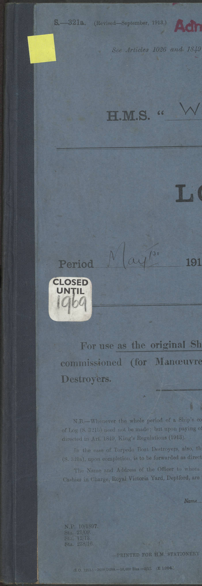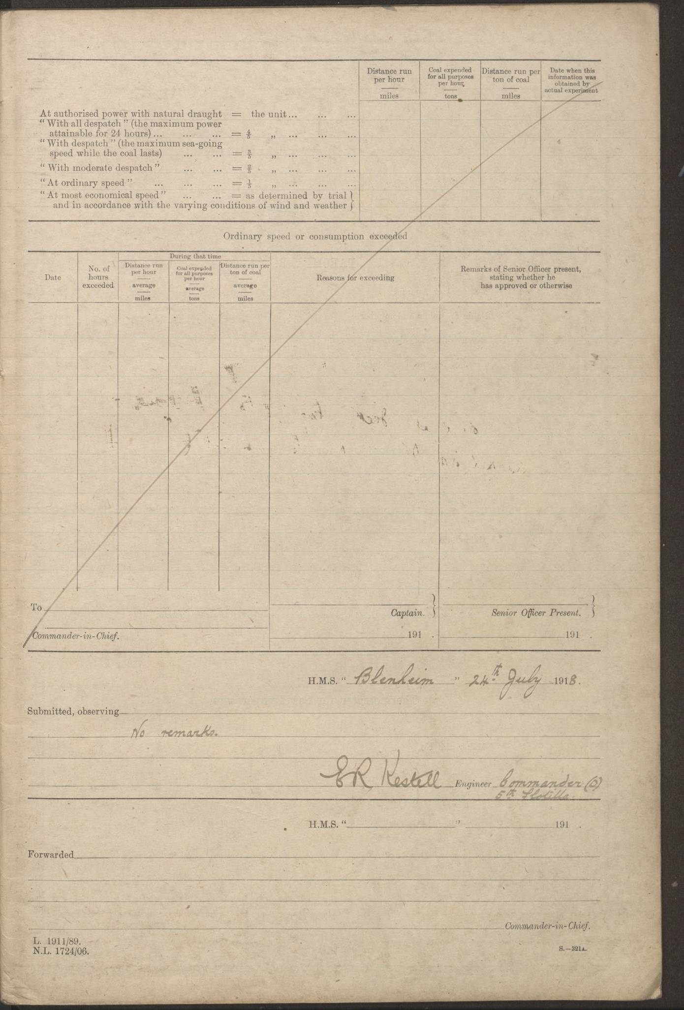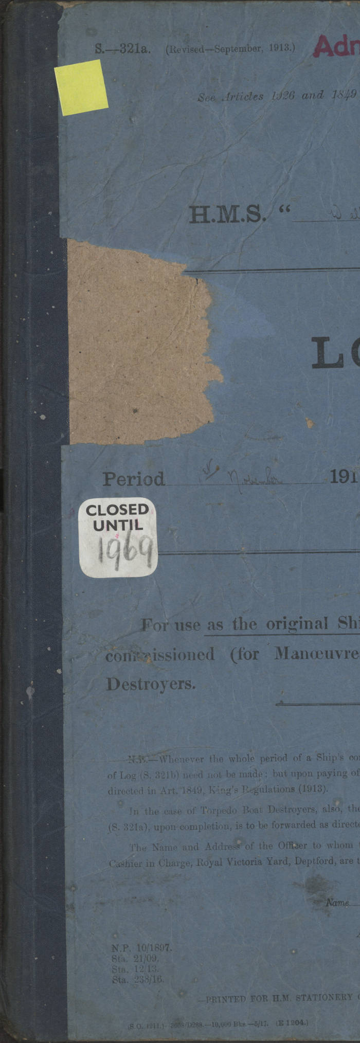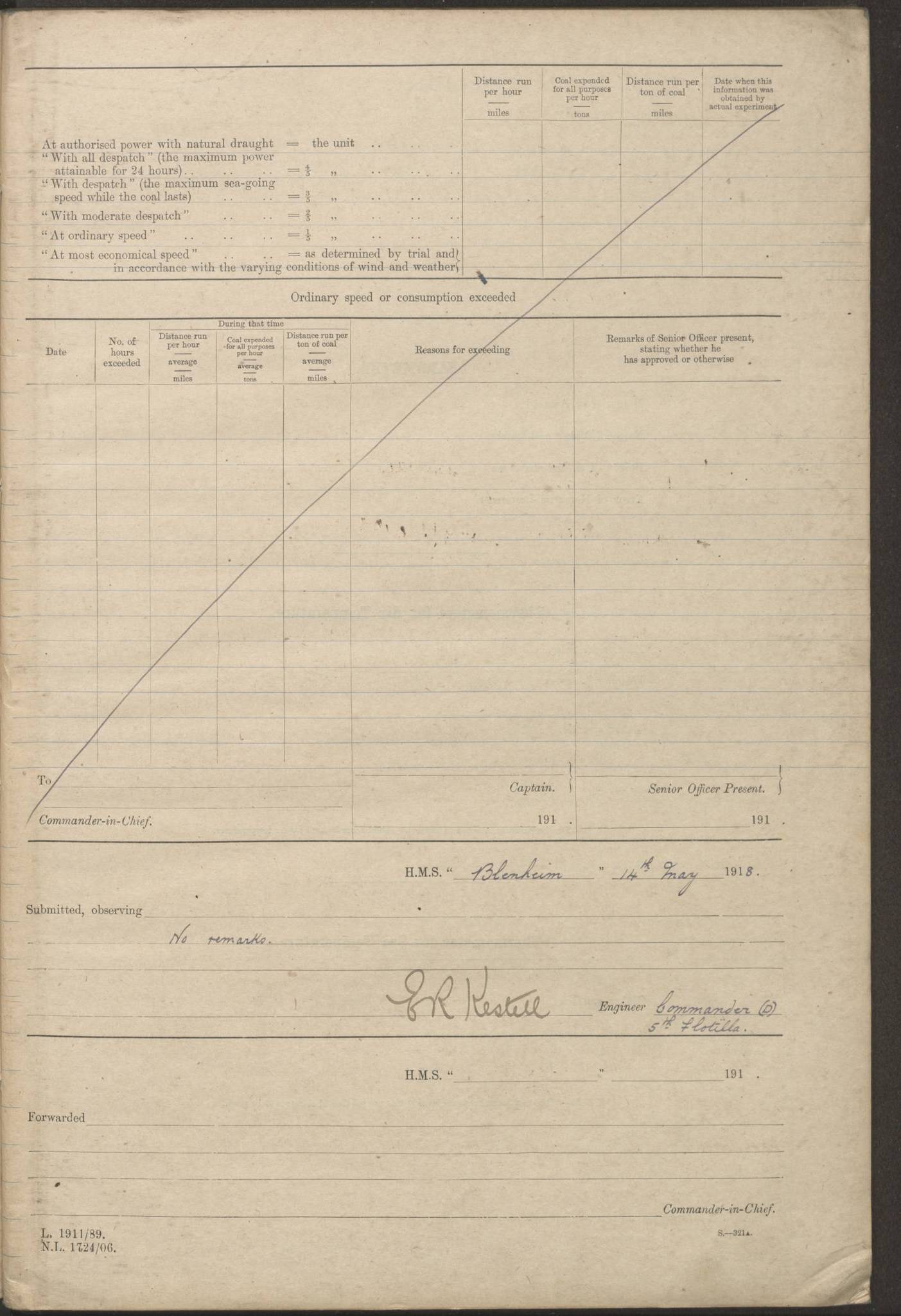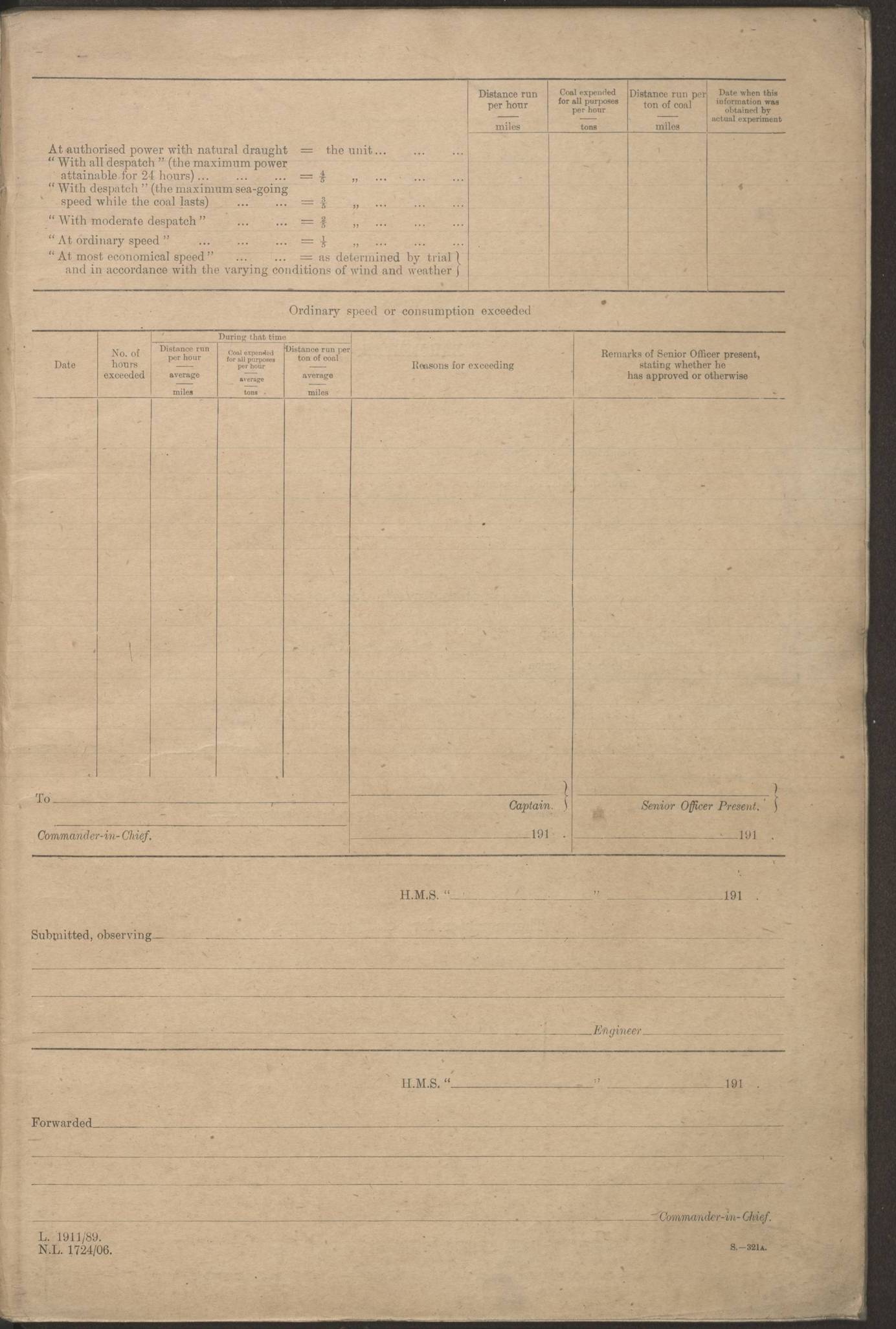 4caf8ca7cadfd341970374b6: (http://oldweather.s3.amazonaws.com/ADM 53-68392/ADM 53-68392-029_0.jpg) 21 February 1919 Gibraltar and at sea Lat 36.15, Long -5.37 11.30am: Slipped and proceeded to sea. Took up position astern of HMS Wear. NW’ly courses, 15 knots. 4caf8ca7cadfd341970374b7: (http://oldweather.s3.amazonaws.com/ADM 53-68392/ADM 53-68392-029_1.jpg) 22 February 1919 At sea to Lisbon Lat 38.7, Long -9.14 1.25am: Cape St Vincent abeam, 7.5 miles, a/c North. 9.30am: Secured to buoy at Lisbon. 4caf8ca7cadfd341970374b8: (http://oldweather.s3.amazonaws.com/ADM 53-68392/ADM 53-68392-030_0.jpg) 23 February 1919 Lisbon and at sea Lat 38.78, Long -9.51 [approx] 10.00am: Slipped from buoy and proceeded to sea astern of HMS Wear. Courses and speeds as requisite. 12.15pm: C Roca abeam. Courses East of North, 4caf8ca7cadfd341970374b9: (http://oldweather.s3.amazonaws.com/ADM 53-68392/ADM 53-68392-030_1.jpg) 24 February 1919 At sea Lat 44.3, Long -8.7 [approx] 7.00am: Hands securing gear on upper deck. [West winds f 5-7] 4caf8ca7cadfd341970374ba: (http://oldweather.s3.amazonaws.com/ADM 53-68392/ADM 53-68392-031_0.jpg) 25 February 1919 At sea to Plymouth Lat 49.5, Long -4.5 [approx] 7.30am: Ushant Light abeam, a/c N38E. 5.00pm: Eddystone Lt abeam. 5.30pm: Made fast to coaling jetty. 4caf8ca7cadfd341970374bb: (http://oldweather.s3.amazonaws.com/ADM 53-68392/ADM 53-68392-031_1.jpg) 26 February 1919 Lat 50.38, Long -4.19 2.30pm: Finished coaling, 60 tons. Washed down decks. Slipped and made fast to buoy. Landed liberty men. 4caf8ca7cadfd341970374bc: (http://oldweather.s3.amazonaws.com/ADM 53-68392/ADM 53-68392-032_0.jpg) 27 February 1919 Devonport to Portsmouth Lat 50.4, Long -2.1 [approx] 7.30am: Proceeded to sea. 8.51am: Eddystone bg N52W, a/c S64E. 10.14am: Start Pt Lt bg North, a/c S87E. 5.30pm: Made fast in upper trot, Portsmouth. 4caf8ca7cadfd341970374bd: (http://oldweather.s3.amazonaws.com/ADM 53-68392/ADM 53-68392-032_1.jpg) 28 February 1919 Portsmouth Lat 50.81, Long -1.11 1.15pm: Hands fall in and prepare to discharge ammunition. 4caf8ca7cadfd341970374be: (http://oldweather.s3.amazonaws.com/ADM 53-68392/ADM 53-68392-033_0.jpg) 4caf8ca7cadfd341970374be: (http://oldweather.s3.amazonaws.com/ADM 53-68392/ADM 53-68392-033_0.jpg) Above two pages blank. 4caf8ca7cadfd341970374bf: (http://oldweather.s3.amazonaws.com/ADM 53-68392/ADM 53-68392-033_1.jpg) Portsmouth Lat 50.81, Long -1.11 From 1st March to 29th March prepared ship for disposal and returned ammunition and stores. Paid off 29th March 1919, Portsmouth. 4caf8ca7cadfd341970374c0: (http://oldweather.s3.amazonaws.com/ADM 53-68392/ADM 53-68392-034_0.jpg) 4caf8ca7cadfd341970374c1: (http://oldweather.s3.amazonaws.com/ADM 53-68392/ADM 53-68392-034_1.jpg) 4caf8ca7cadfd341970374c2: (http://oldweather.s3.amazonaws.com/ADM 53-68392/ADM 53-68392-035_0.jpg) 4caf8ca7cadfd341970374c3: (http://oldweather.s3.amazonaws.com/ADM 53-68392/ADM 53-68392-035_1.jpg) Above four pages blank. |