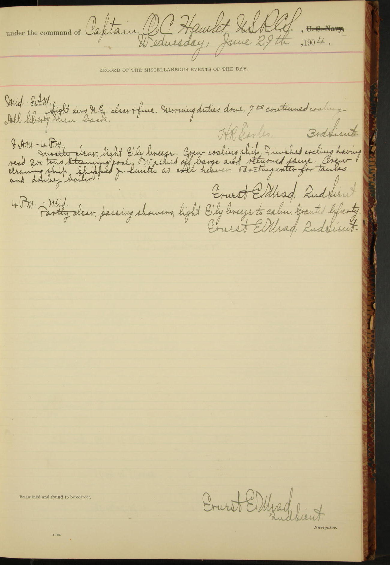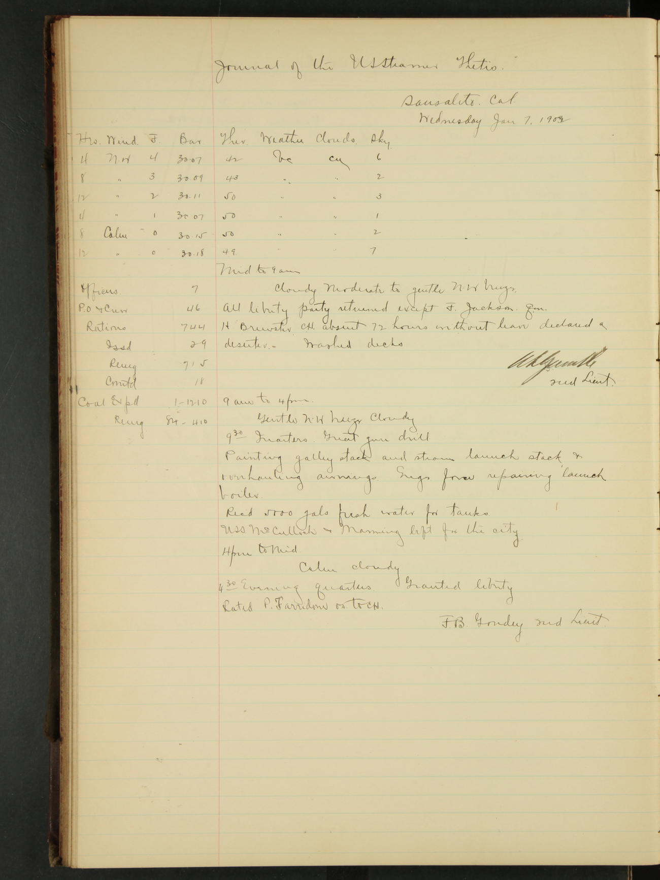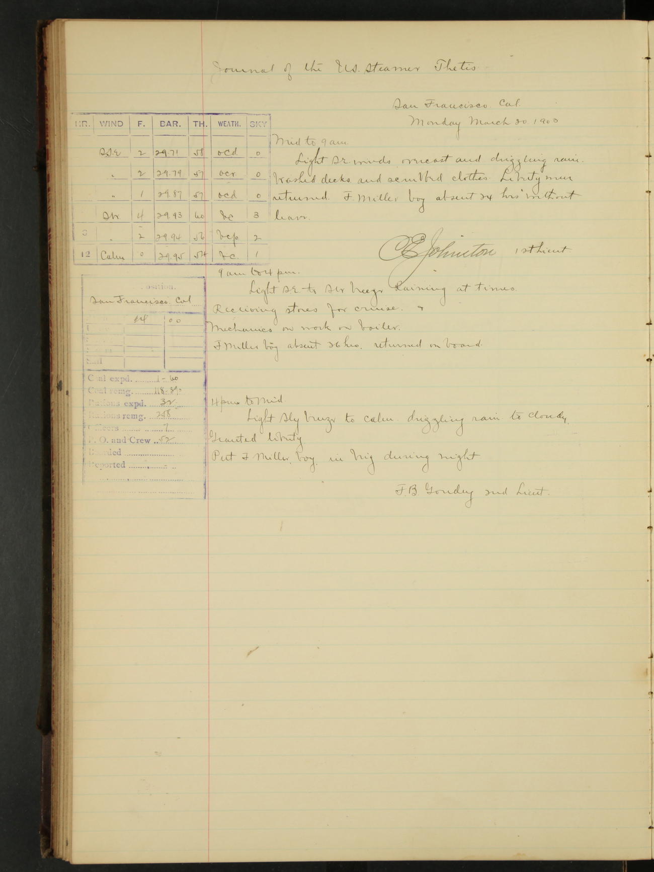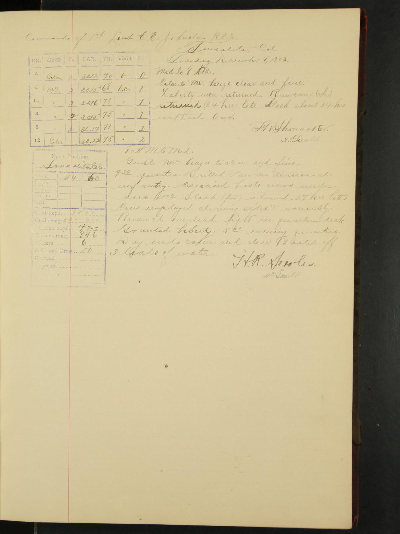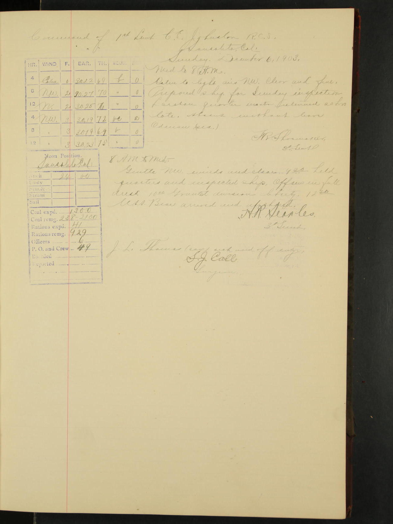 5145bd80a2fc8ee892004f5f: (http://oldweather.s3.amazonaws.com/ow3/final/USS Thetis/vol601/vol601_076_1.jpg)