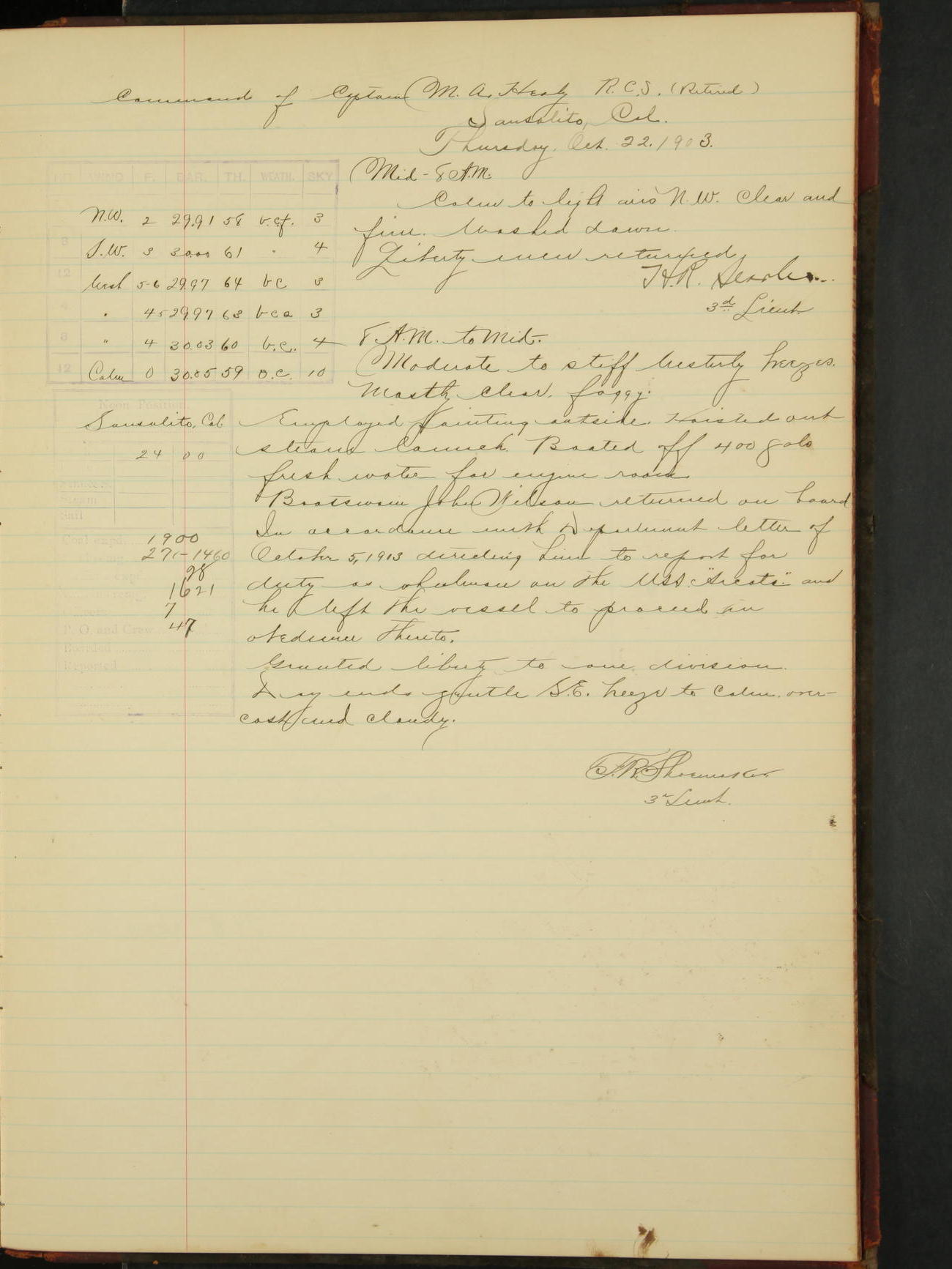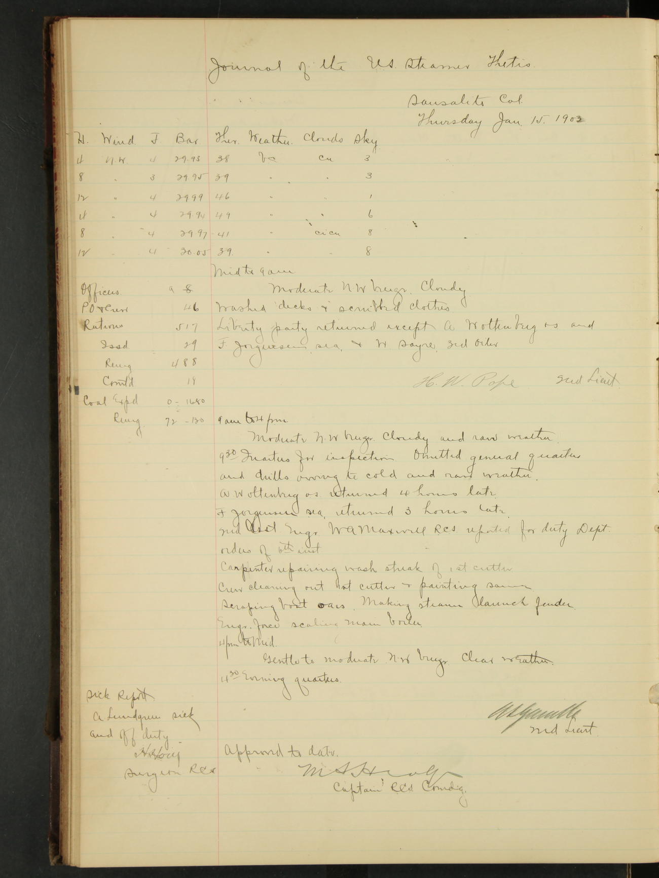 5145bdc7a2fc8ee892005c5b: (http://oldweather.s3.amazonaws.com/ow3/final/USS Thetis/vol607/vol607_184_1.jpg)