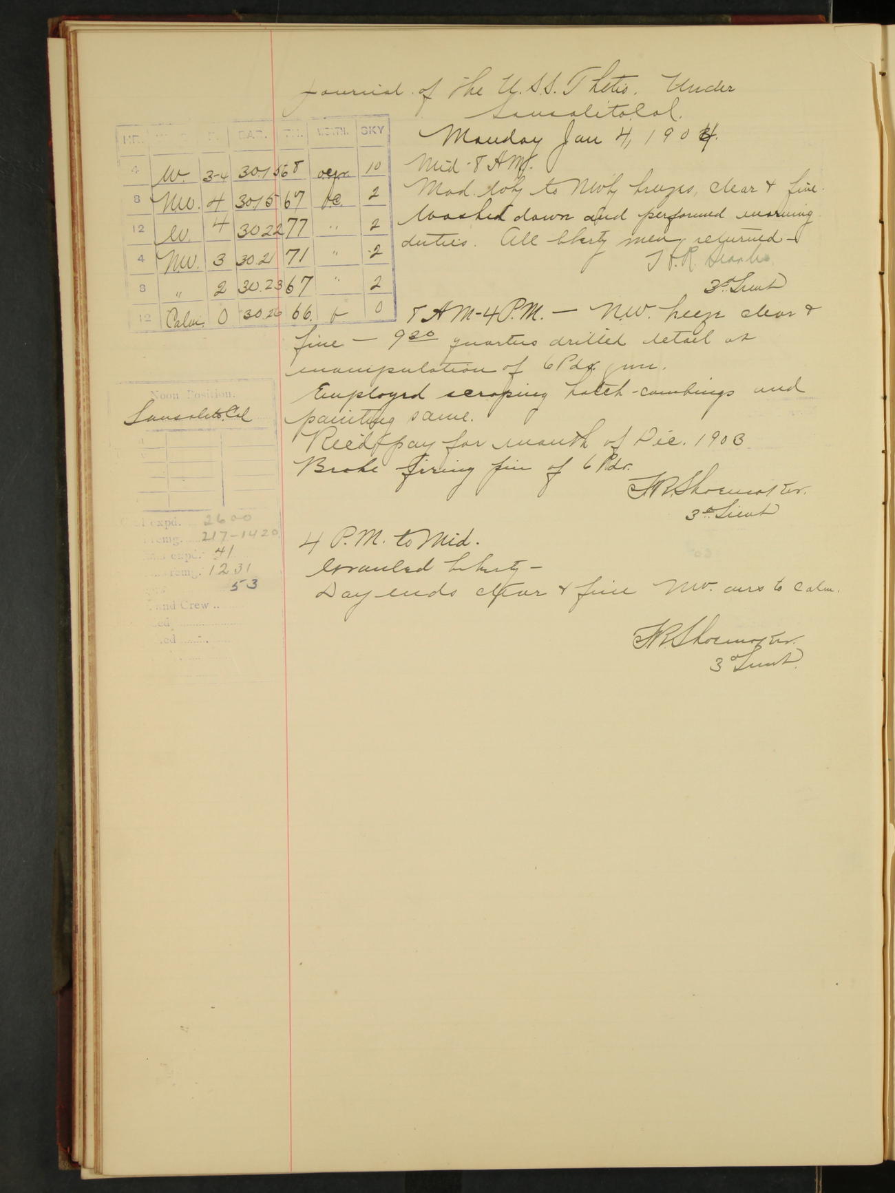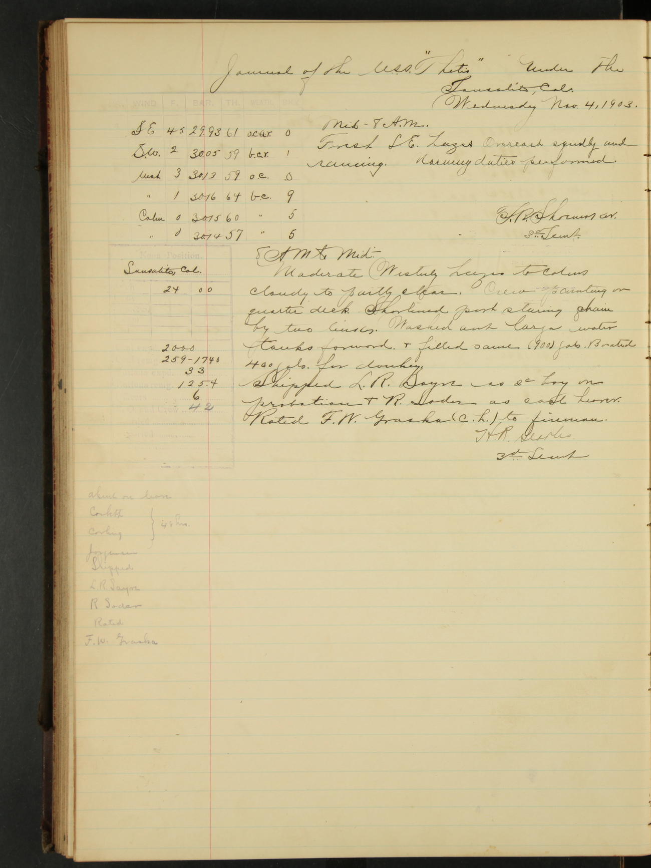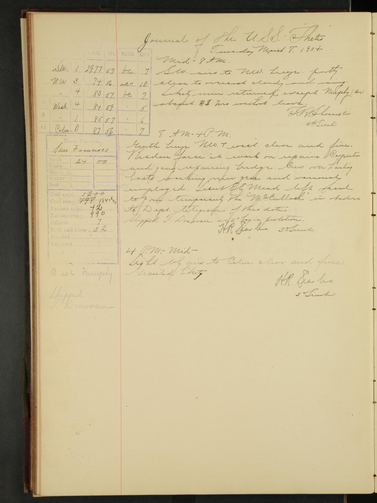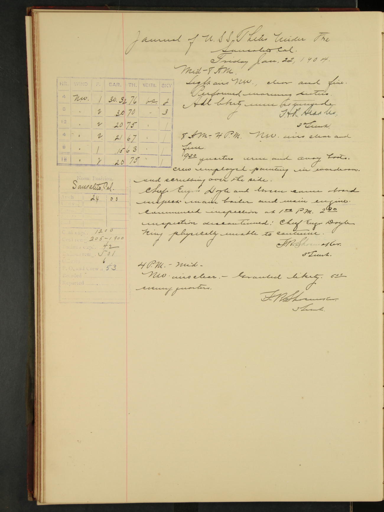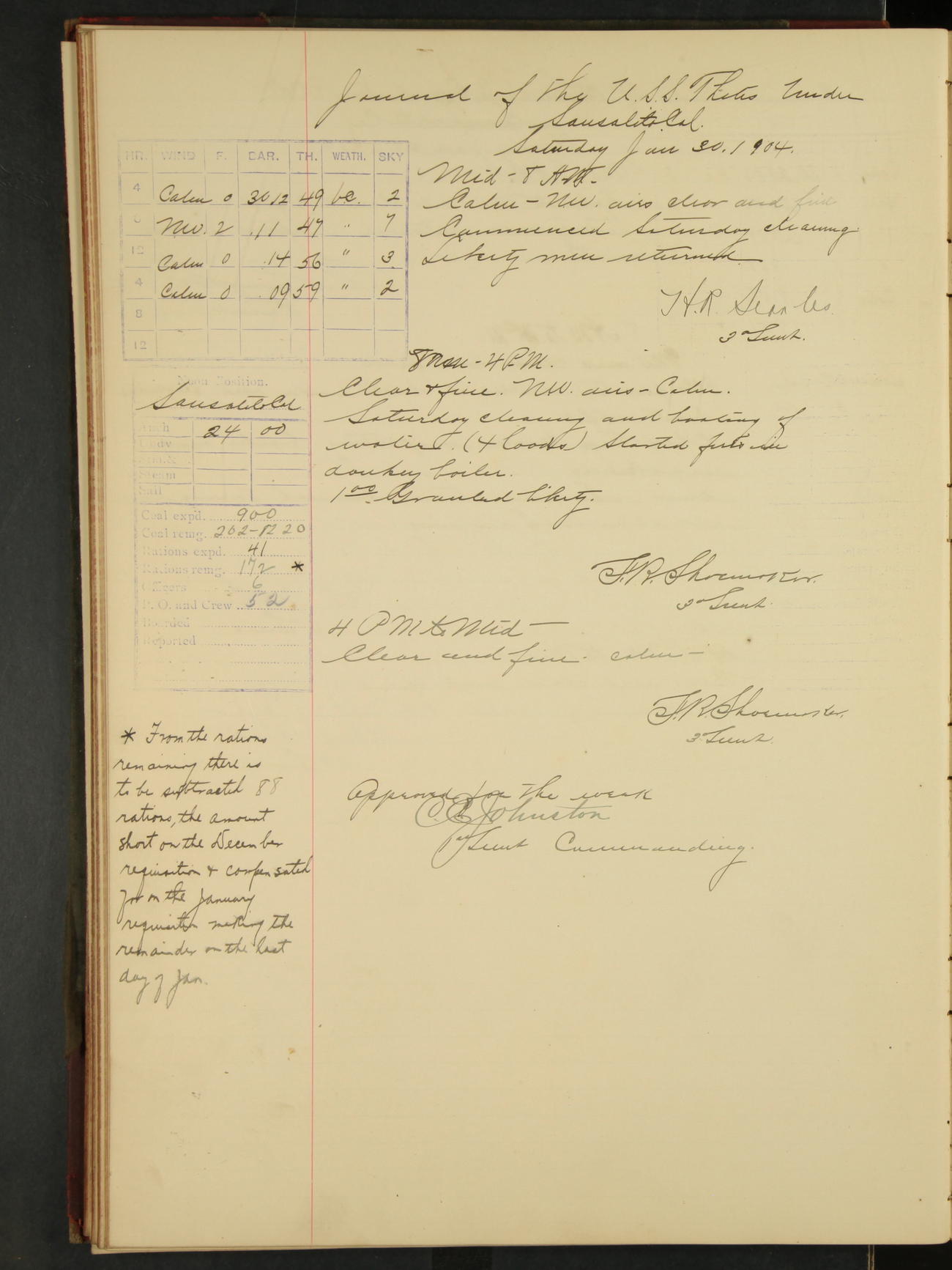 5145bd80a2fc8ee892004f5d: (http://oldweather.s3.amazonaws.com/ow3/final/USS Thetis/vol601/vol601_076_0.jpg)
