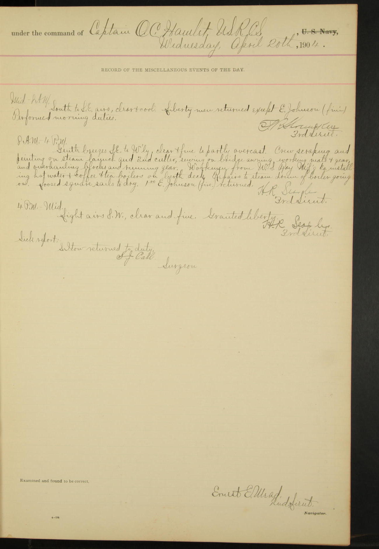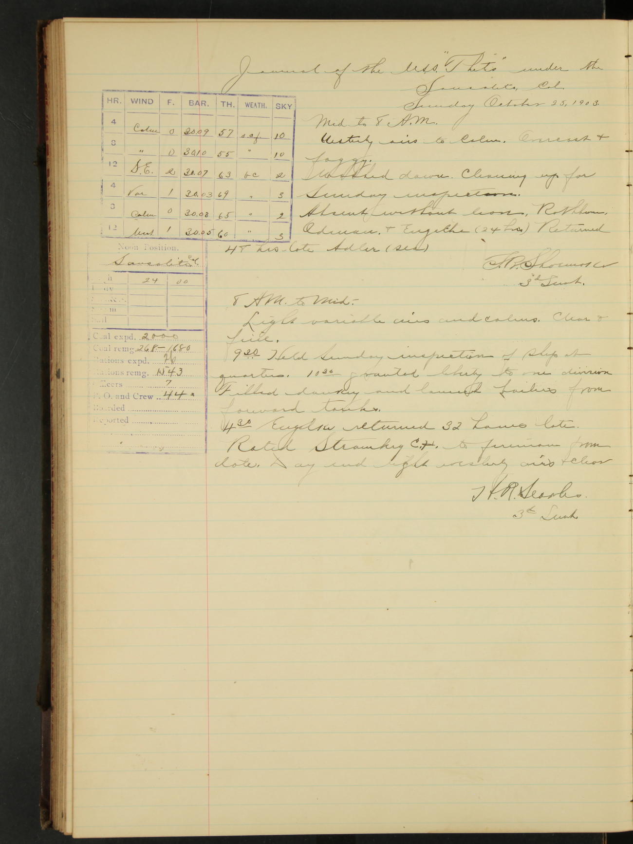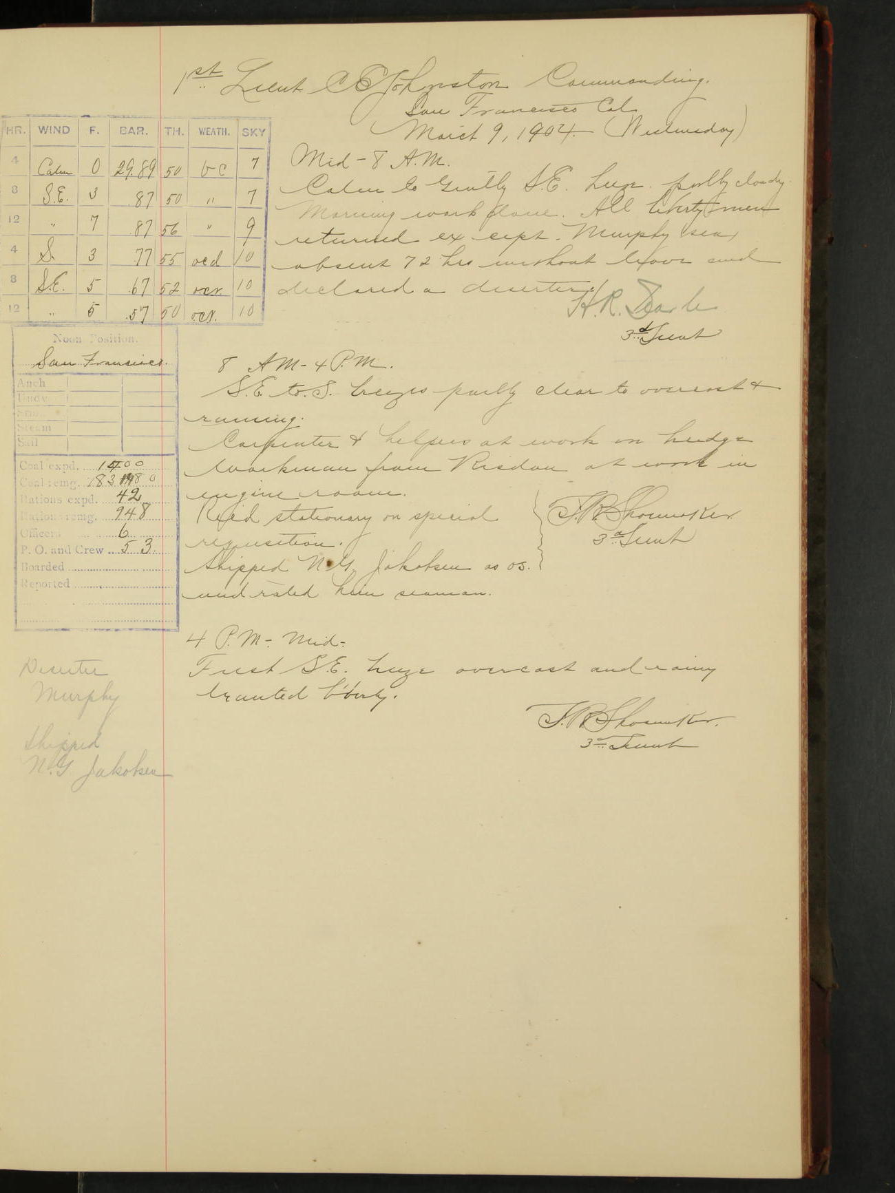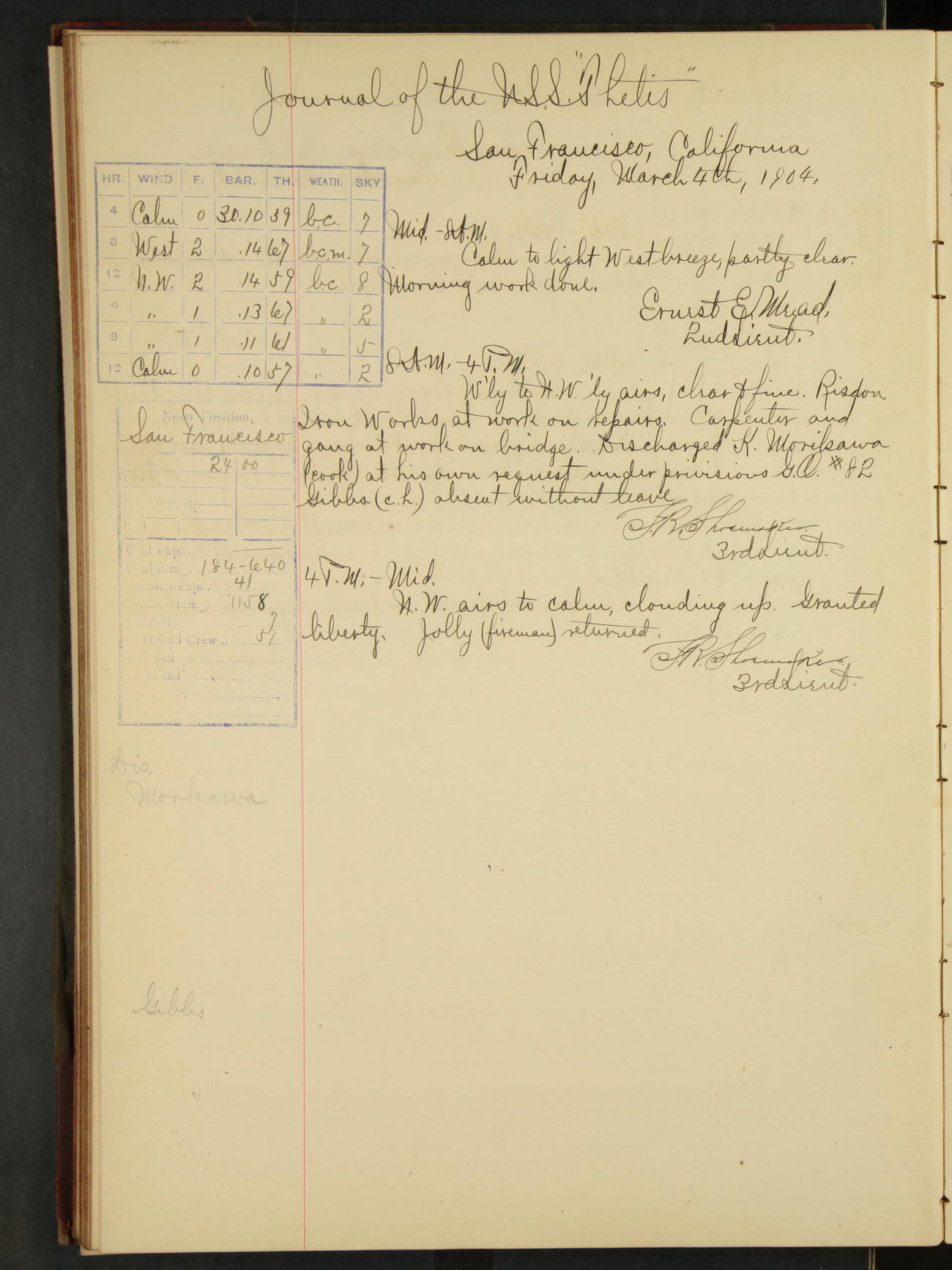 5145bd80a2fc8ee892004f5d: (http://oldweather.s3.amazonaws.com/ow3/final/USS Thetis/vol601/vol601_076_0.jpg)