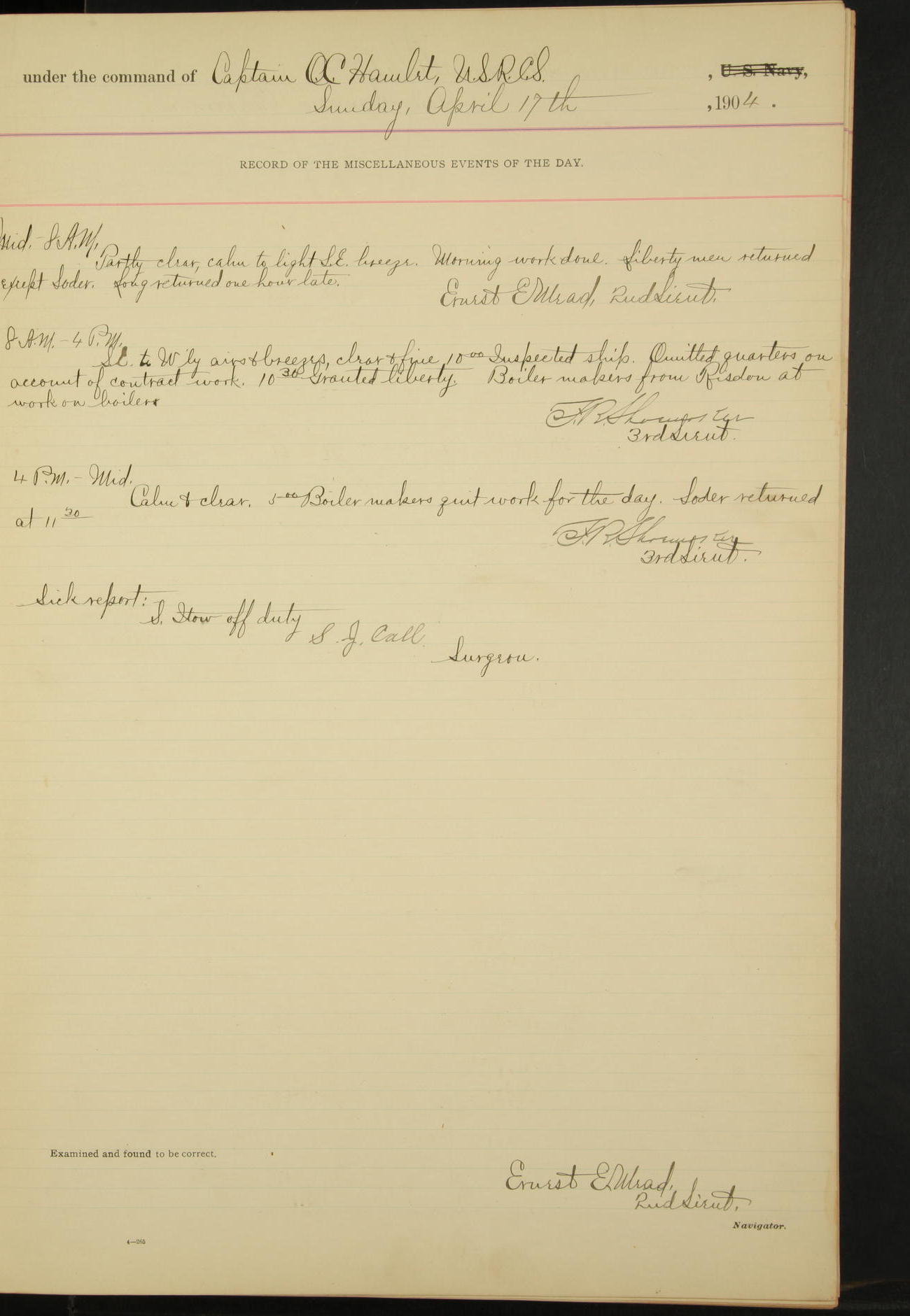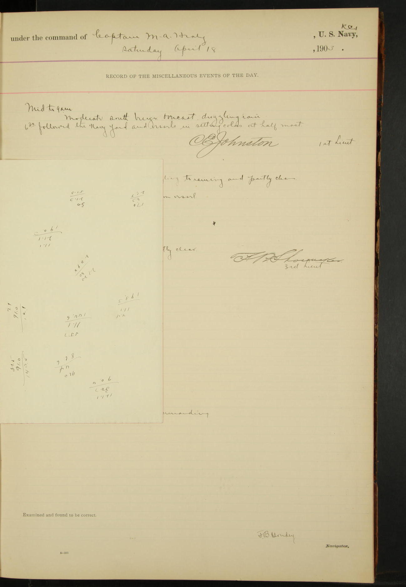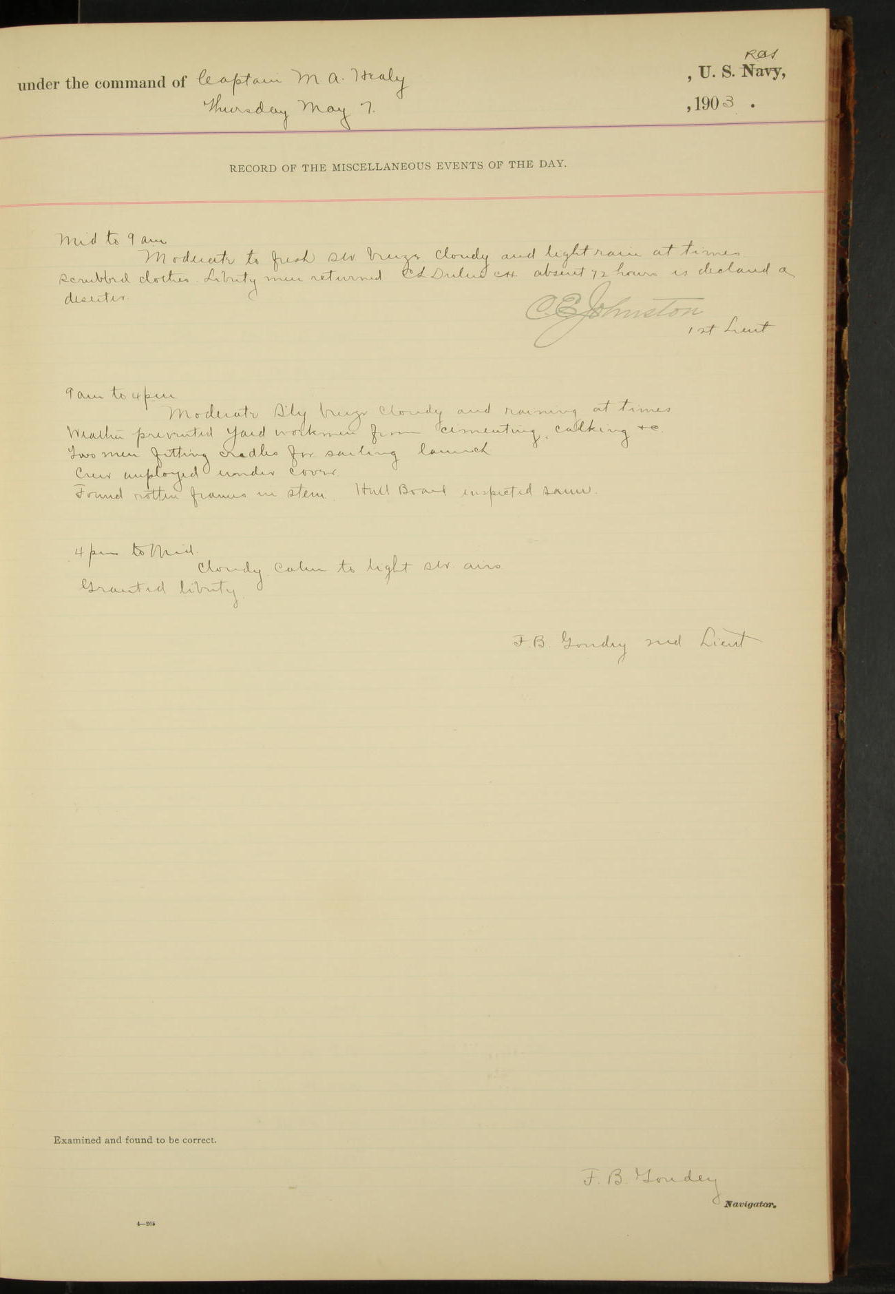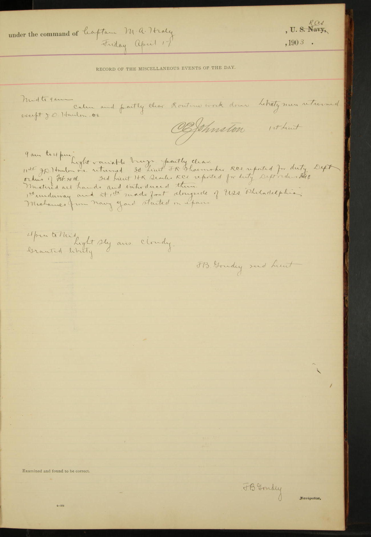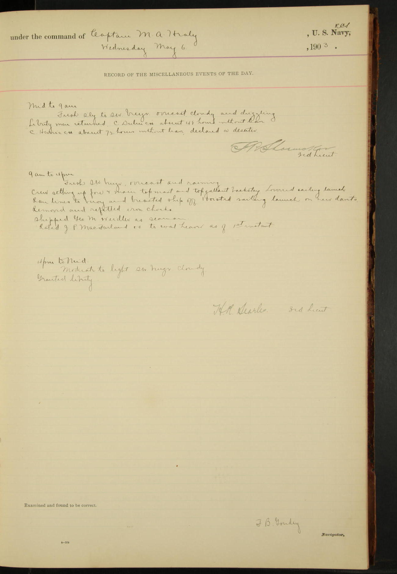 5145bd80a2fc8ee892004f5d: (http://oldweather.s3.amazonaws.com/ow3/final/USS Thetis/vol601/vol601_076_0.jpg)