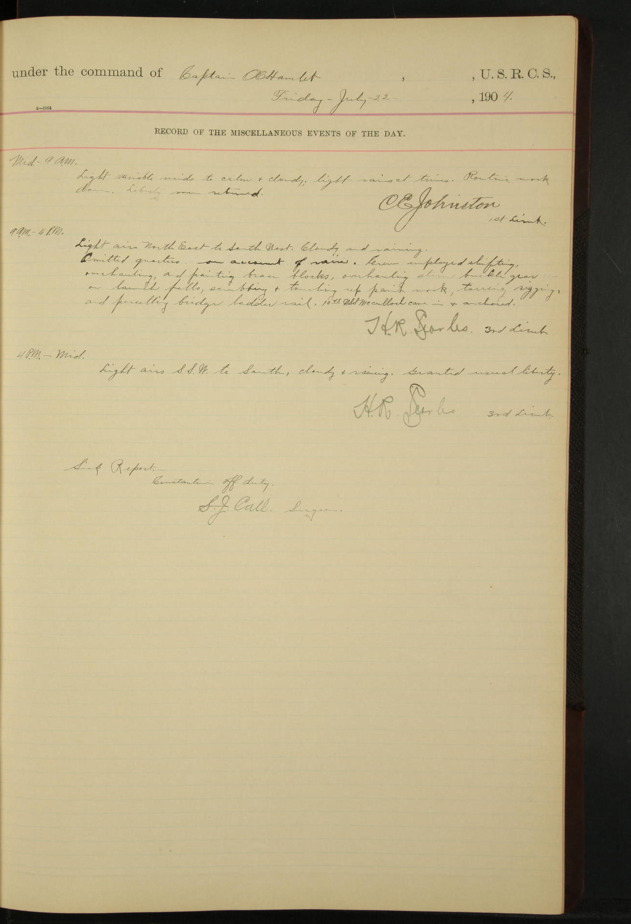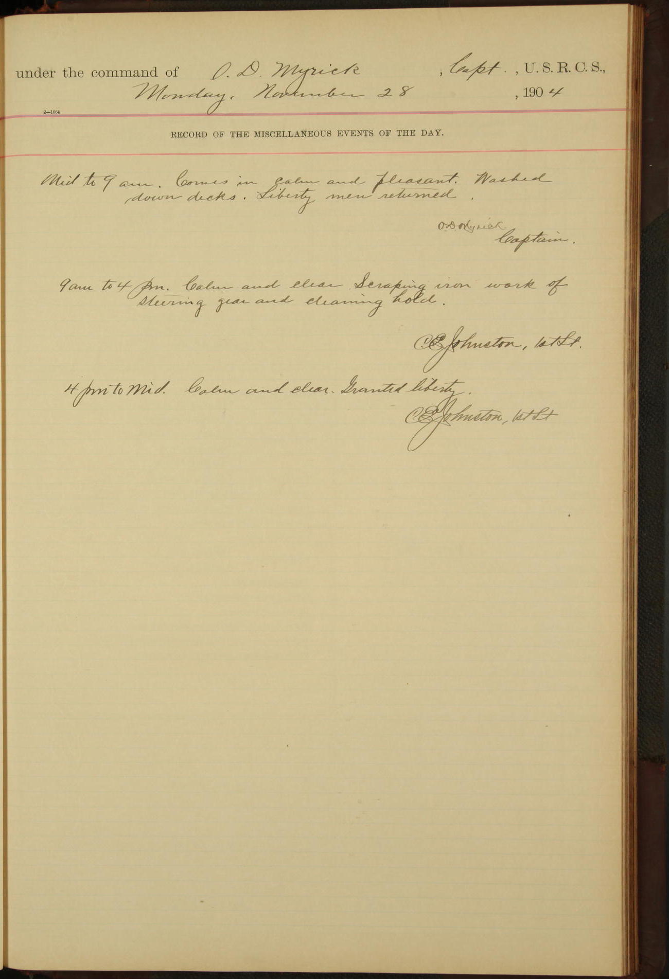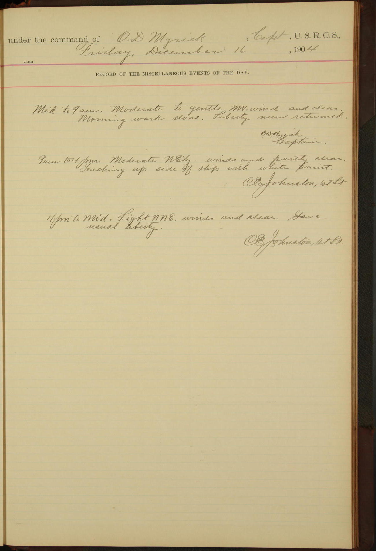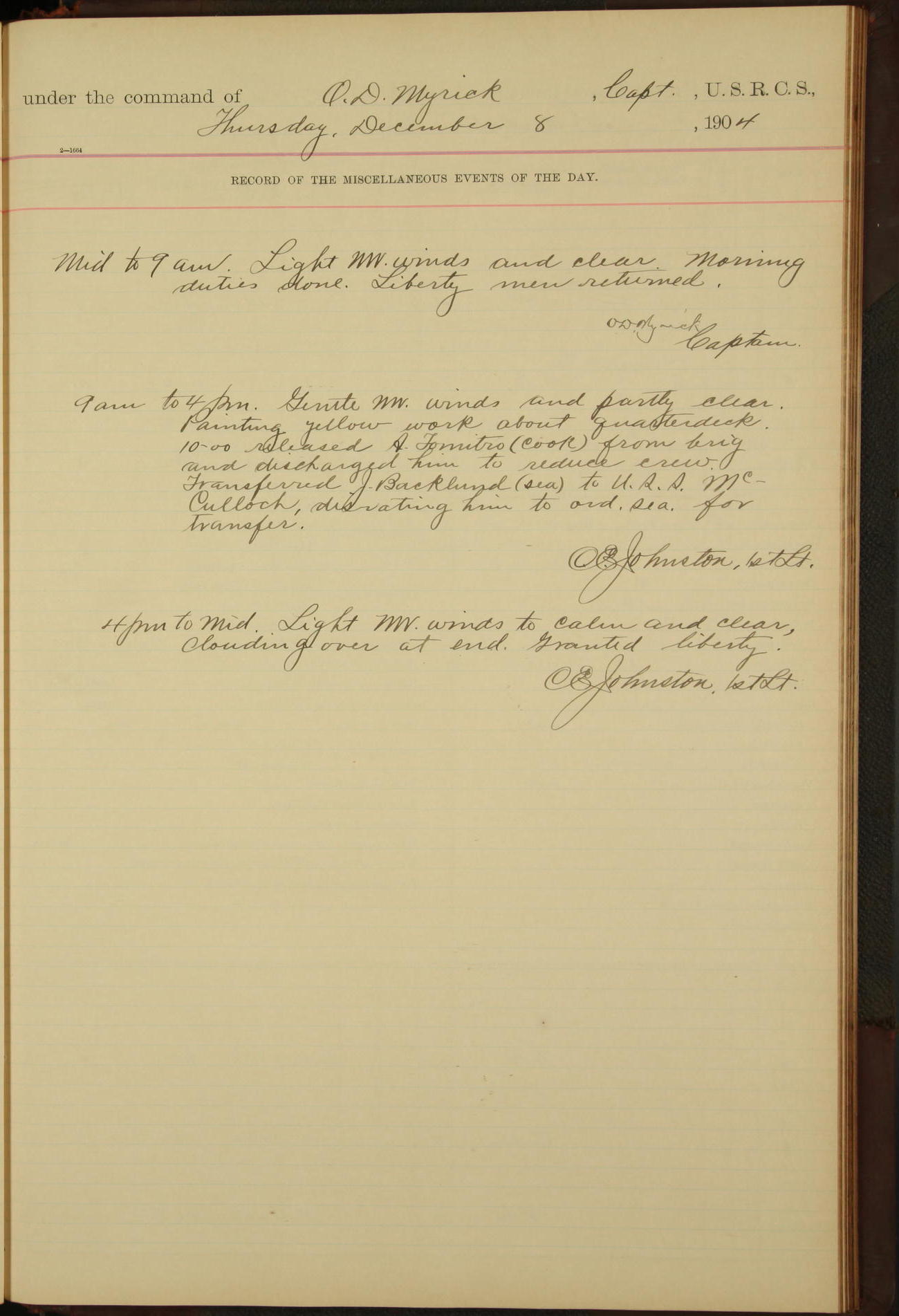 2nd Lieutenant Charles Ernest Johnston, Revenue Cutter Service, reported for duty.