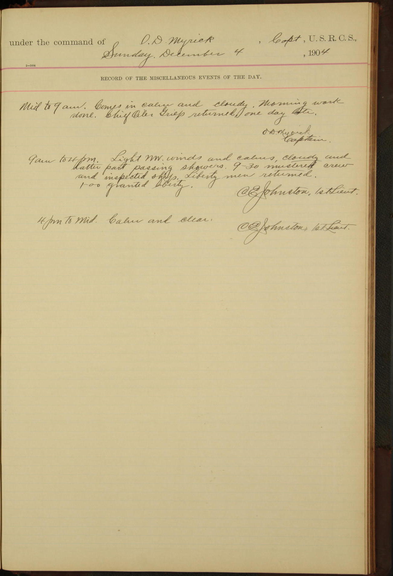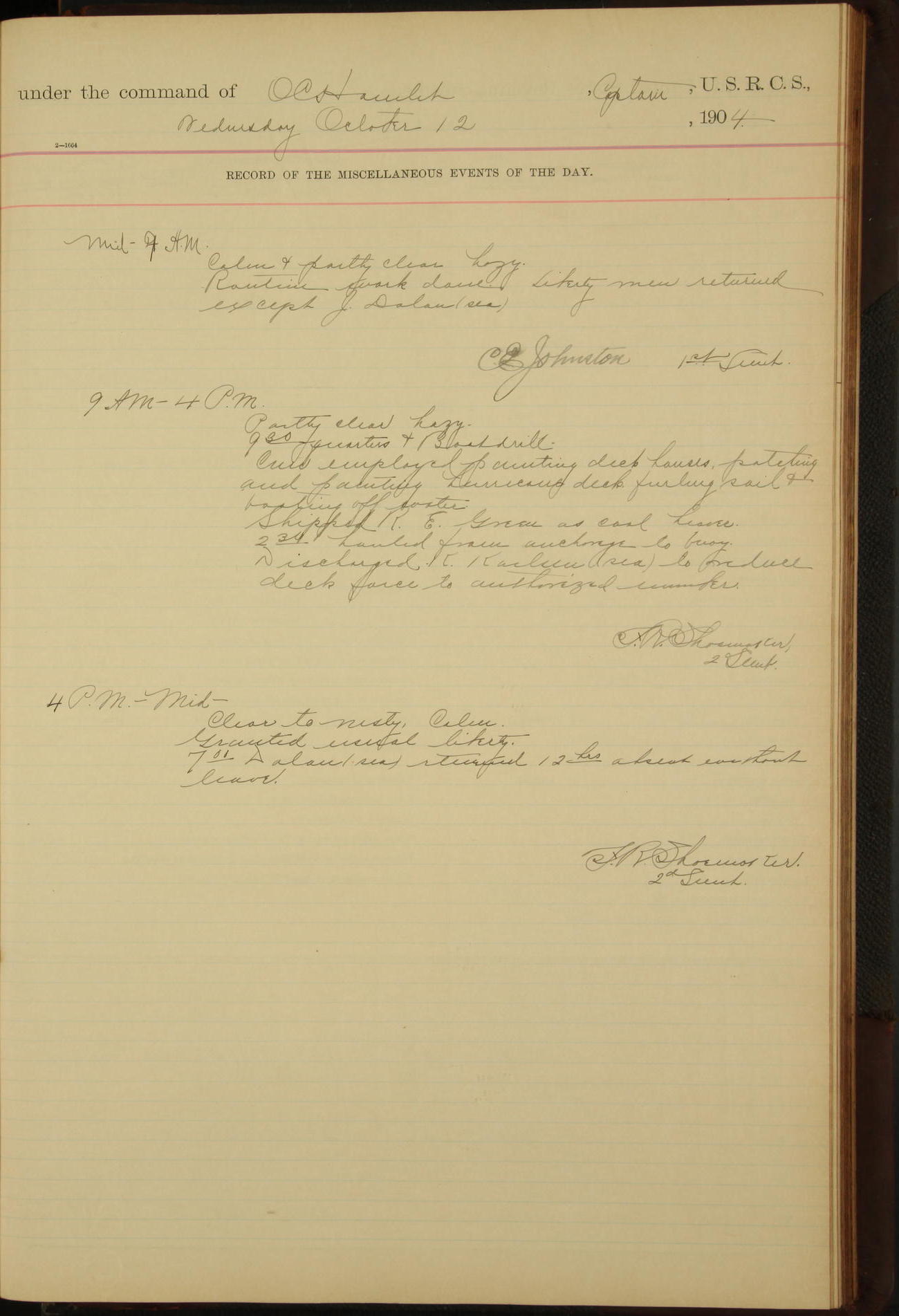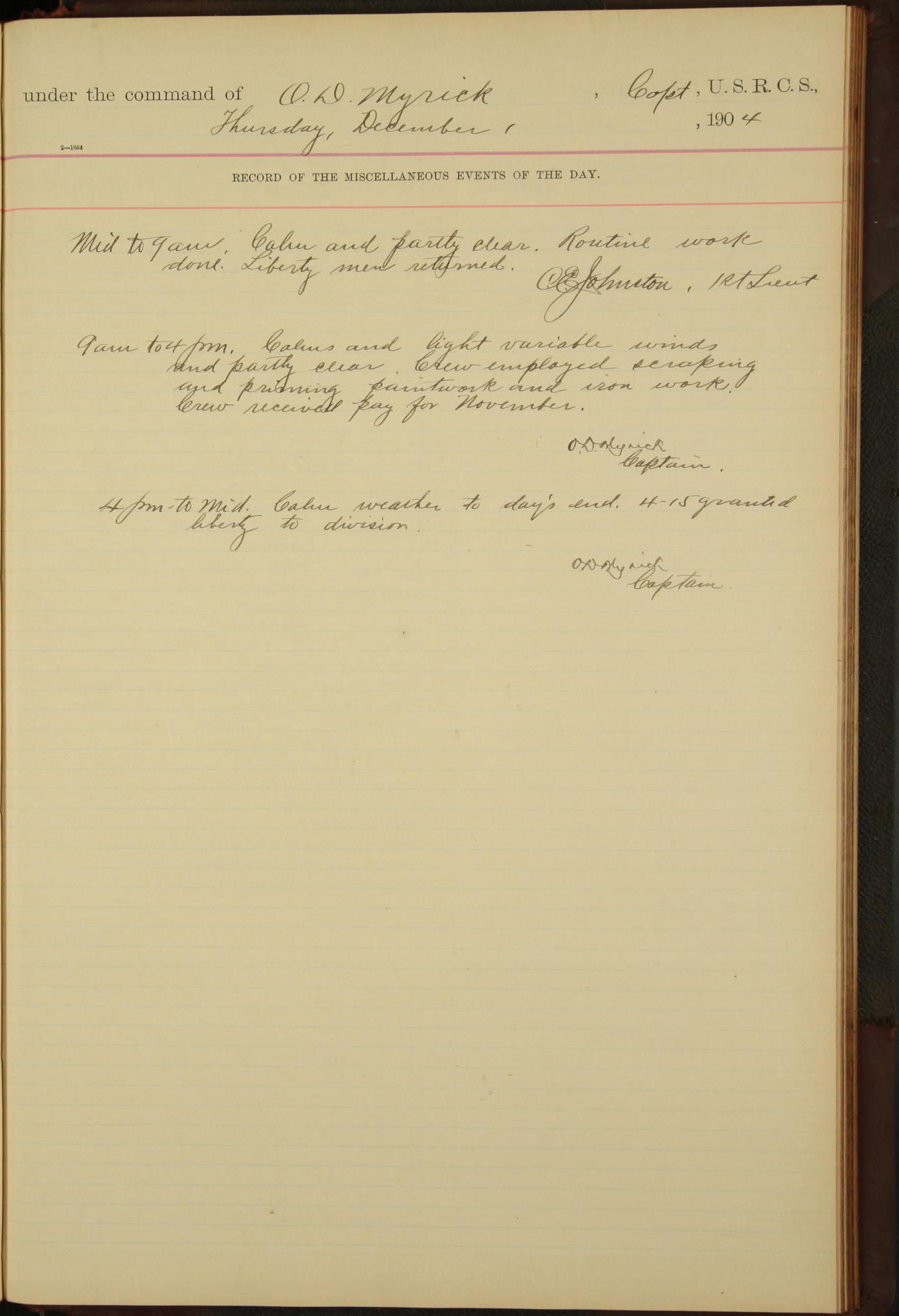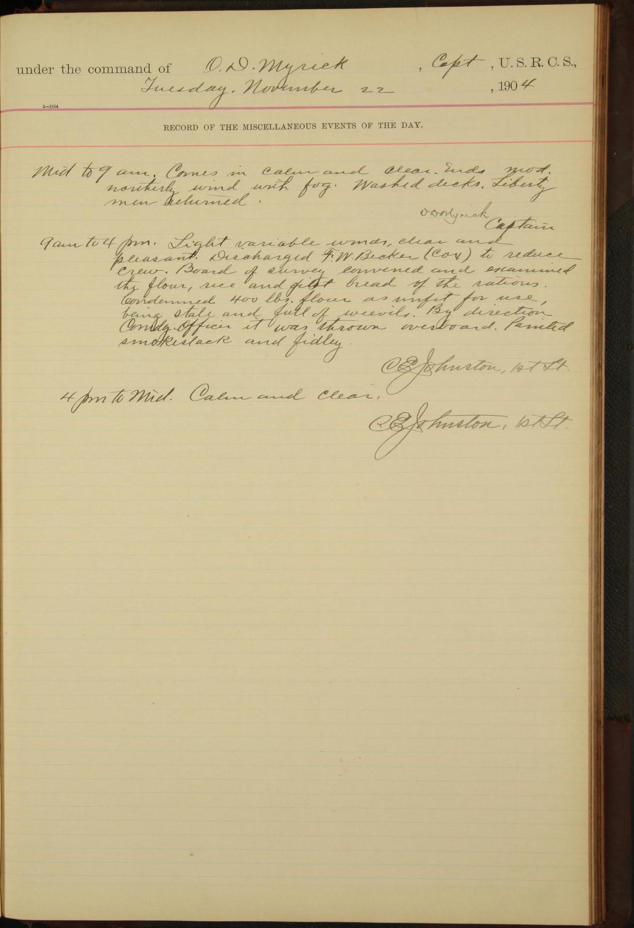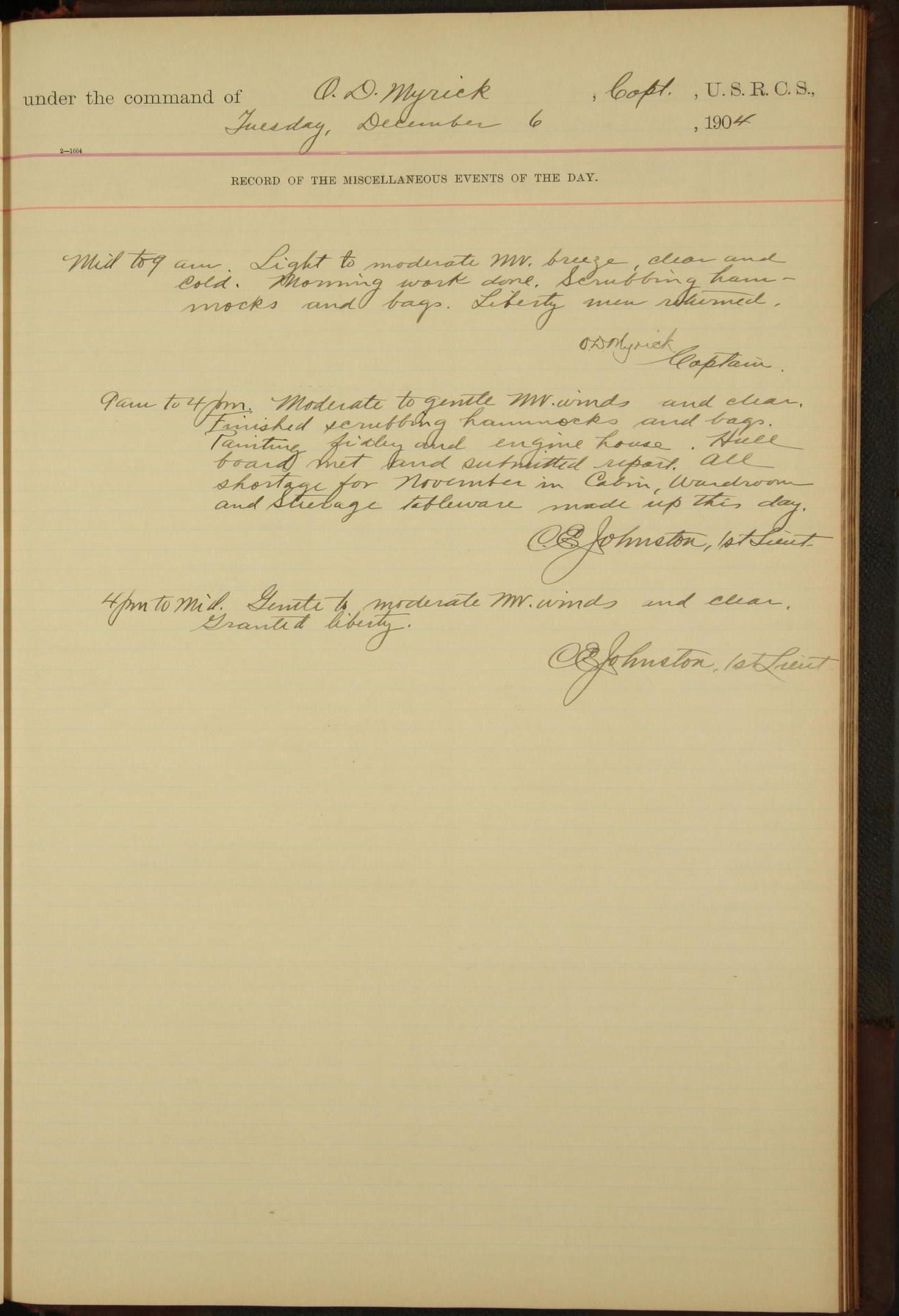 2nd Lieutenant Charles Ernest Johnston, Revenue Cutter Service, reported for duty.