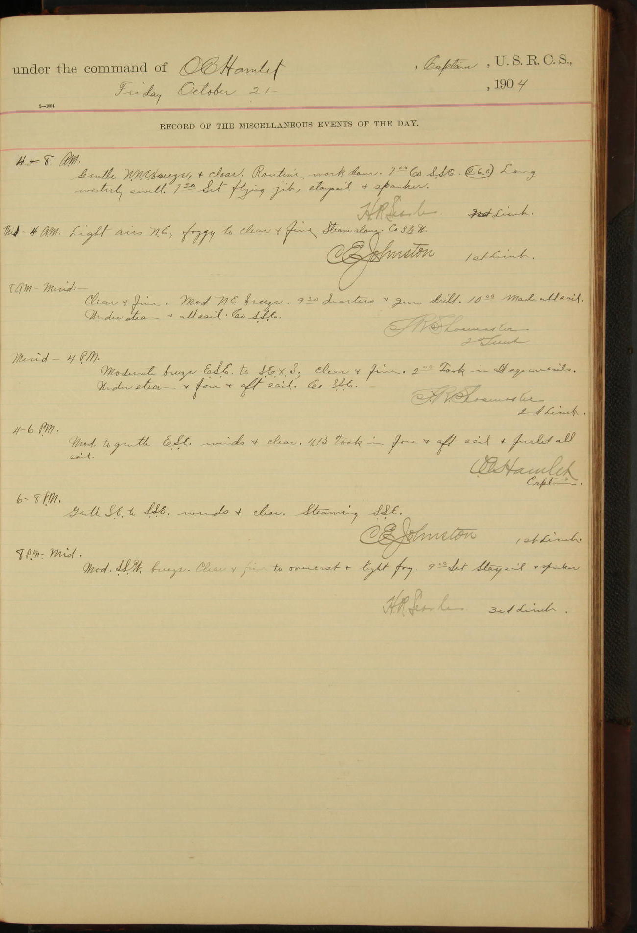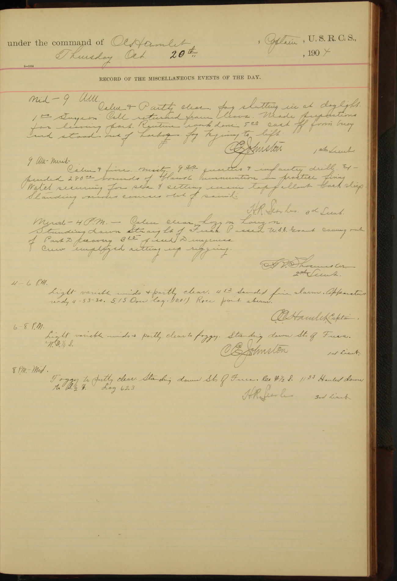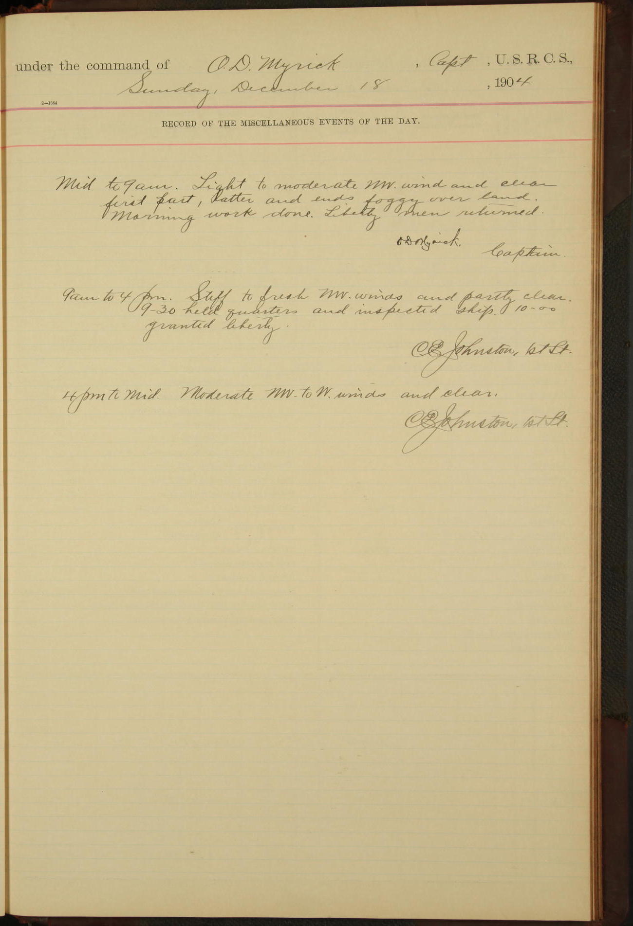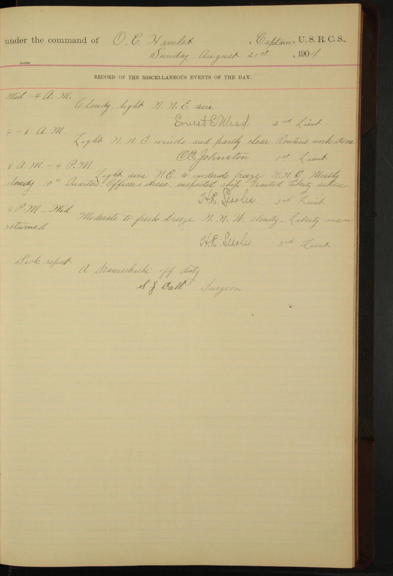 2nd Lieutenant Charles Ernest Johnston, Revenue Cutter Service, reported for duty.