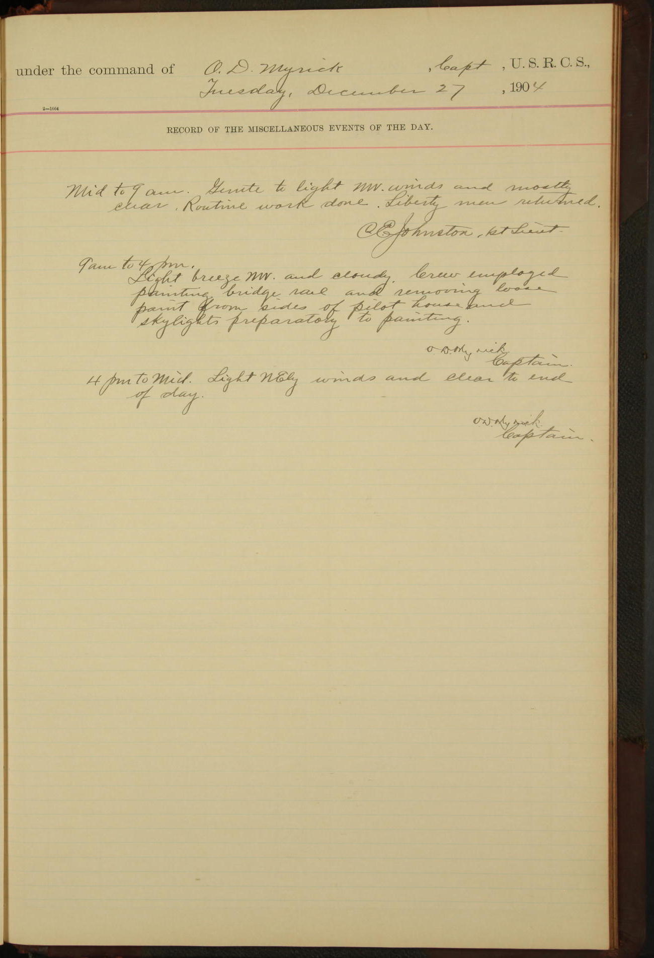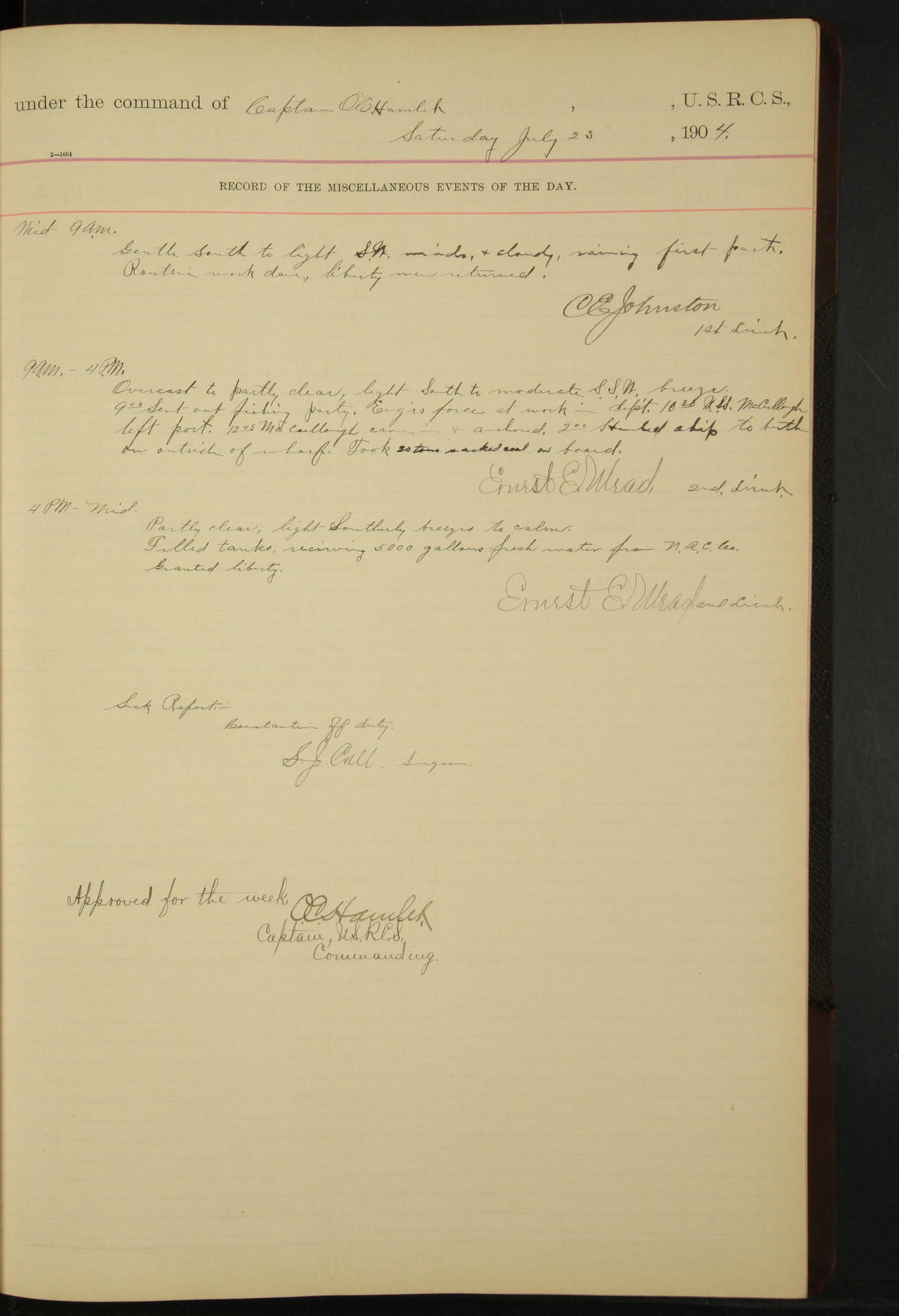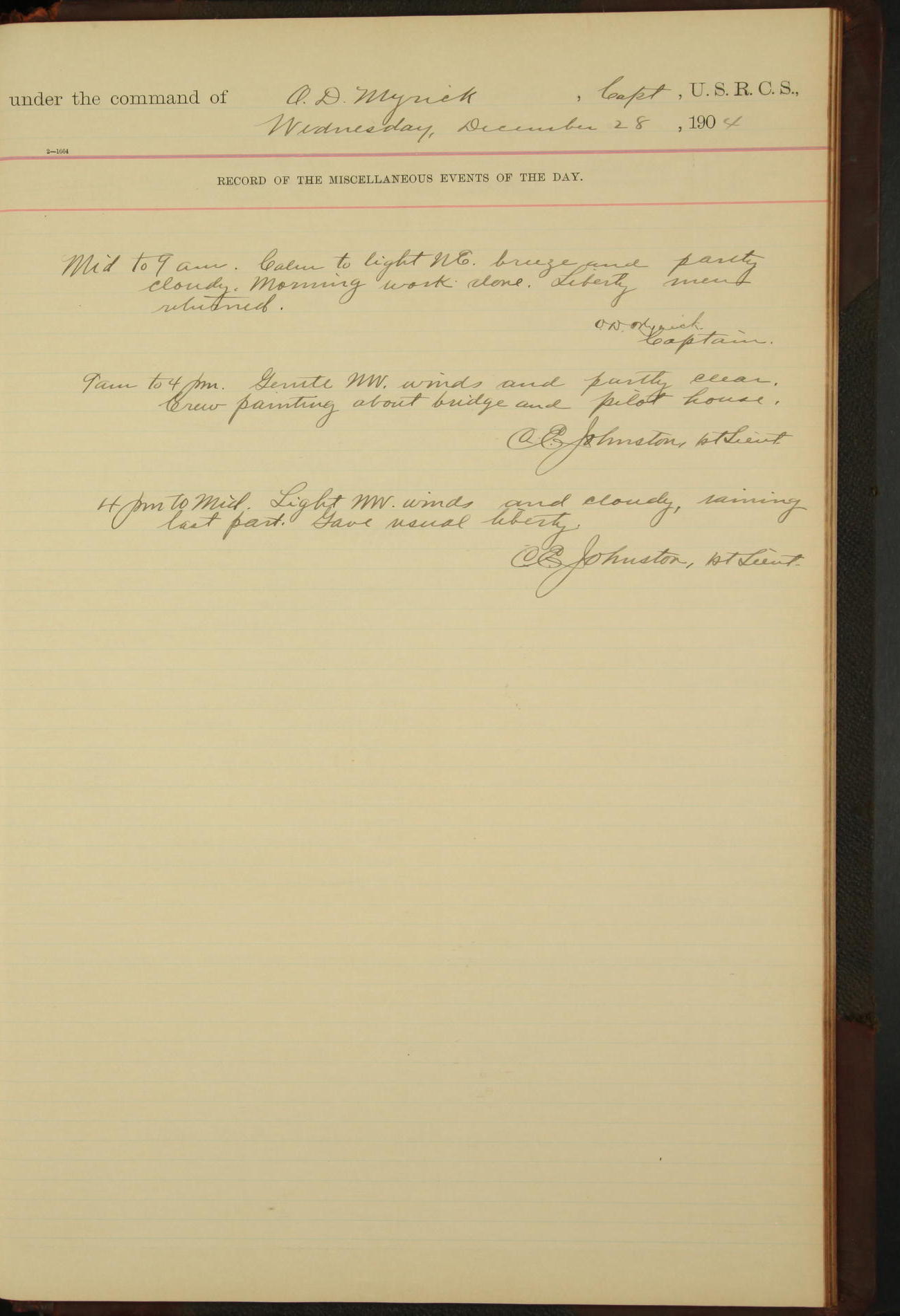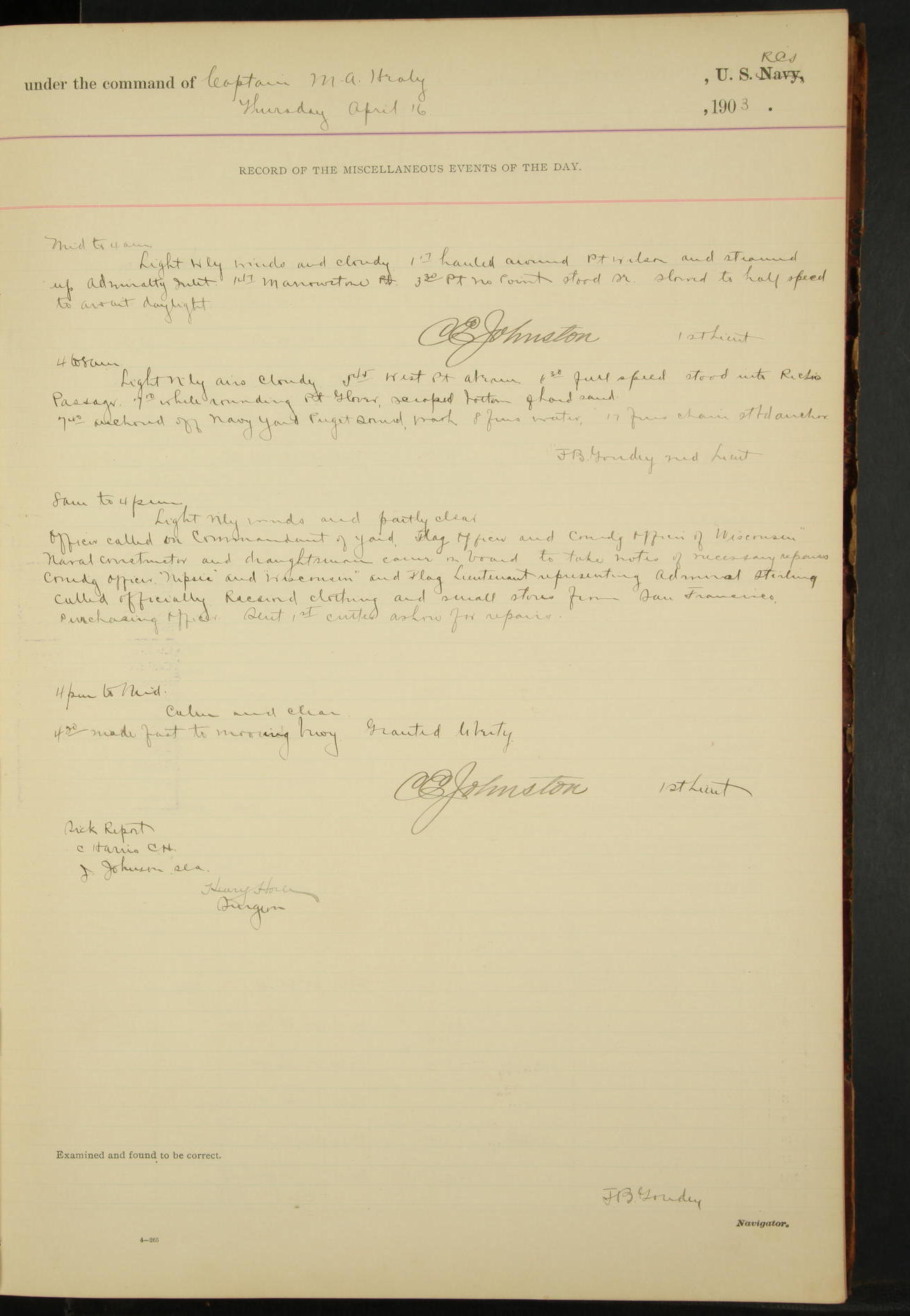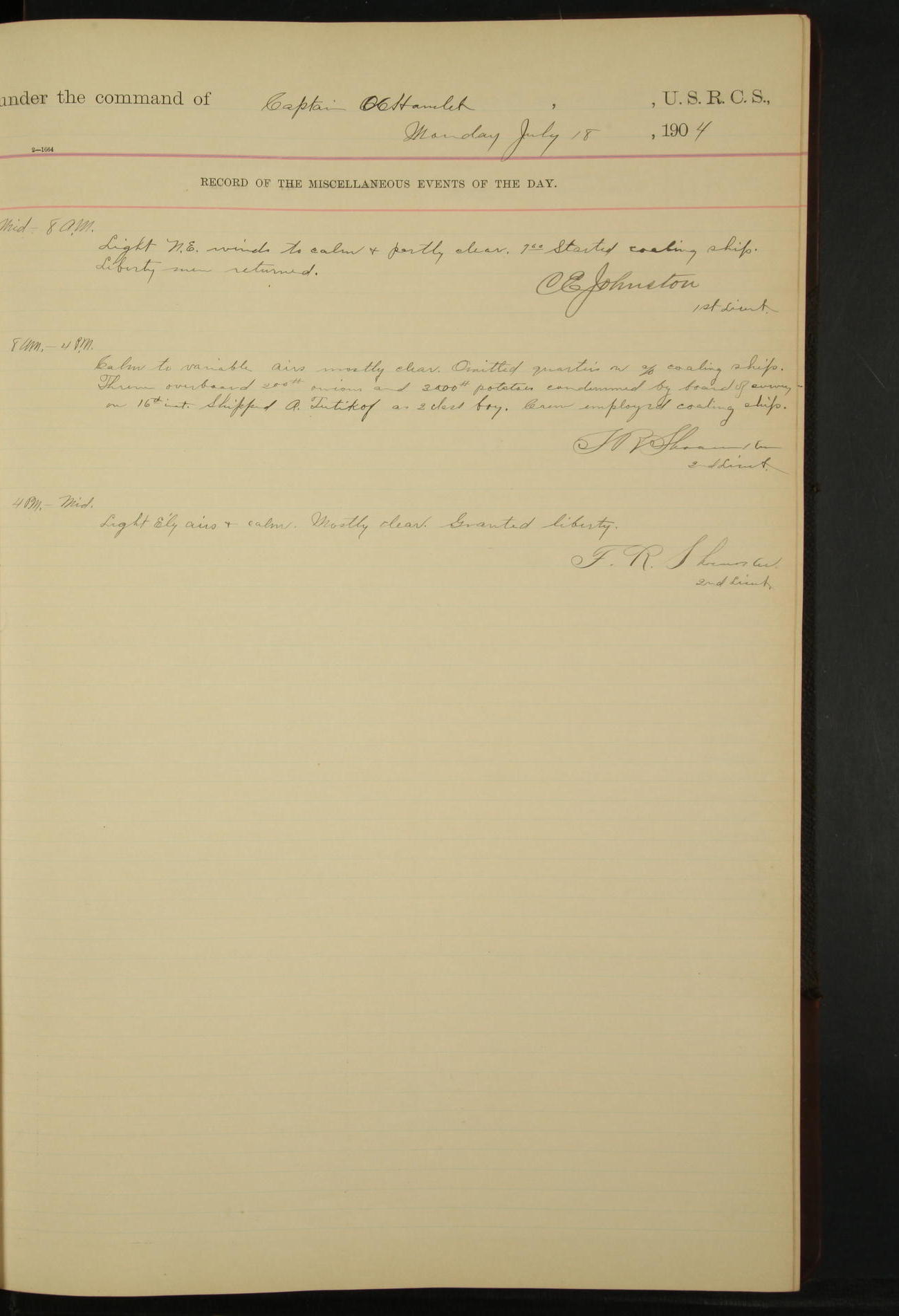 2nd Lieutenant Charles Ernest Johnston, Revenue Cutter Service, reported for duty.