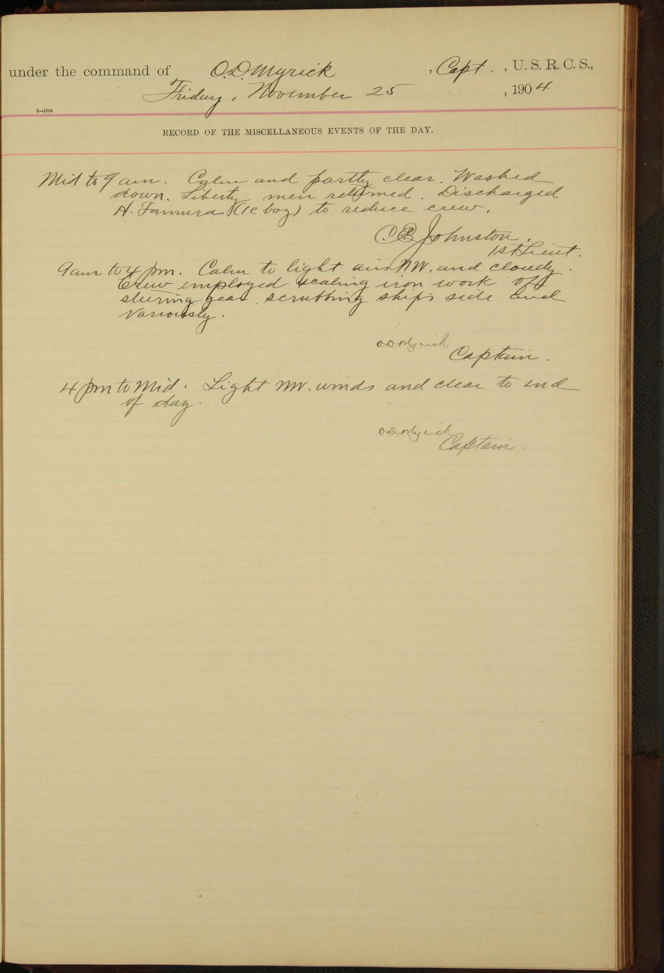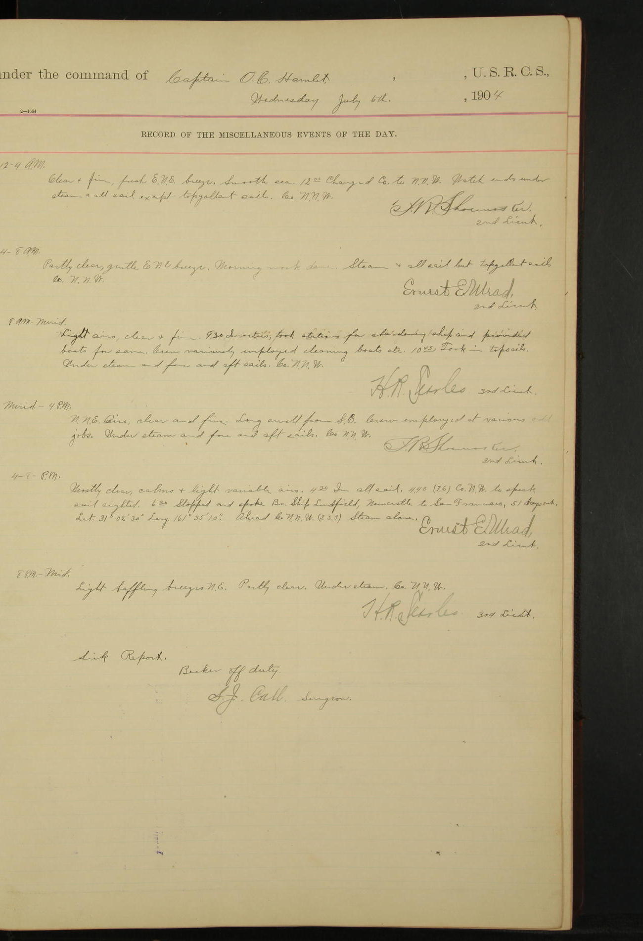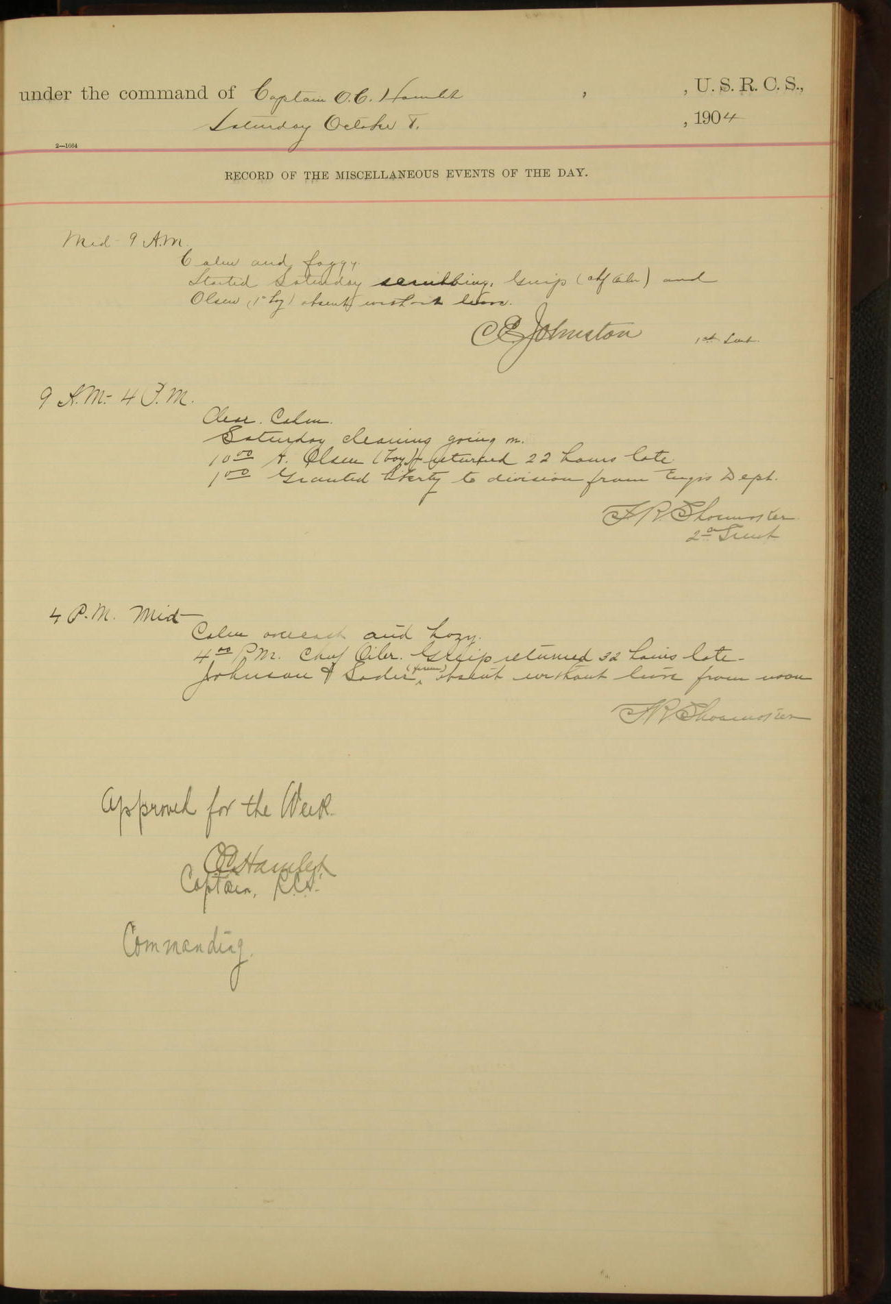 Officers and gigs crews rowed in races with USRC "McCulloch" and USRC “Manning”.