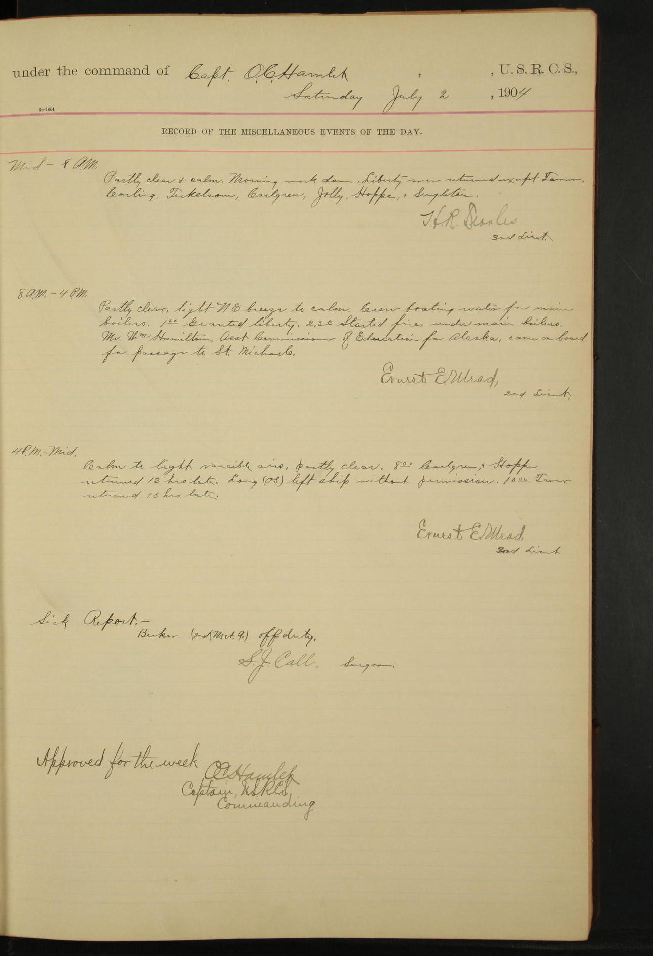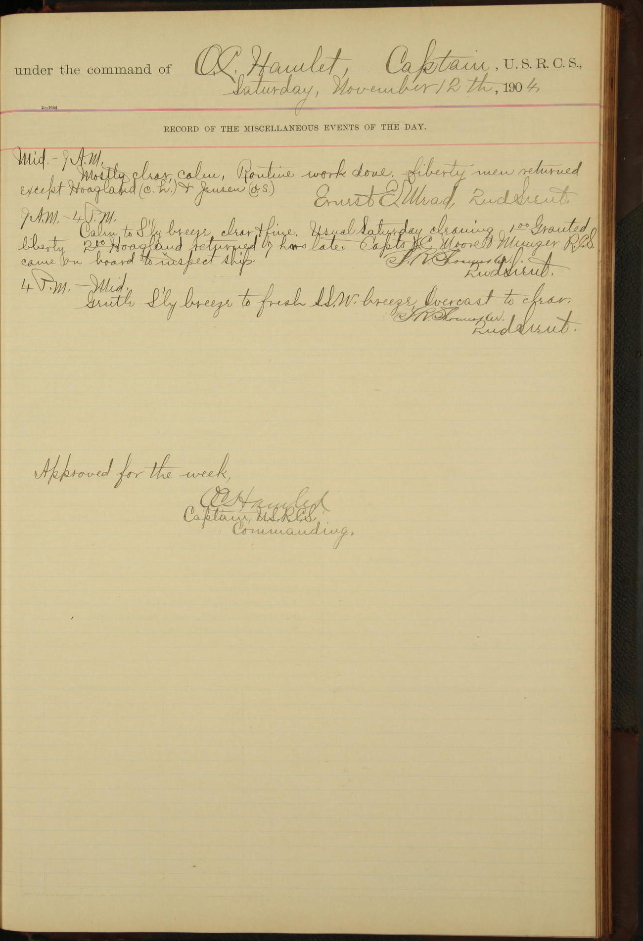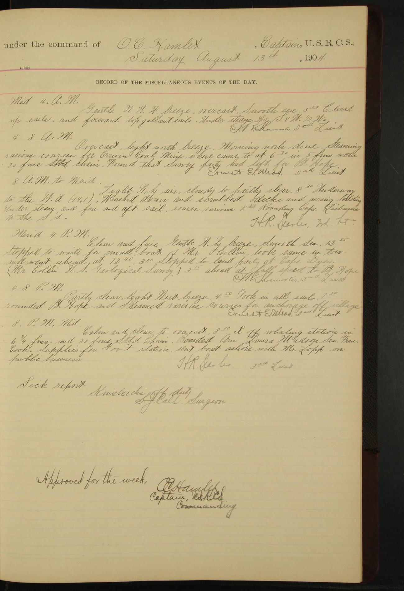 Officers and gigs crews rowed in races with USRC "McCulloch" and USRC “Manning”.