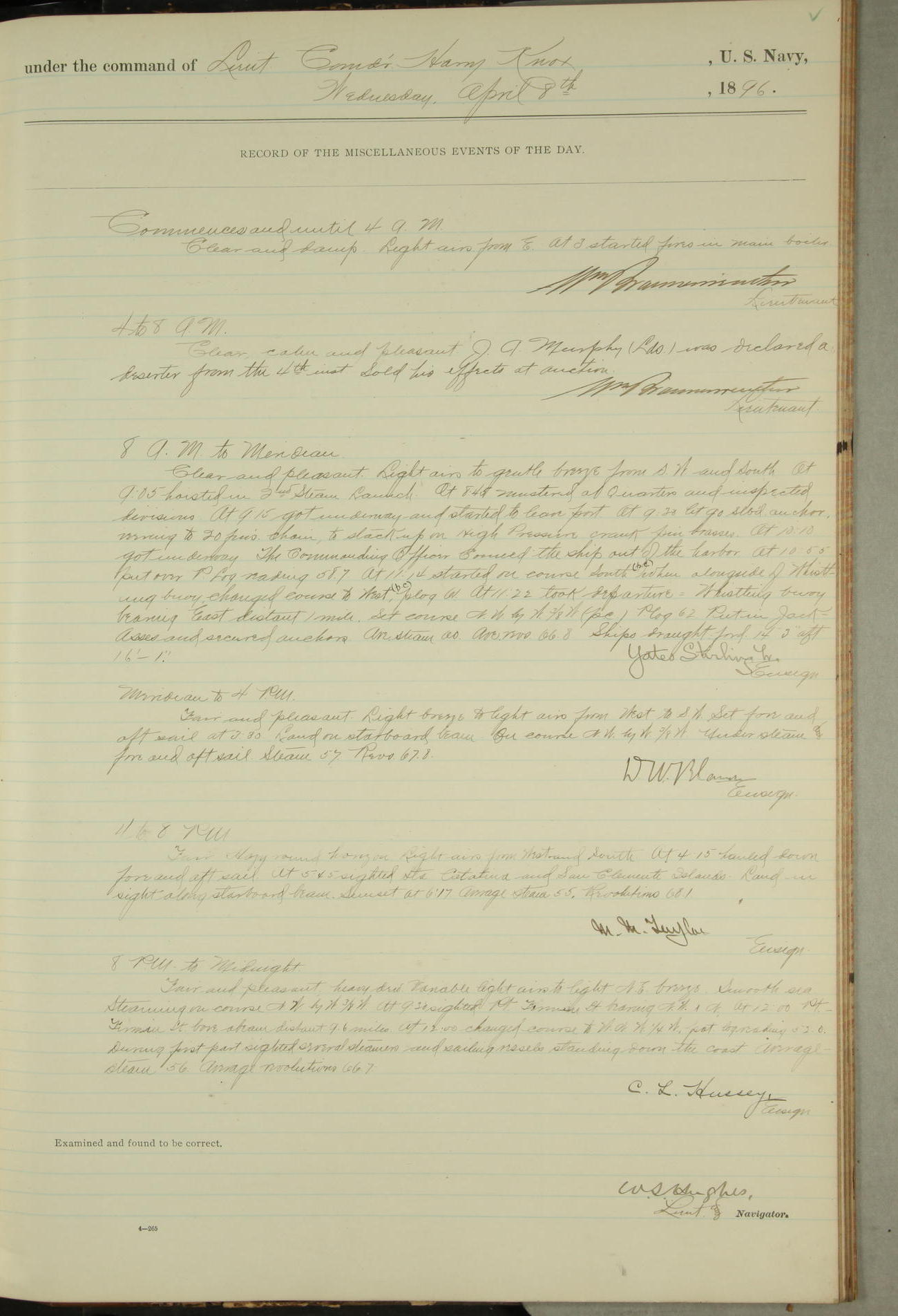 5145bd1fa2fc8ee892003d6f: (http://oldweather.s3.amazonaws.com/ow3/final/USS Thetis/vol023of024/vol023_026_1.jpg)