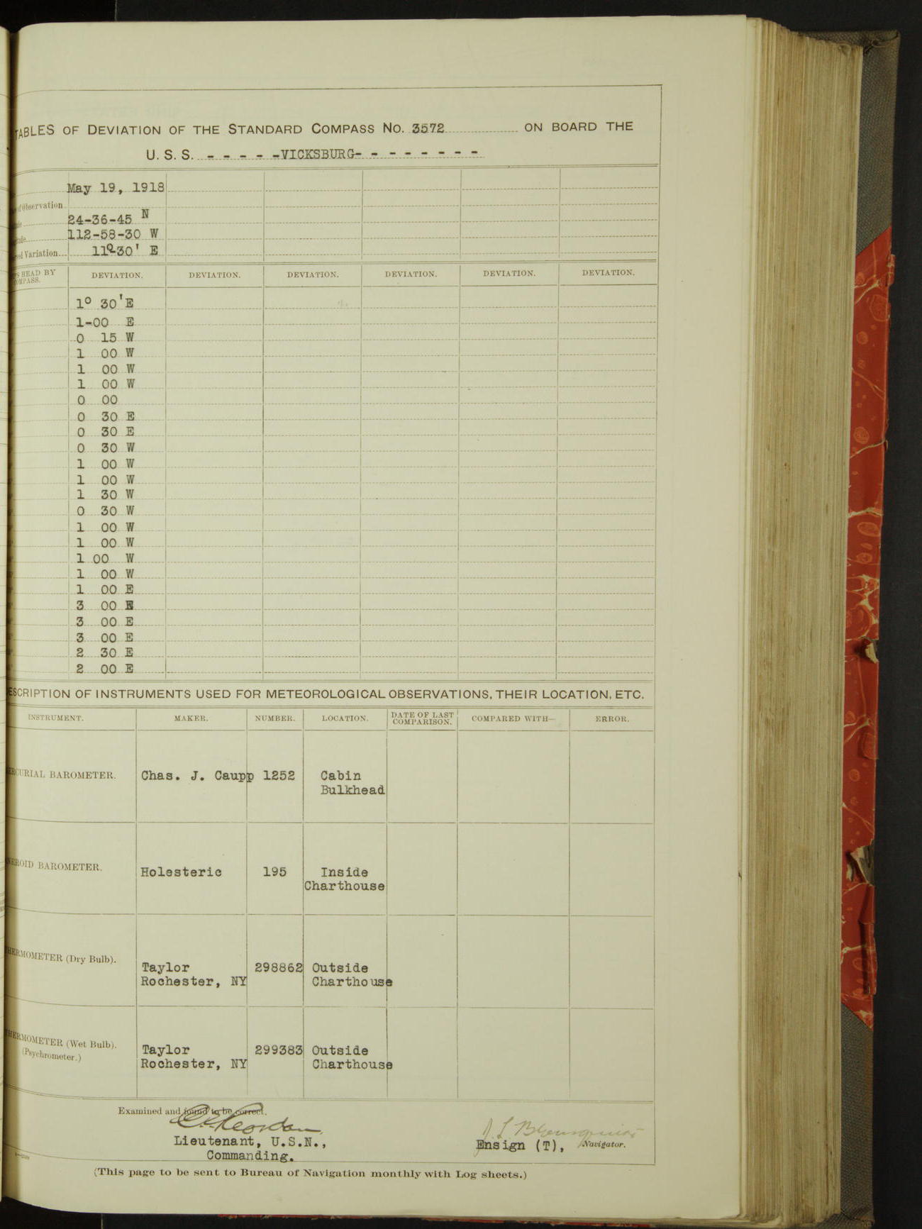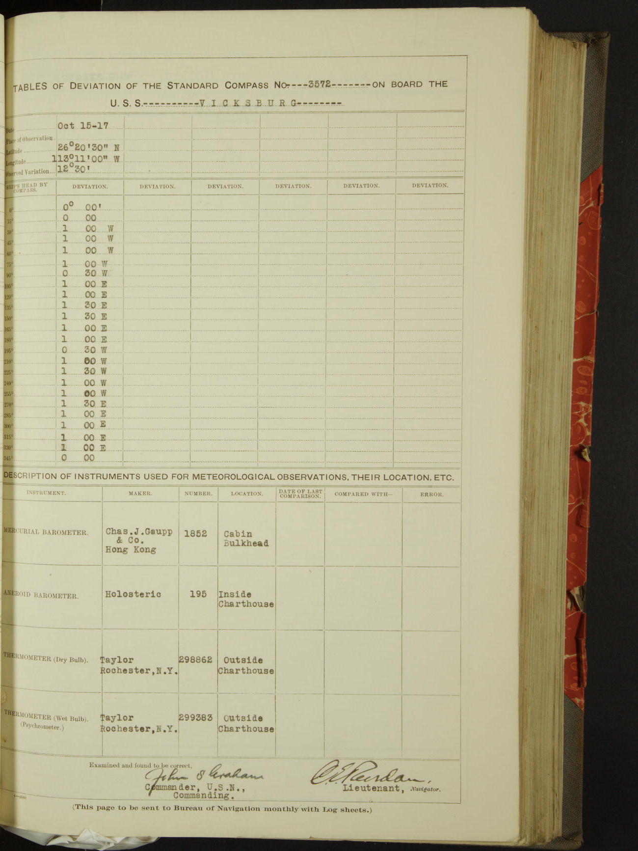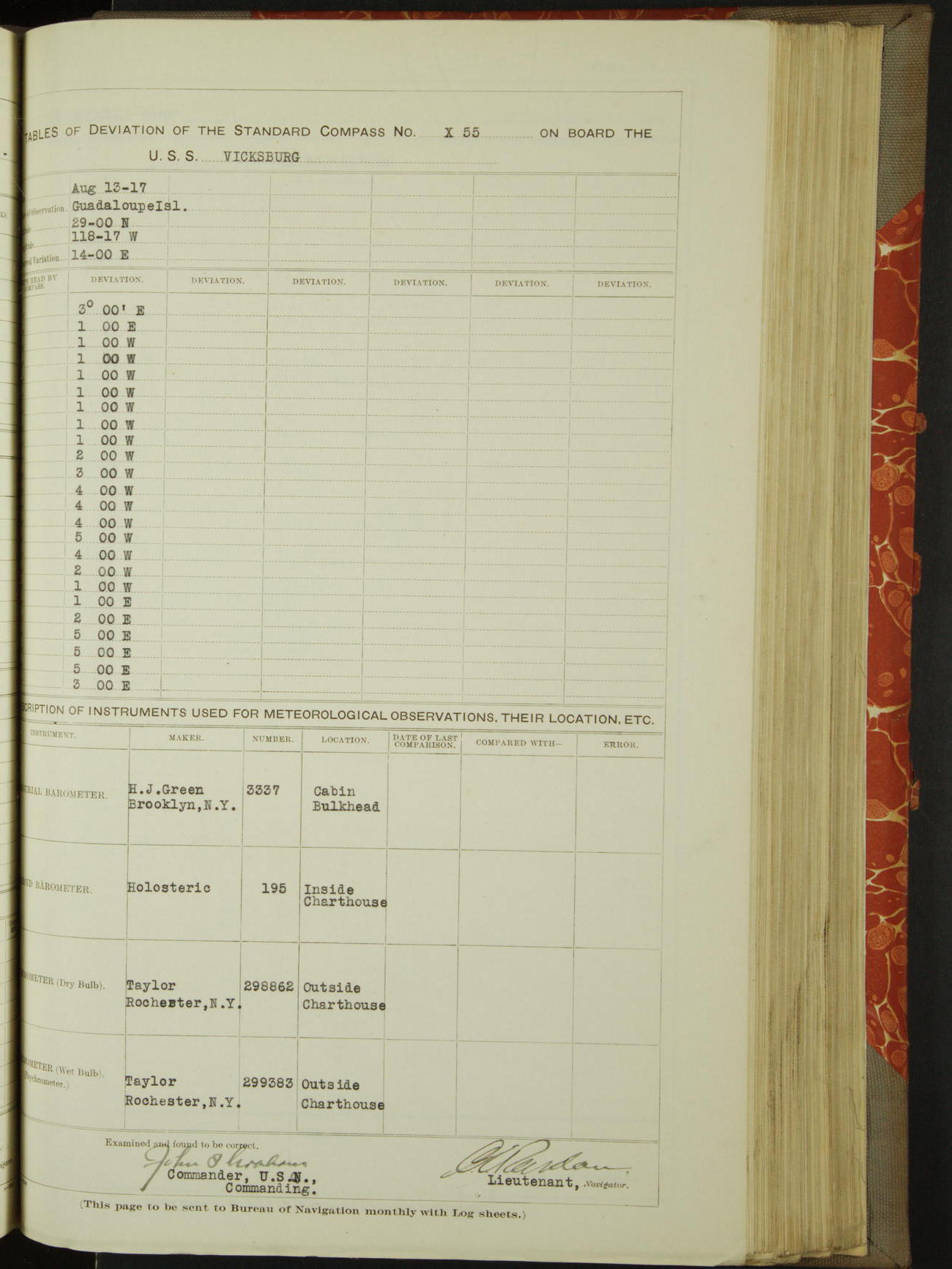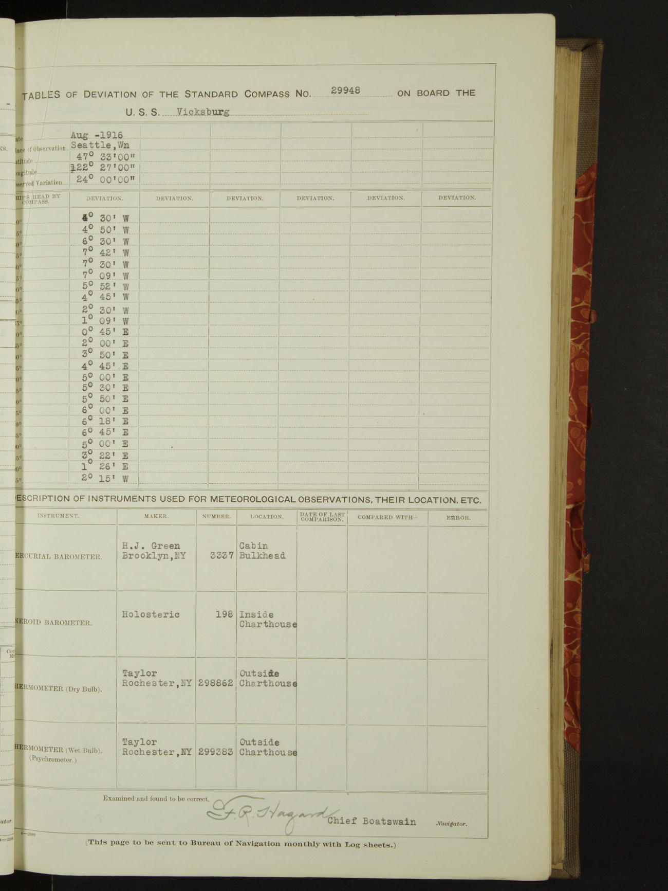Tables of deviation of the standard compass N° 29948 on board the USS Vicksburg