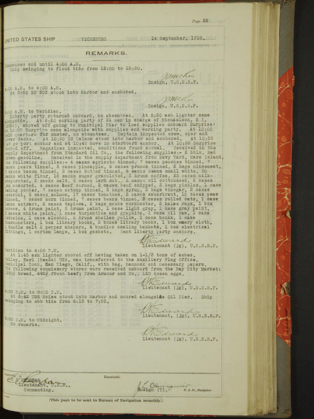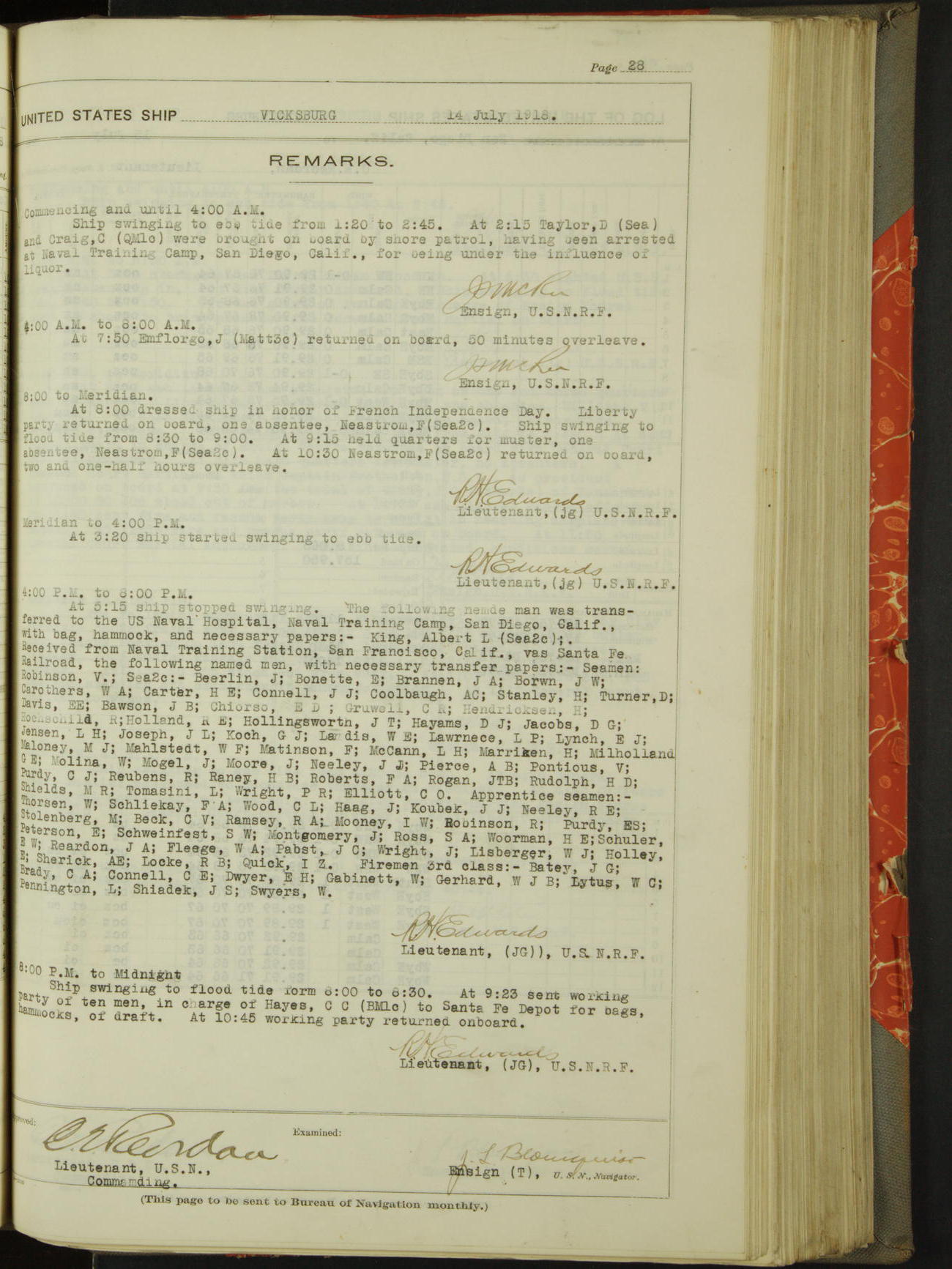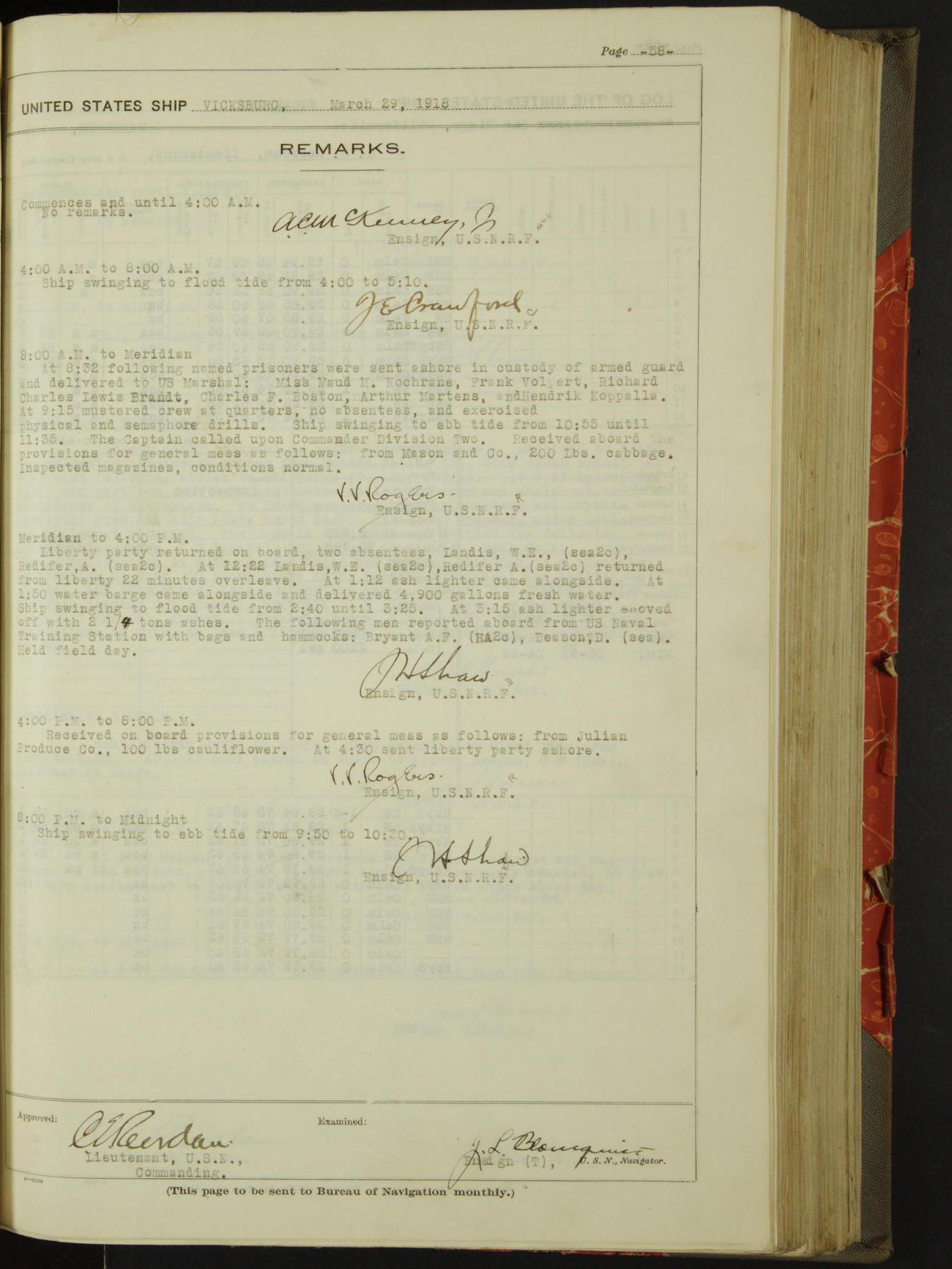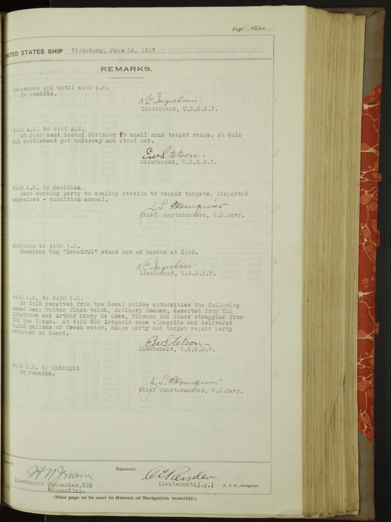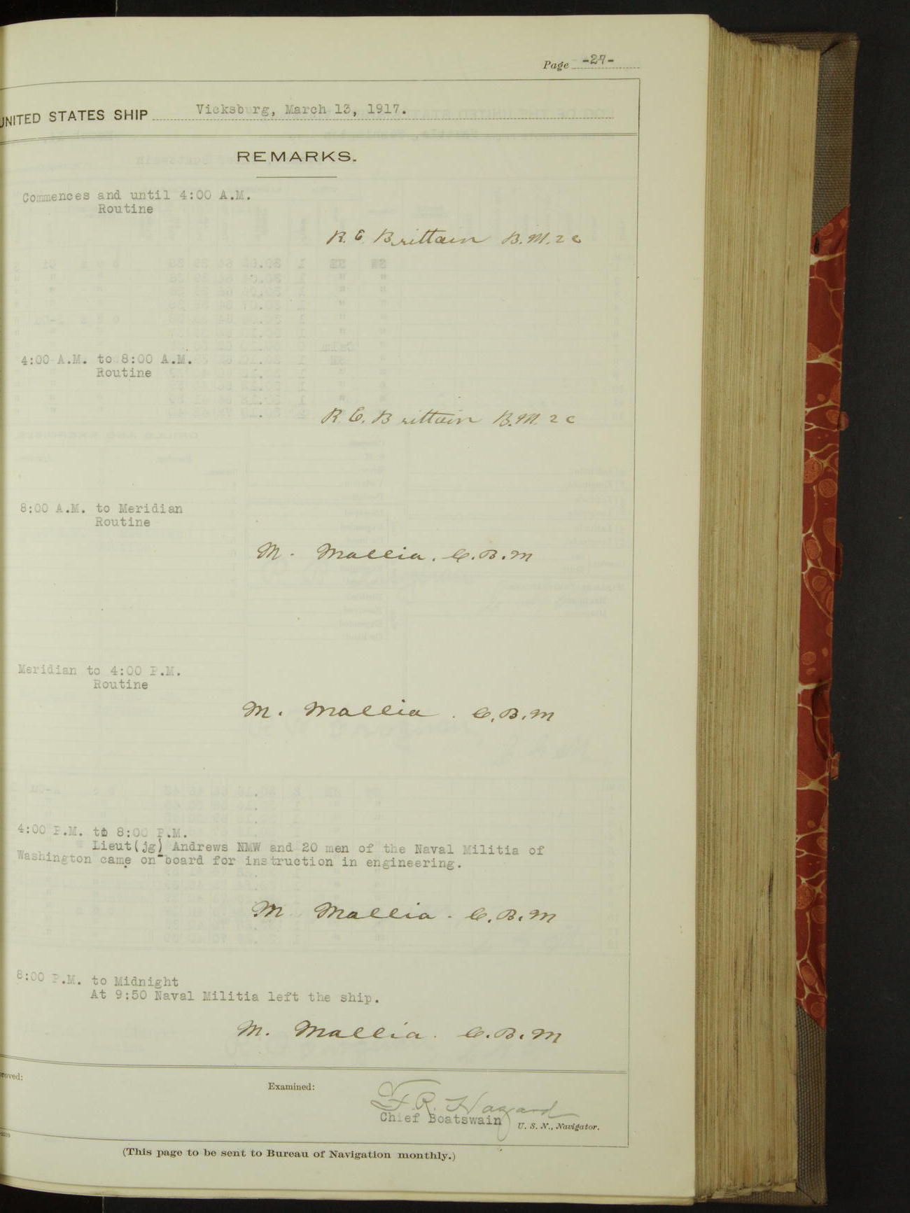 At 7:50 Ensign Andrews NMW and 26 men of the Naval Militia can aboard. Held Engineer's school.