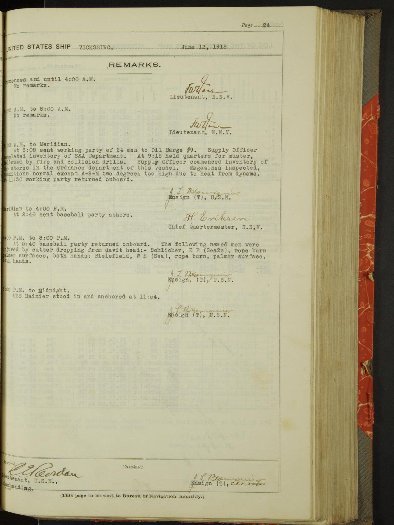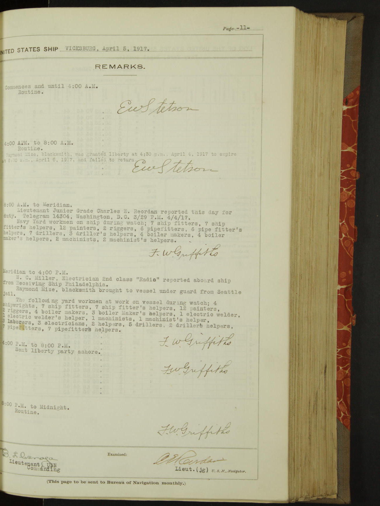 Ensign Hoffman, Ensign Dorr, Ensign Andrews and 10men of the Naval Militia of the State of Washington came on board.