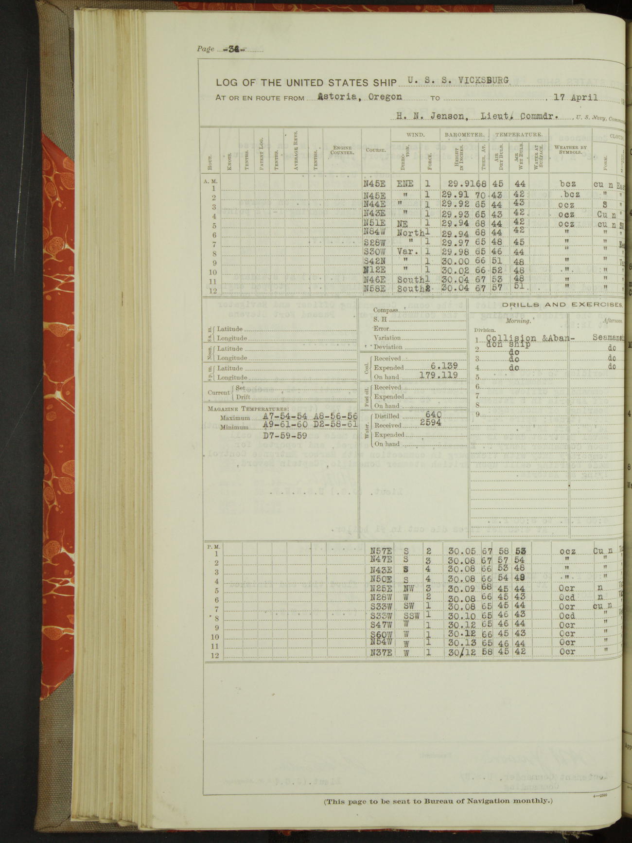 50874ec109d409075501bf27: (http://oldweather.s3.amazonaws.com/ow3/final/USS Vicksburg/vol03of04_cr2_to_jpg/vol03of04_451_1.jpg)