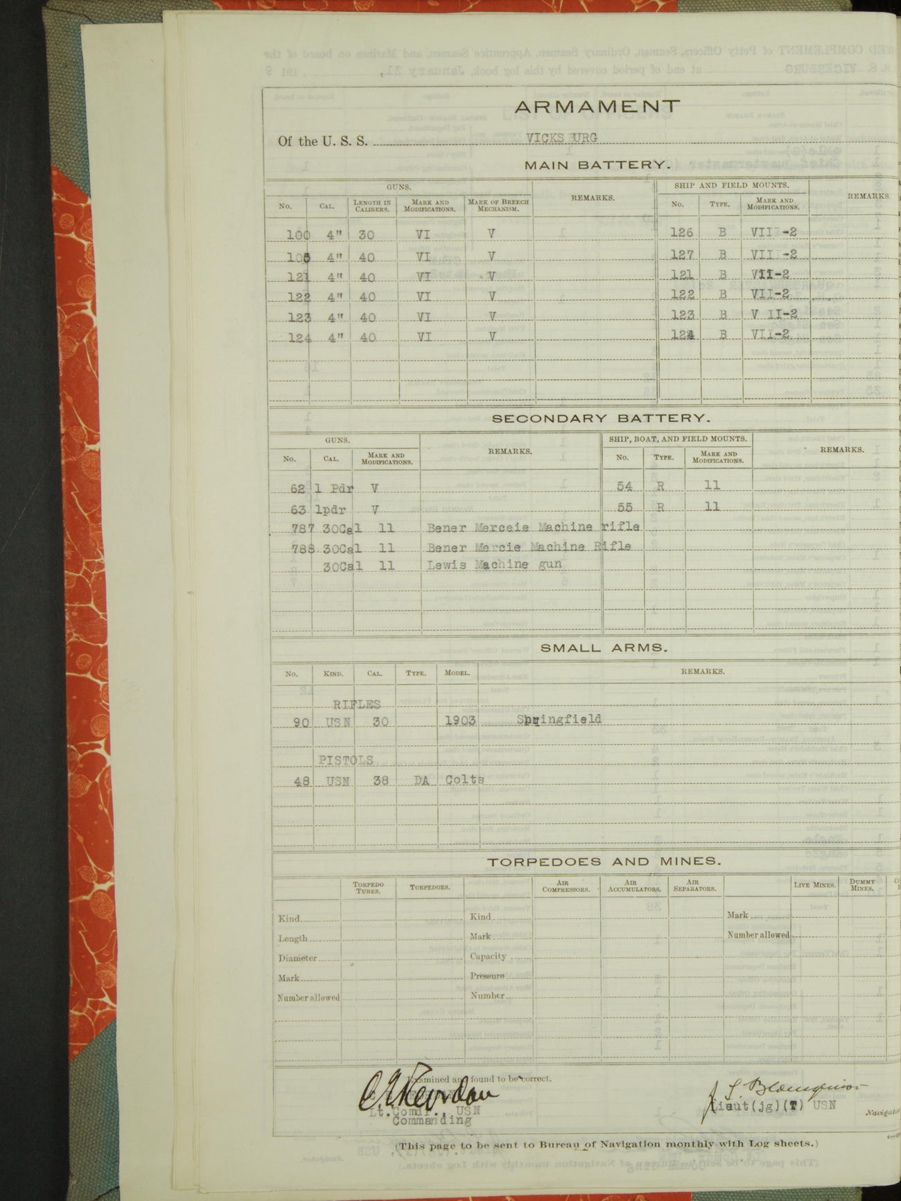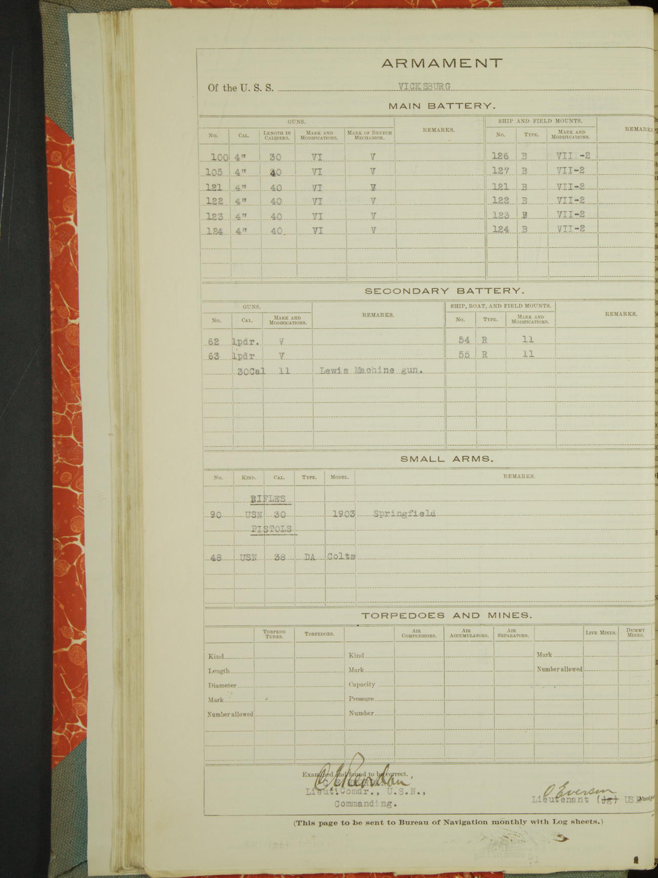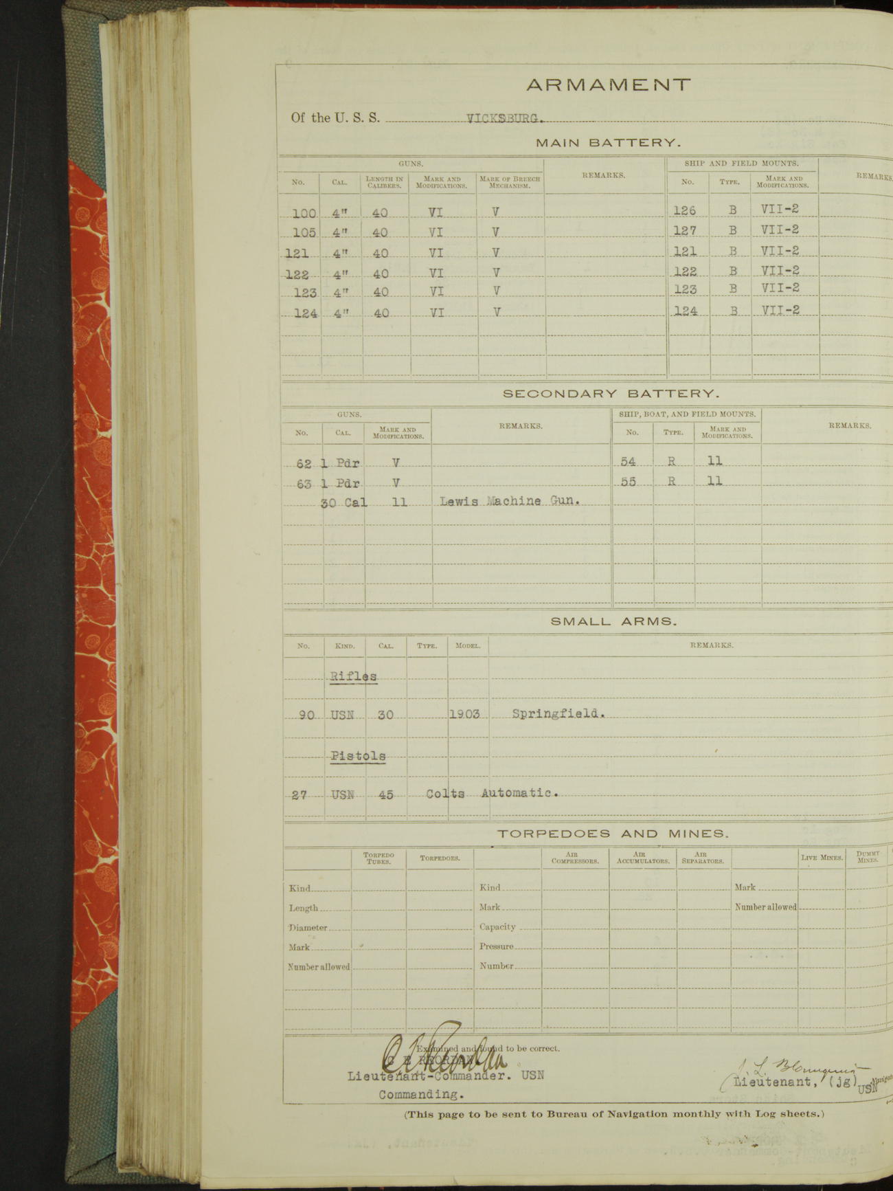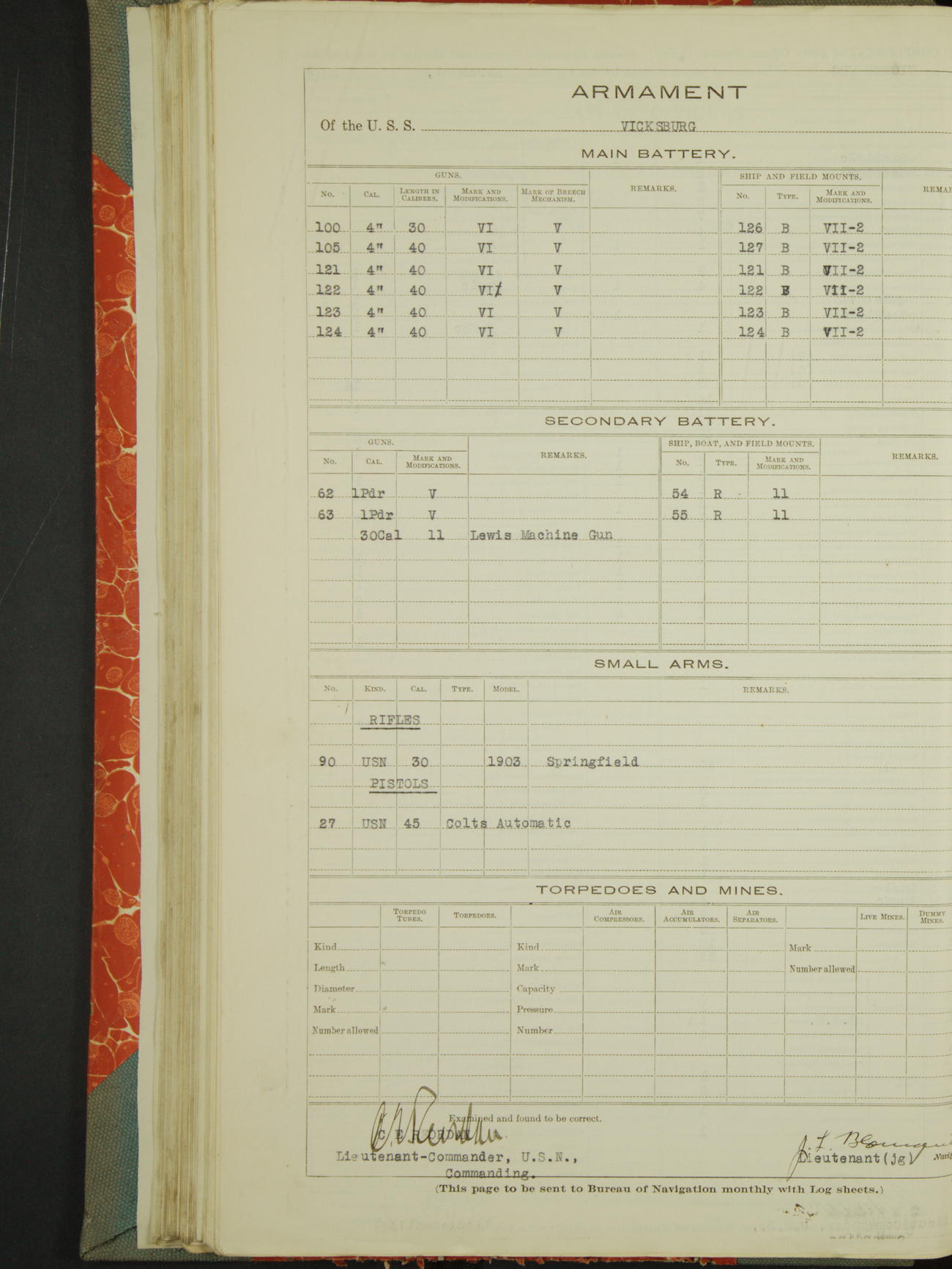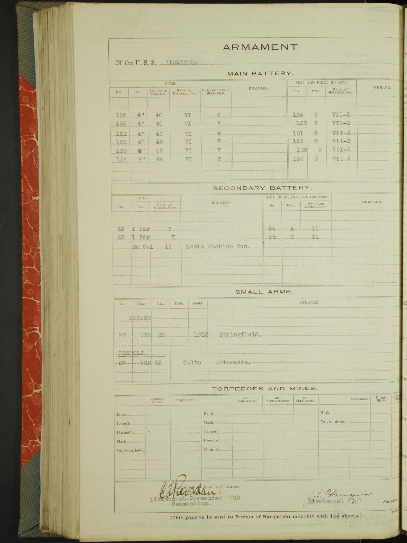 Armament of the USS "Vicksburg"