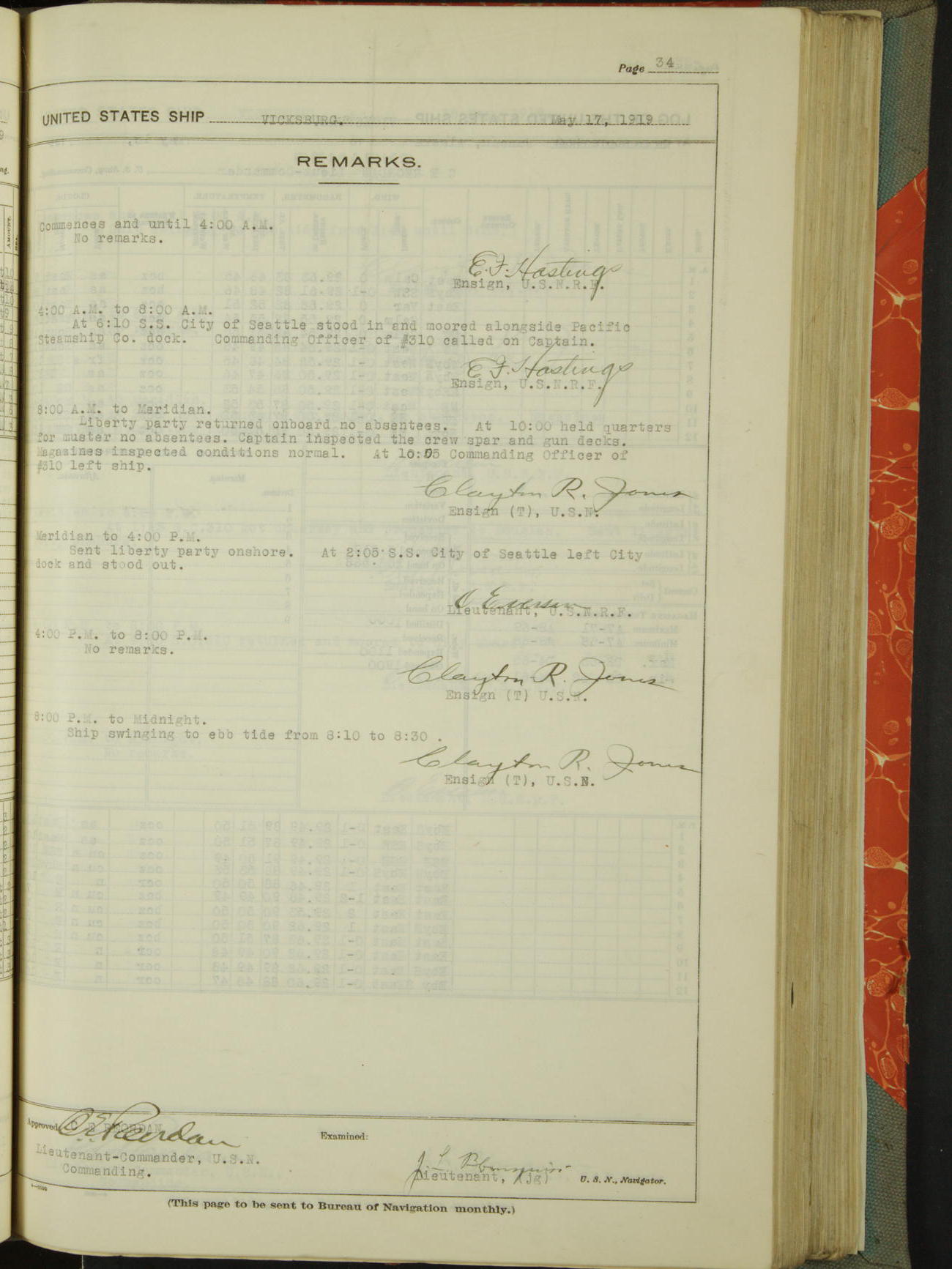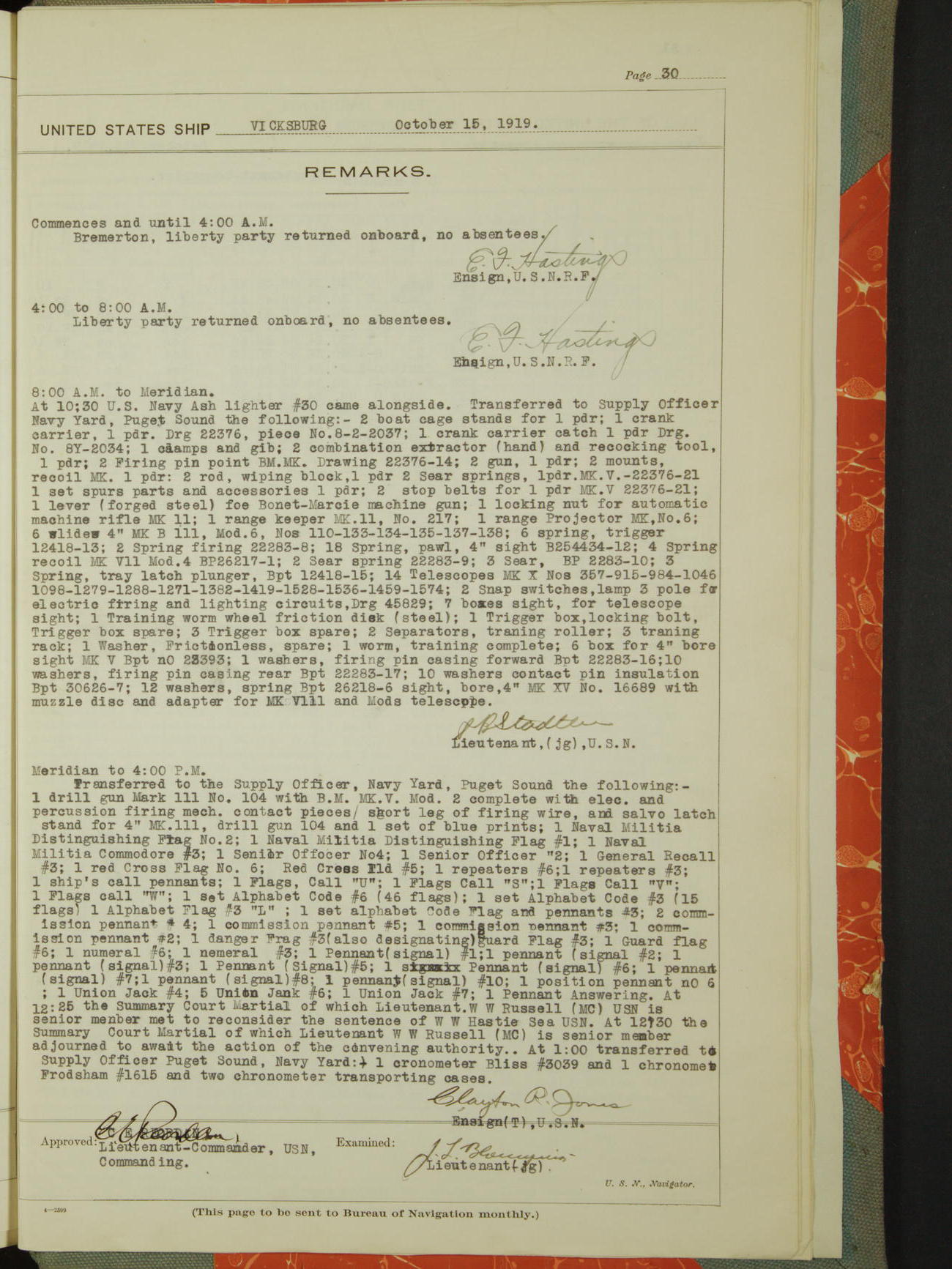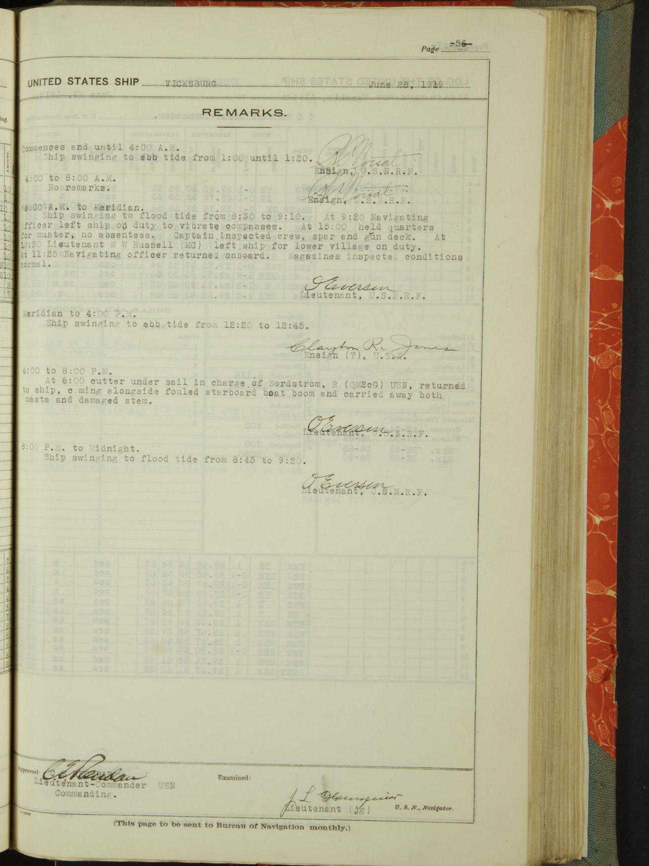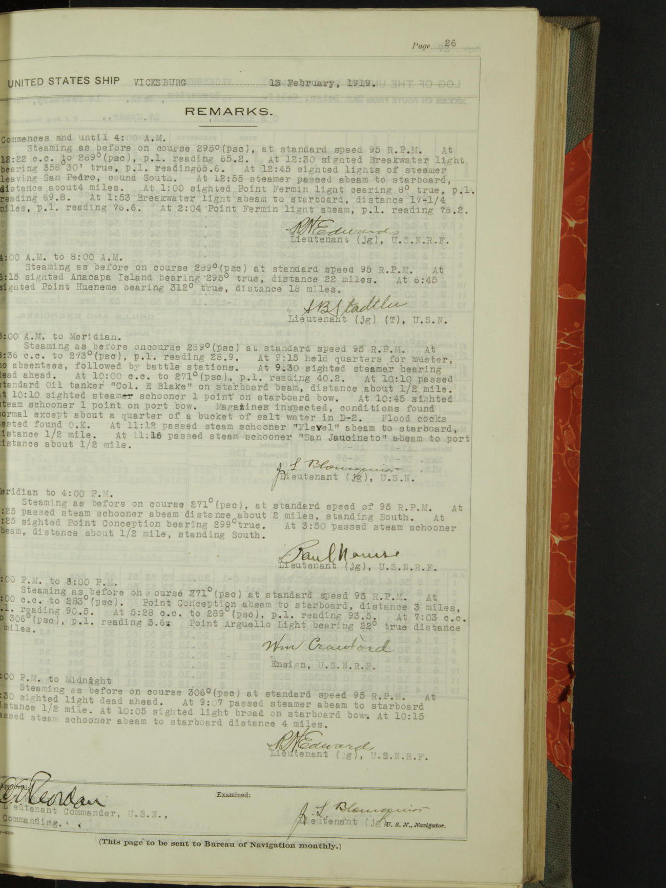 List of OfficerList of Officers attached to and on board of the USS "Vicksburg", commanded by Charles E Reordan, Lieutenant Commander, US Navy, during the period covered by this Log book with date of reporting for duty, detachment, transfer or death from ...