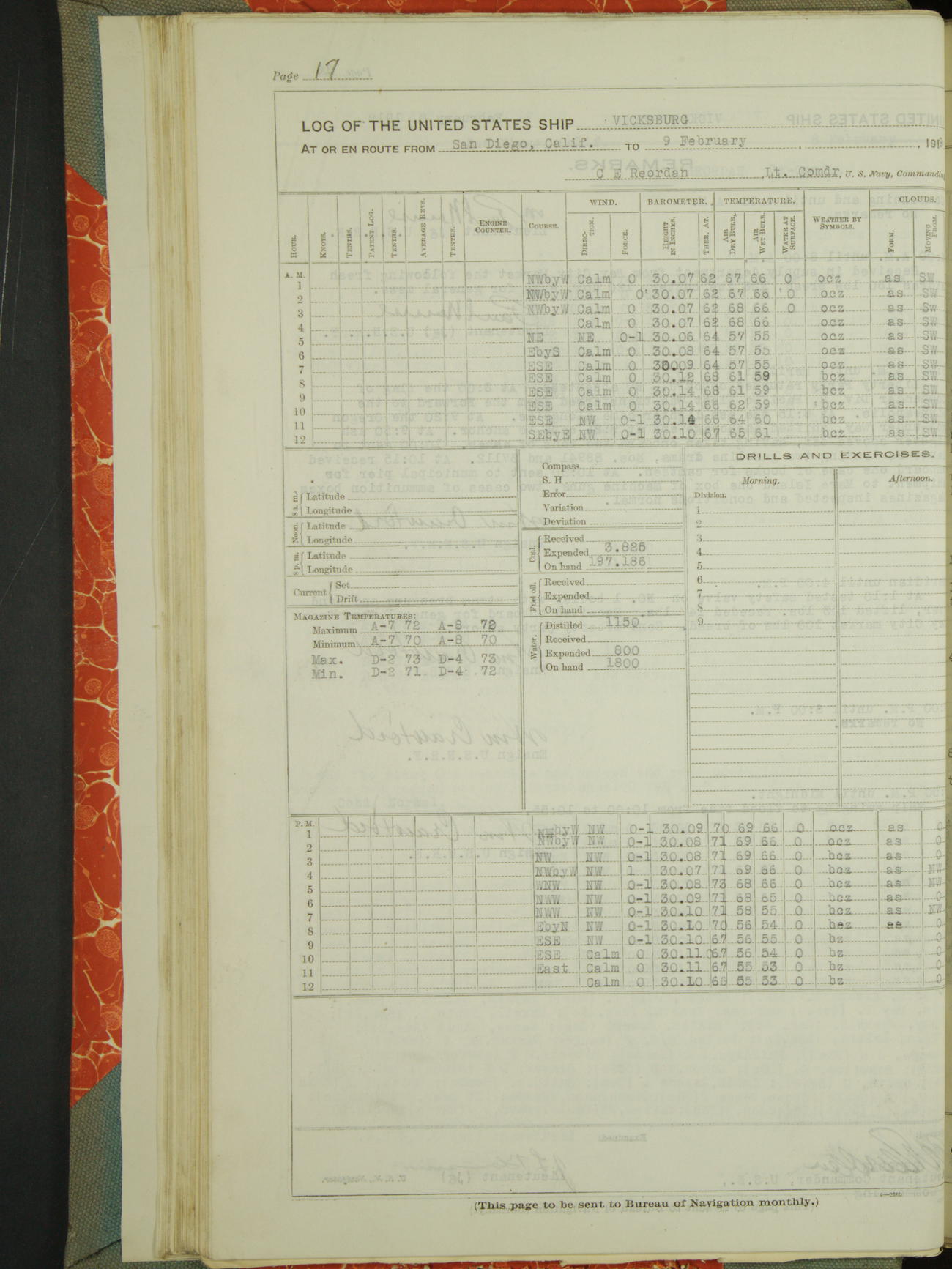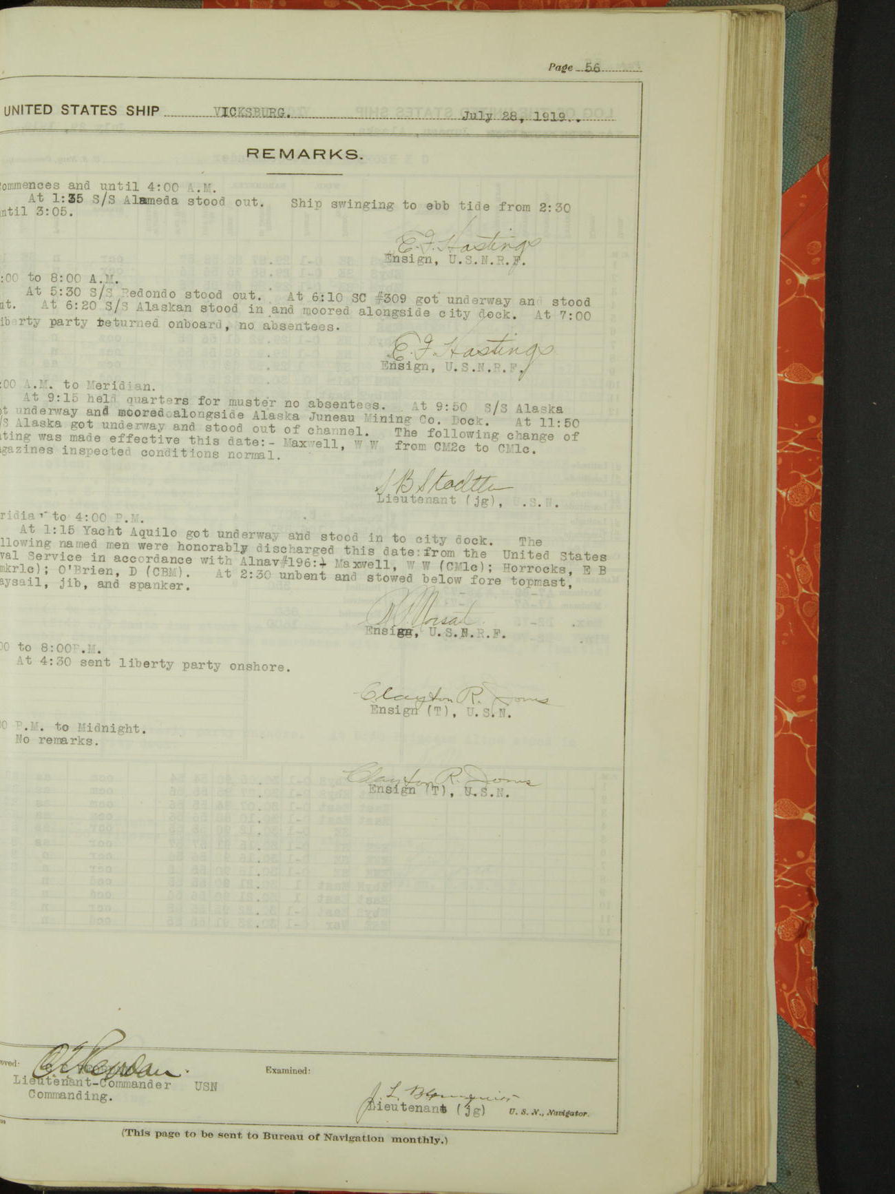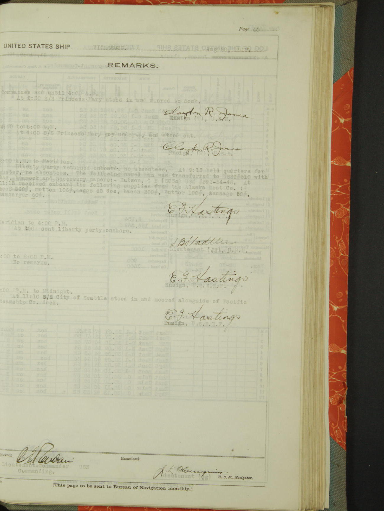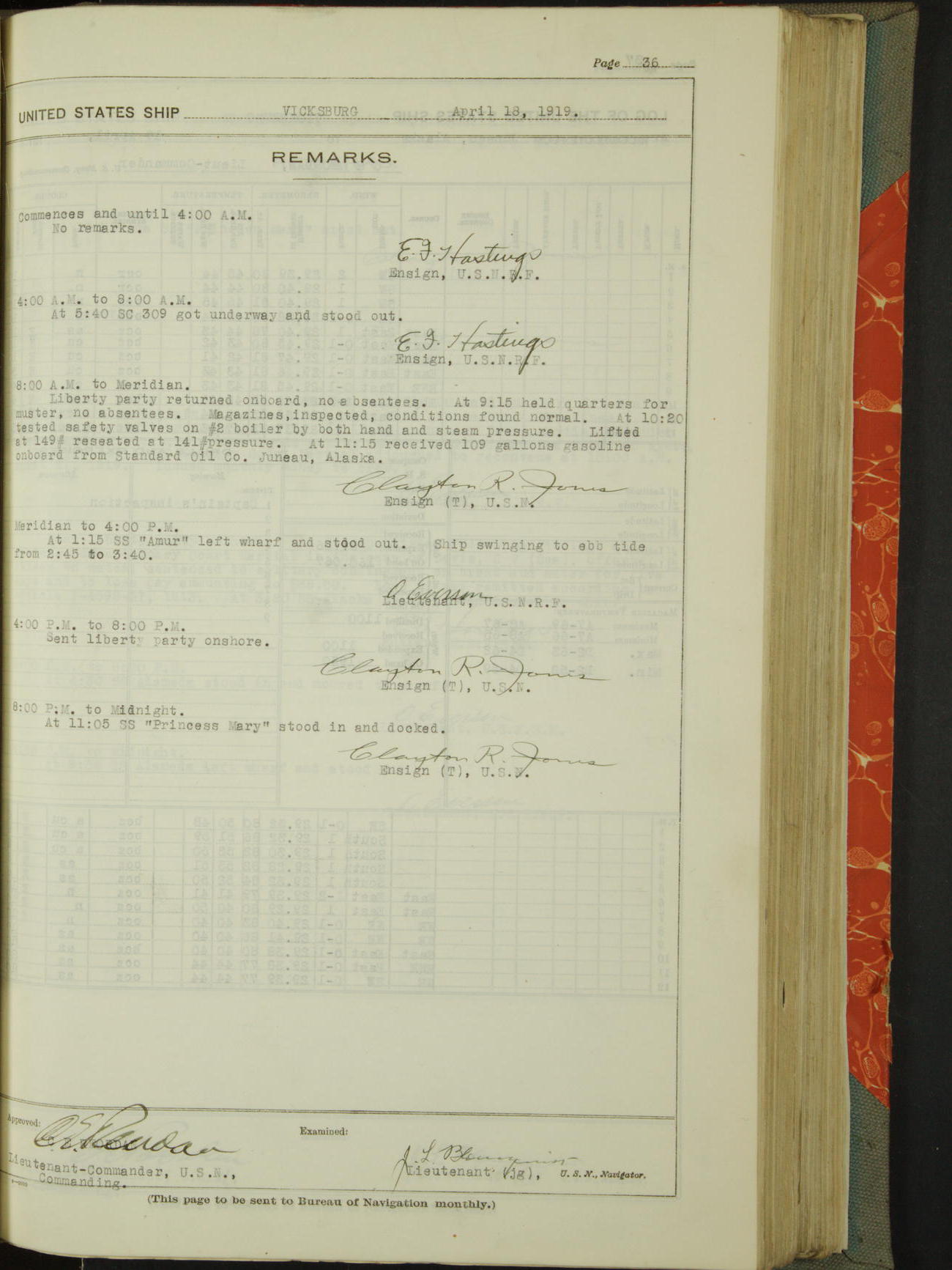 List of OfficerList of Officers attached to and on board of the USS "Vicksburg", commanded by Charles E Reordan, Lieutenant Commander, US Navy, during the period covered by this Log book with date of reporting for duty, detachment, transfer or death from ...