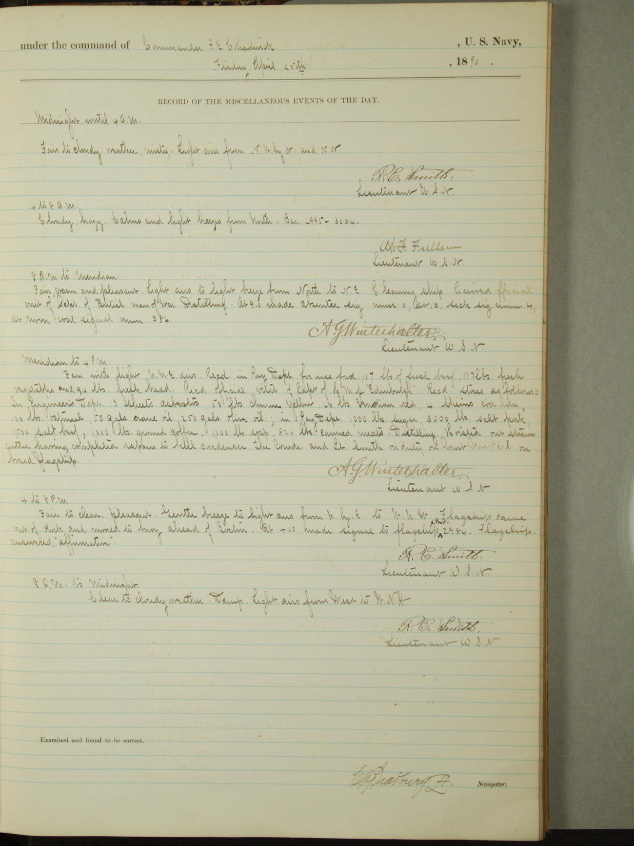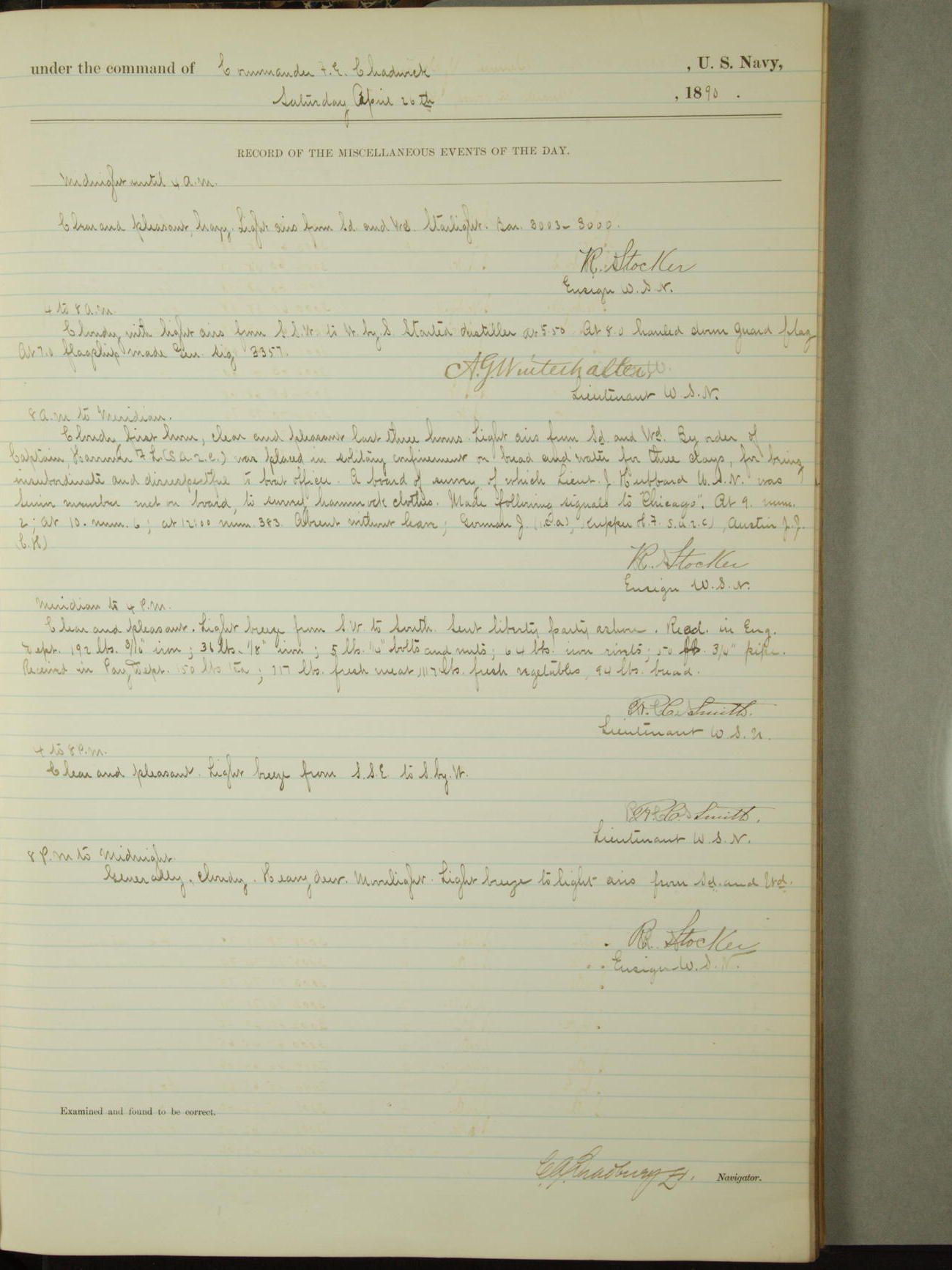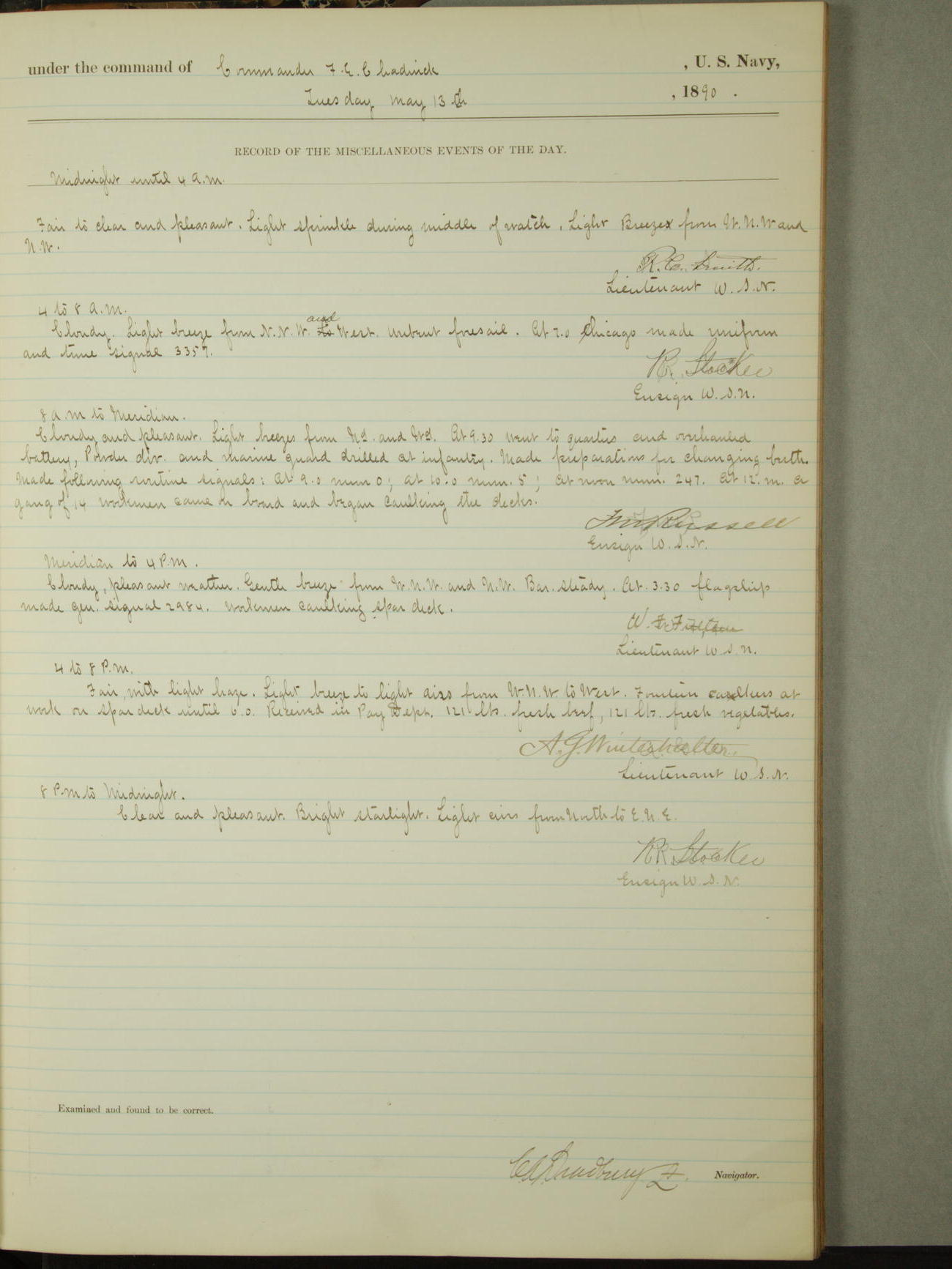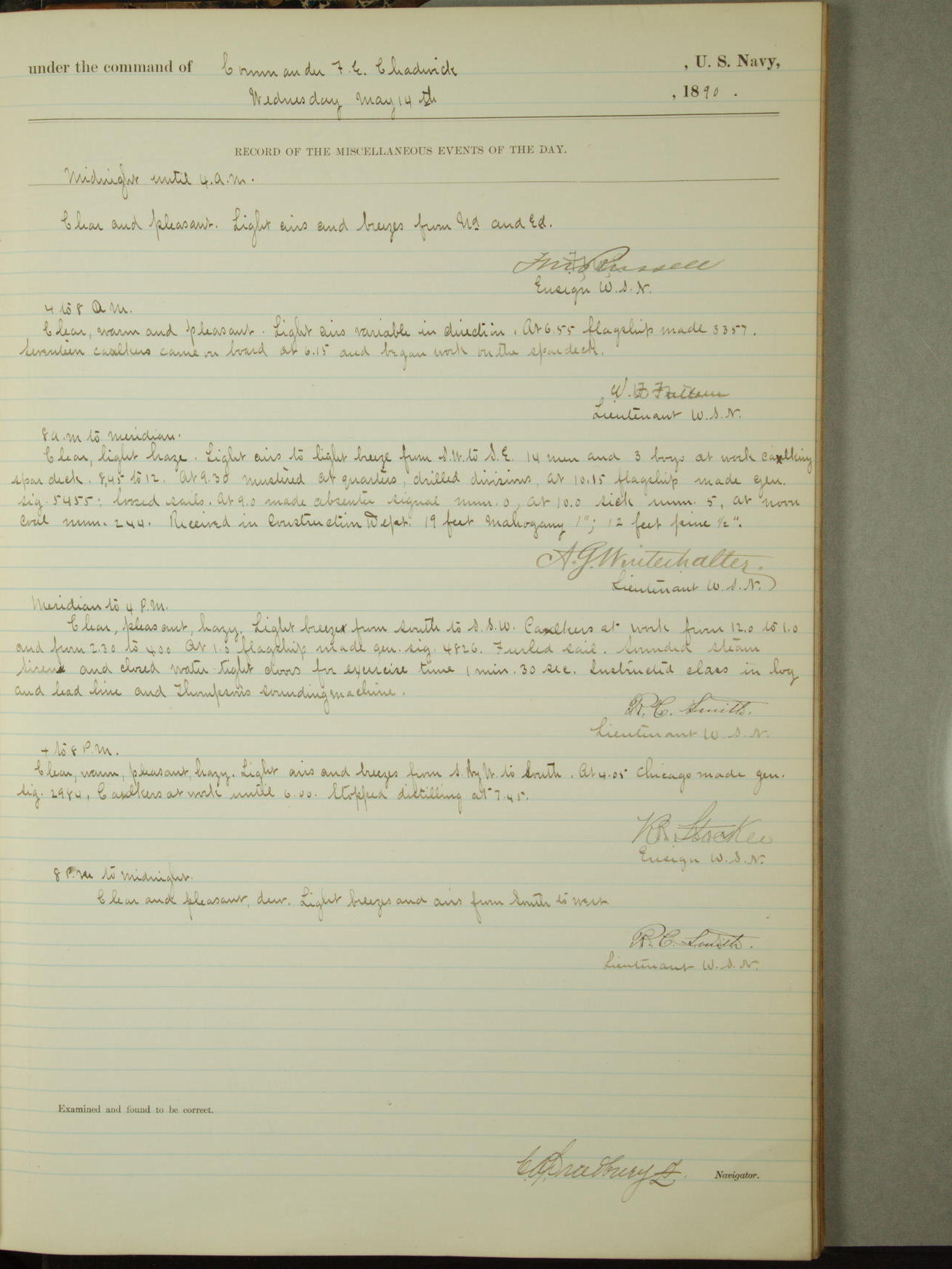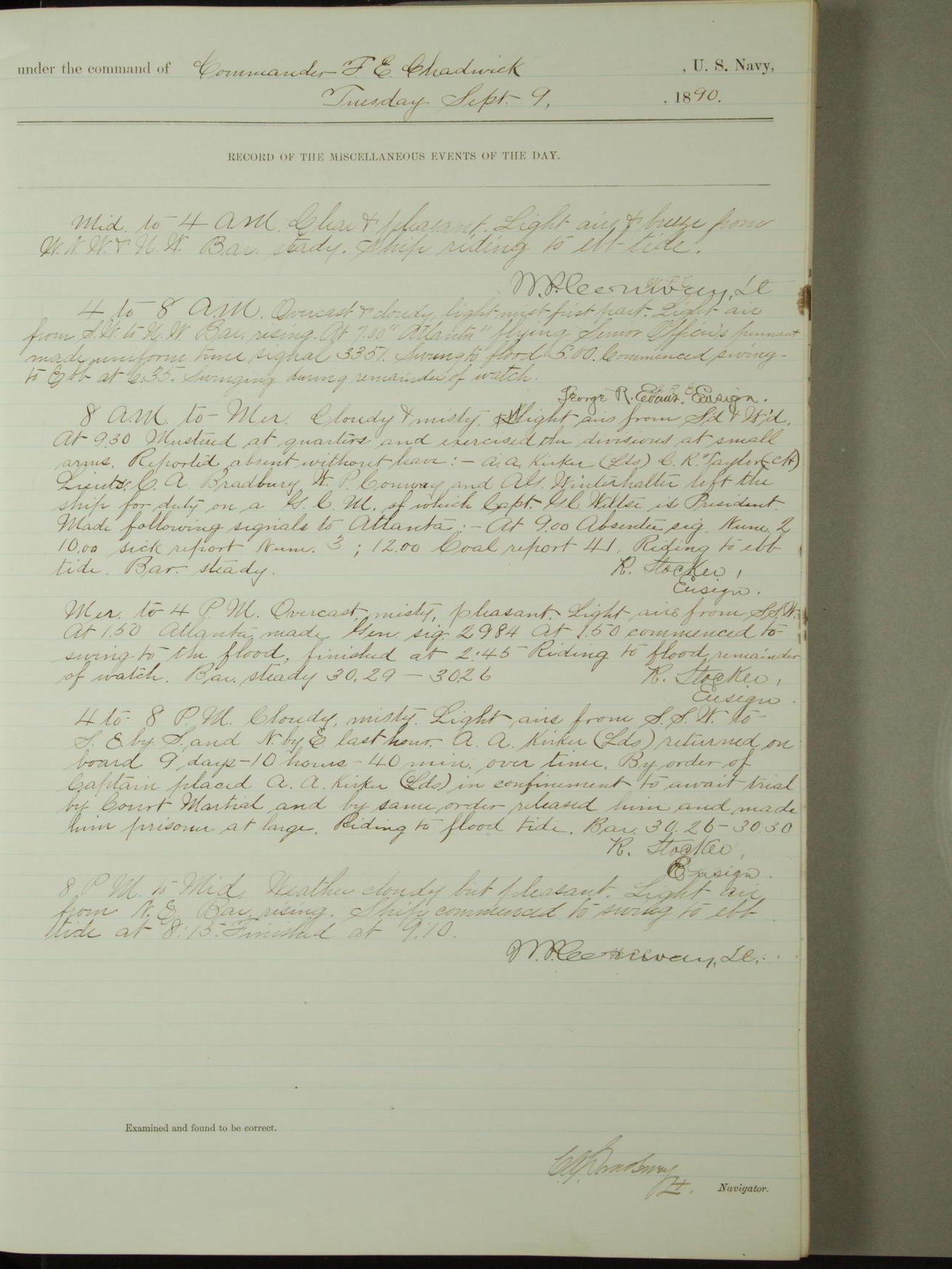 [Signed by] C.A. Bradbury, Lieutenant, Navigator