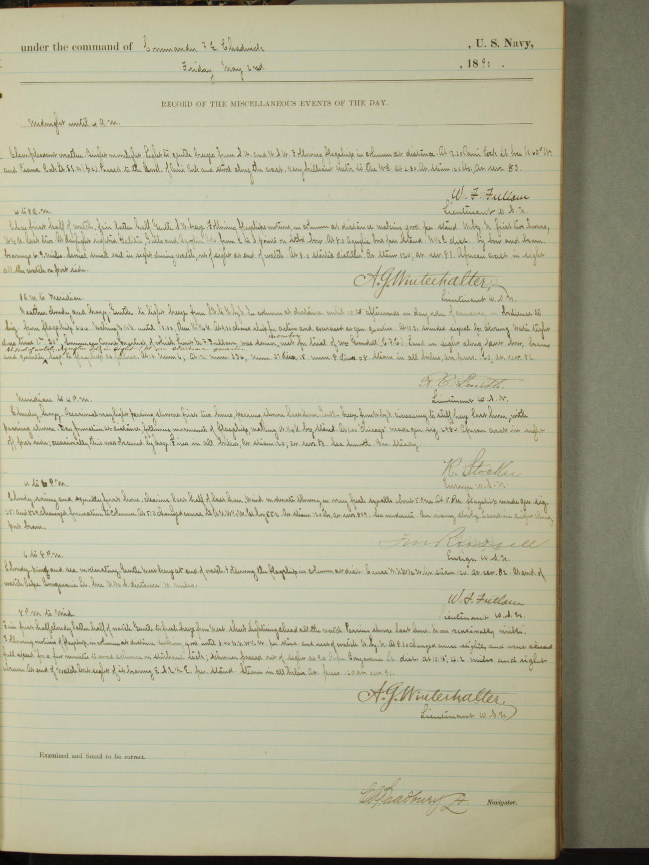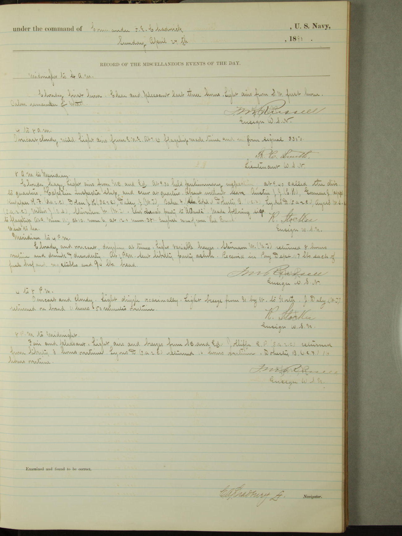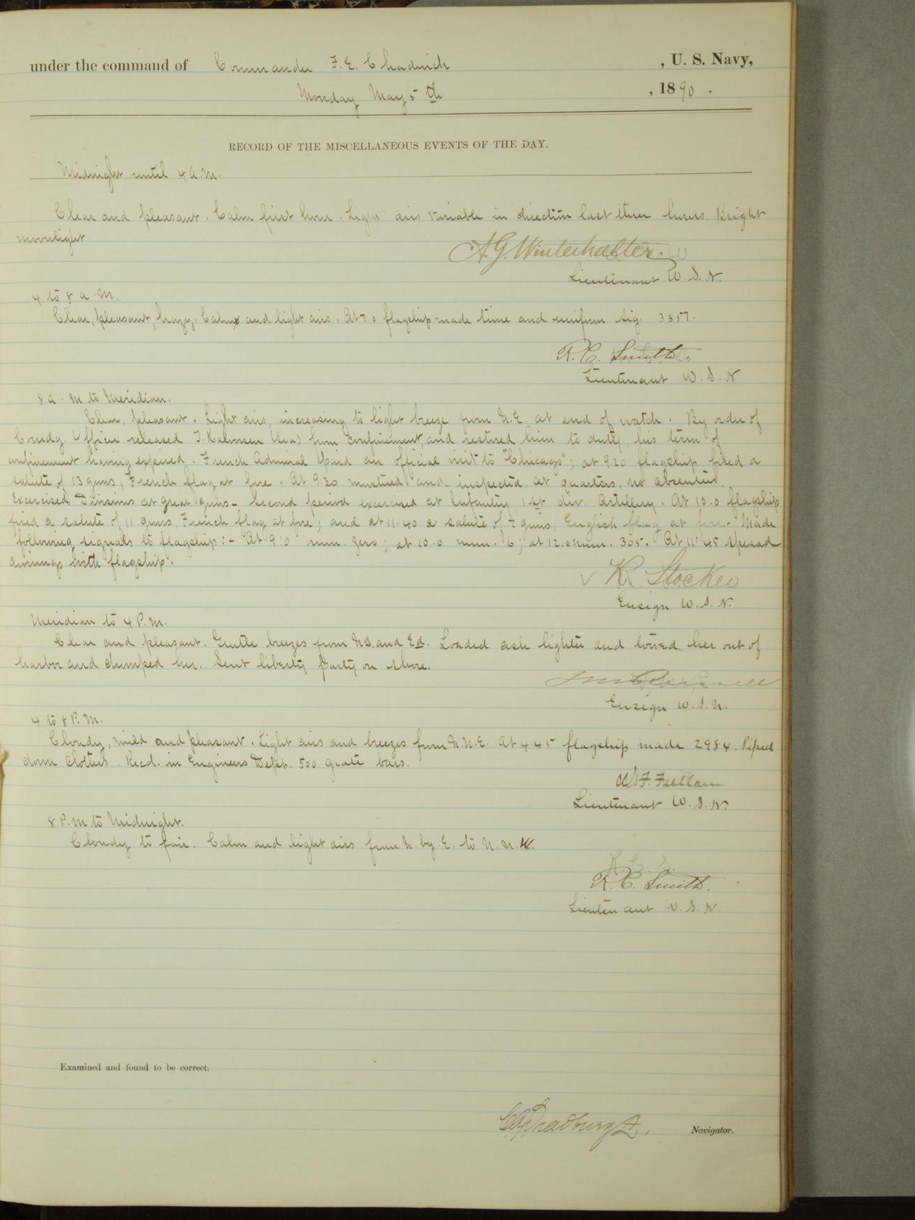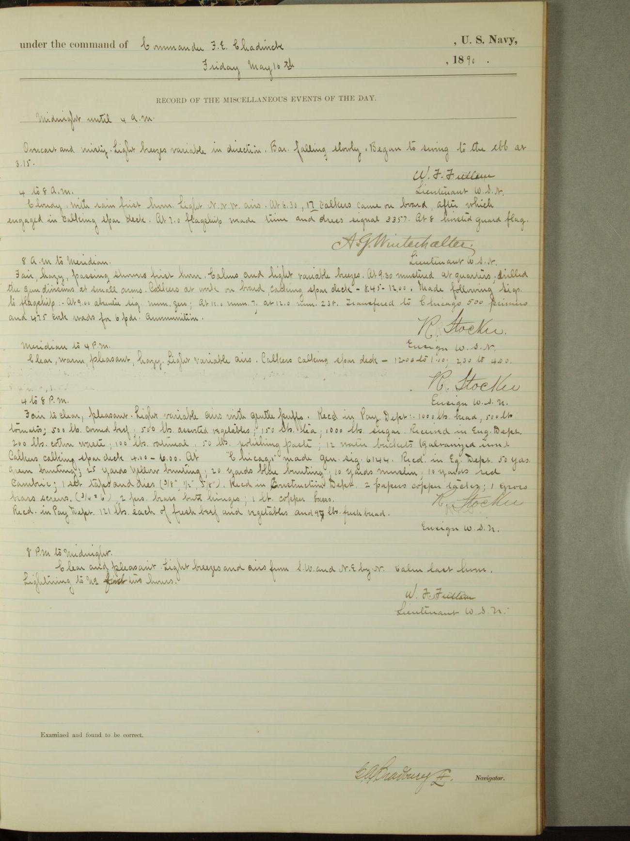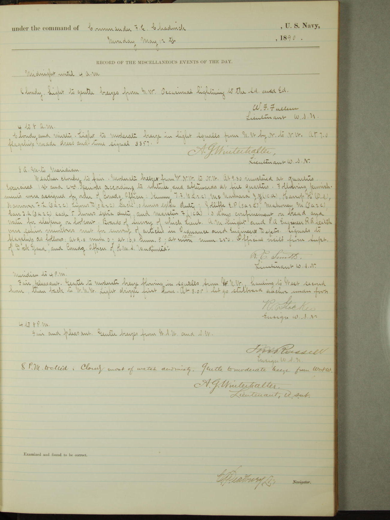 [Signed by] C.A. Bradbury, Lieutenant, Navigator