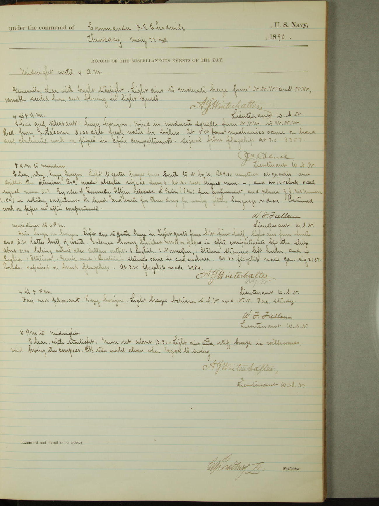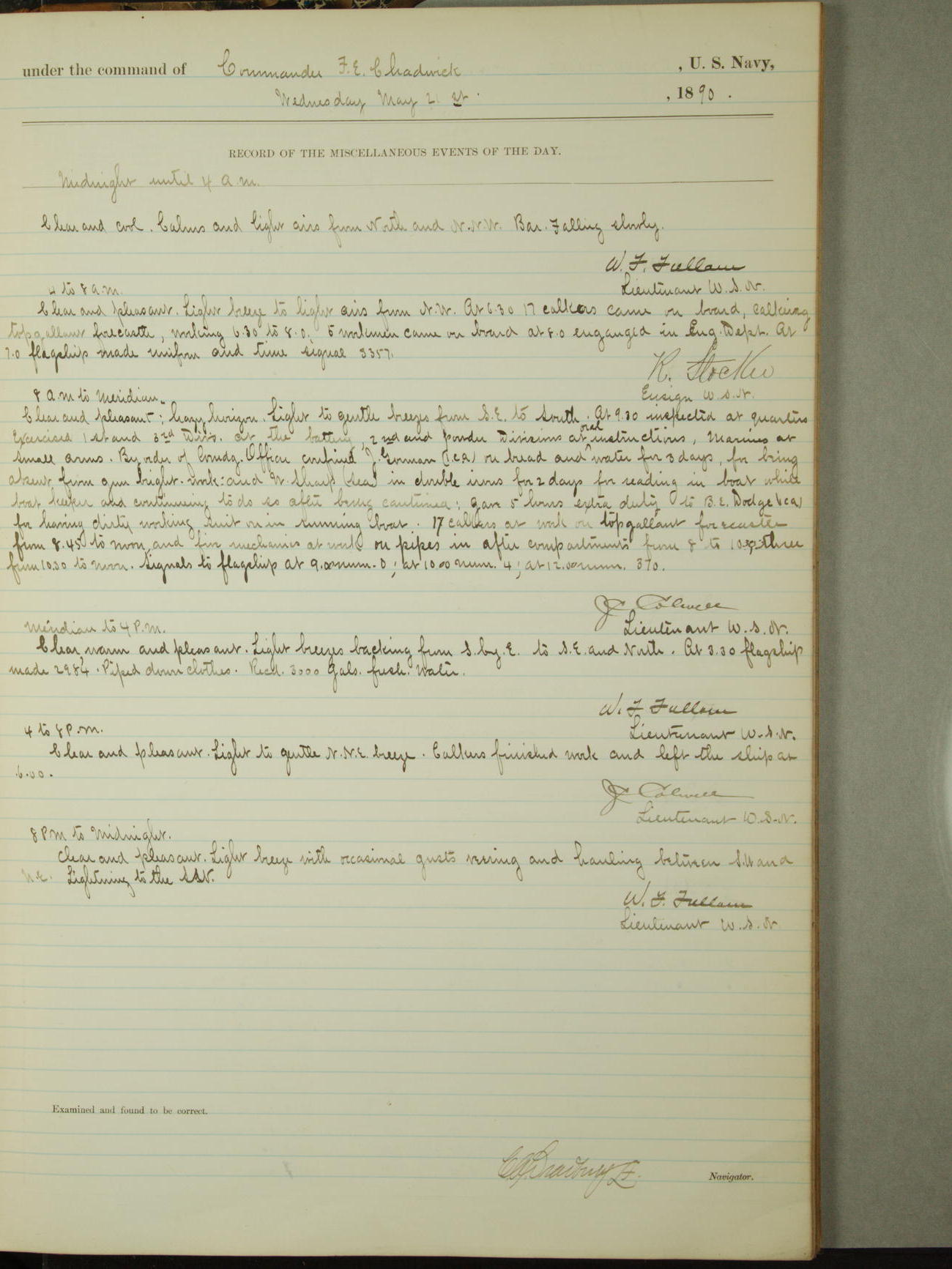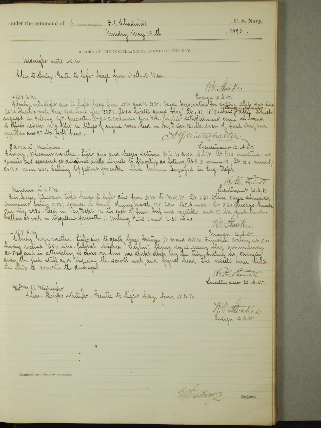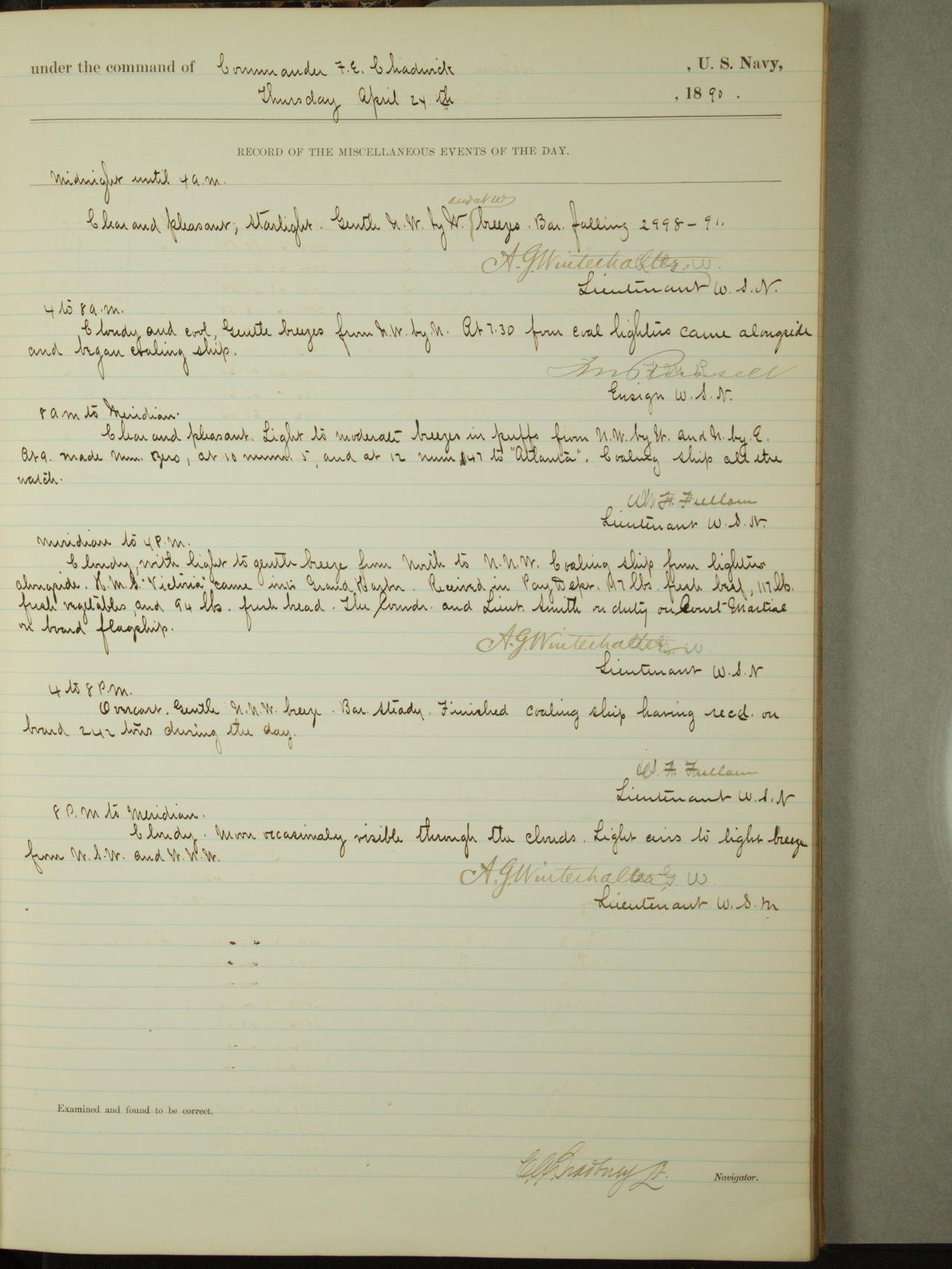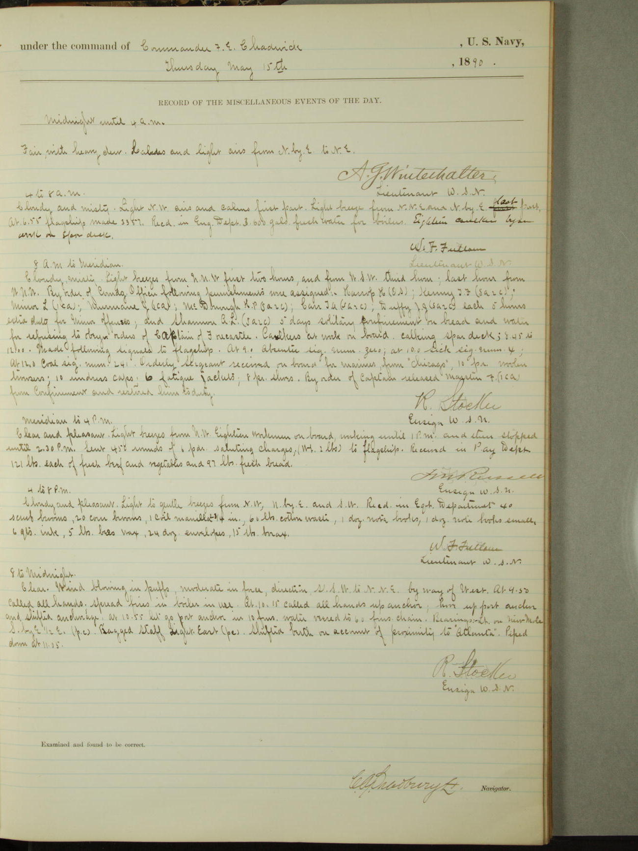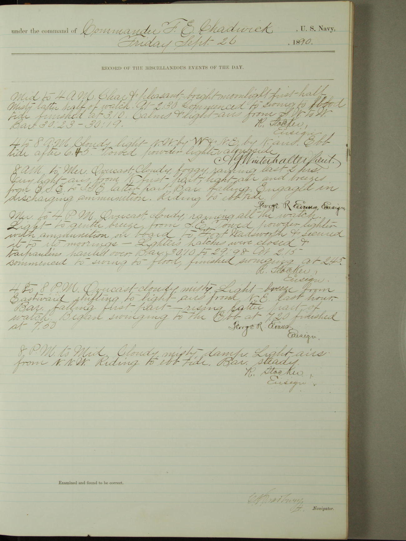 [Signed by] C.A. Bradbury, Lieutenant, Navigator