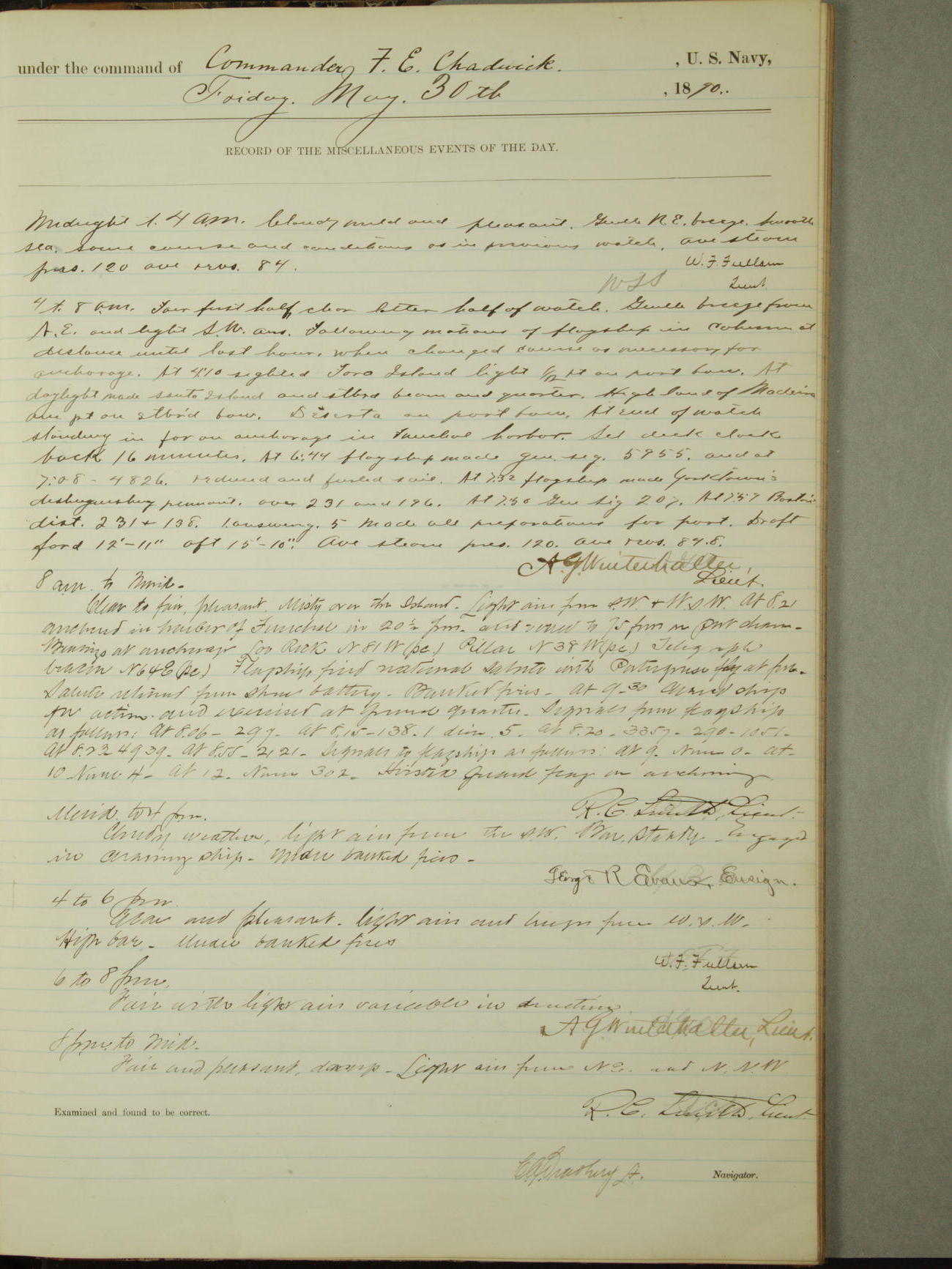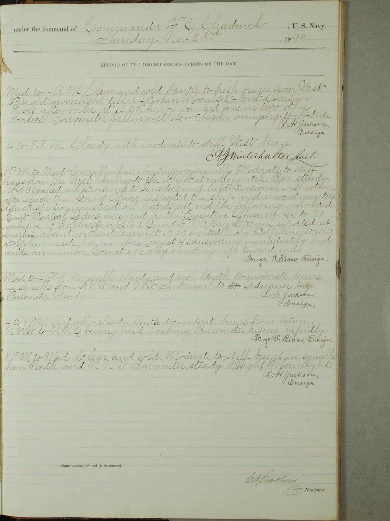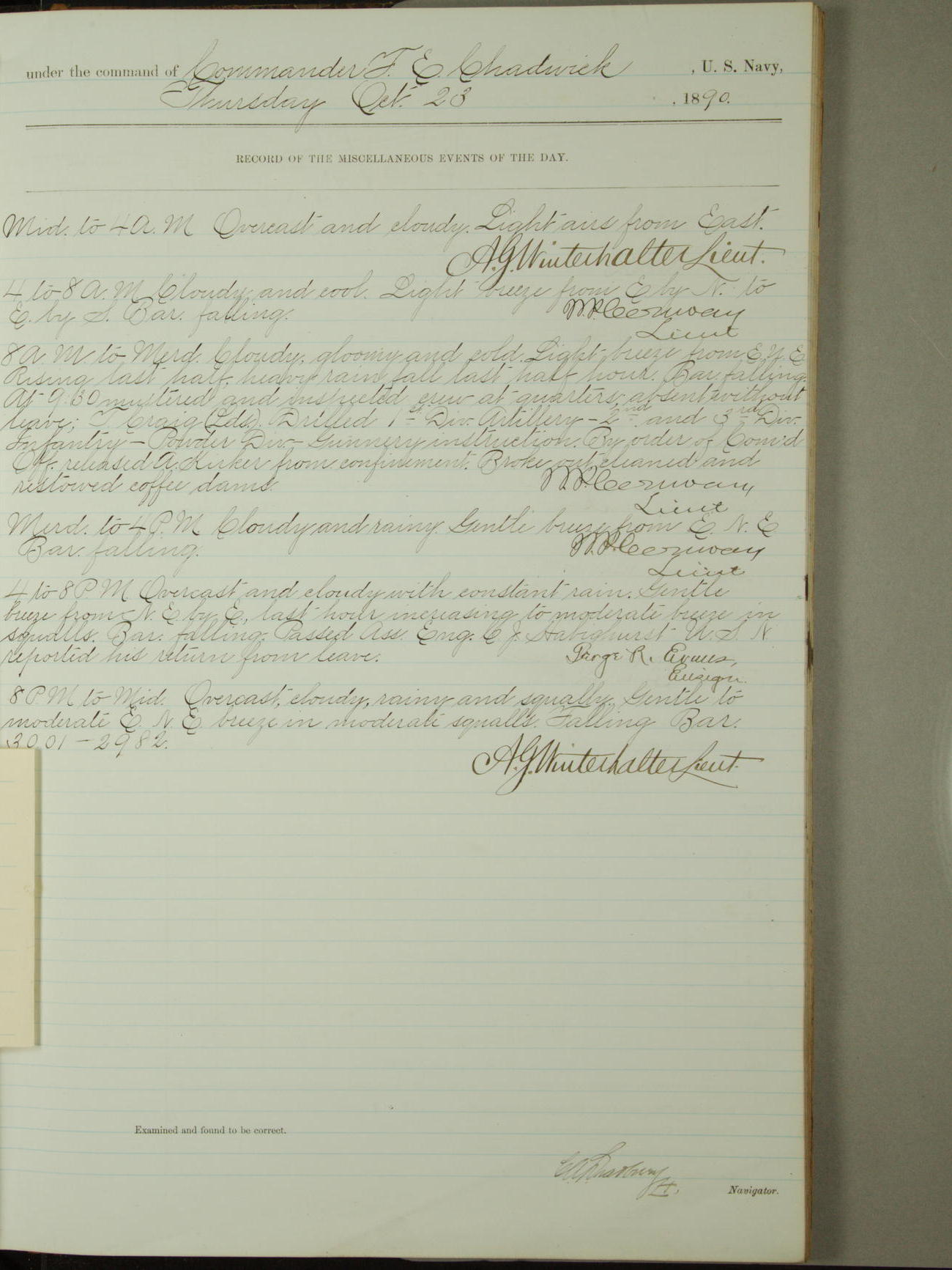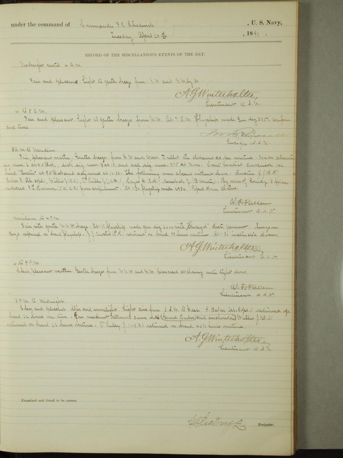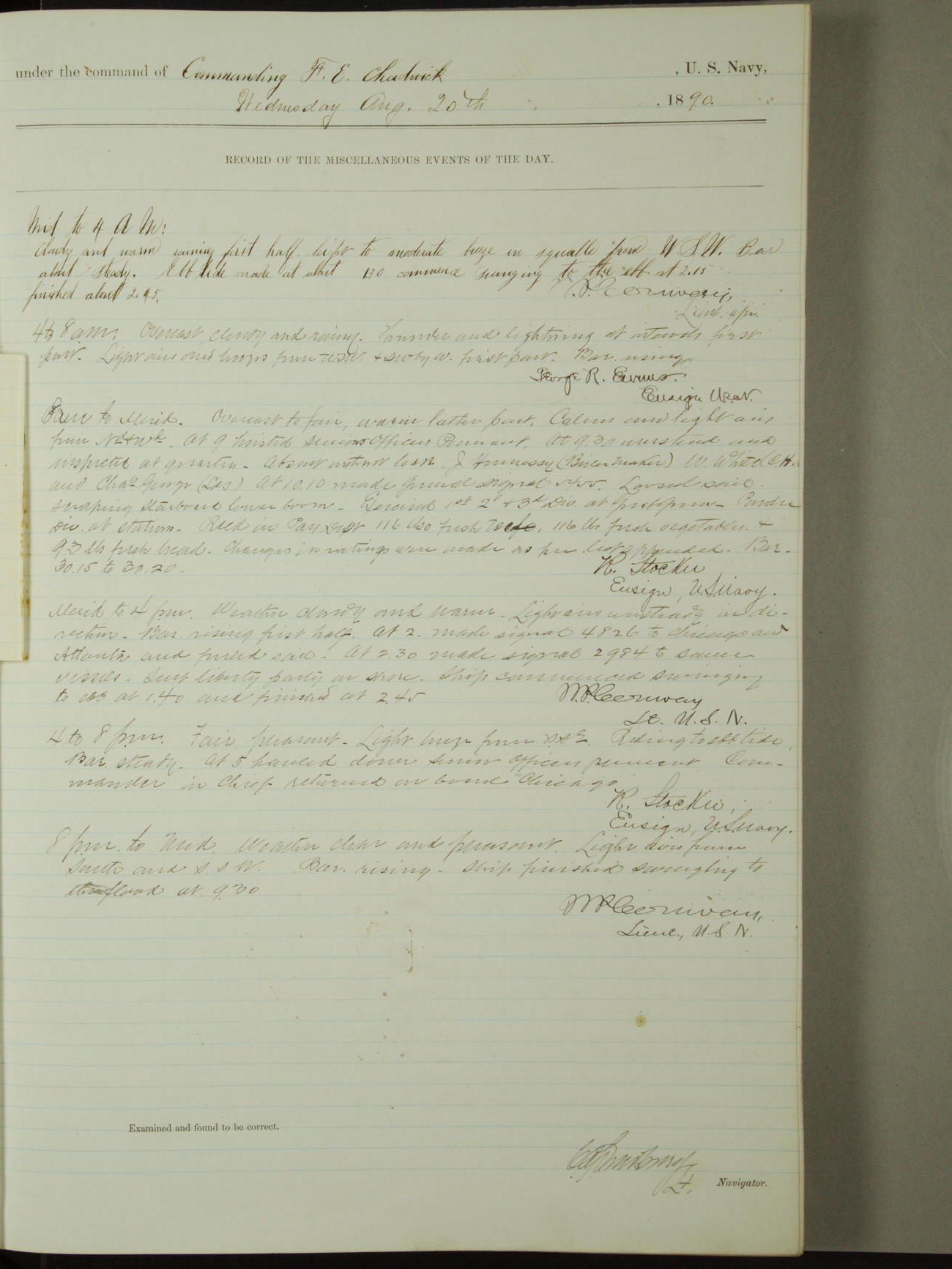 [Signed by] C.A. Bradbury, Lieutenant, Navigator