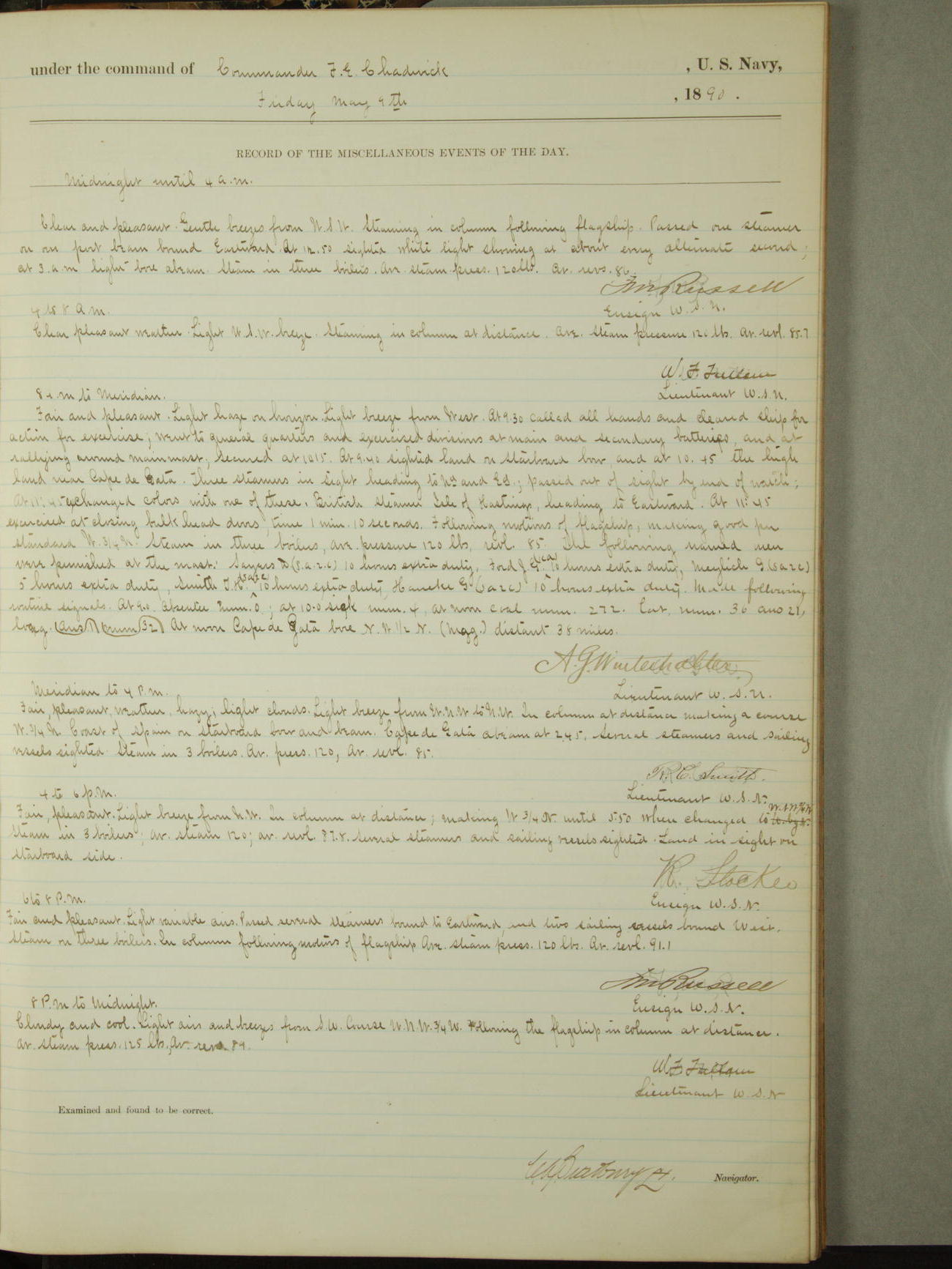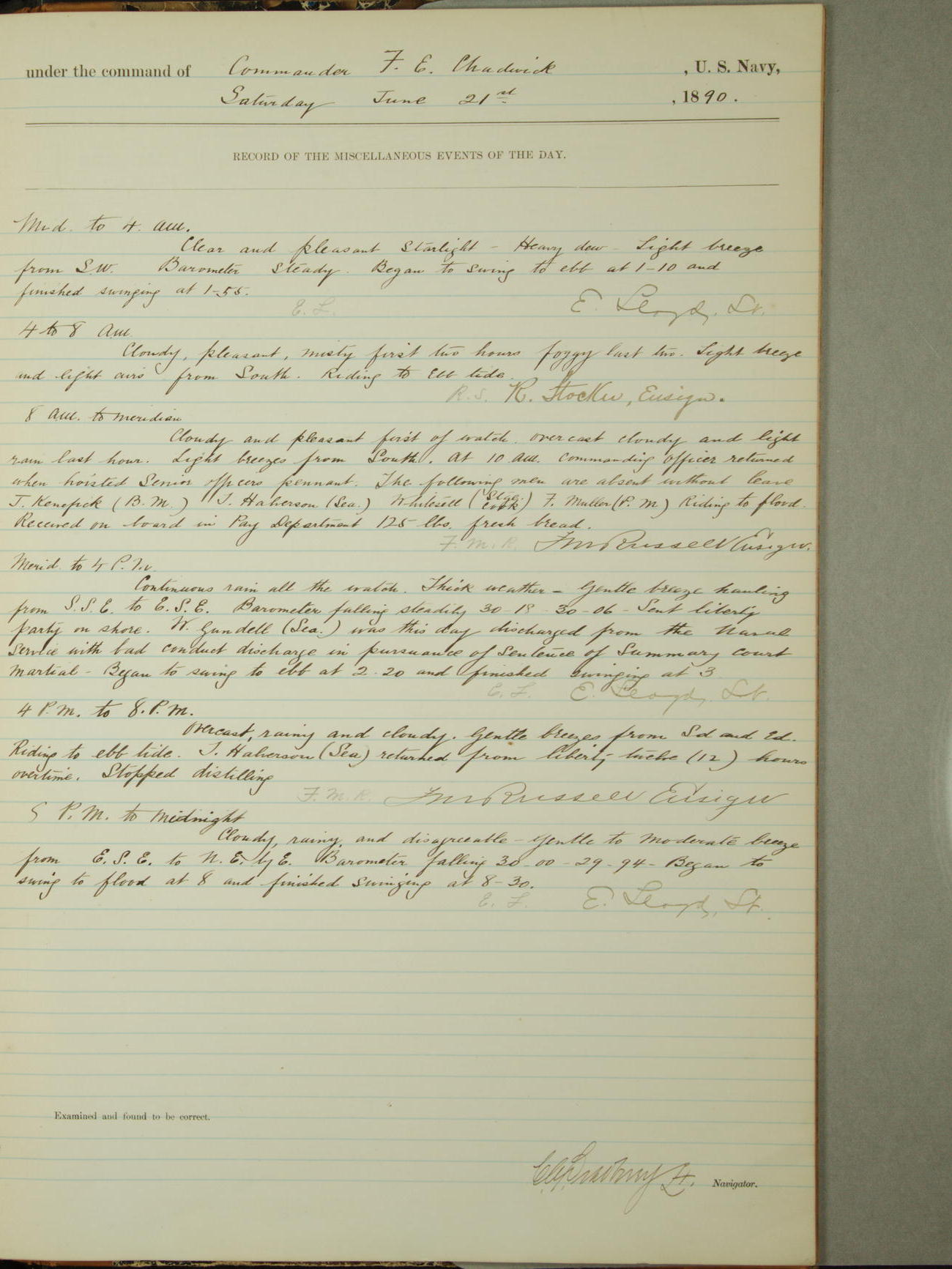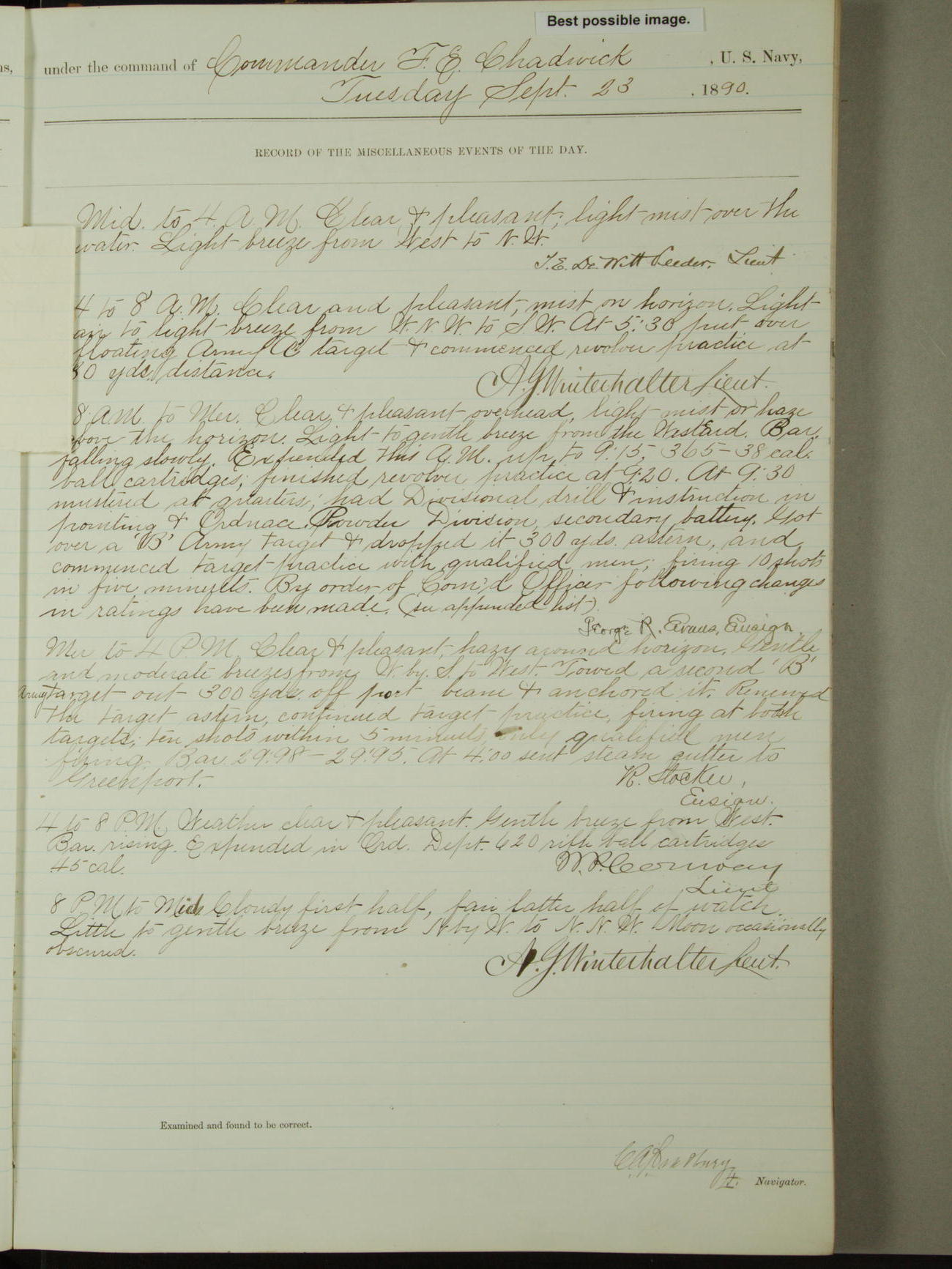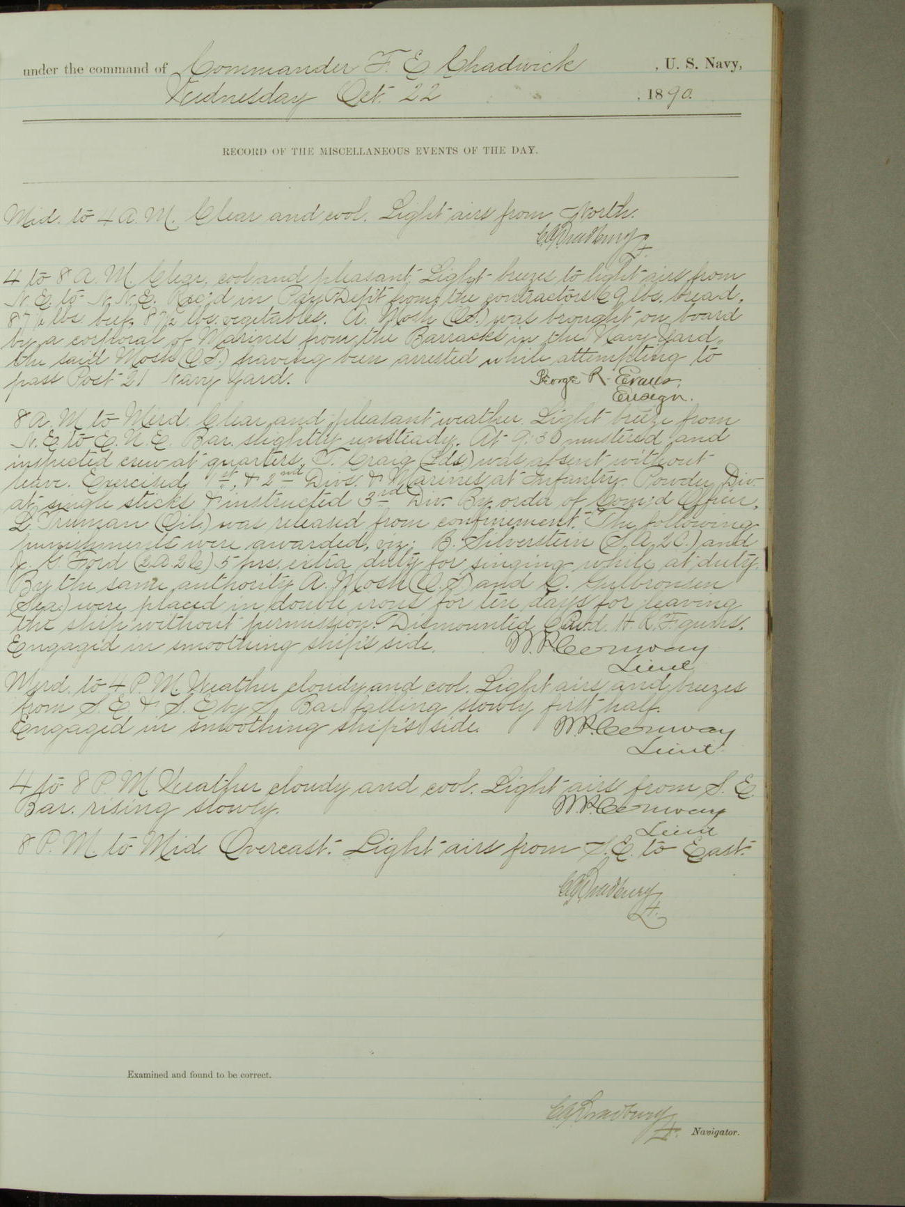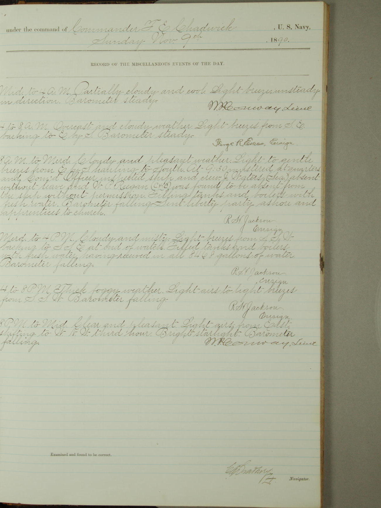 [Signed by] C.A. Bradbury, Lieutenant, Navigator