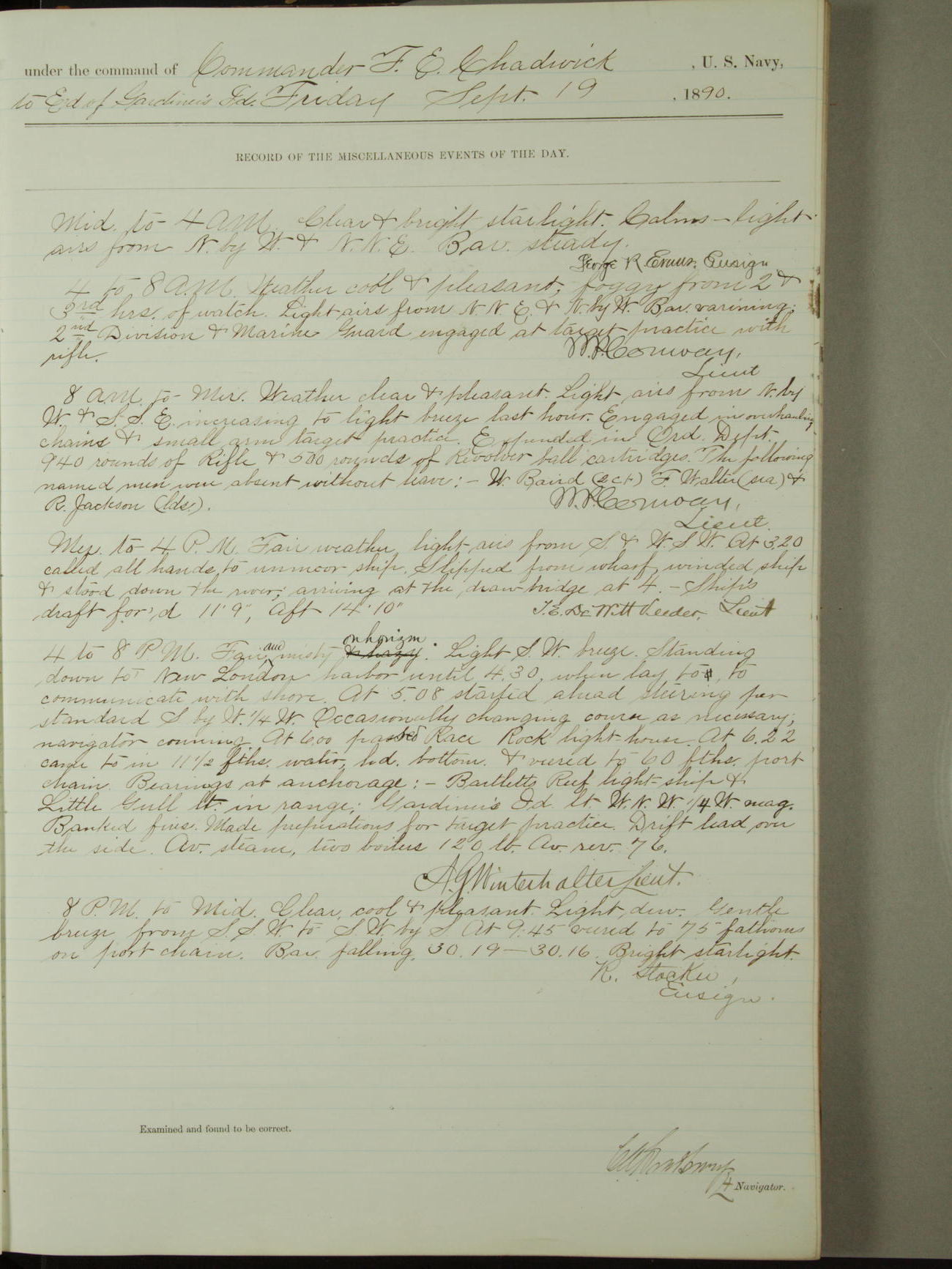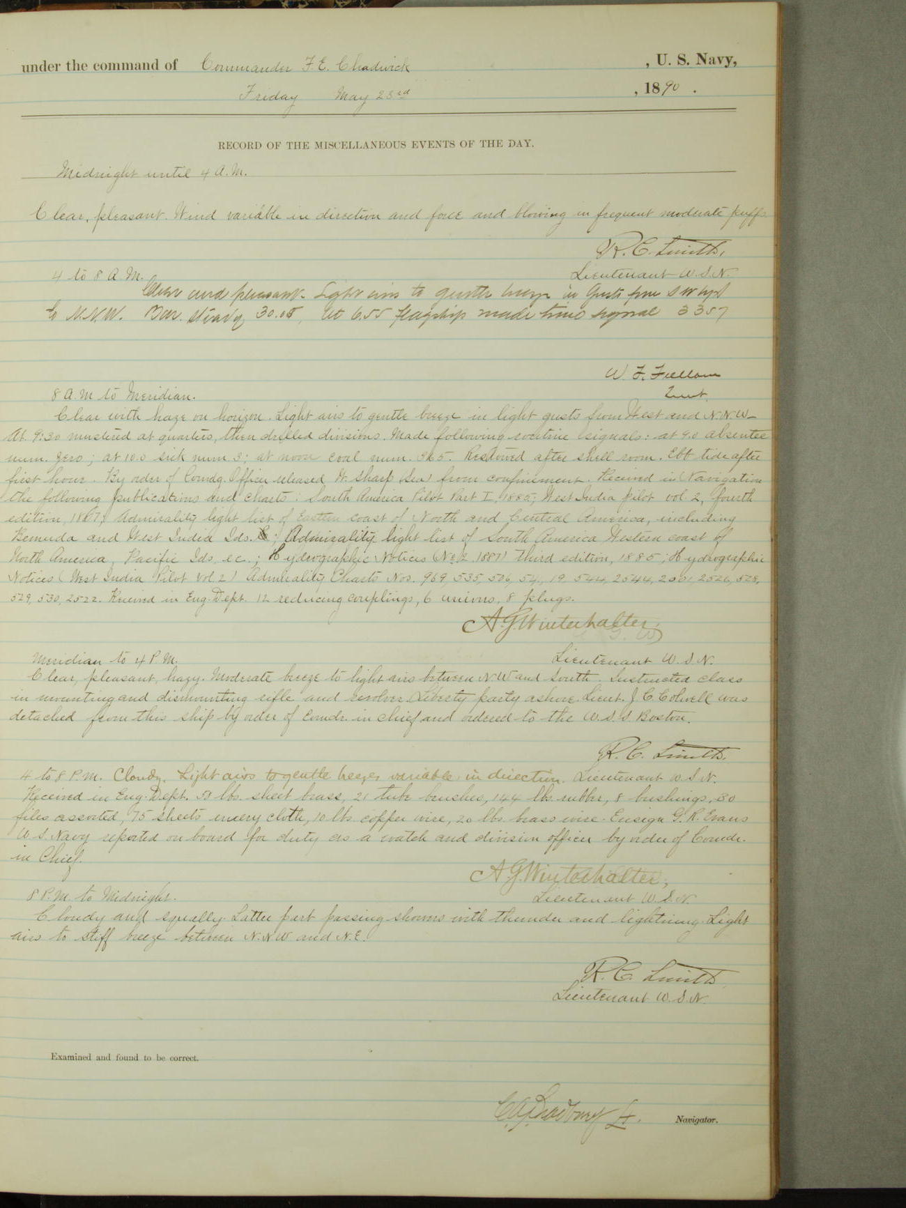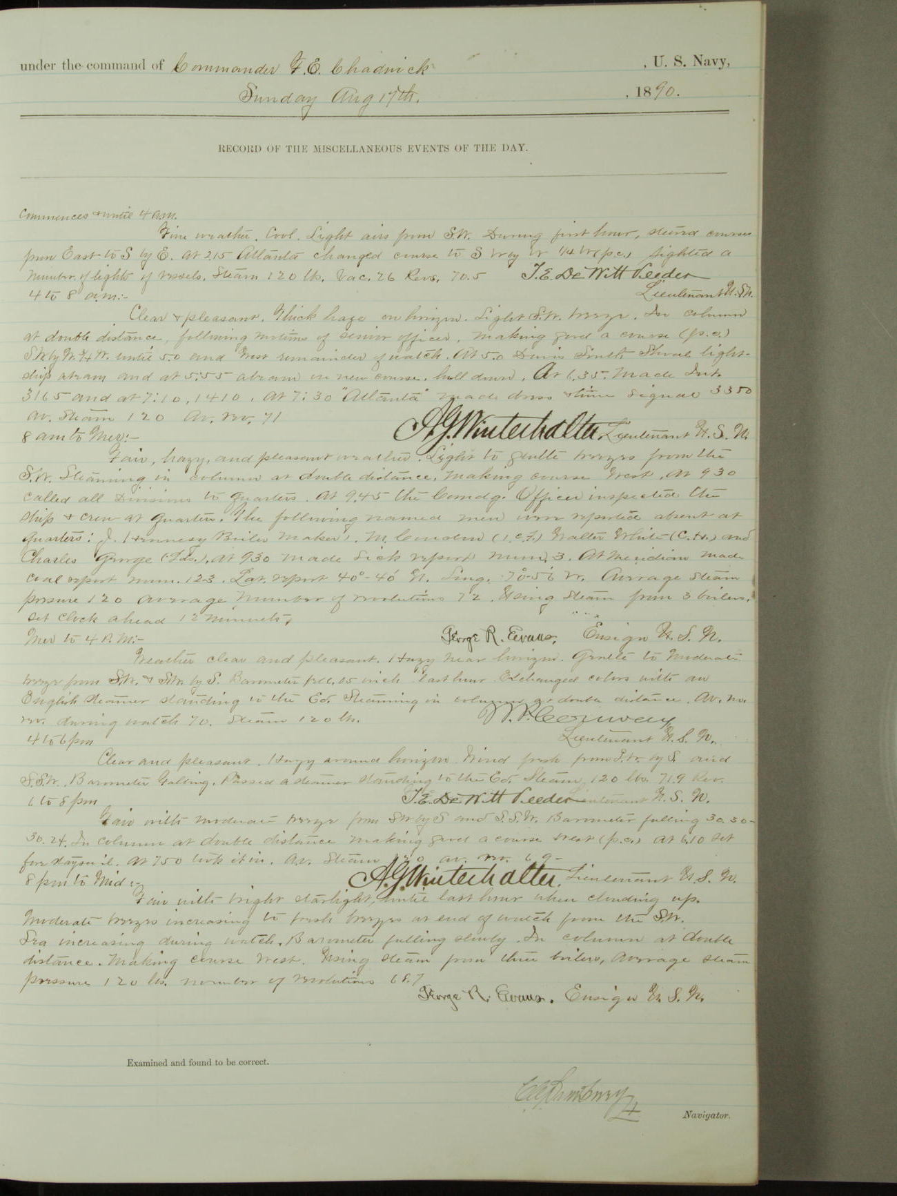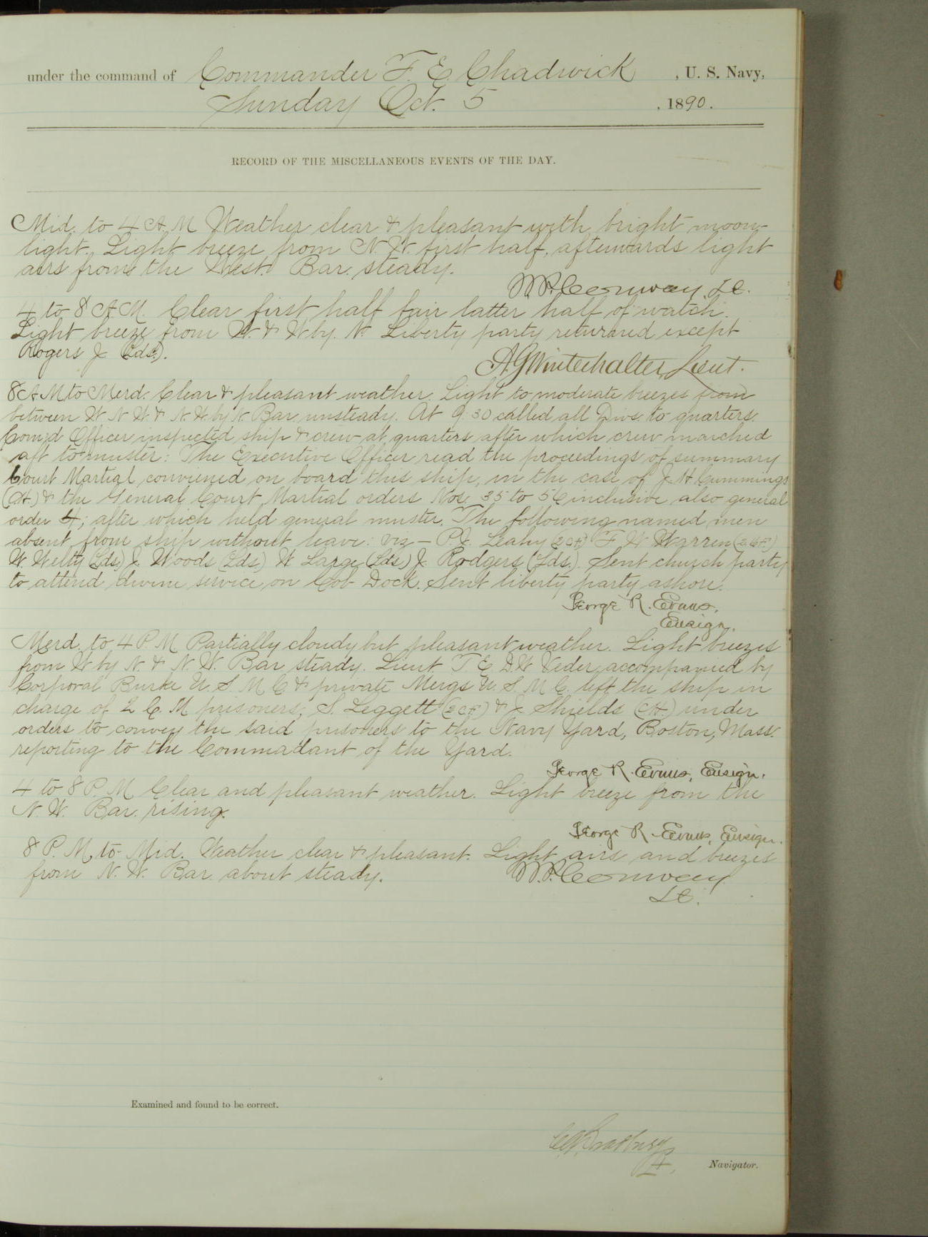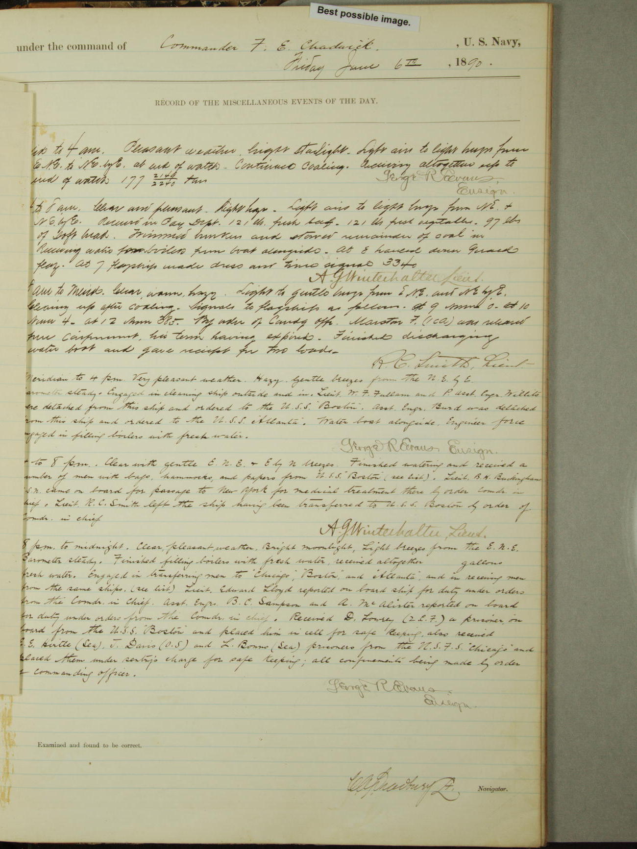 [Signed by] C.A. Bradbury, Lieutenant, Navigator