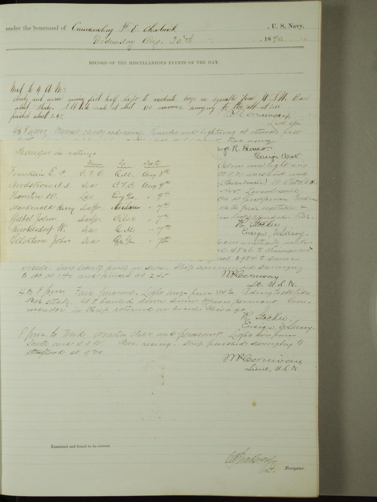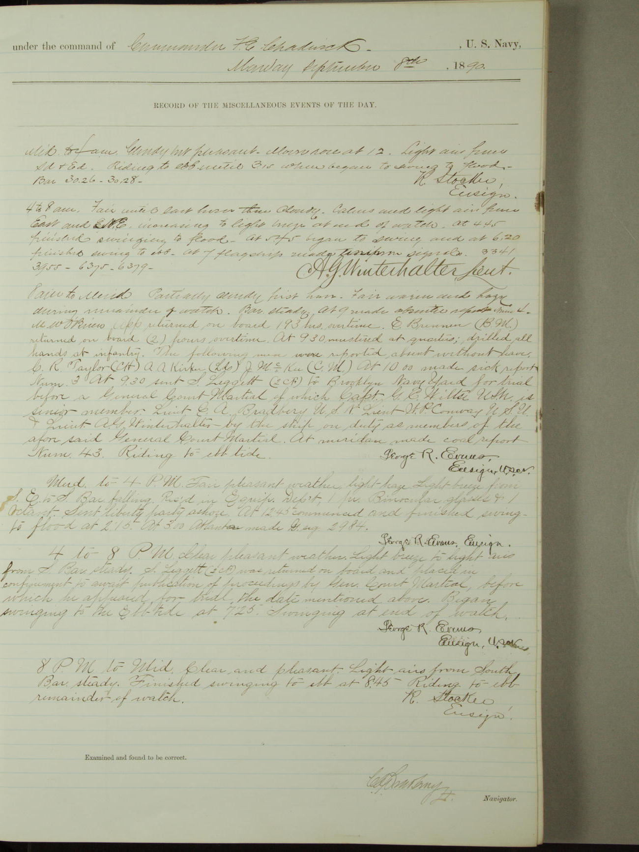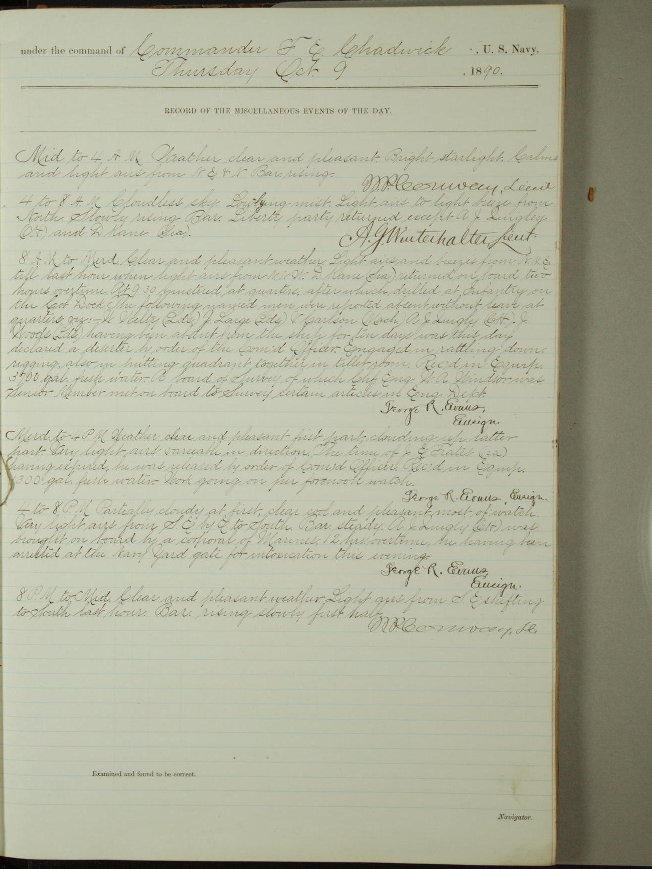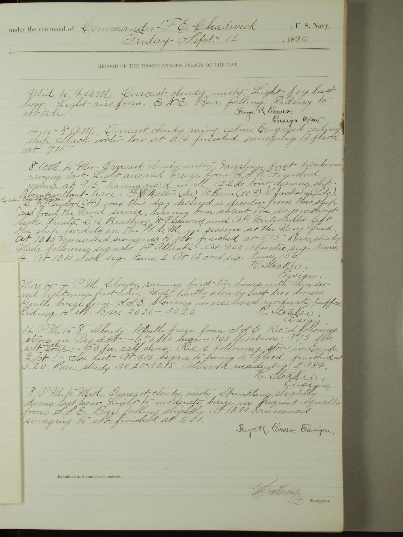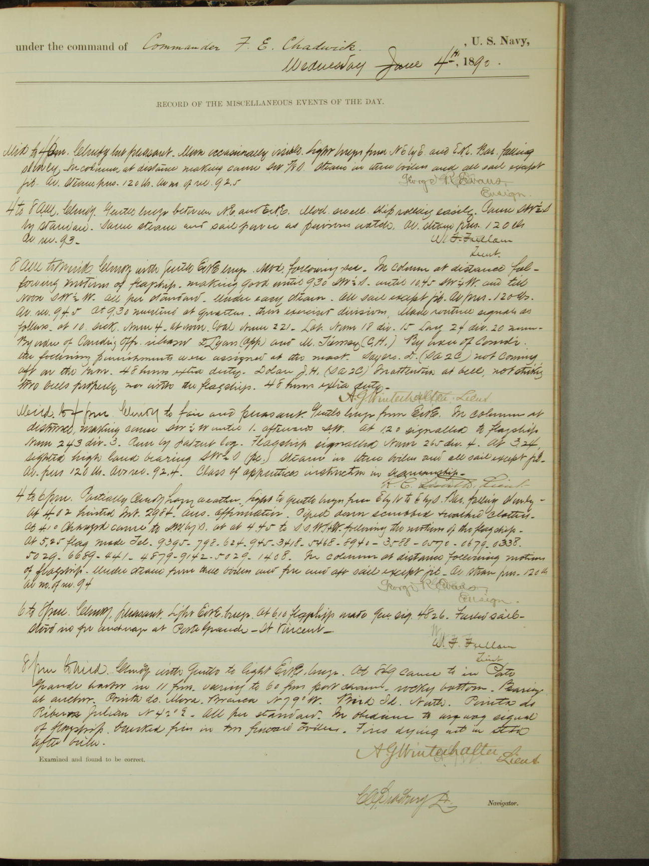 [Signed by] C.A. Bradbury, Lieutenant, Navigator