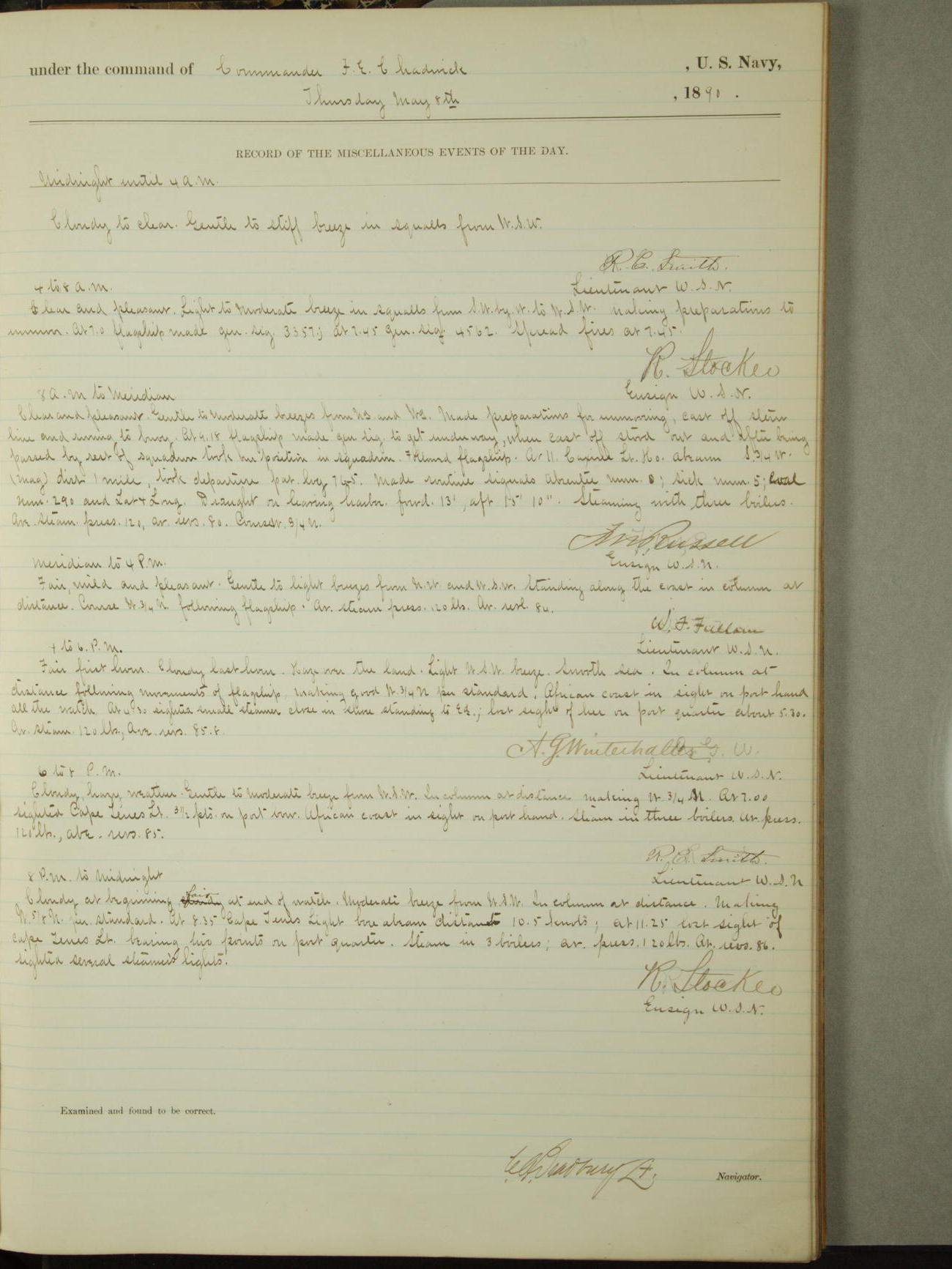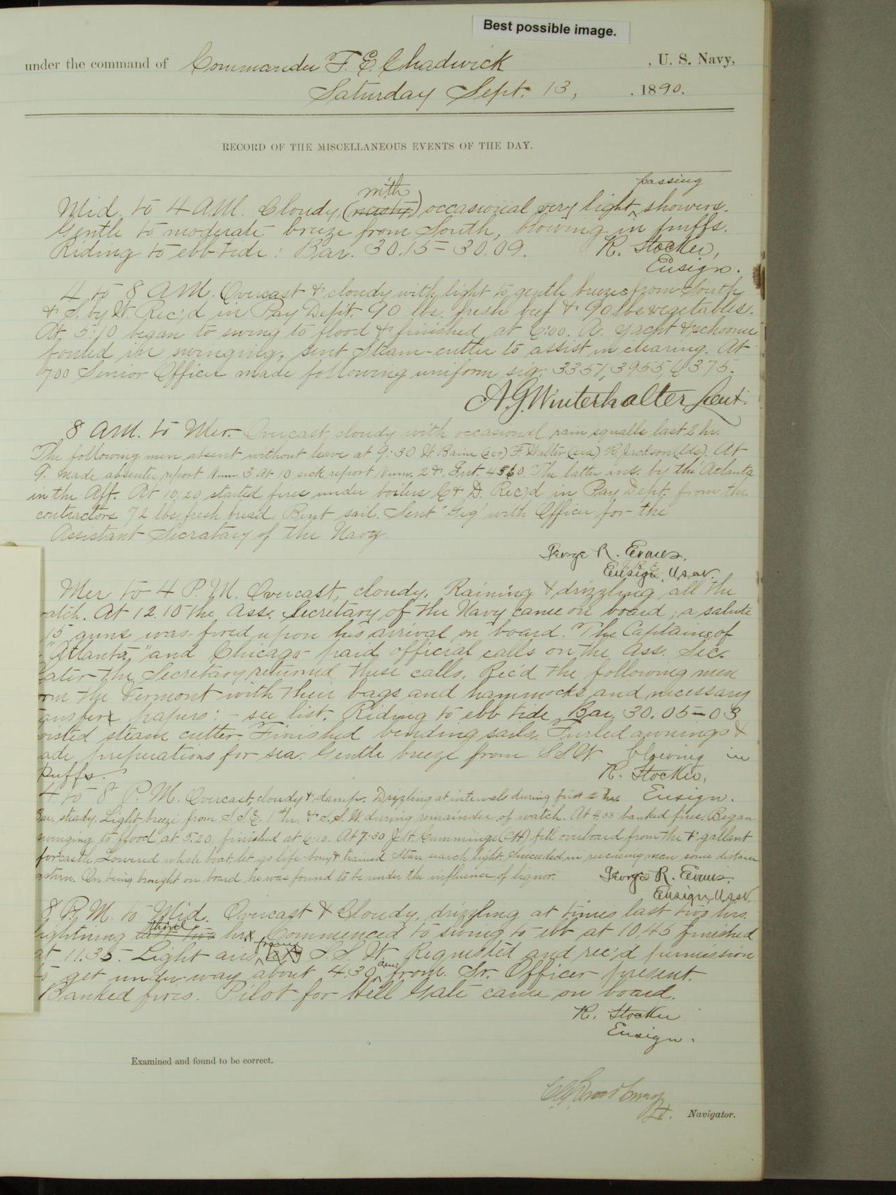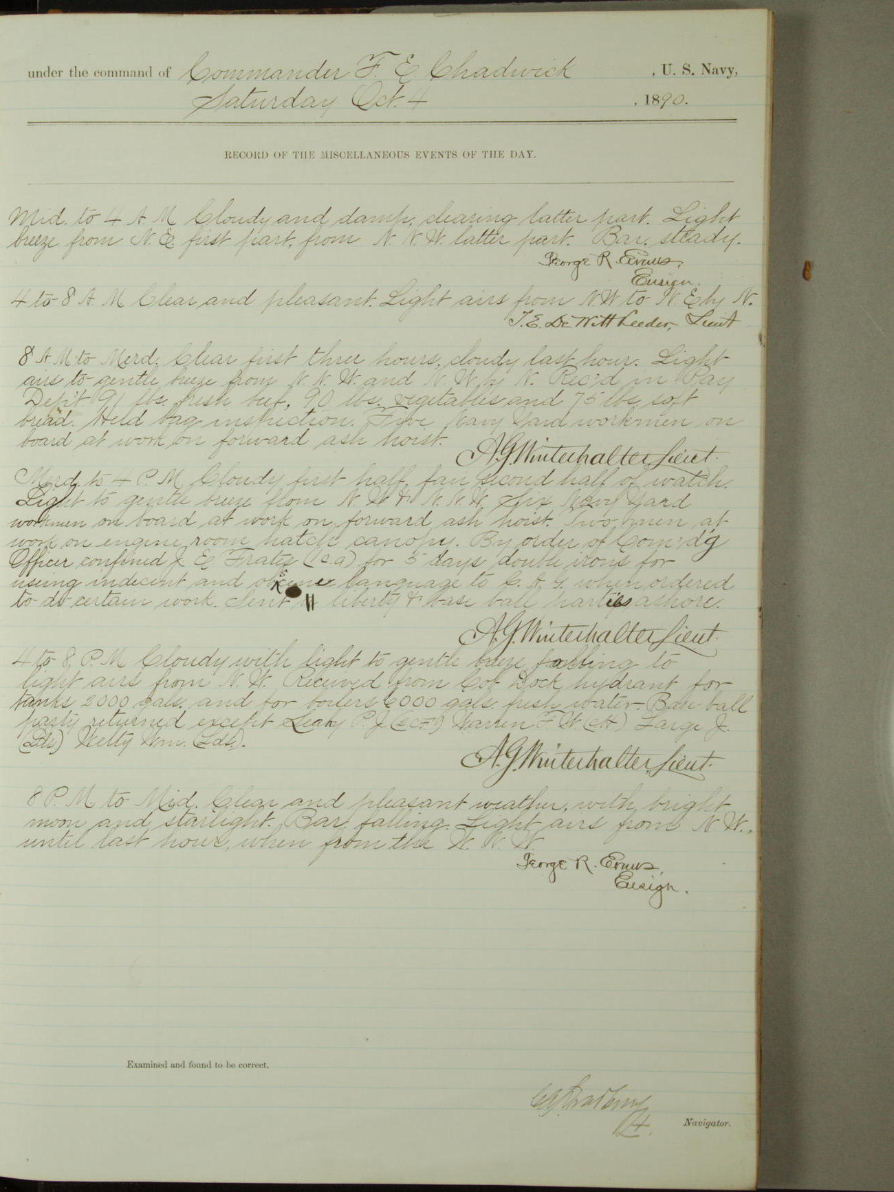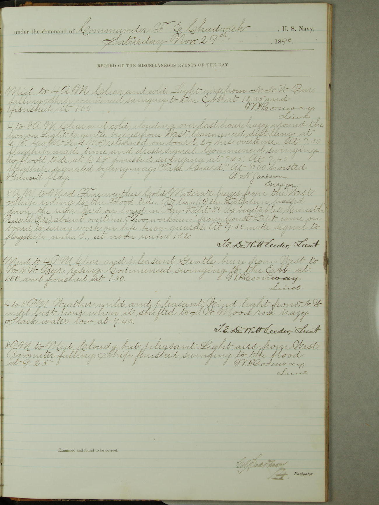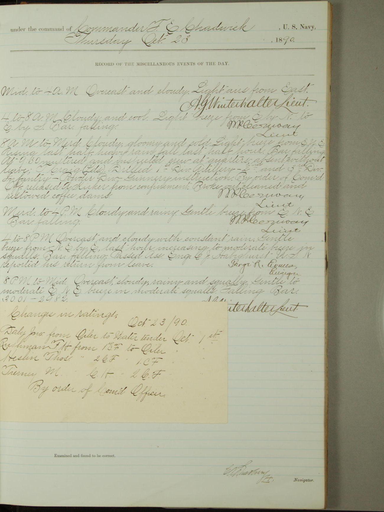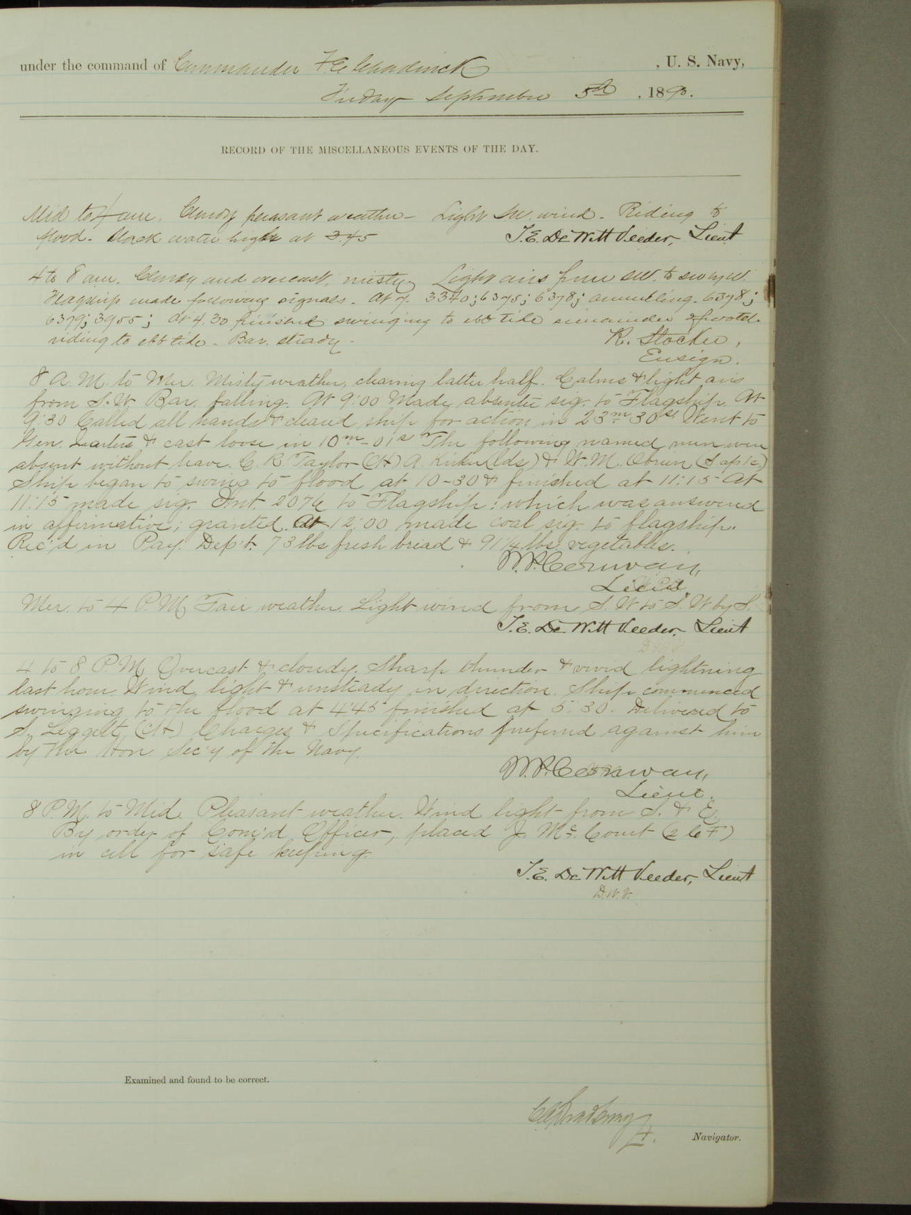 [Signed by] C.A. Bradbury, Lieutenant, Navigator