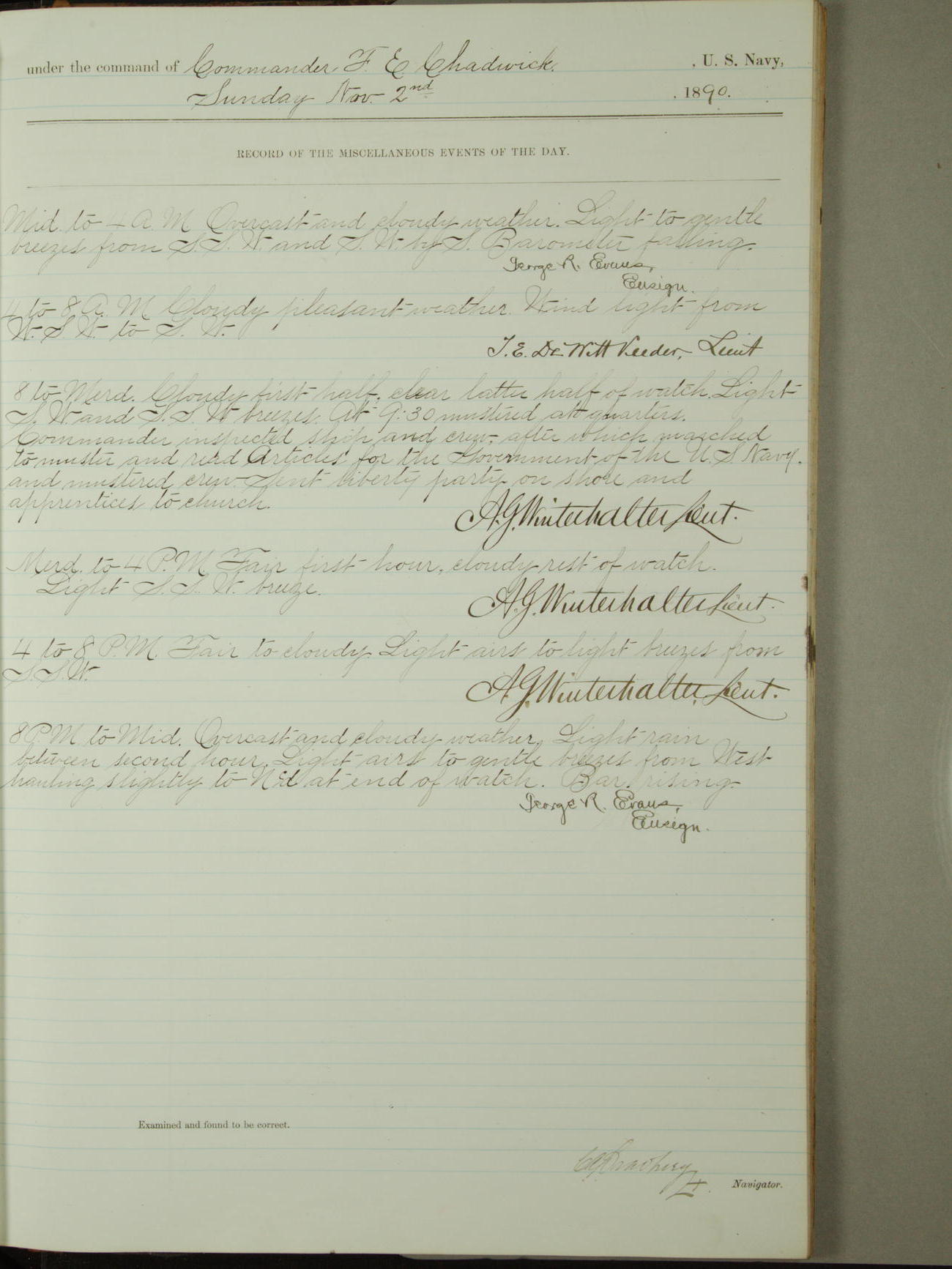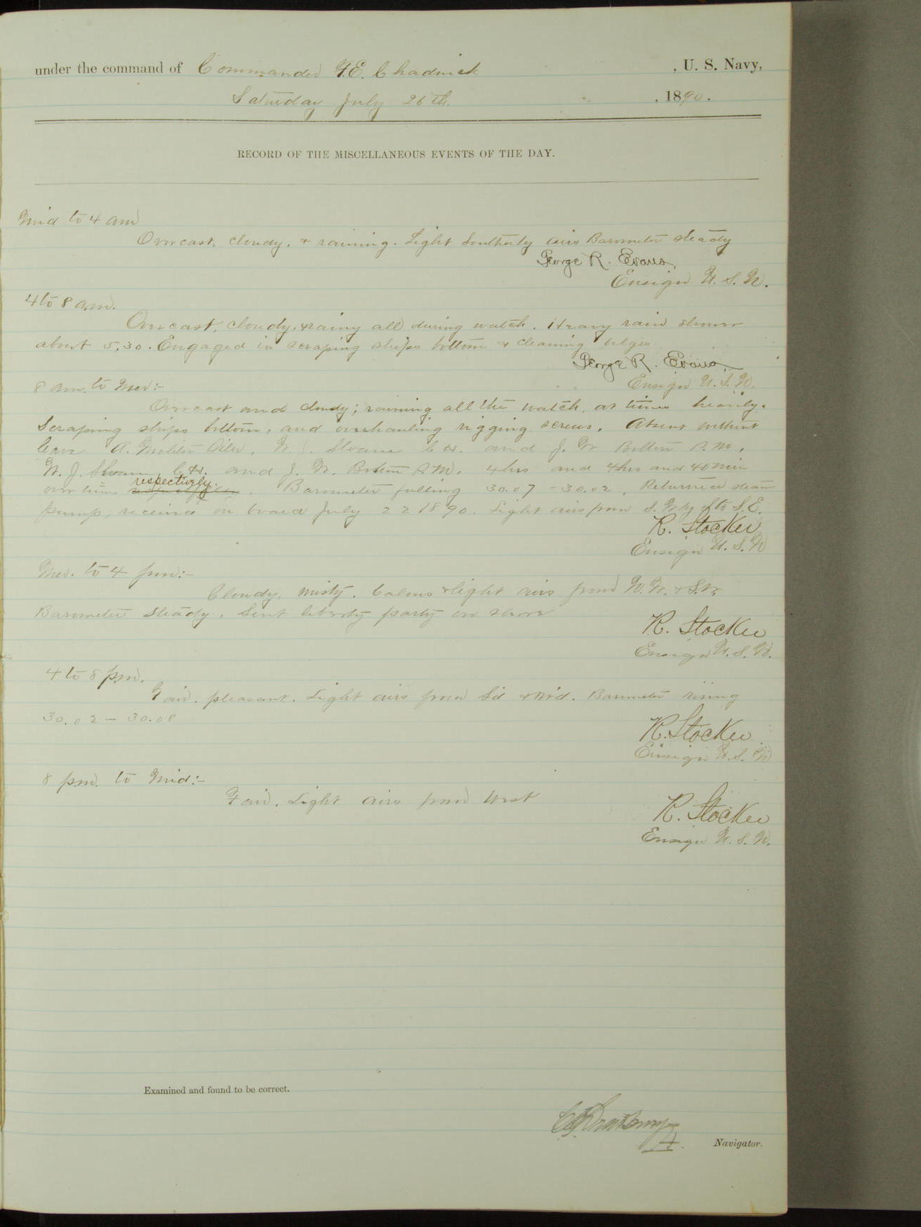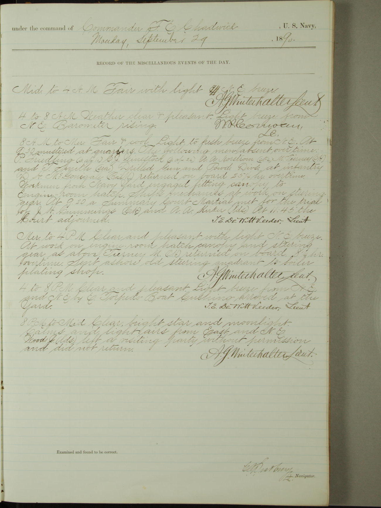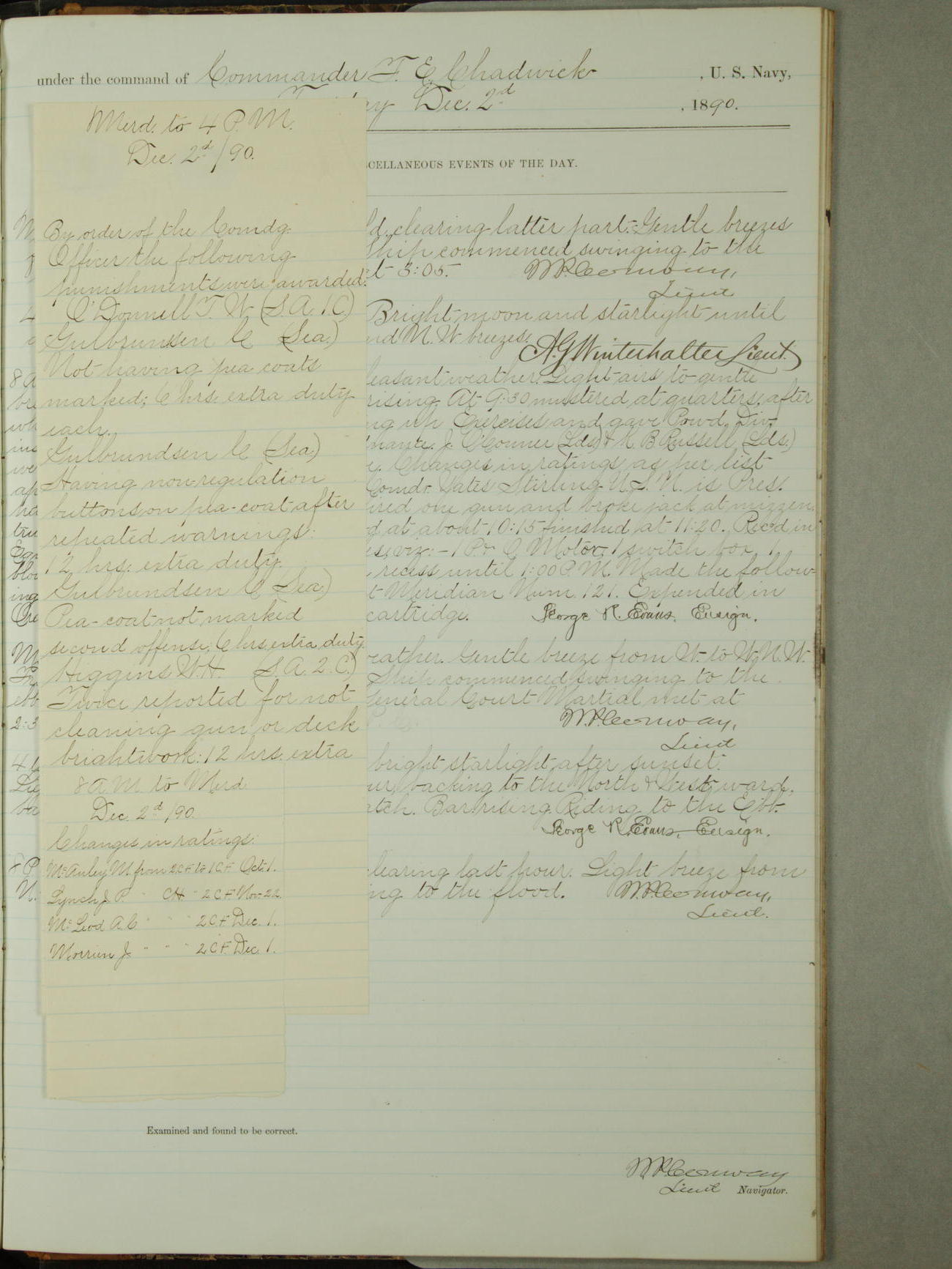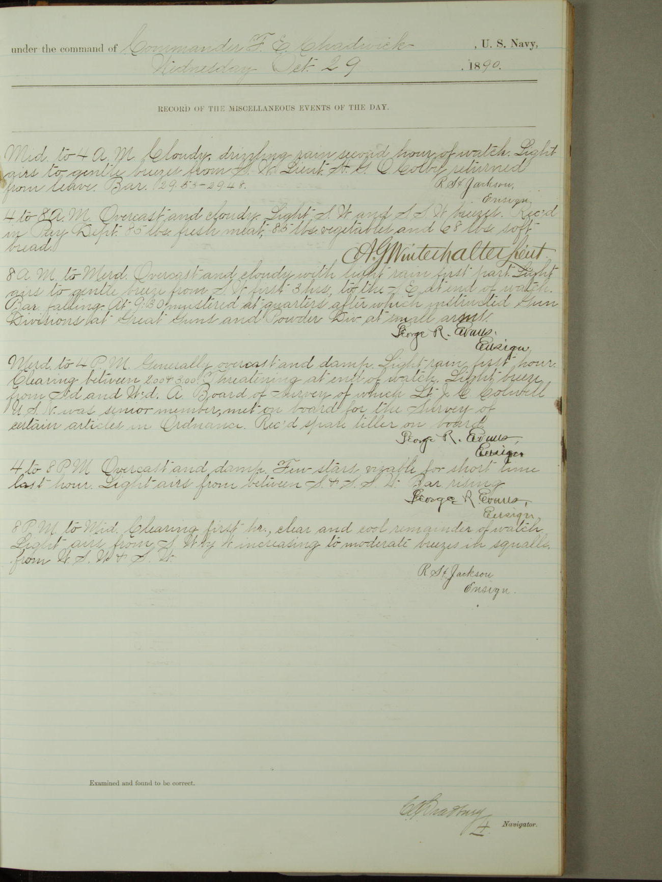 [Signed by] C.A. Bradbury, Lieutenant, Navigator