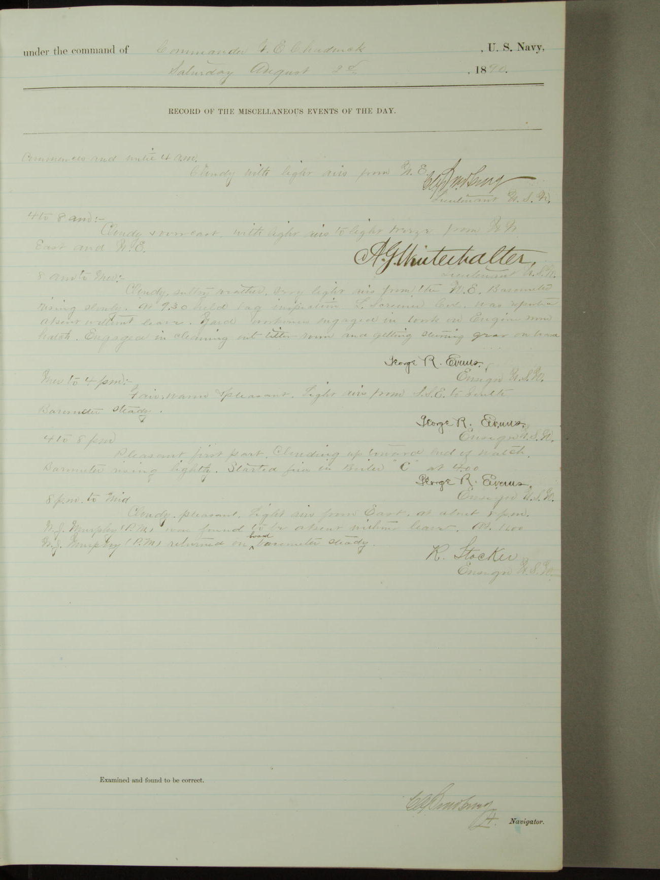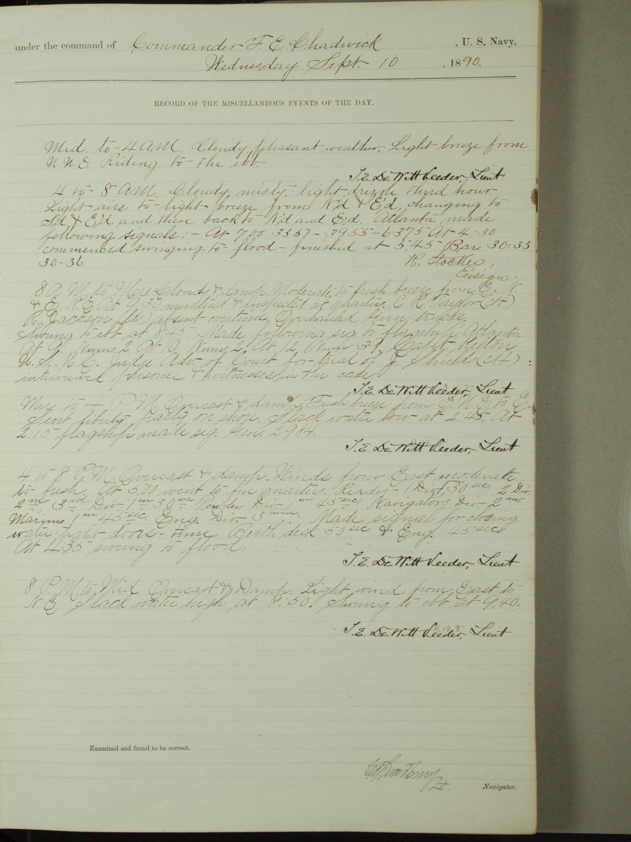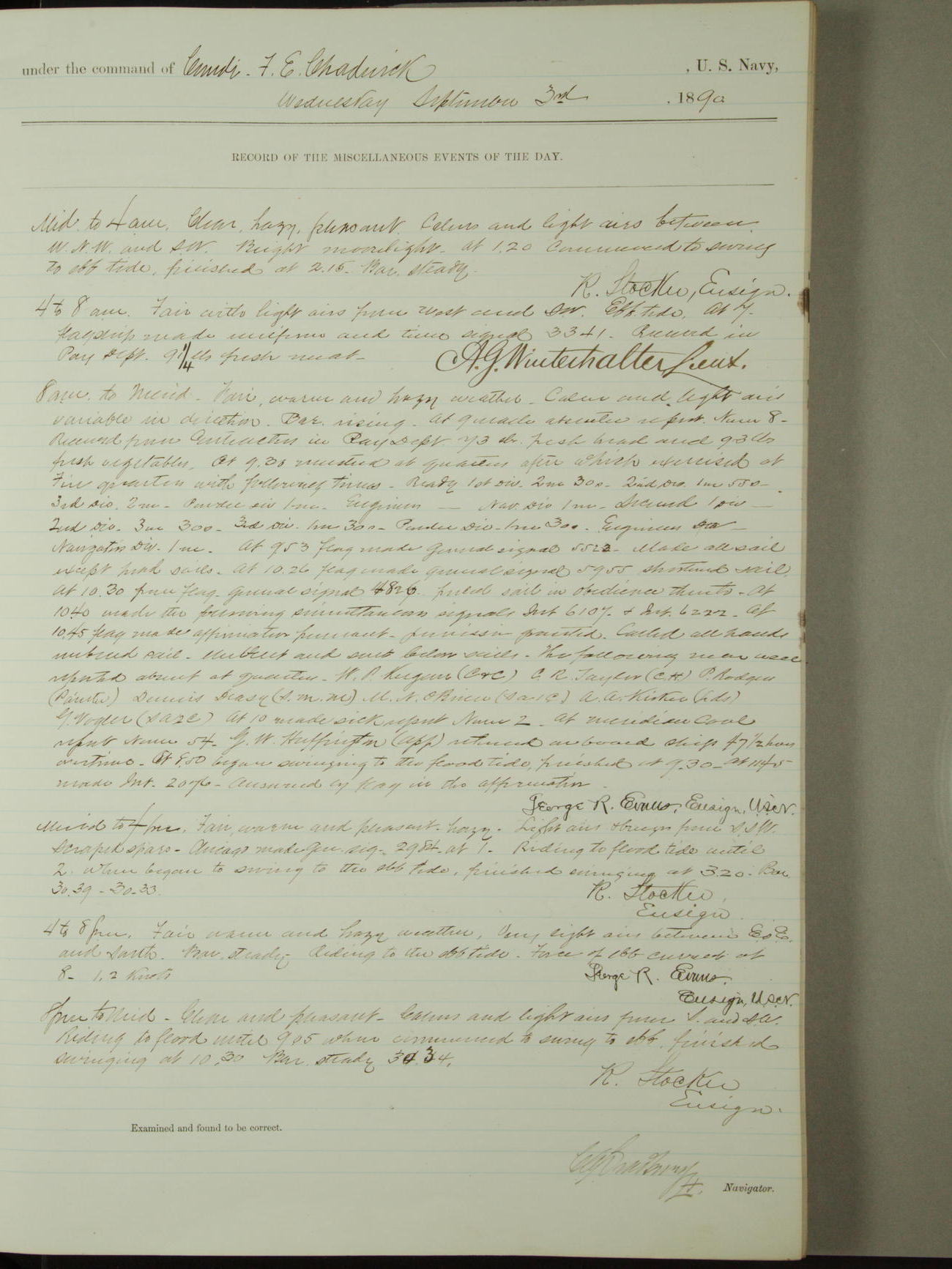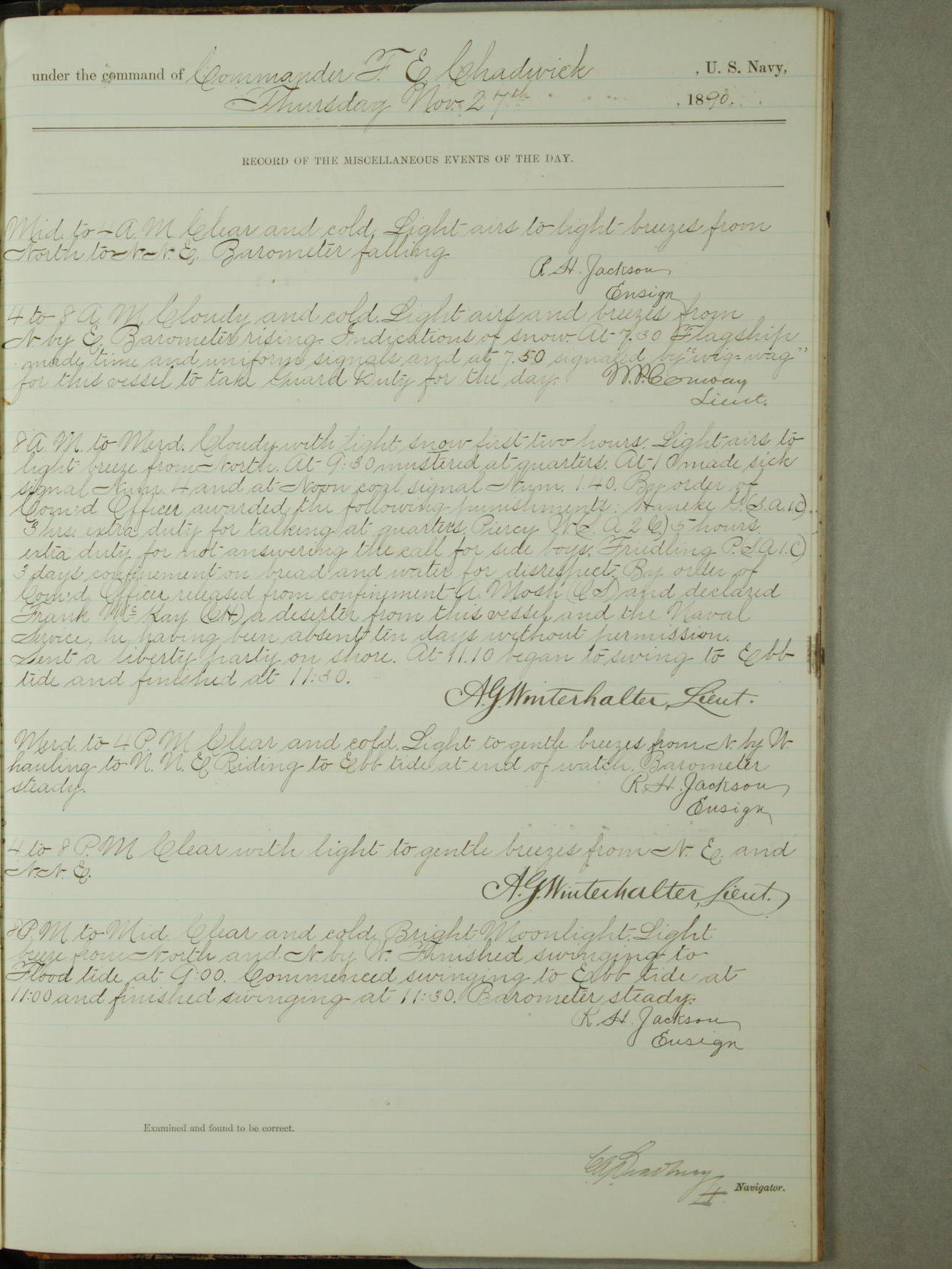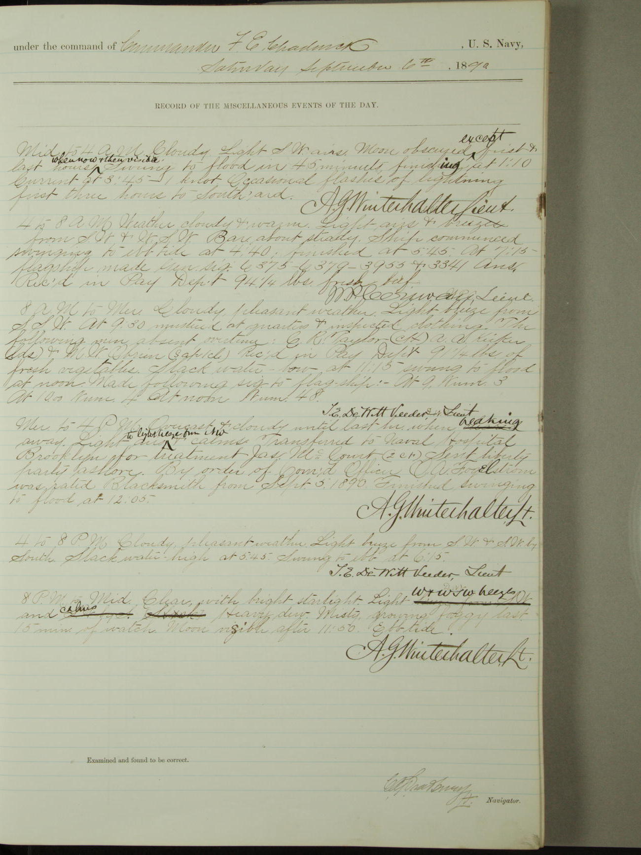 [Signed by] C.A. Bradbury, Lieutenant, Navigator