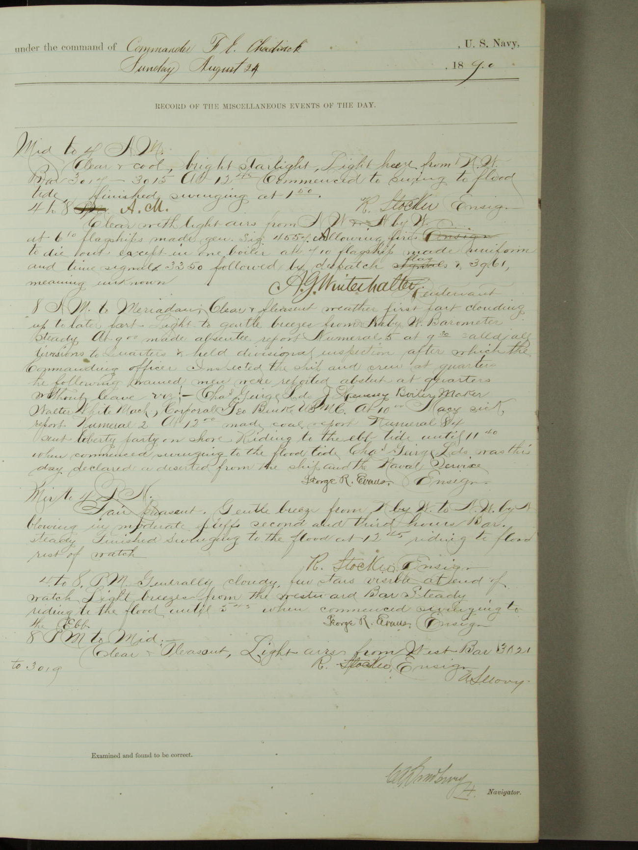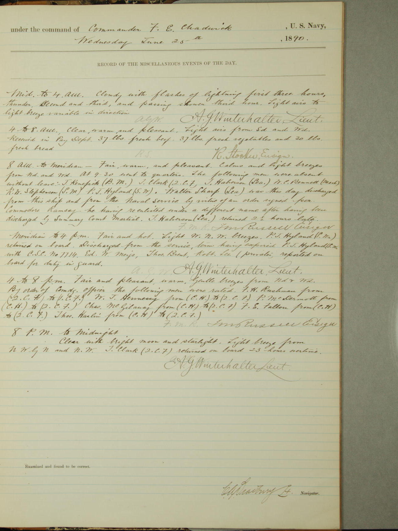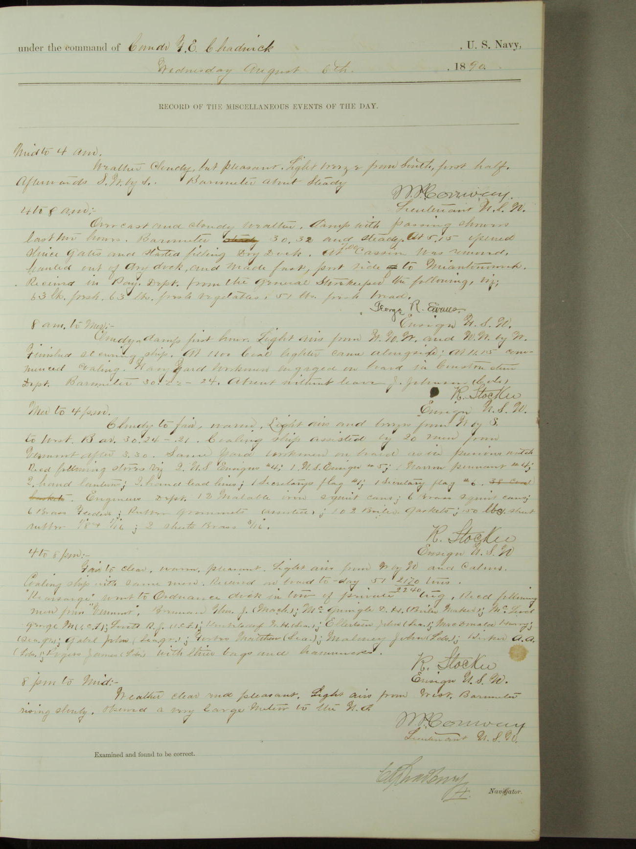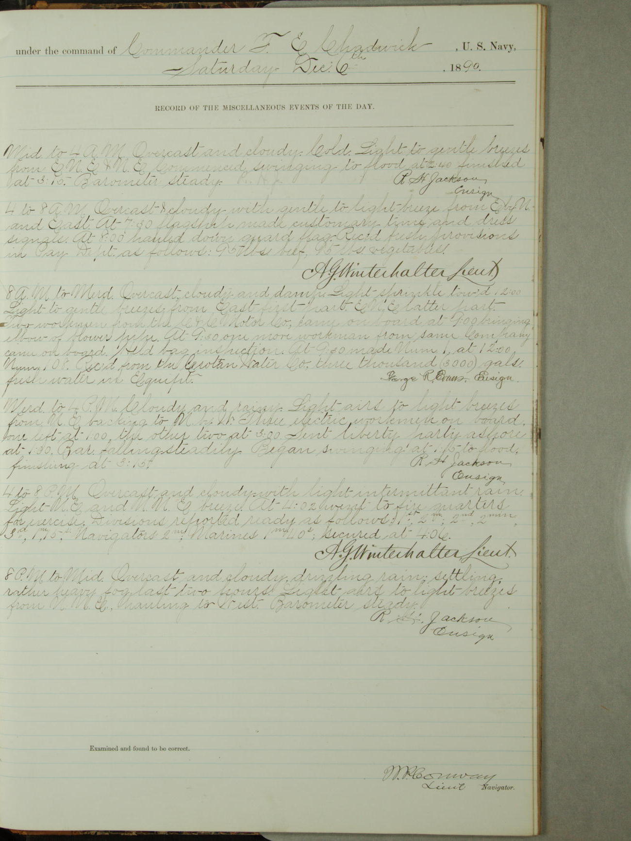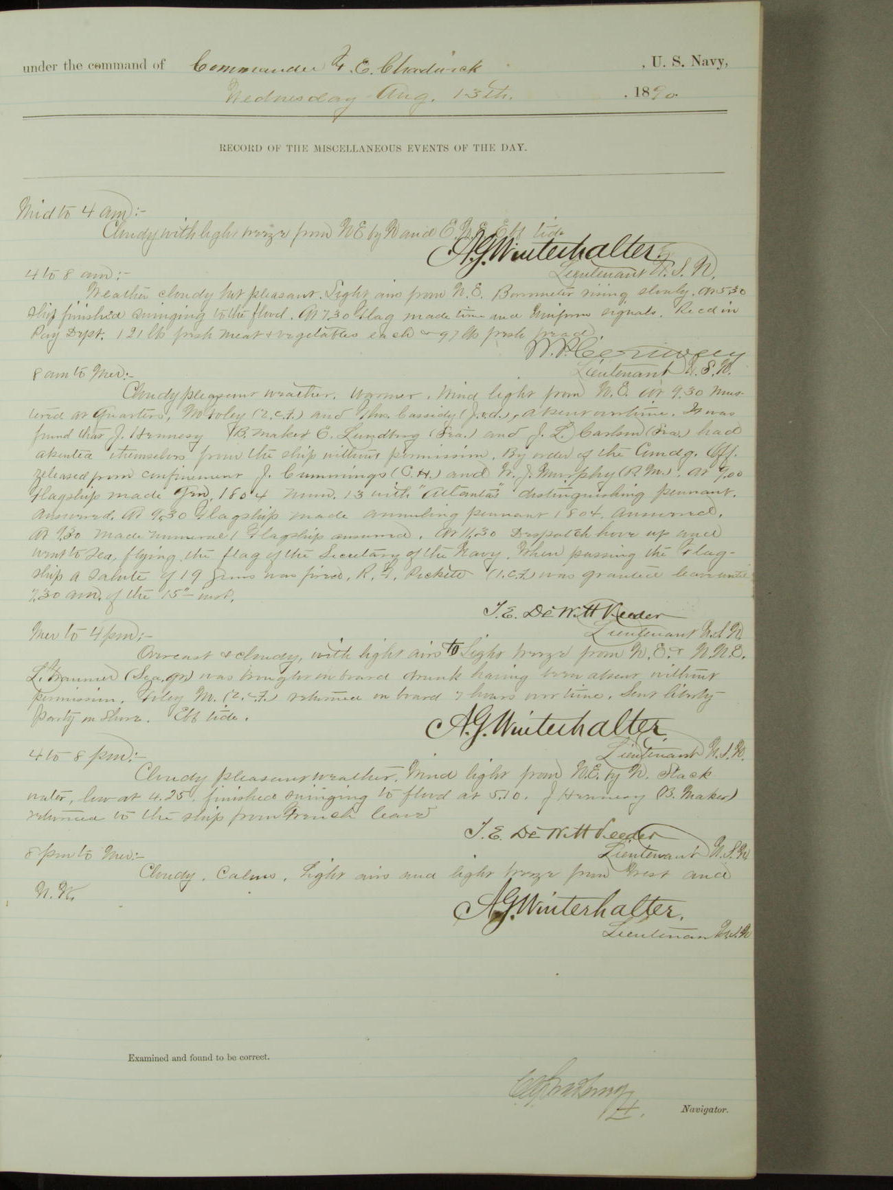 [Signed by] C.A. Bradbury, Lieutenant, Navigator
