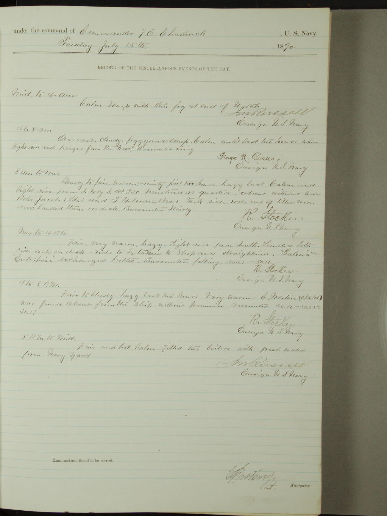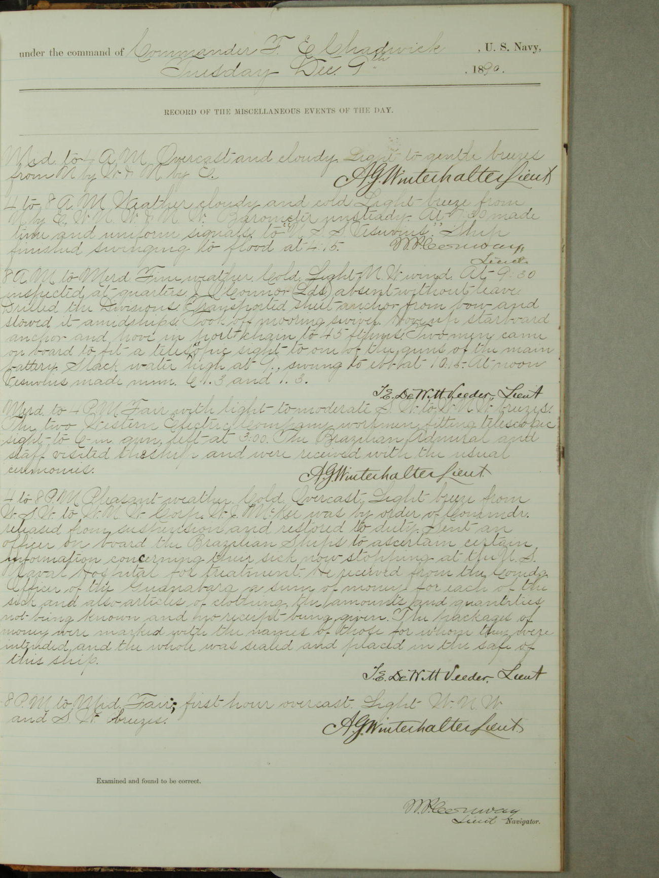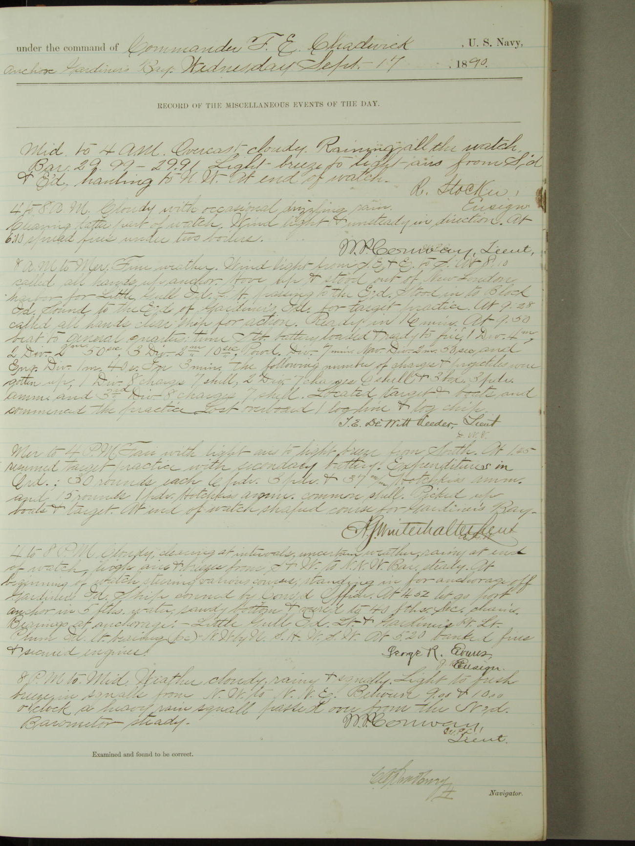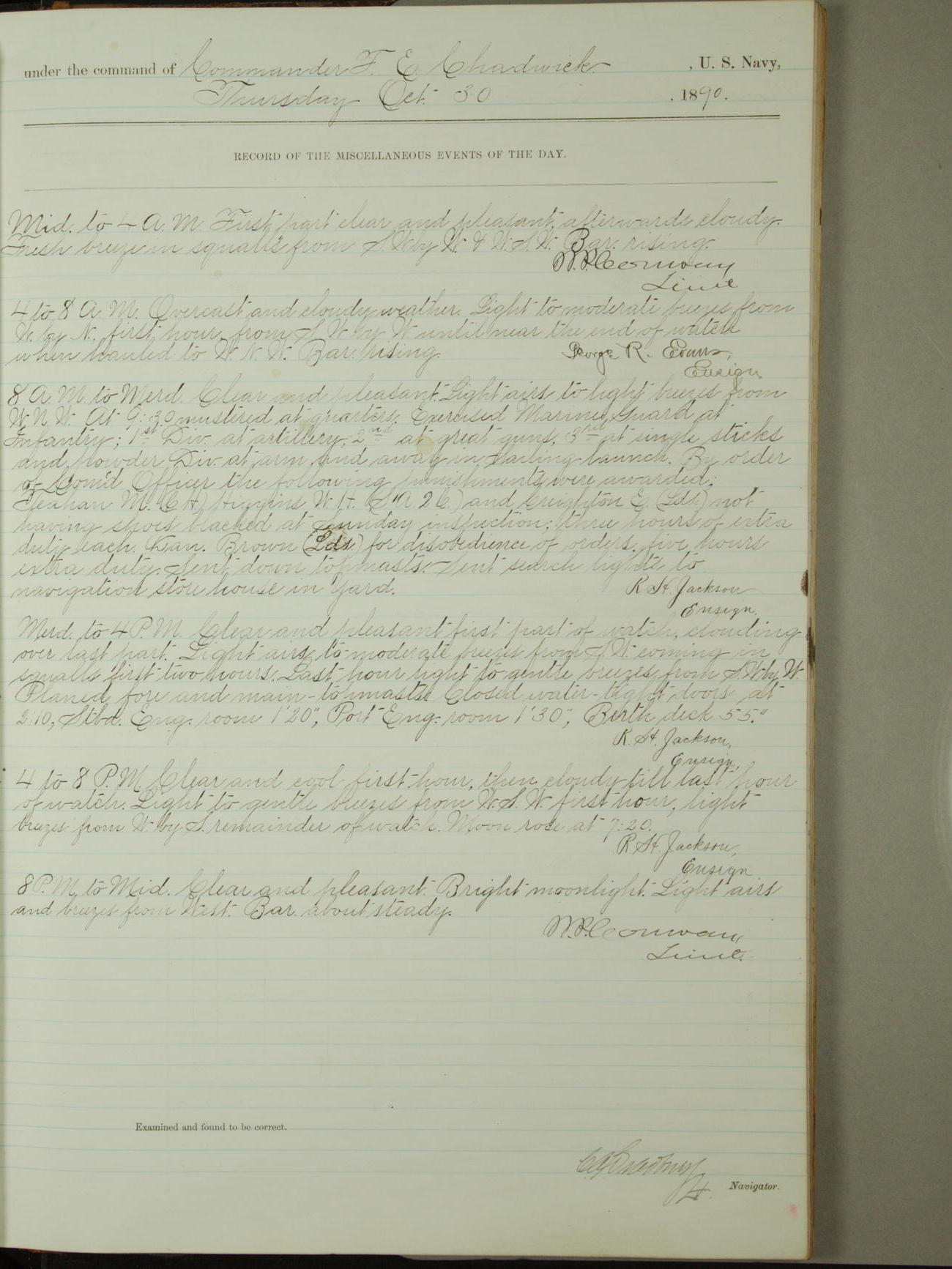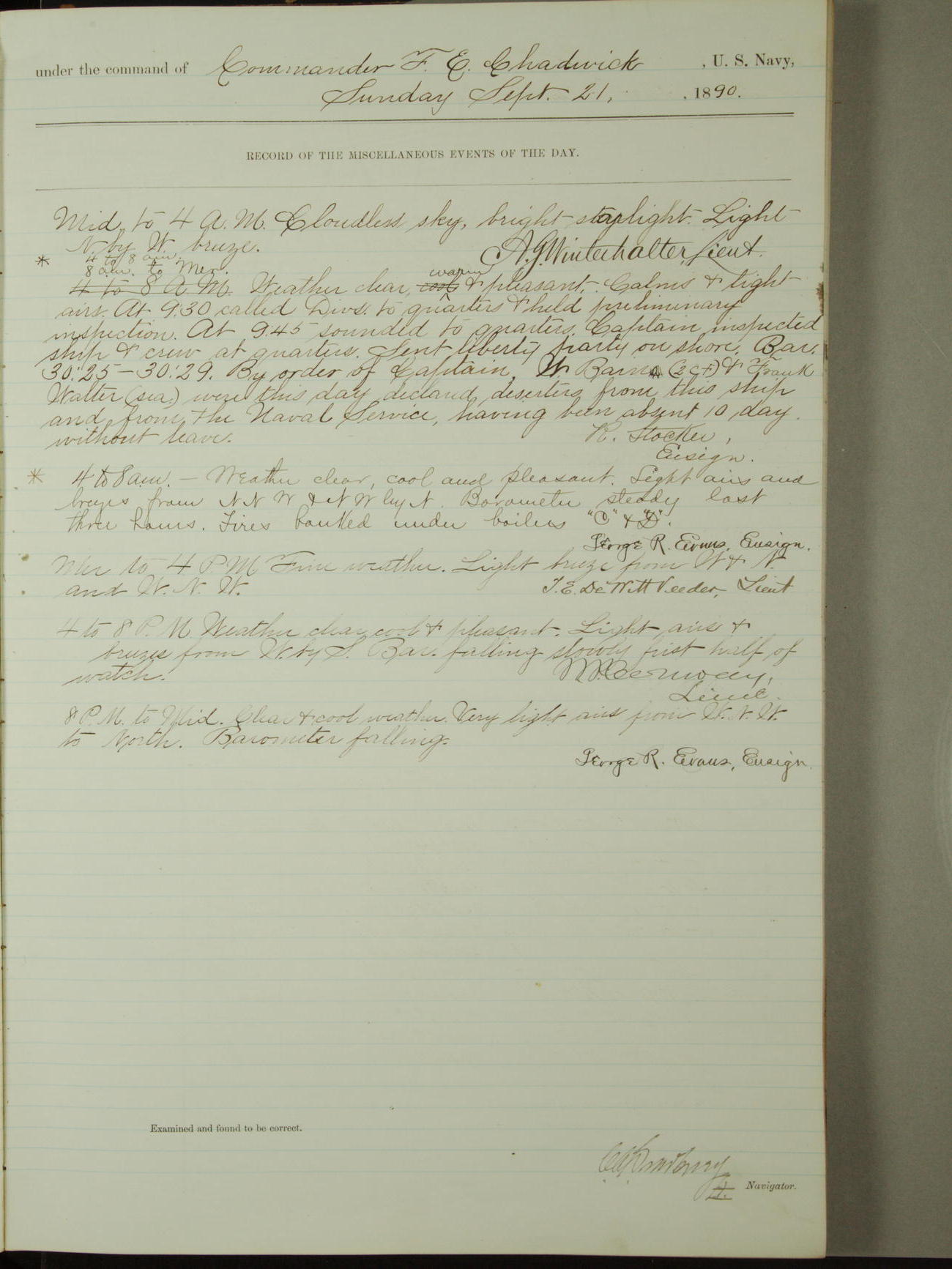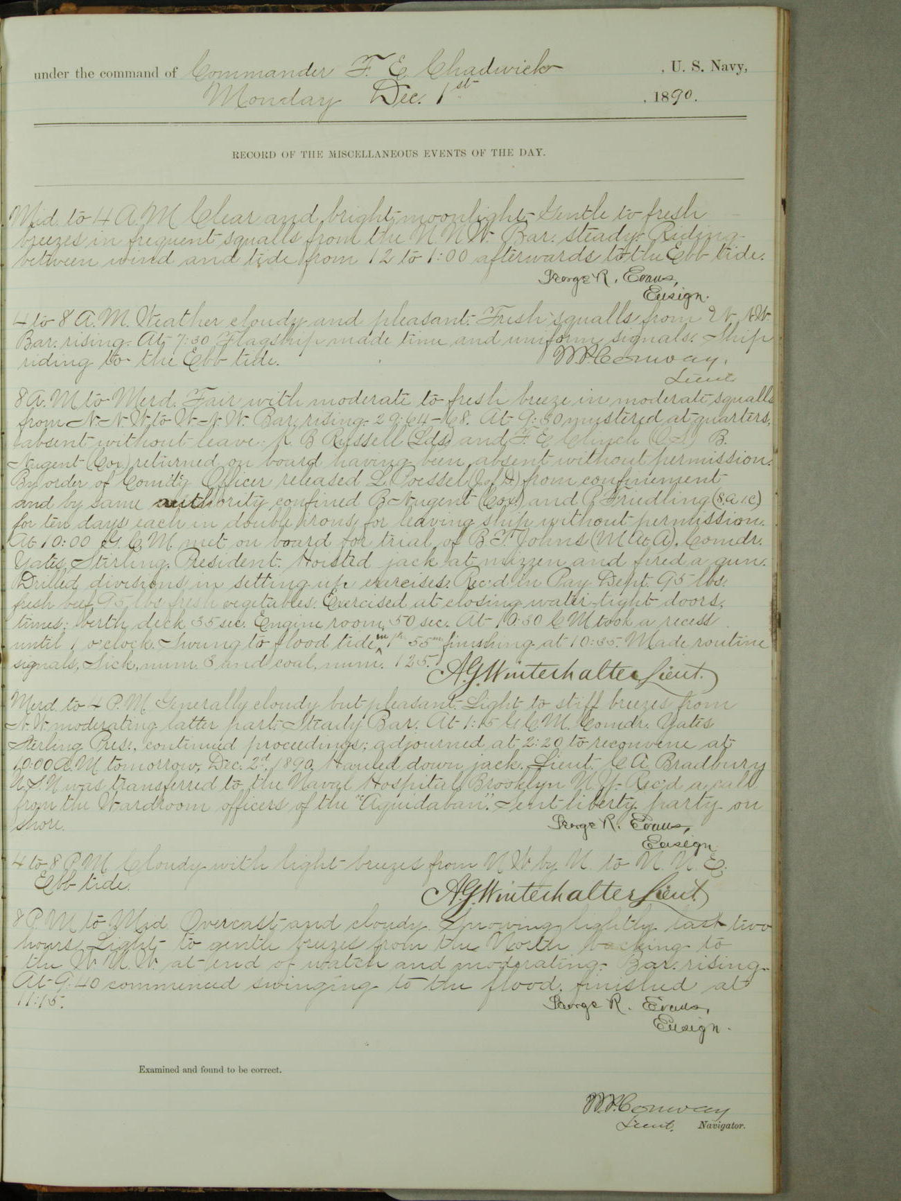 [Signed by] C.A. Bradbury, Lieutenant, Navigator