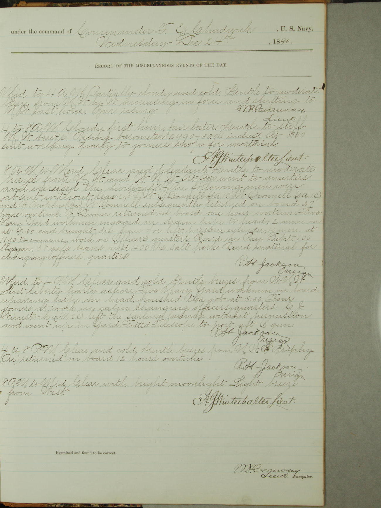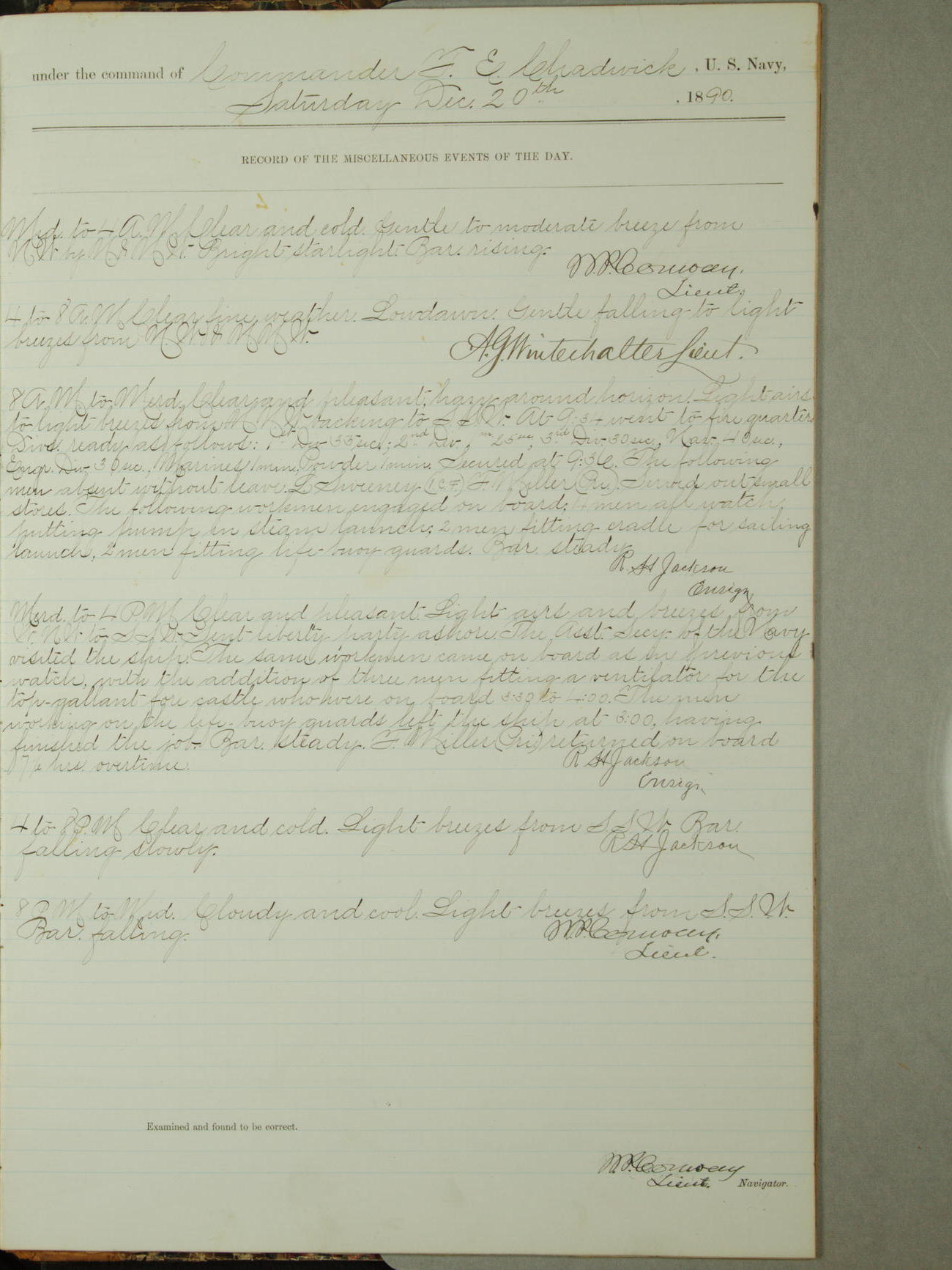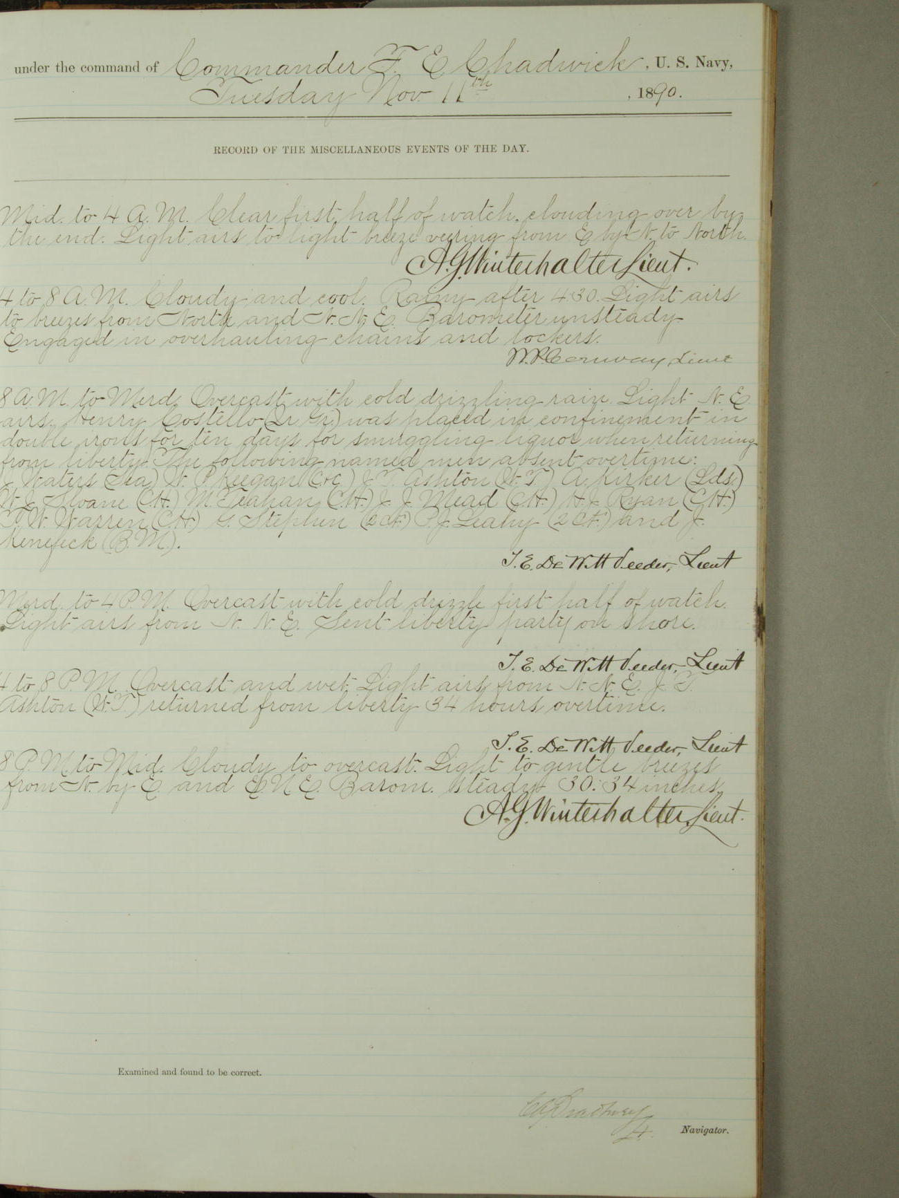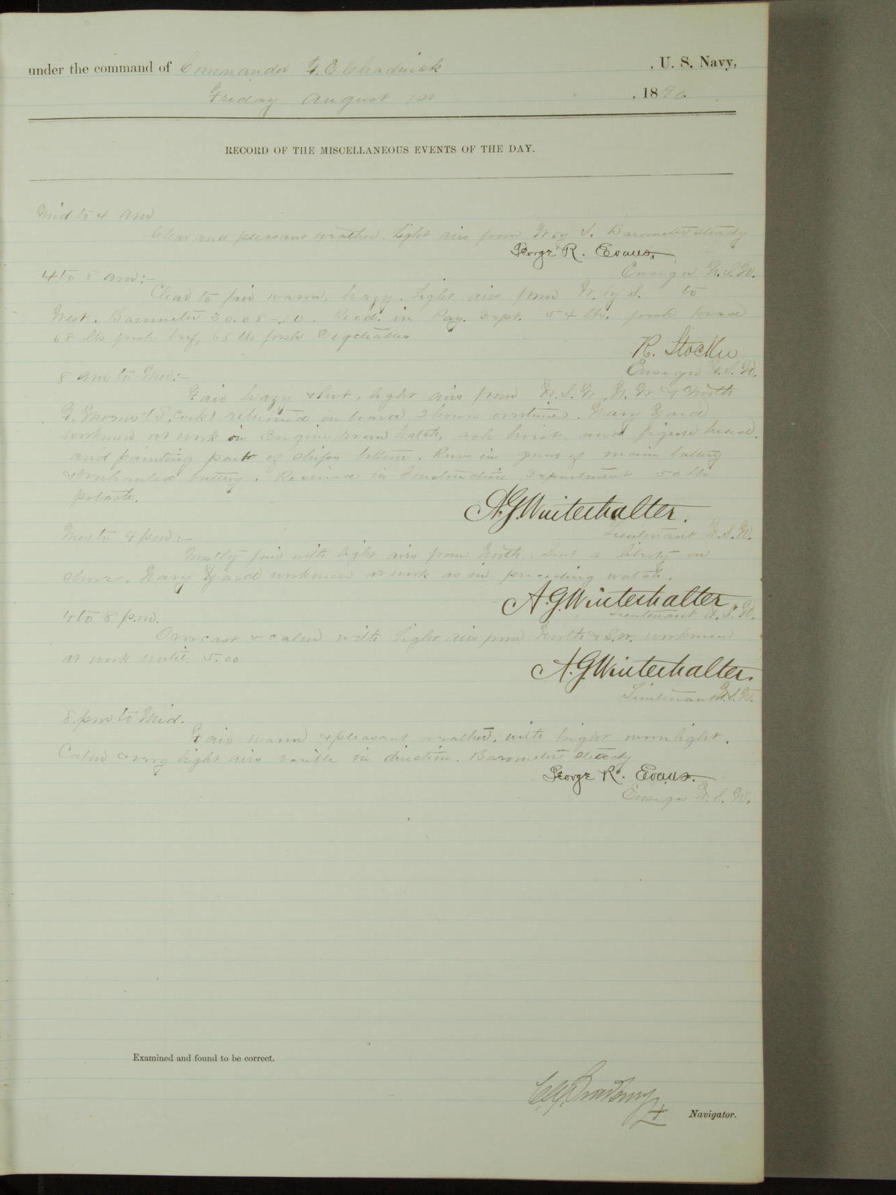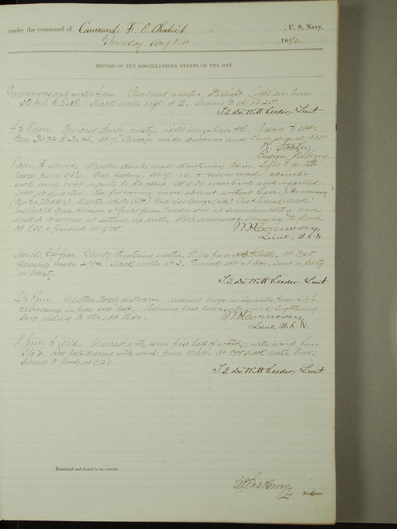 [Signed by] C.A. Bradbury, Lieutenant, Navigator