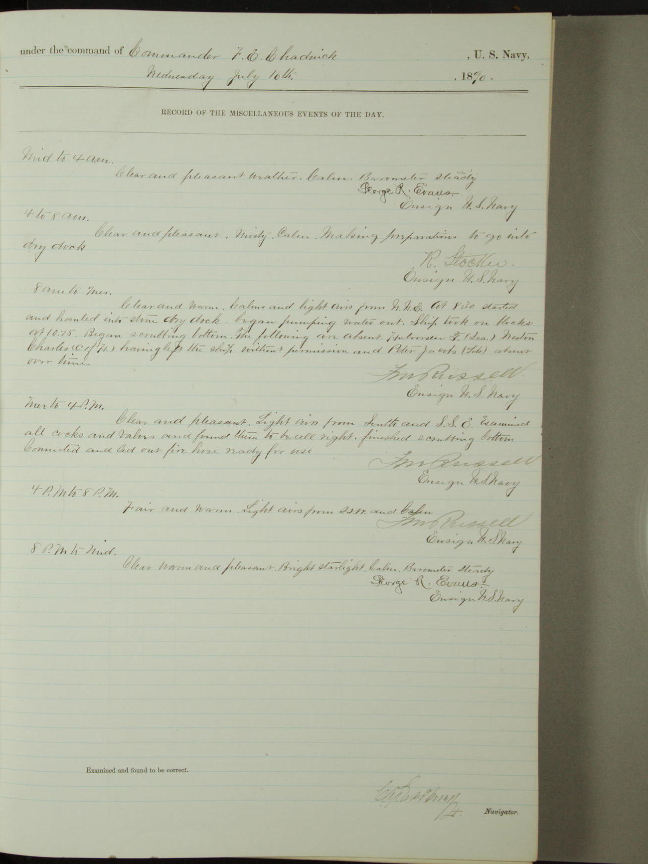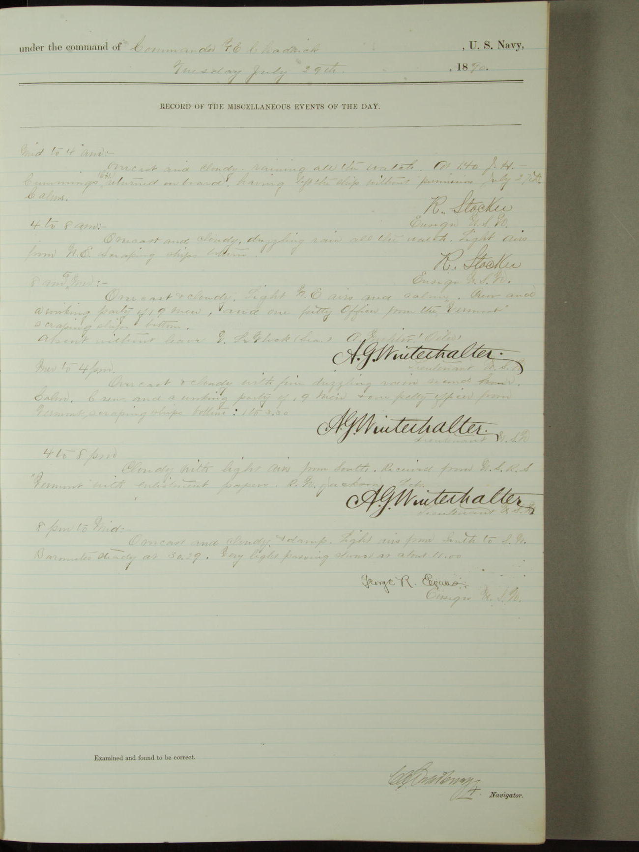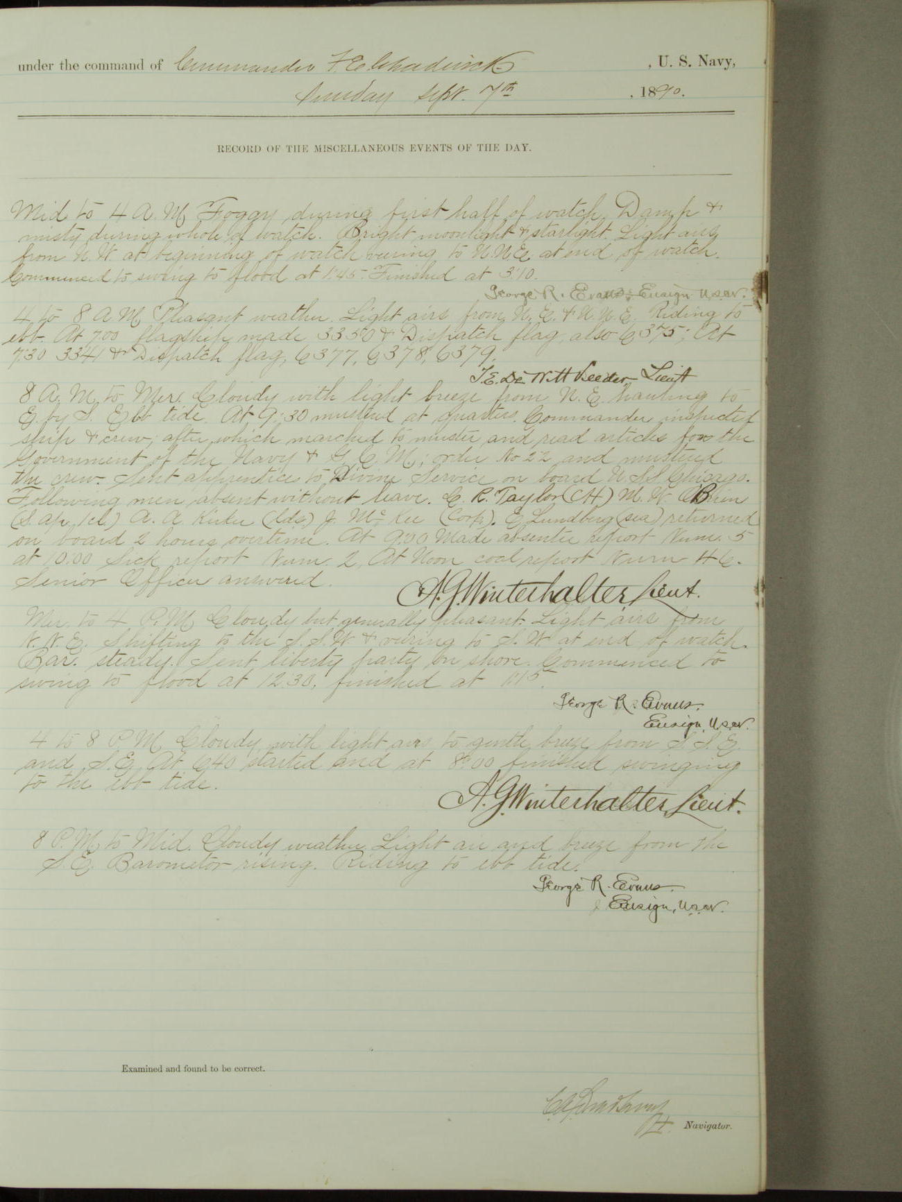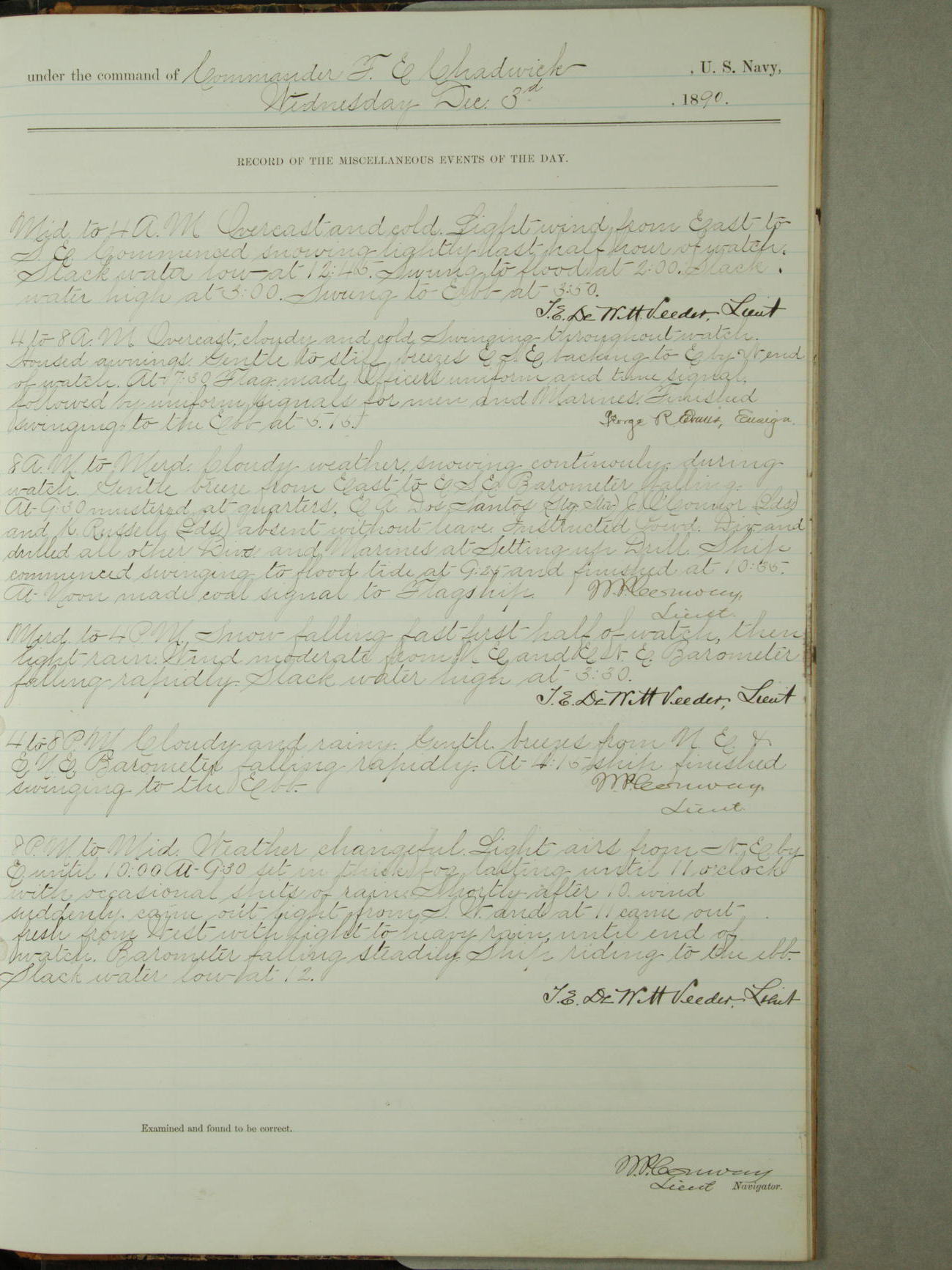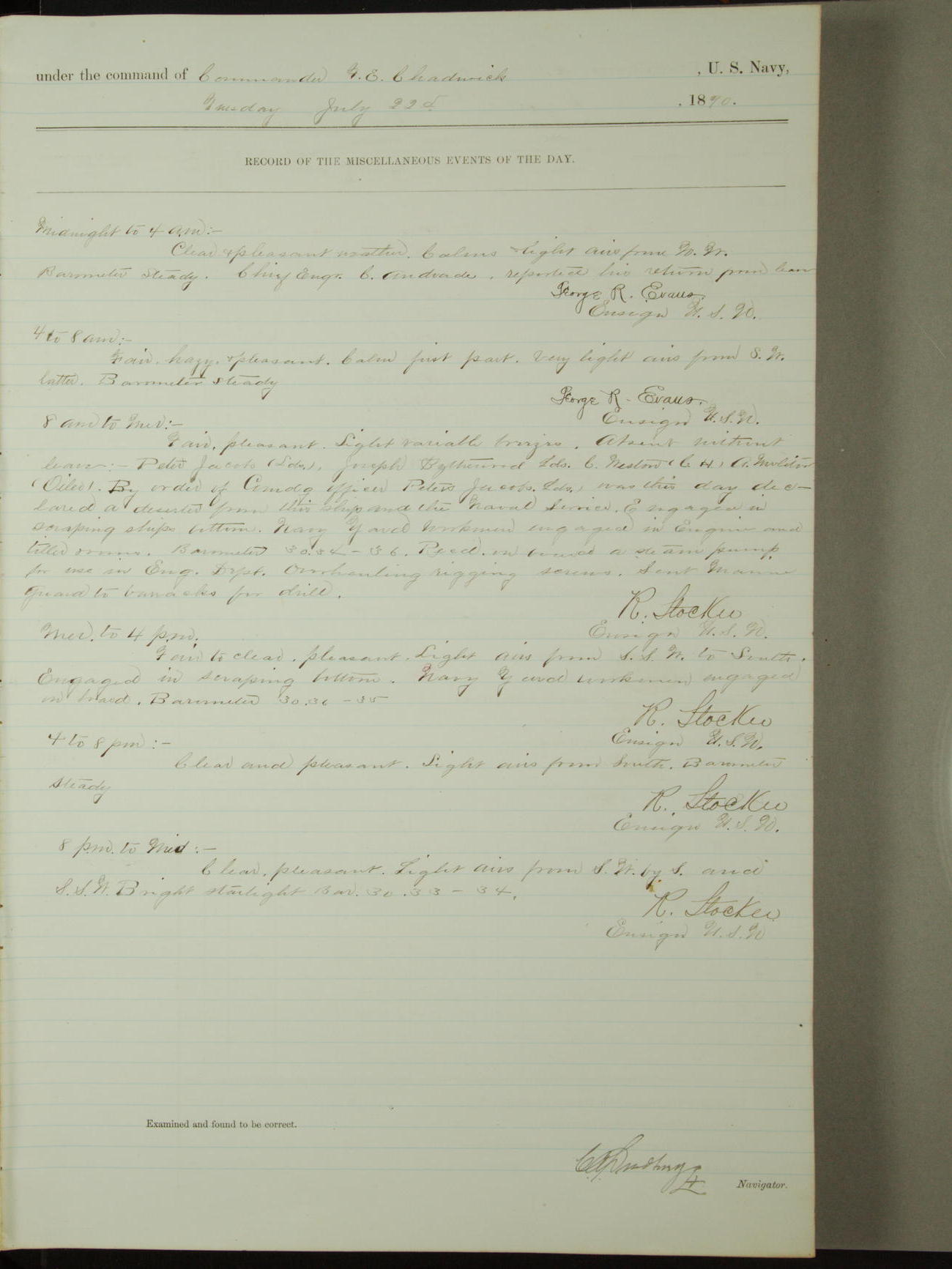 [Signed by] C.A. Bradbury, Lieutenant, Navigator
