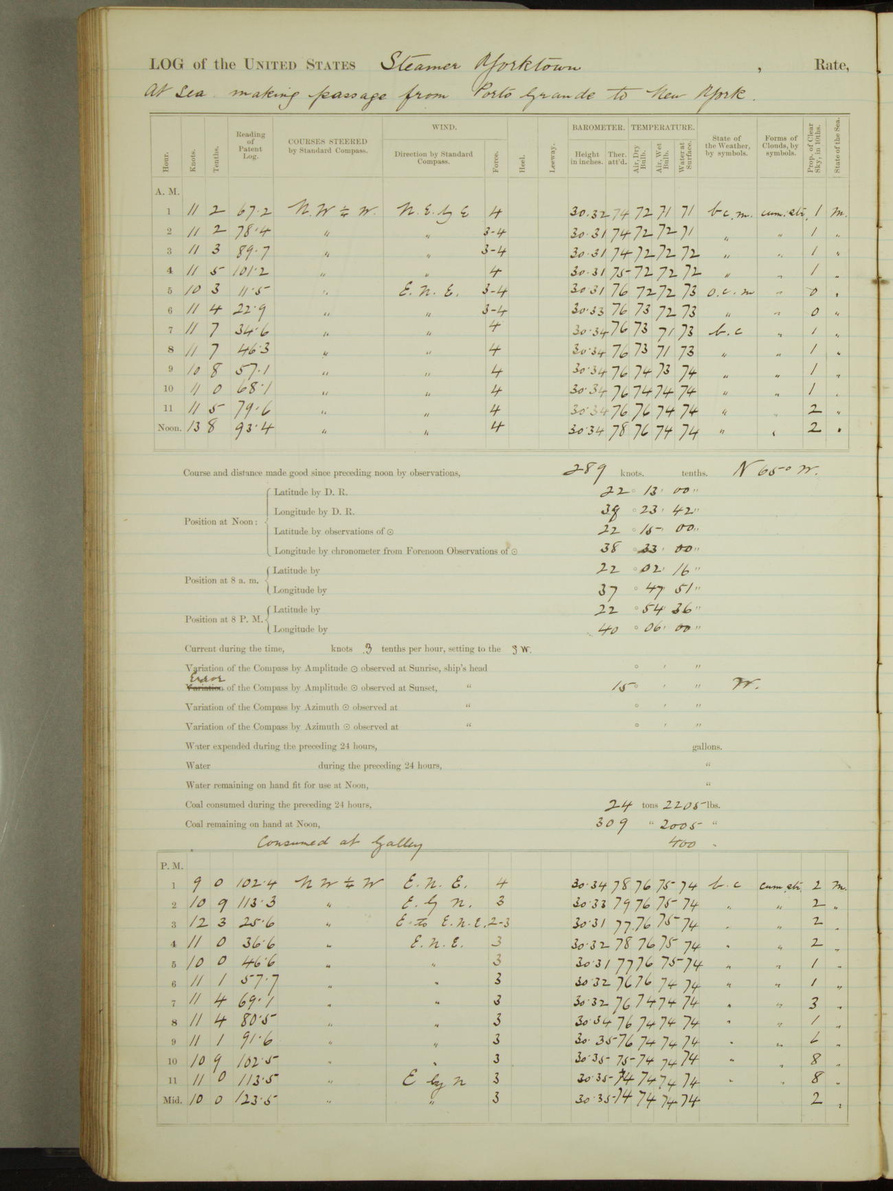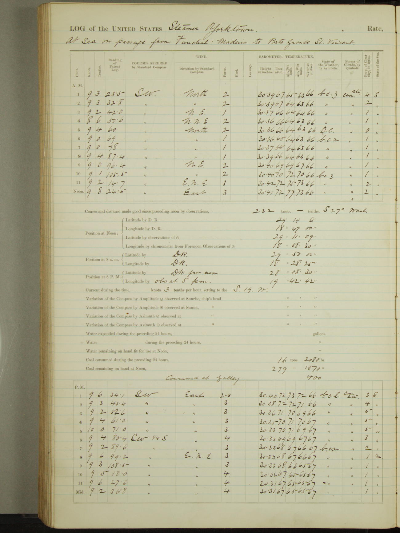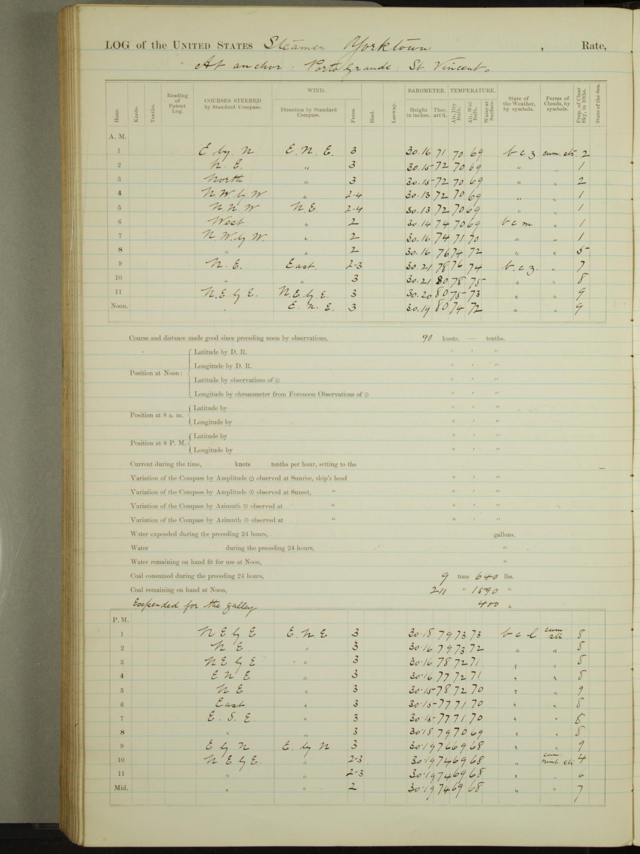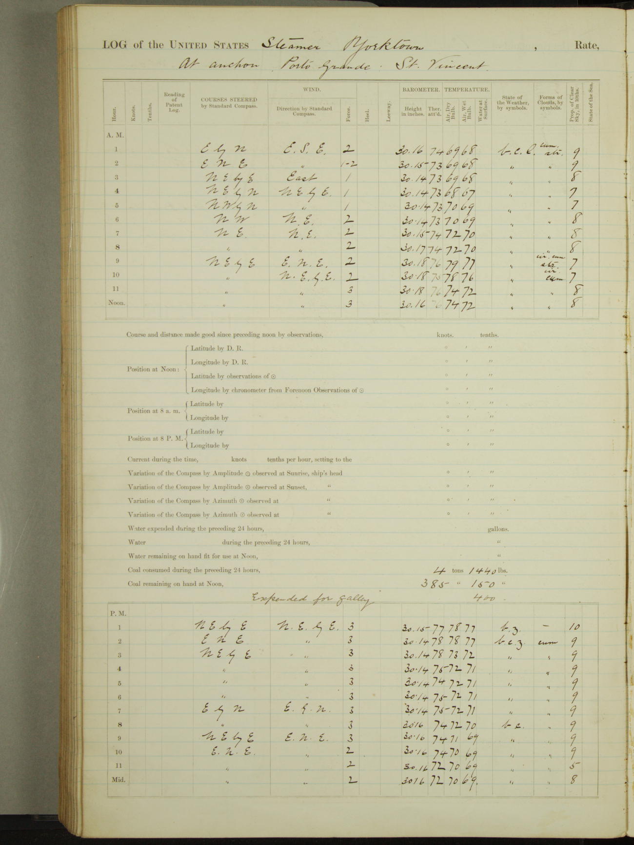 Light airs from ENE first part, NE by East latter part.