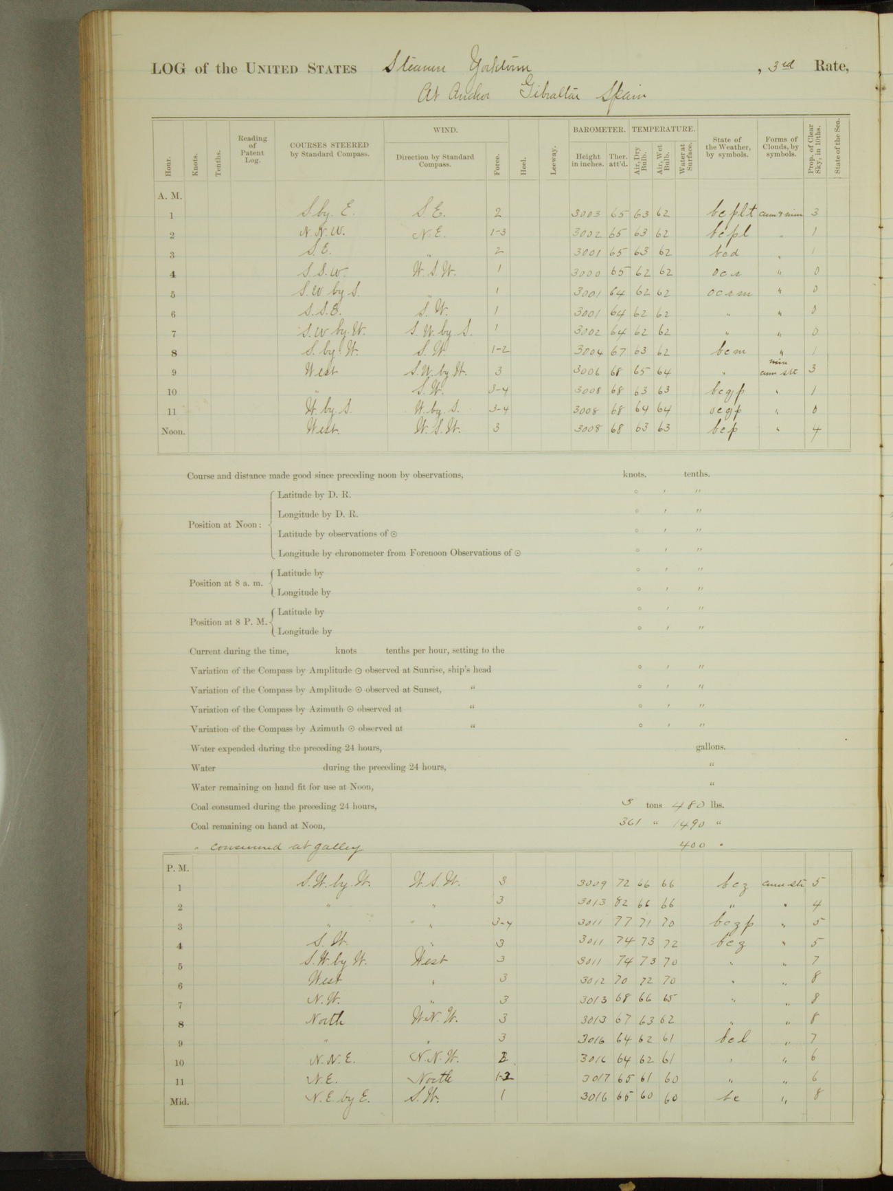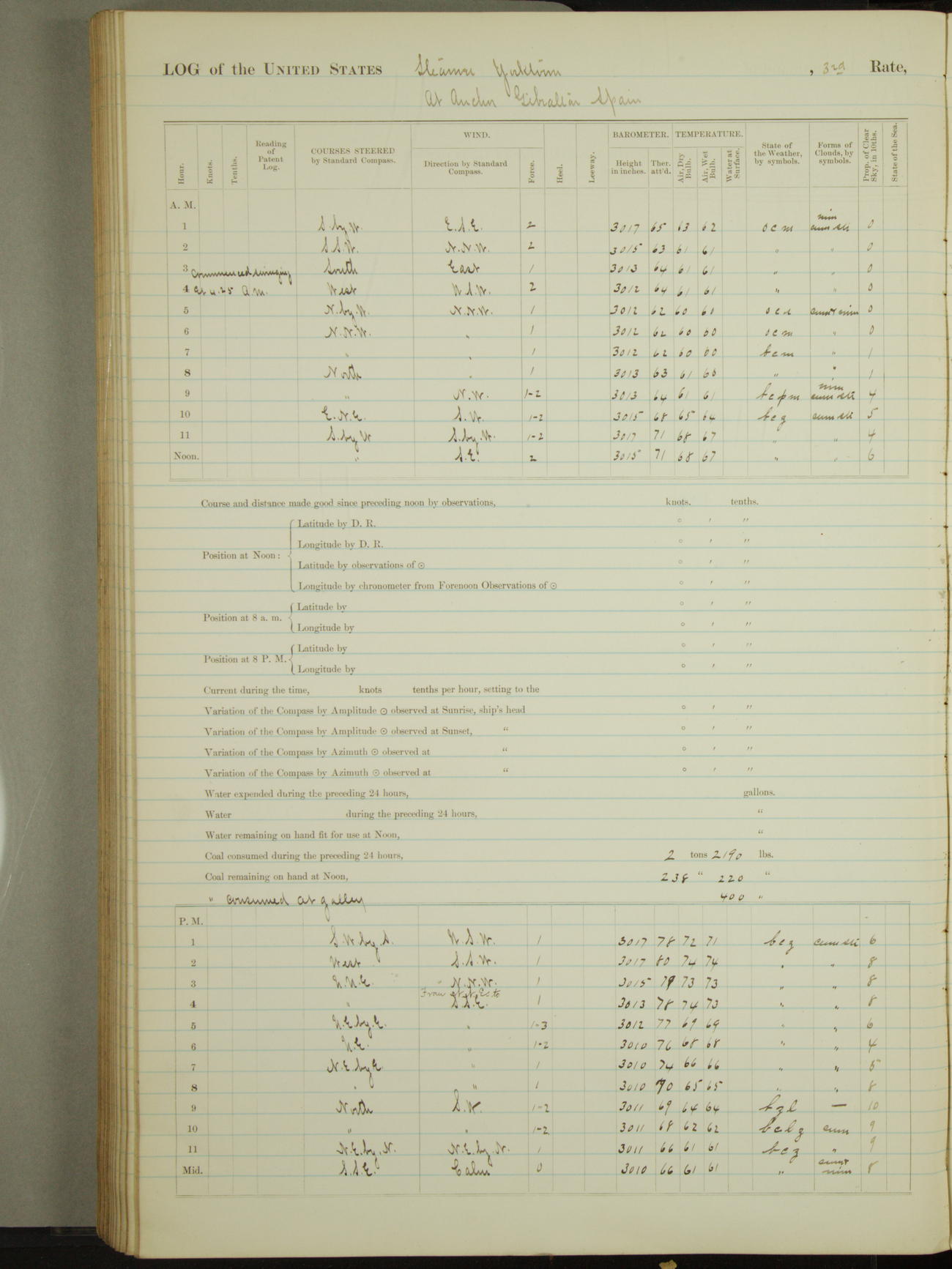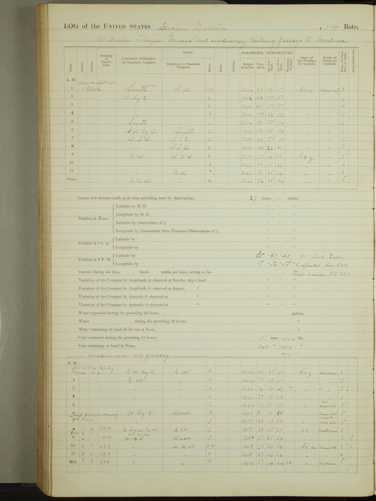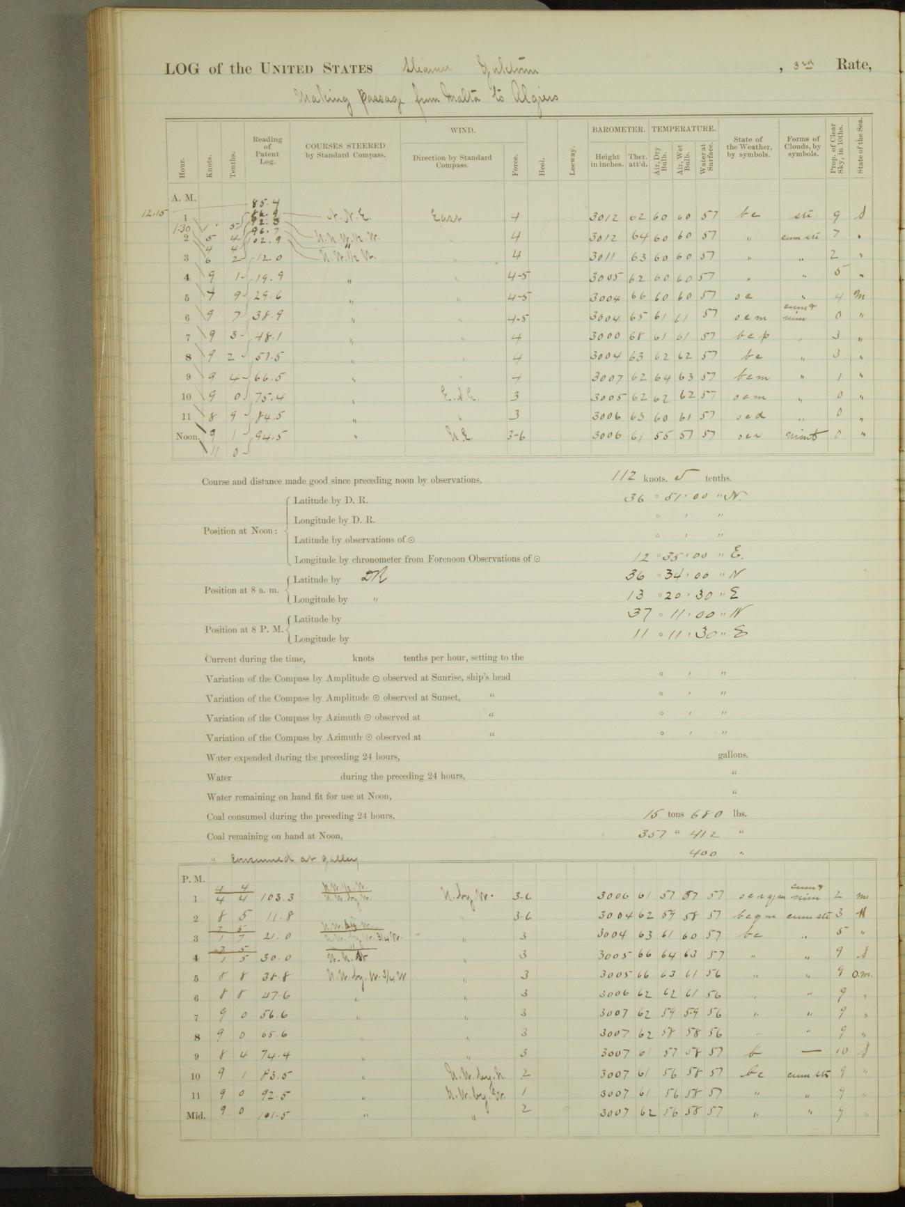 Light airs from ENE first part, NE by East latter part.