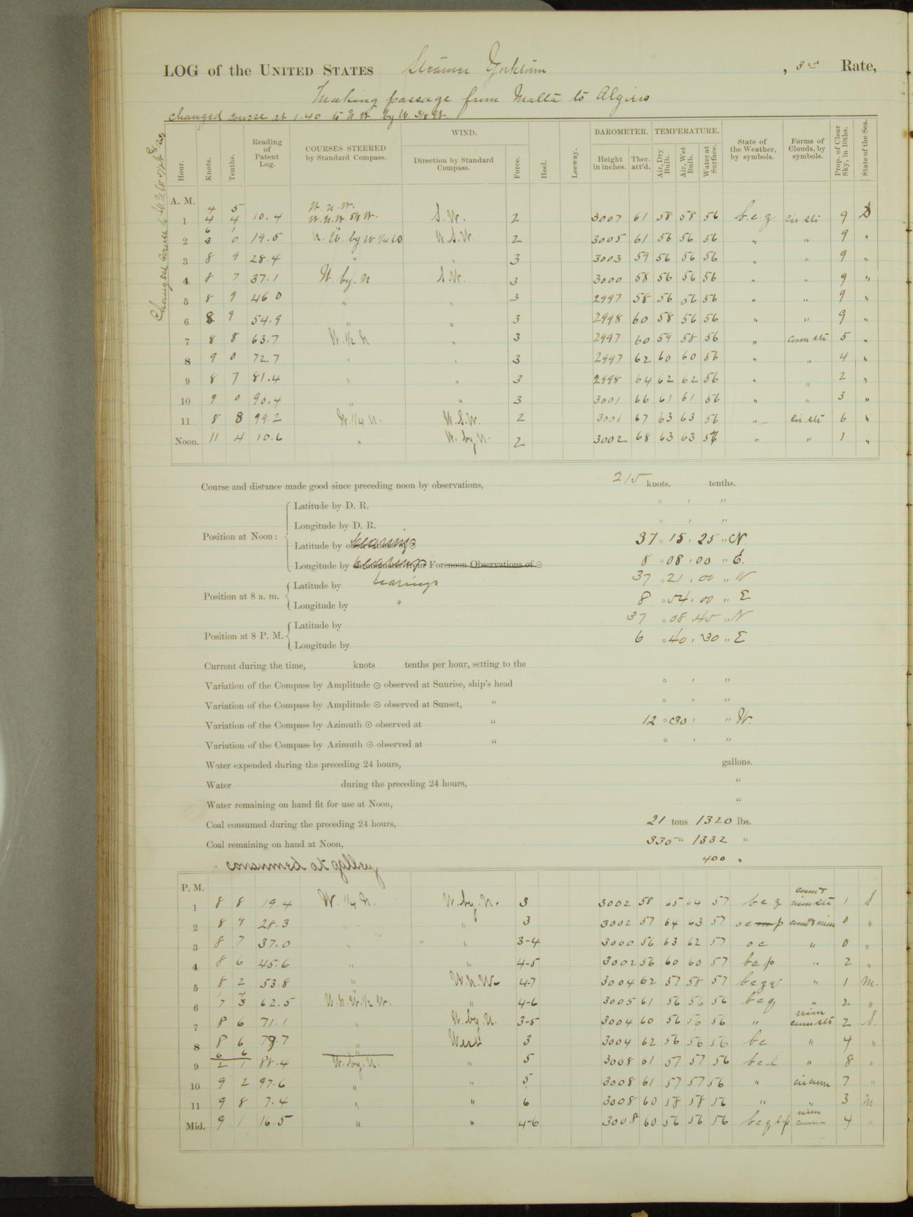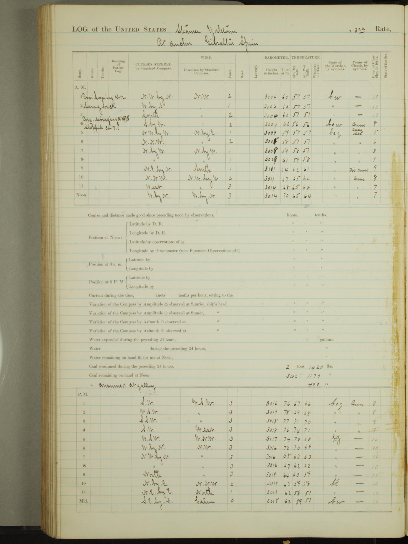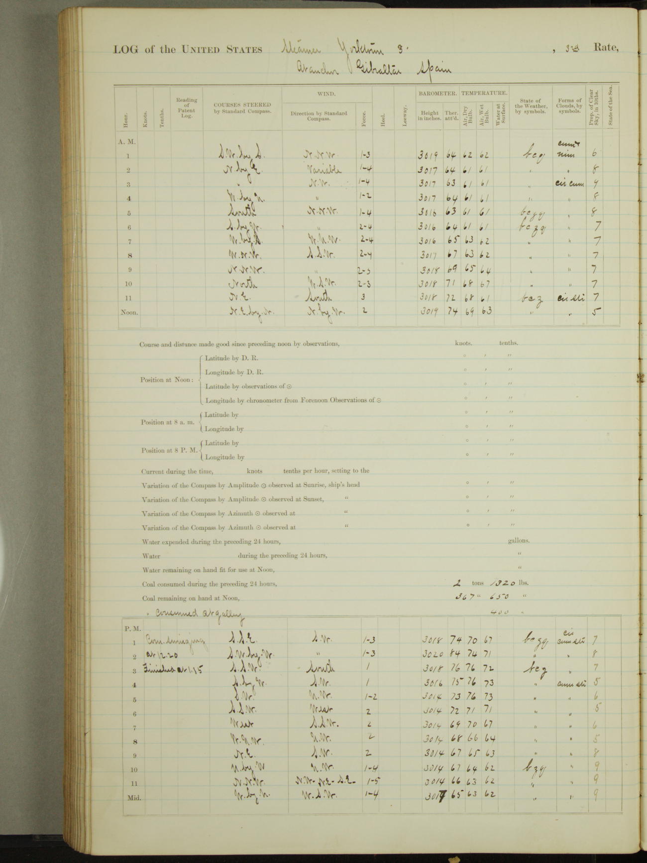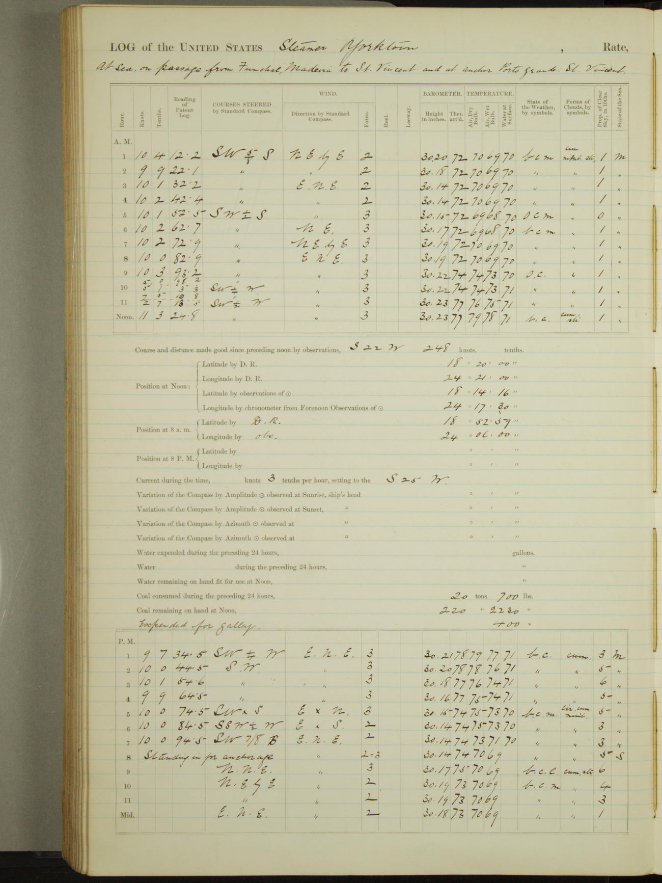 Light airs from ENE first part, NE by East latter part.