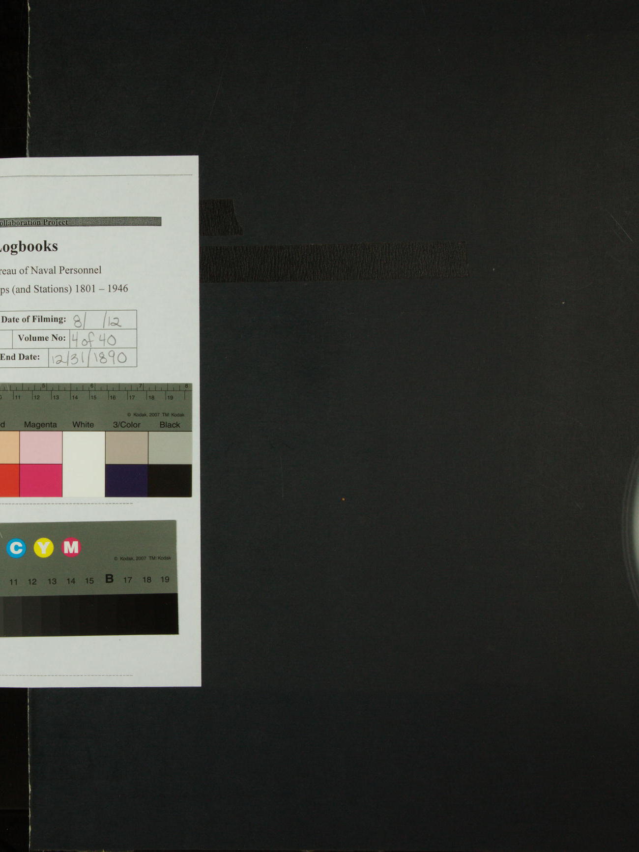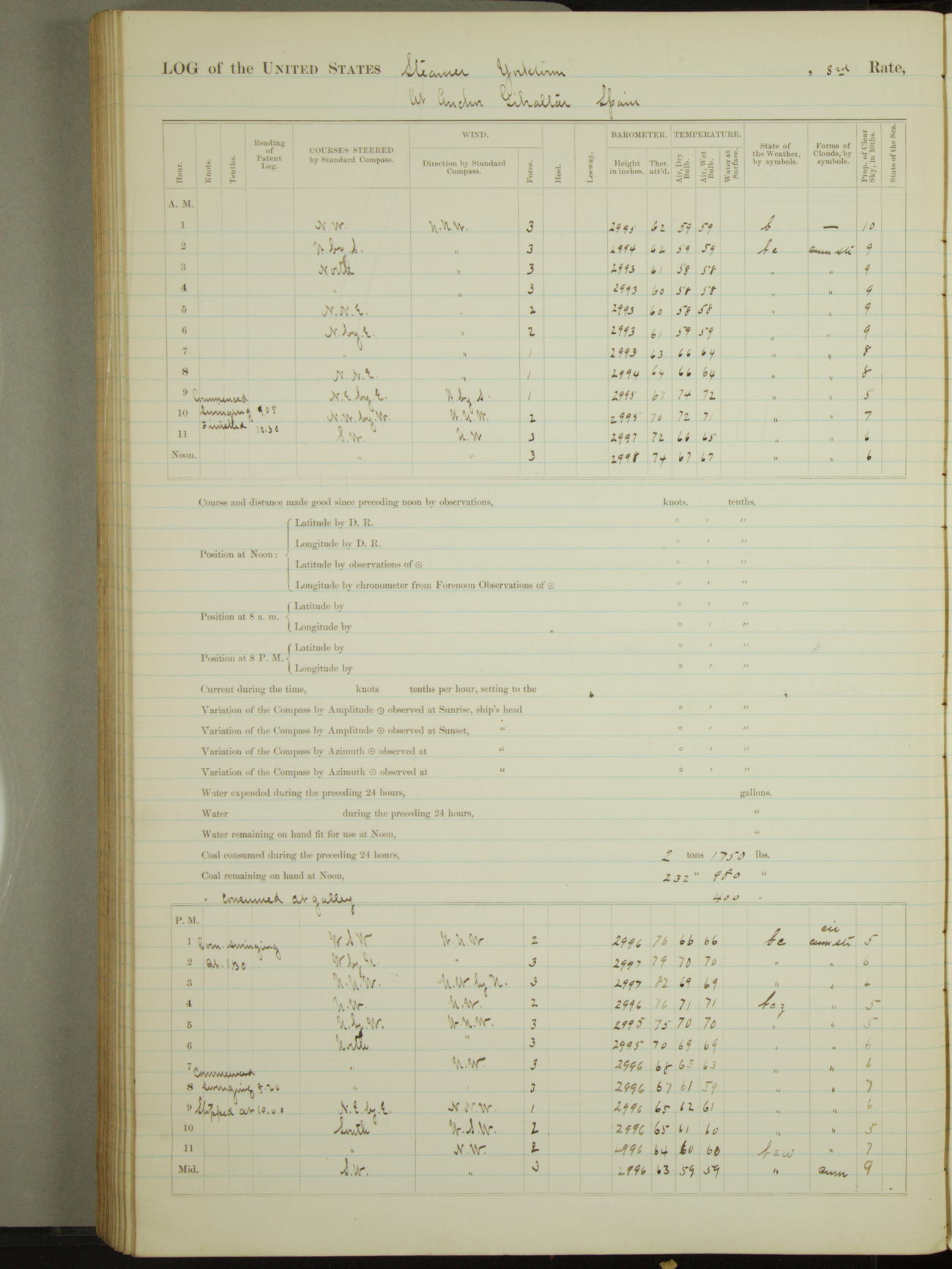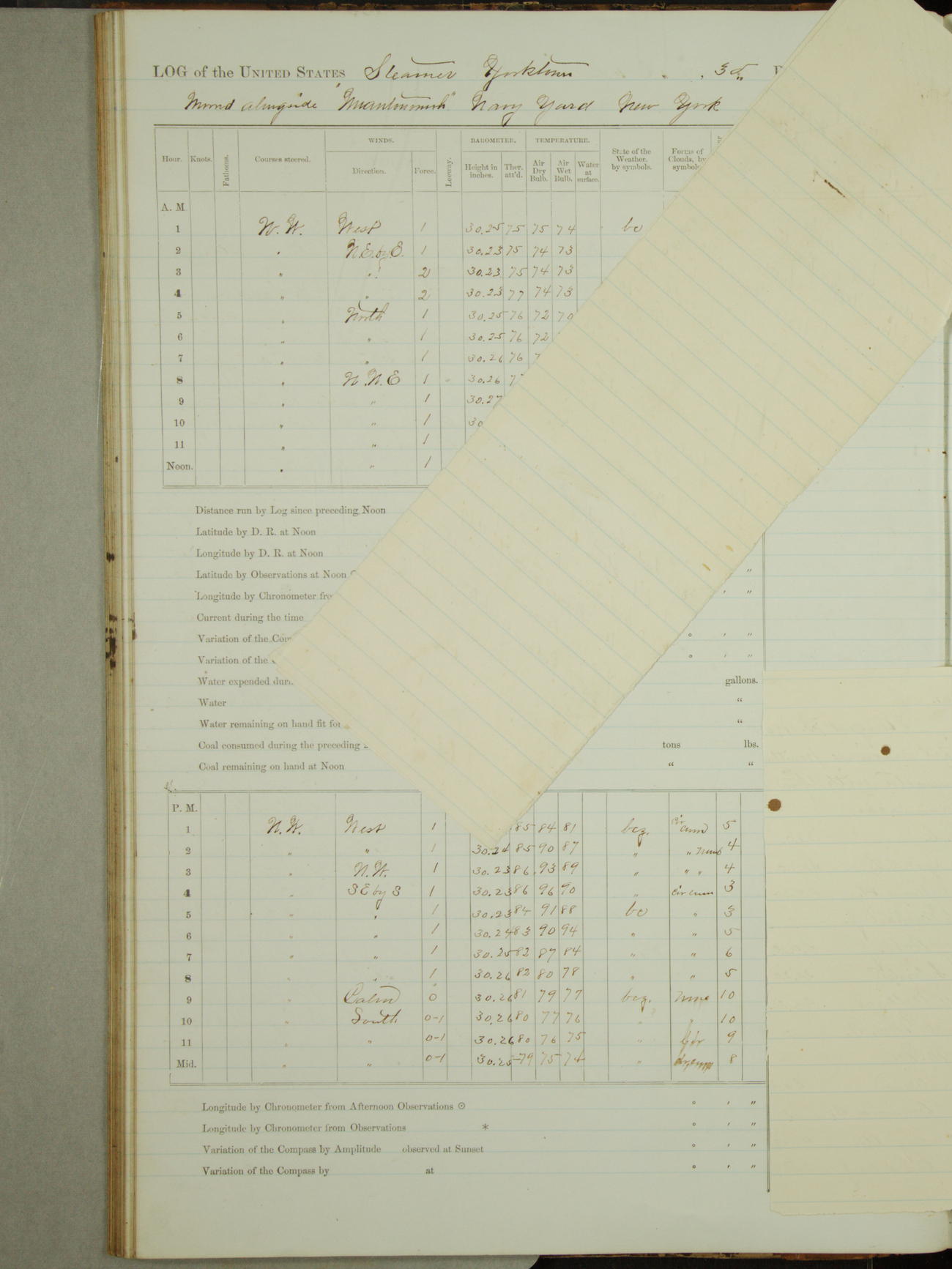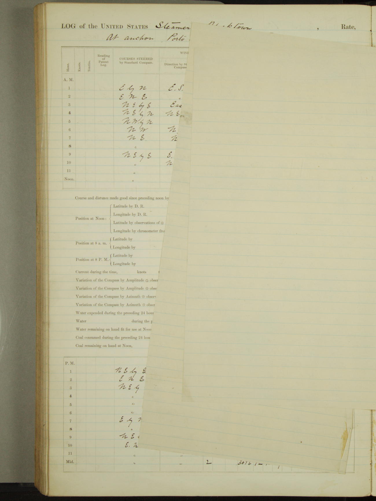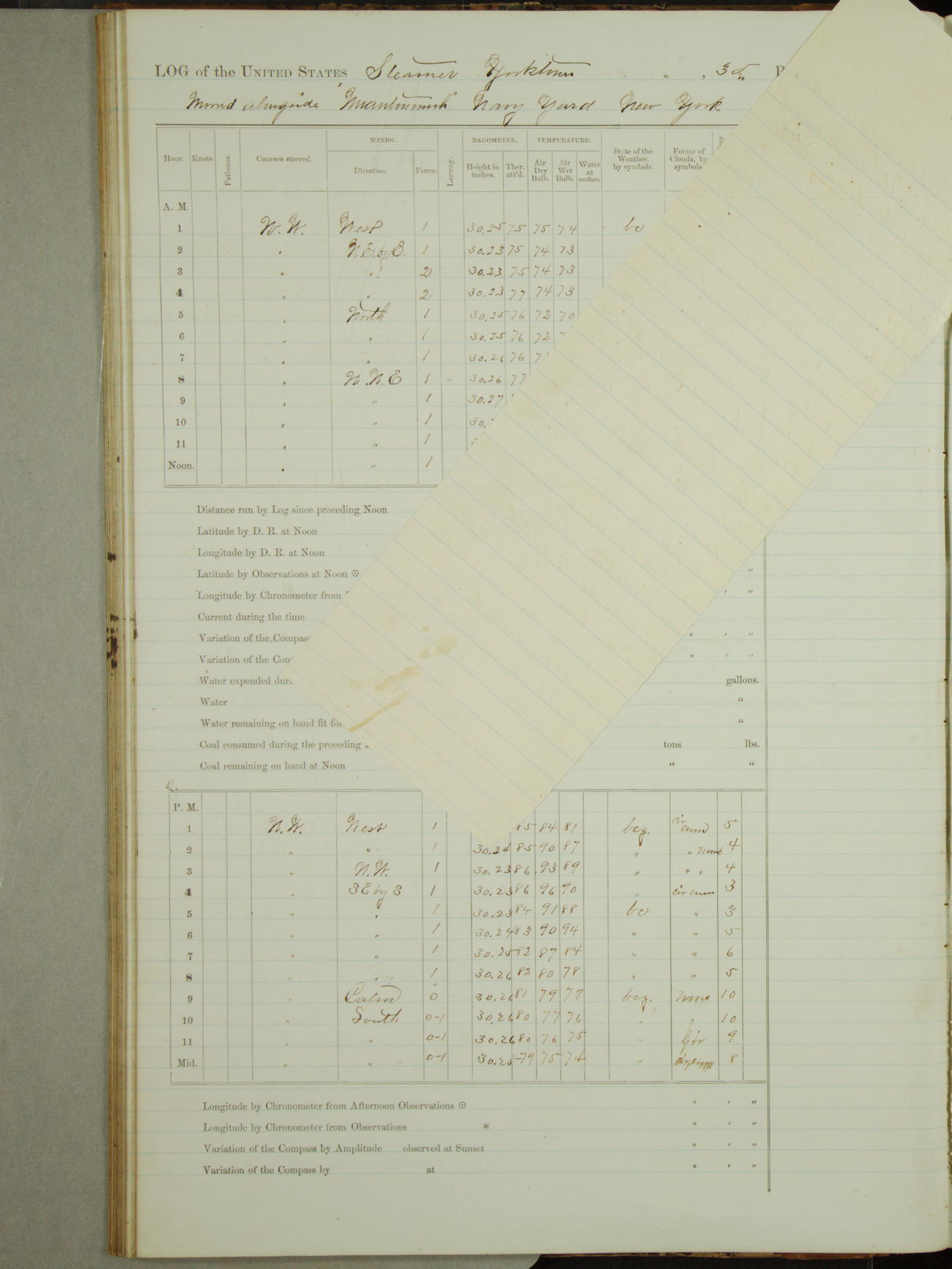 Attached to and on board of the U.S. Steamer "Yorktown", 3rd Rate, commanded by Commander F.E. Chadwick, U.S. Navy, at the time of leaving anchorage at Navy Yard League Island, Pennsylvania the 25th day of April, 1889.