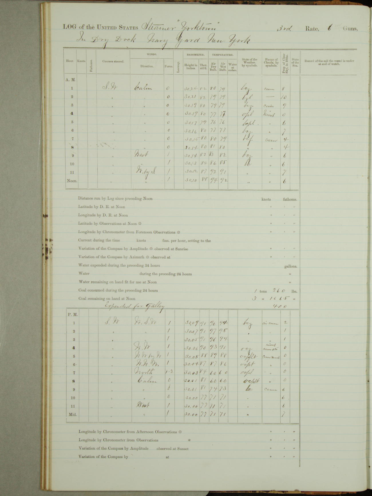 There were employed on board 13 joiners in the rearrangement of the quarters, and 2 men in dynamo room, all from the Navy Yard.