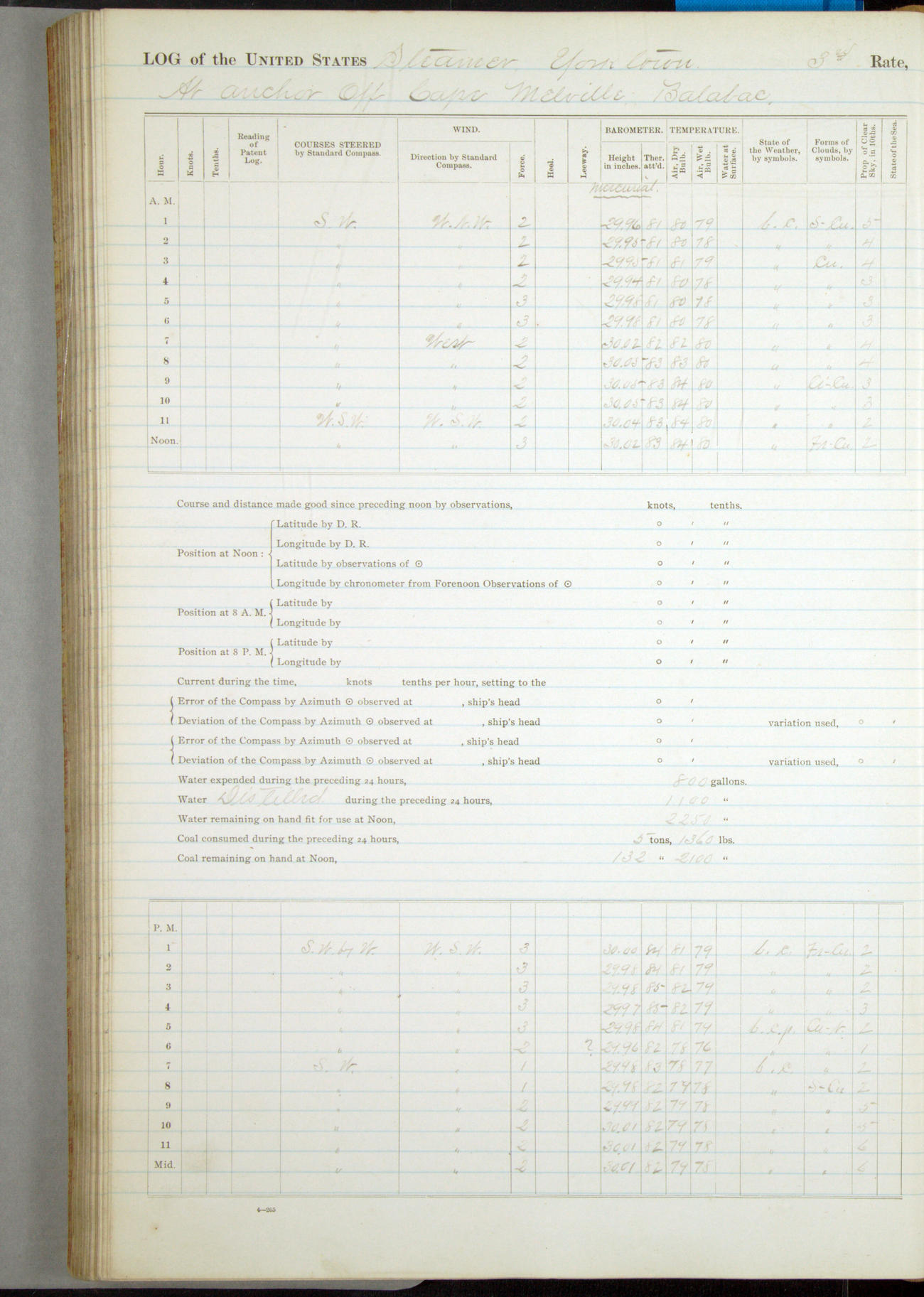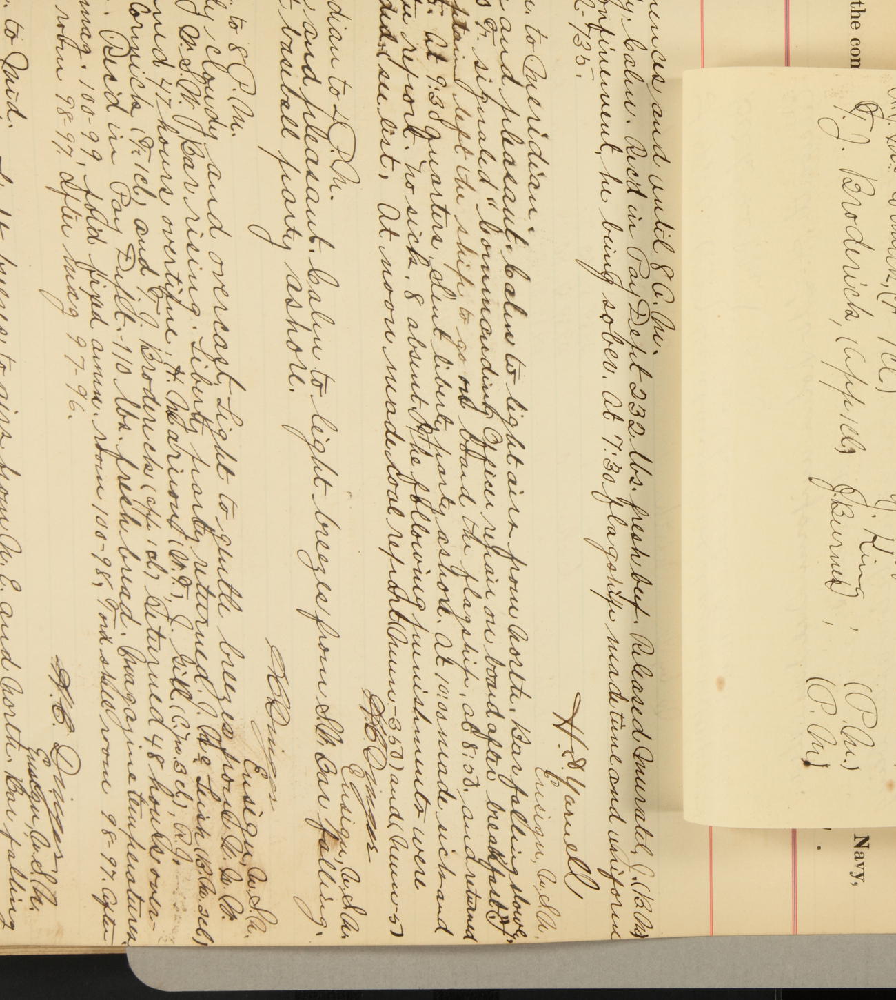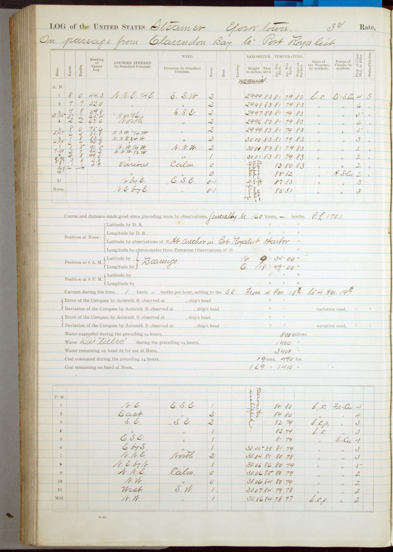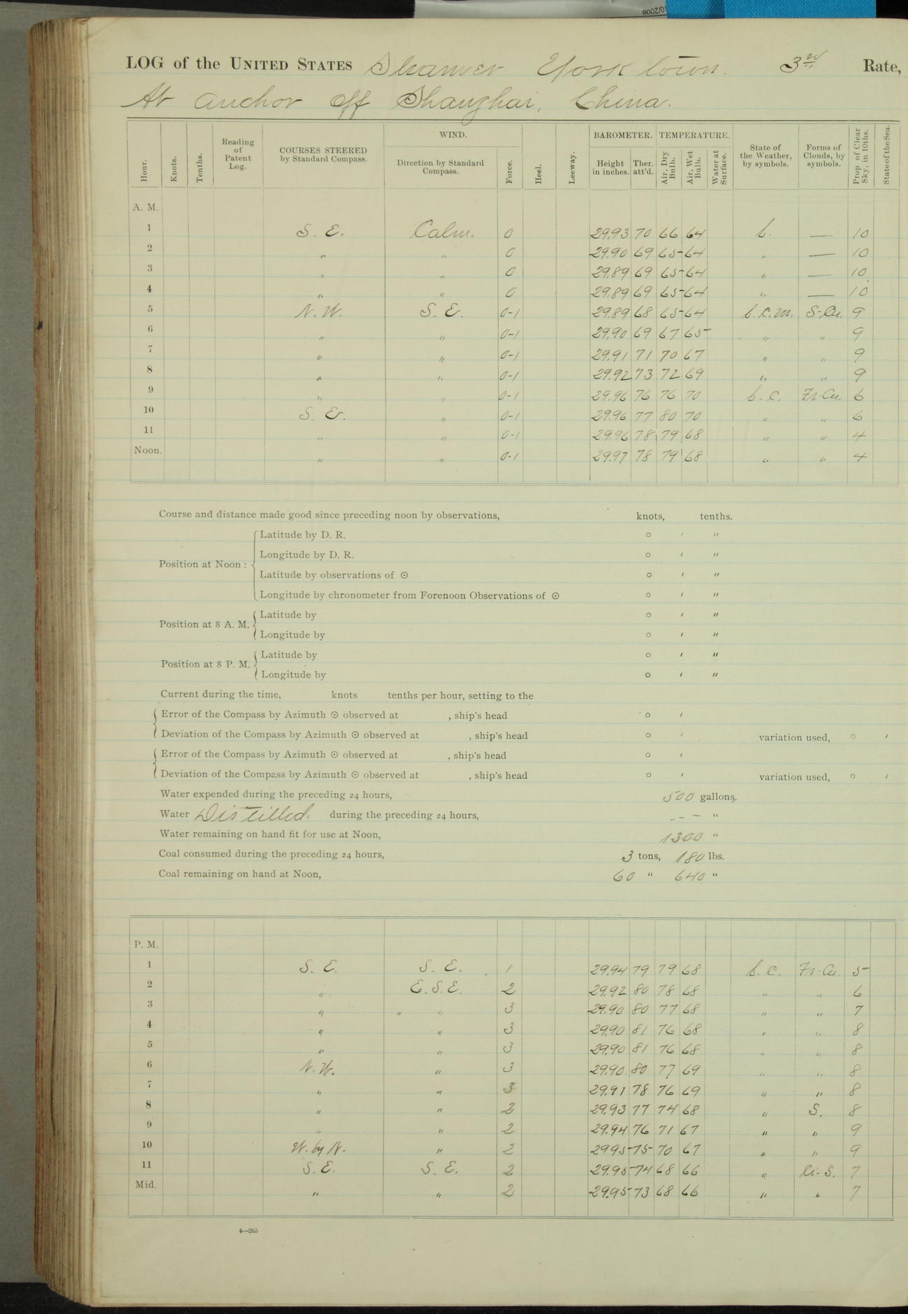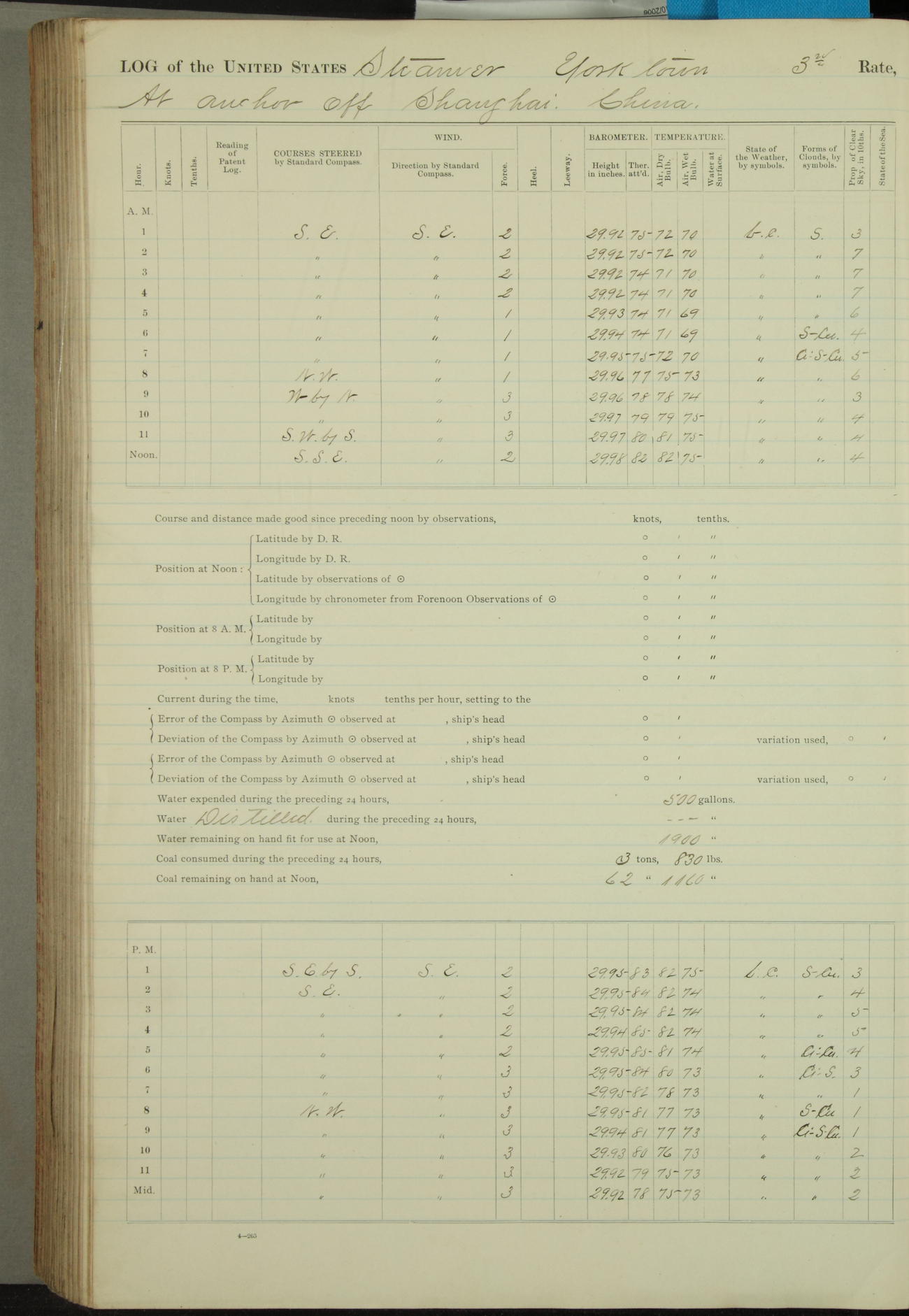 [In red, probably because of a sudden jump of 0.31 inches at 5.00am:] Many of the barometer readings of the first half of this day are obviously wrong, [signed] C.S. Sperry.