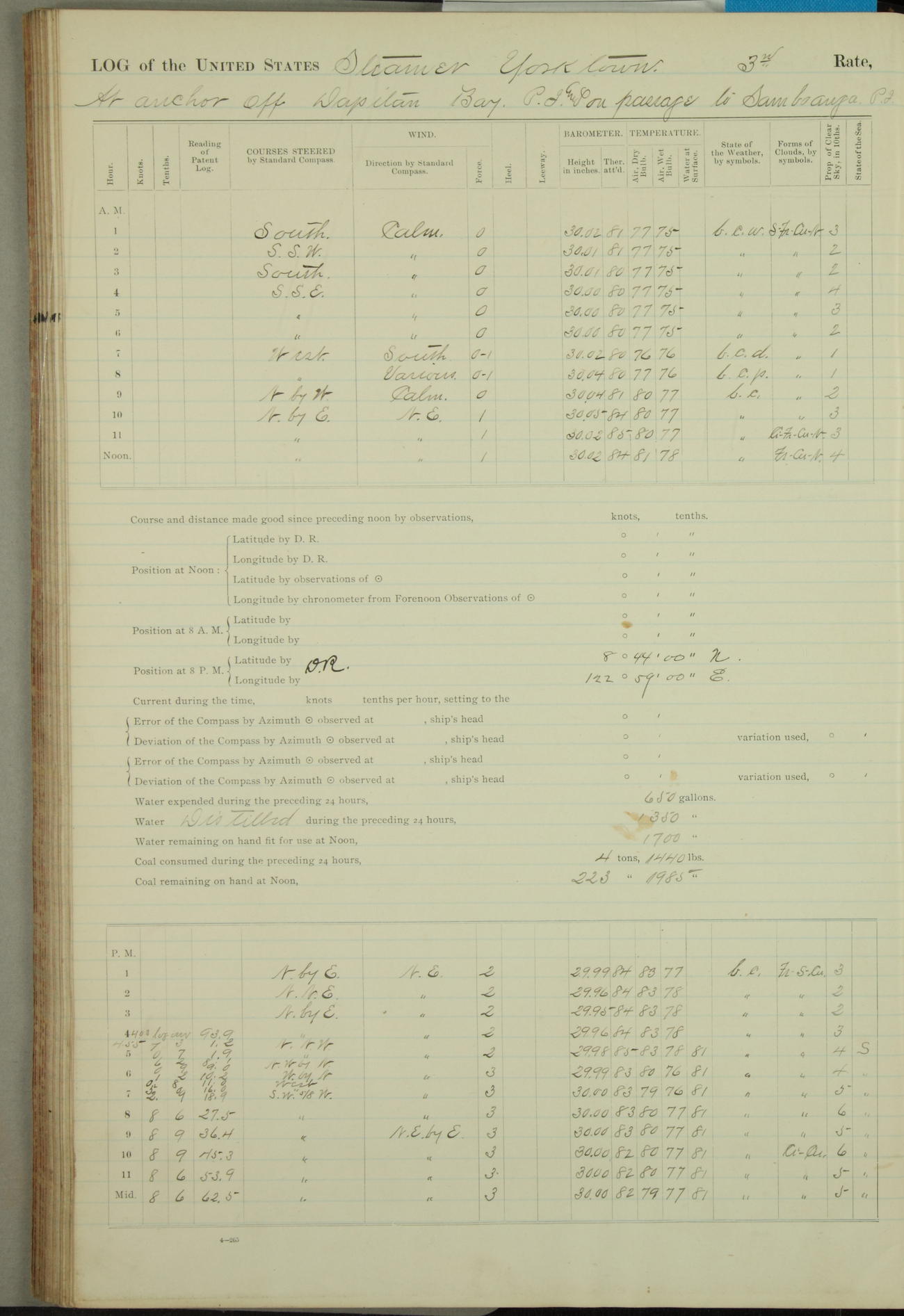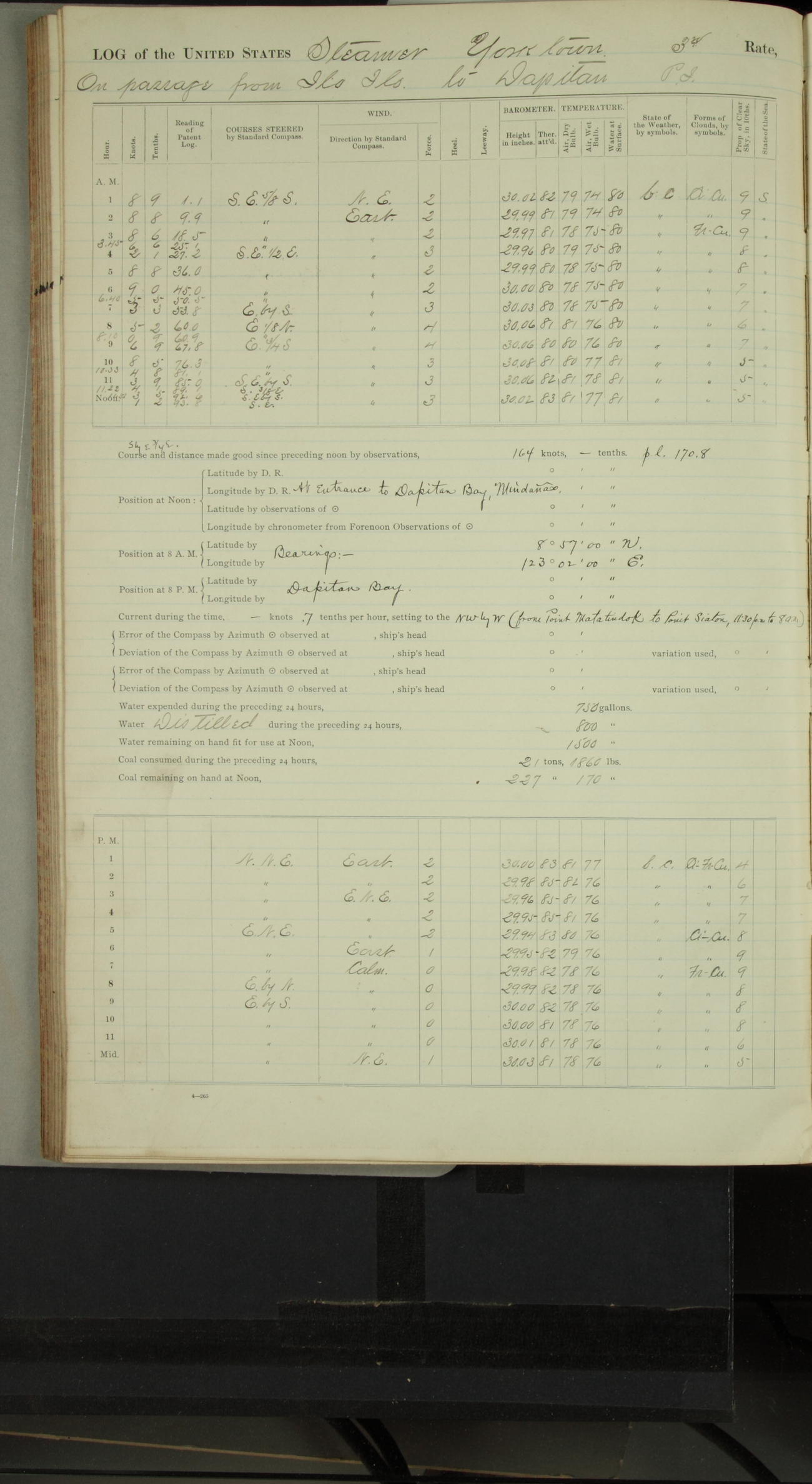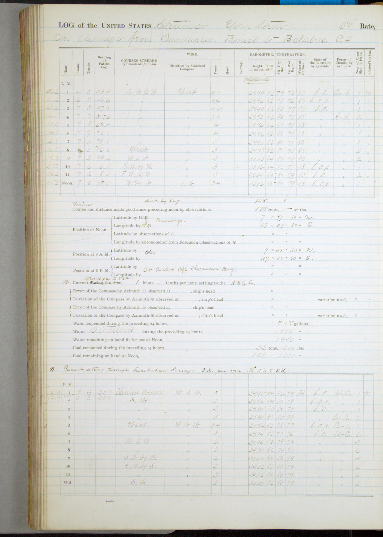 On course S20°E until 12.10pm, when changed course to S14°E (per standard compass), standing into anchorage for Dagupan.