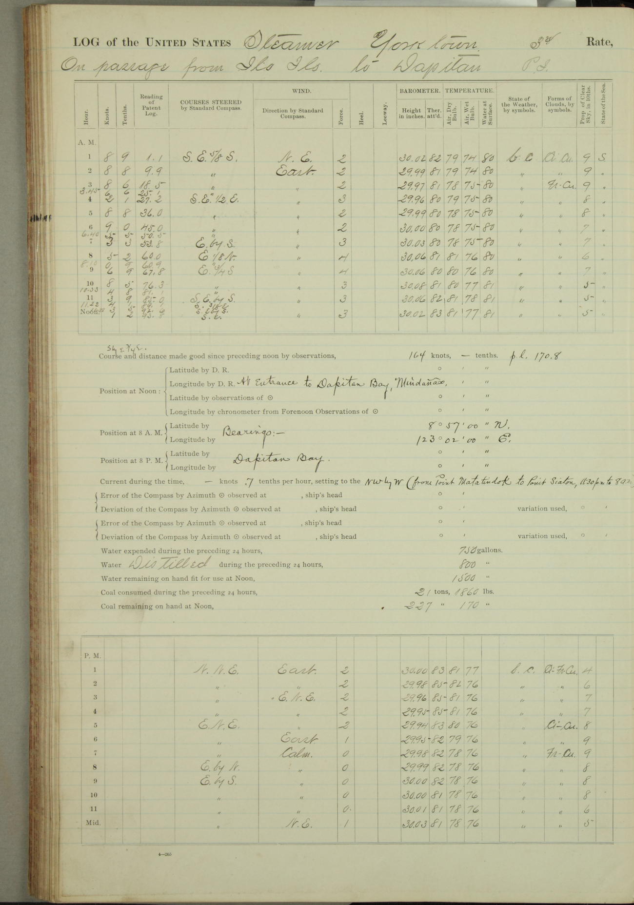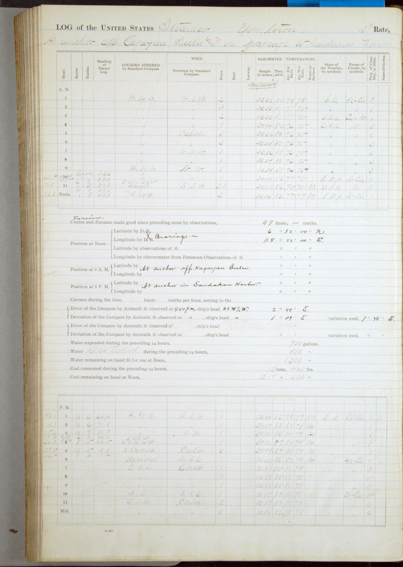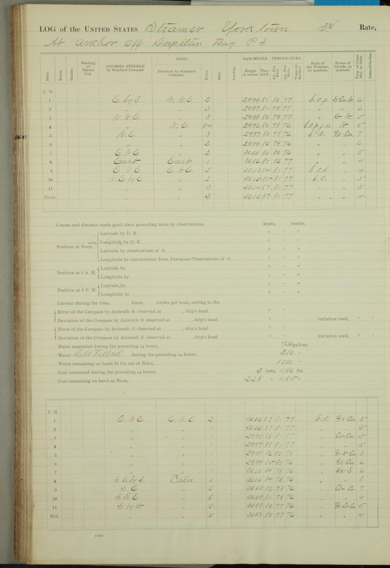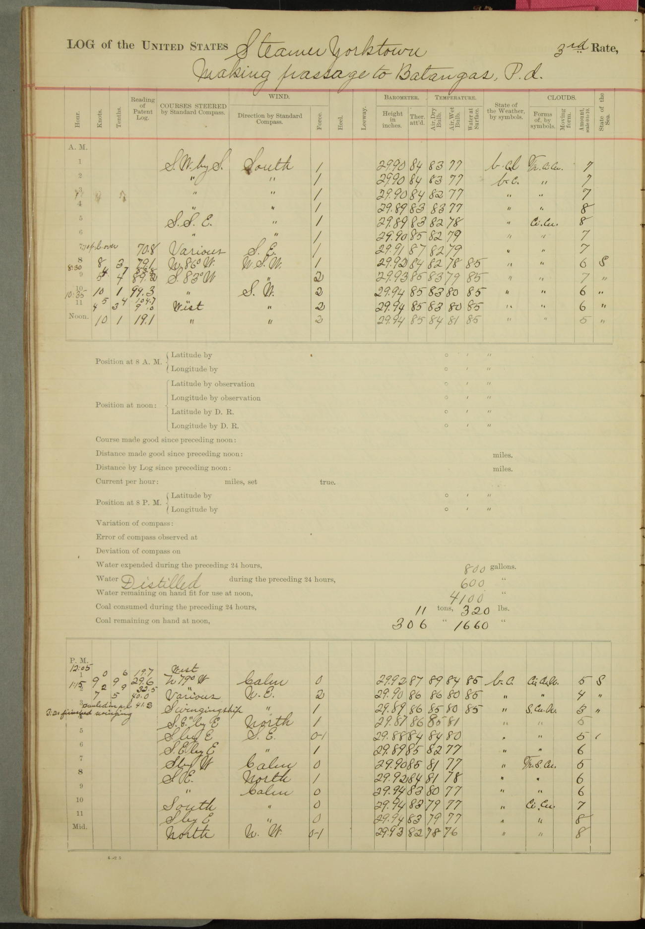 On course S20°E until 12.10pm, when changed course to S14°E (per standard compass), standing into anchorage for Dagupan.