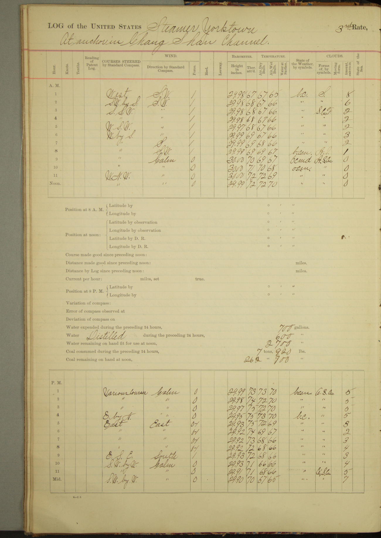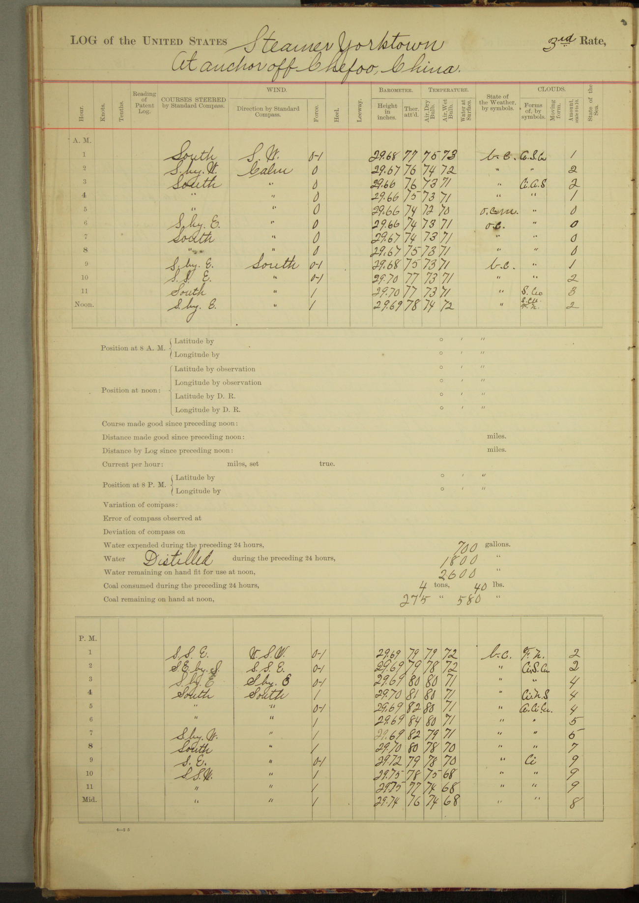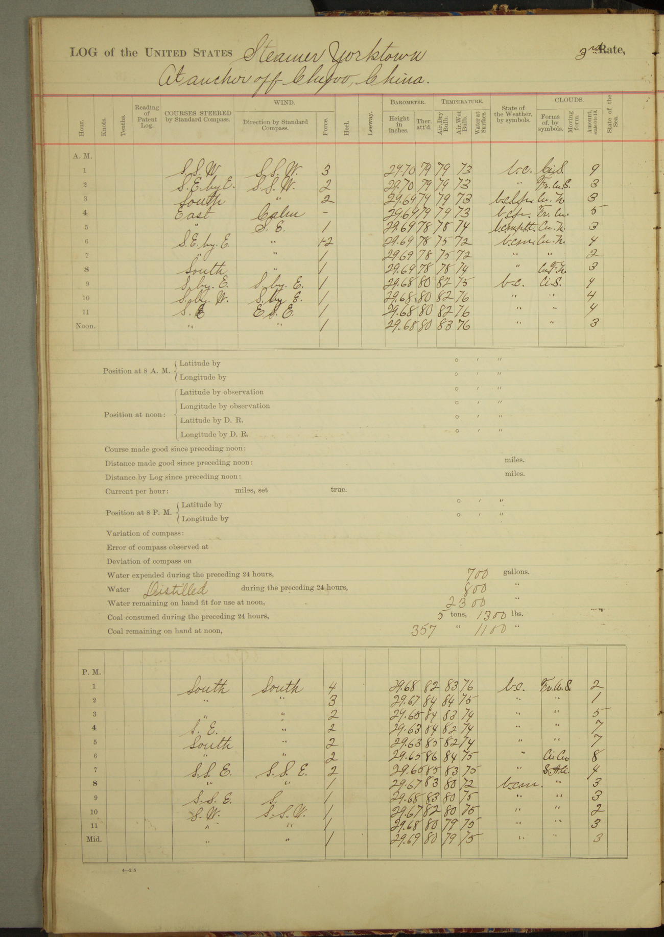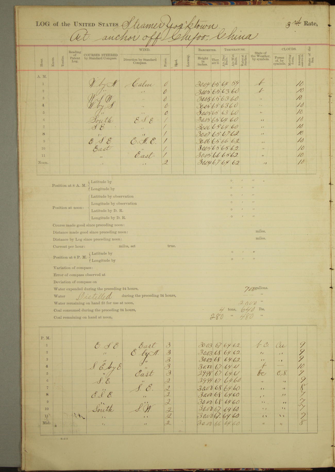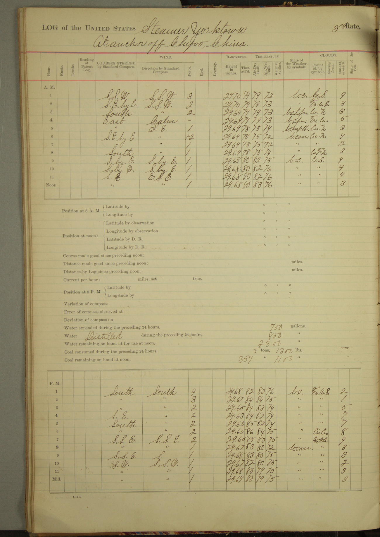 At 2.40pm came to in 5¾ fathoms [water], veering to 20 fathoms port chain.